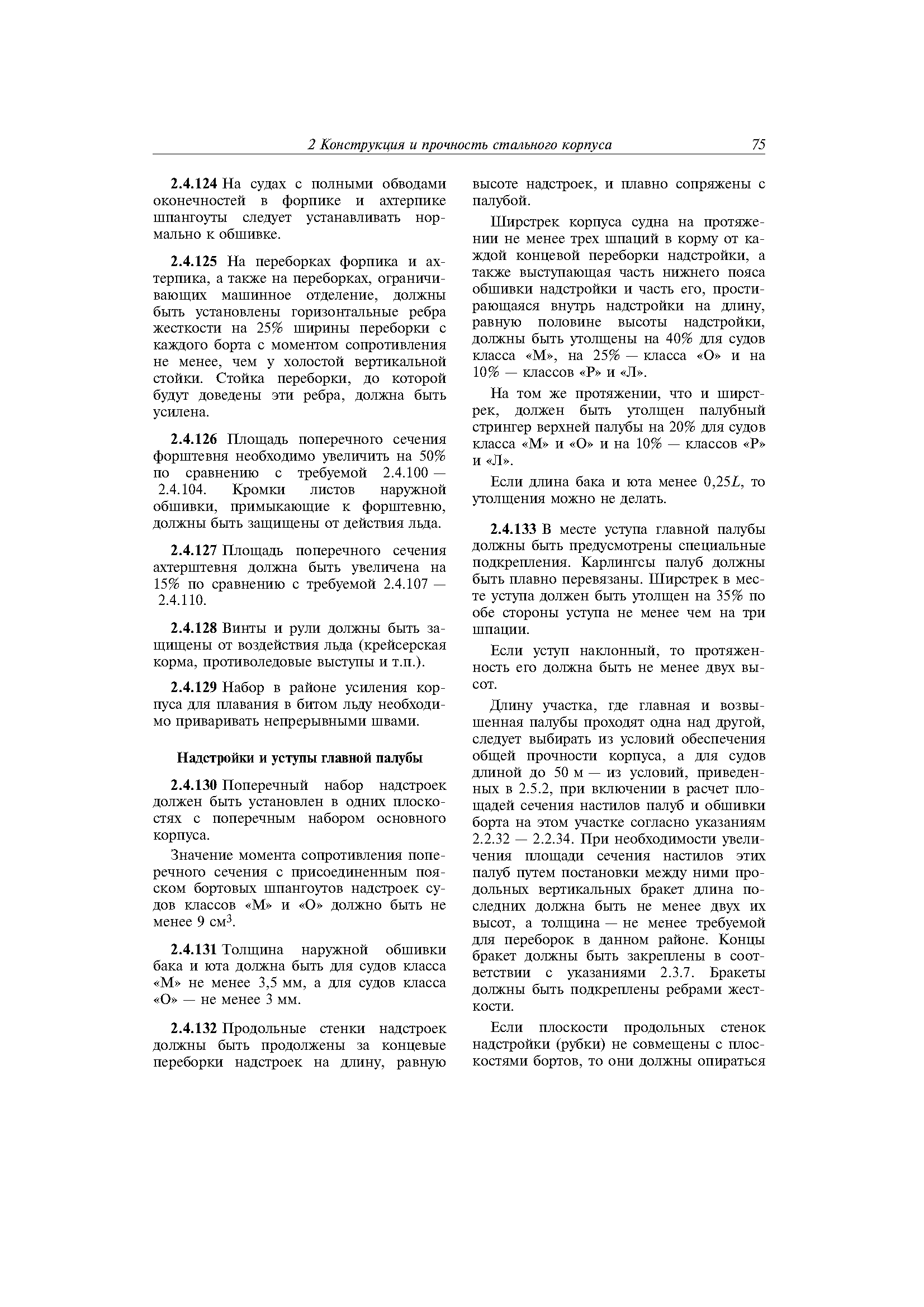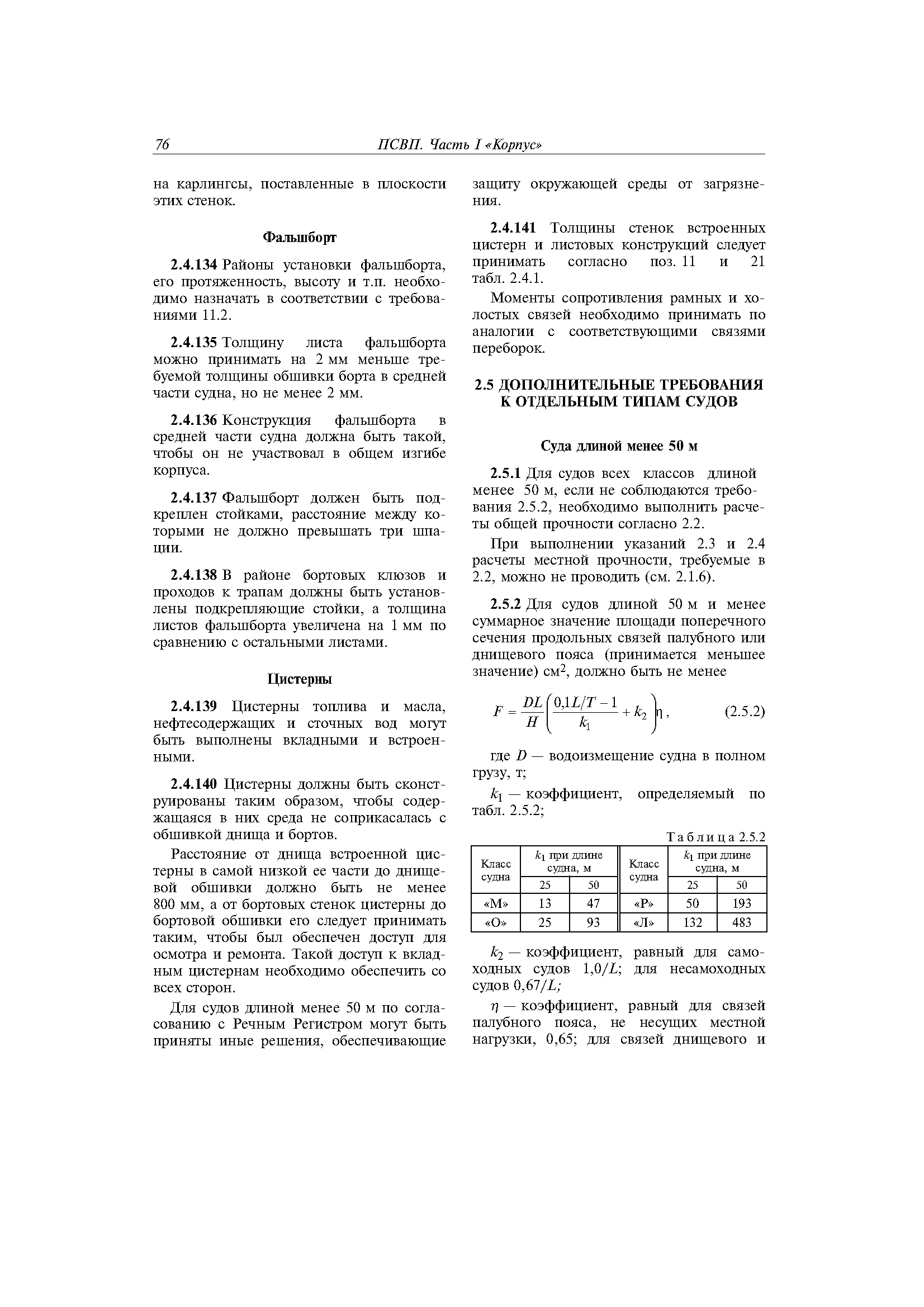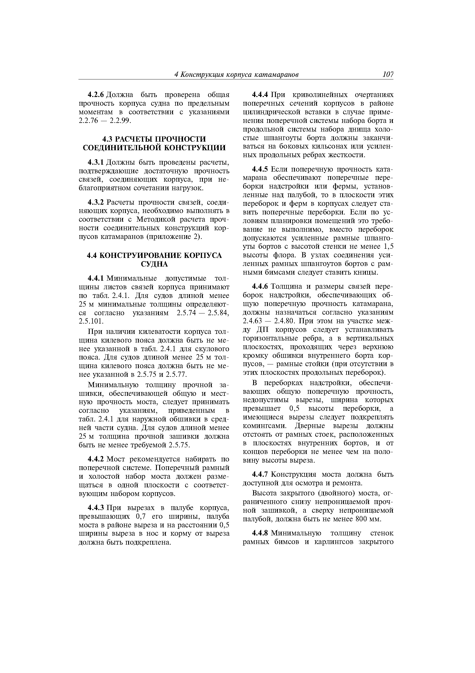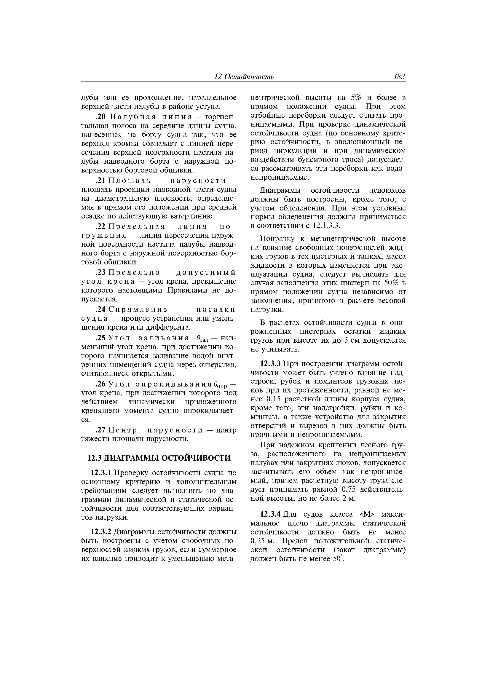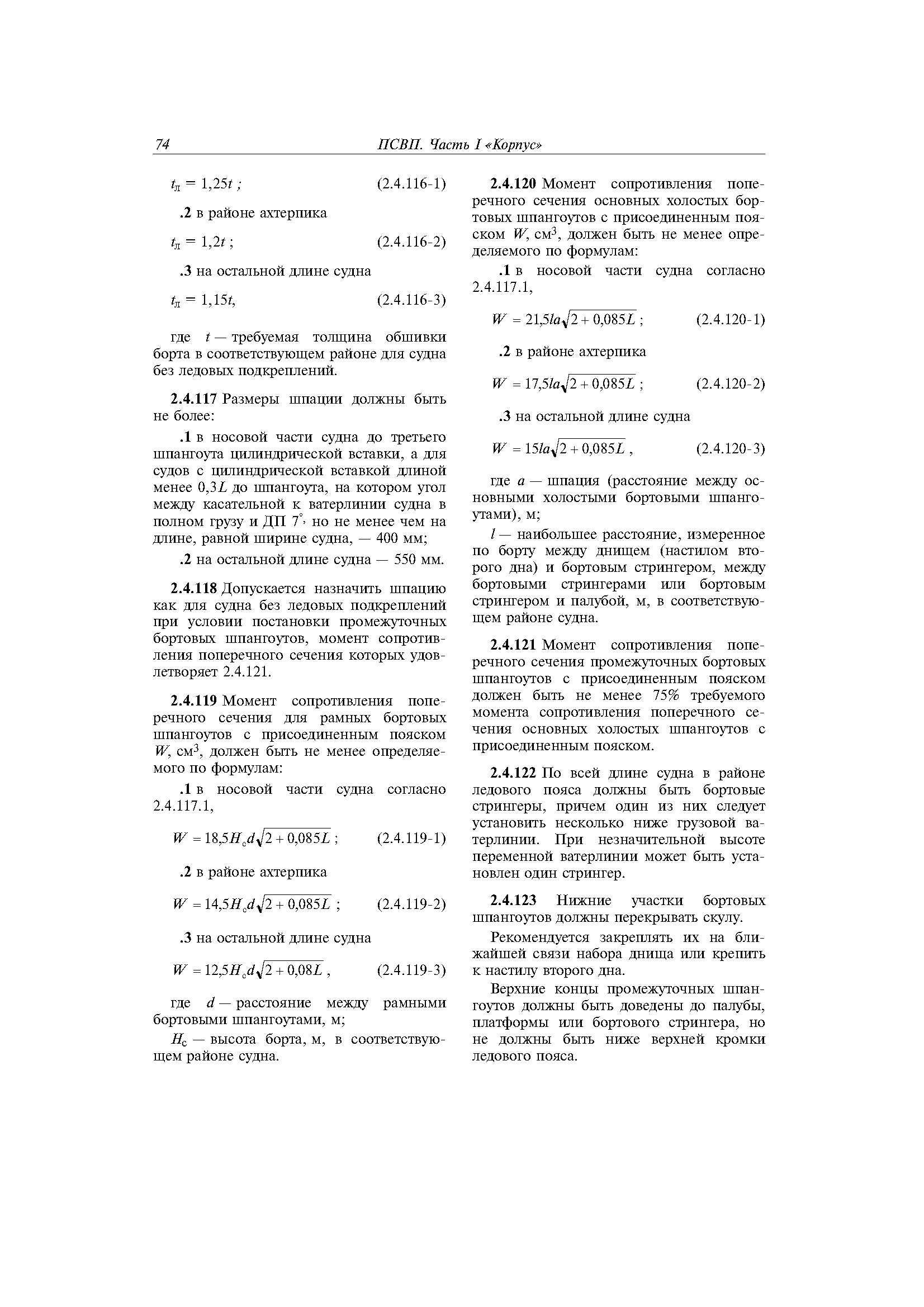 Часть I. Корпус (редакция 2002 года)| Статус: | действует | | Название рус.: | Часть I. Корпус (редакция 2002 года) | | Дата добавления в базу: | 01.09.2013 | | Дата актуализации: | 01.01.2021 | | Дата введения: | 31.03.2003 | | Область применения: | Документ распространяется на водоизмещающие однокорпусные суда и катамараны, суда на подводных крыльях и воздушной подушке и включает в себя требования к конструкции корпуса, прочности, остойчивости, непотопляемости, надводному борту и грузовой марке, а также к конструктивной противопожарной защите, оборудованию помещений, защите экипажа и пассажиров. | | Оглавление: | 1 Общие положения 2 Конструкция и прочность стального корпуса 3 Конструкция корпуса водоизмещающих судов из легких сплавов 4 Конструкция корпуса катамарана 5 Конструкция корпуса судов на подводных крыльях 6 Конструкция корпуса судов на воздушной подушке 7 Конструкция железобетонного корпуса 8 Конструкция пластмассового корпуса 9 Конструктивная противопожарная защита 10 Оборудование помещений 11 Ограждения, поручни, переходные мостики, сходные трапы 12 Остойчивость 13 Непотопляемость 14 Надводный борт и грузовая марка Приложения | | Утверждён: | 11.11.2002 Министерство транспорта РФ (Russian Federation Ministry of Transport НС-137-р)