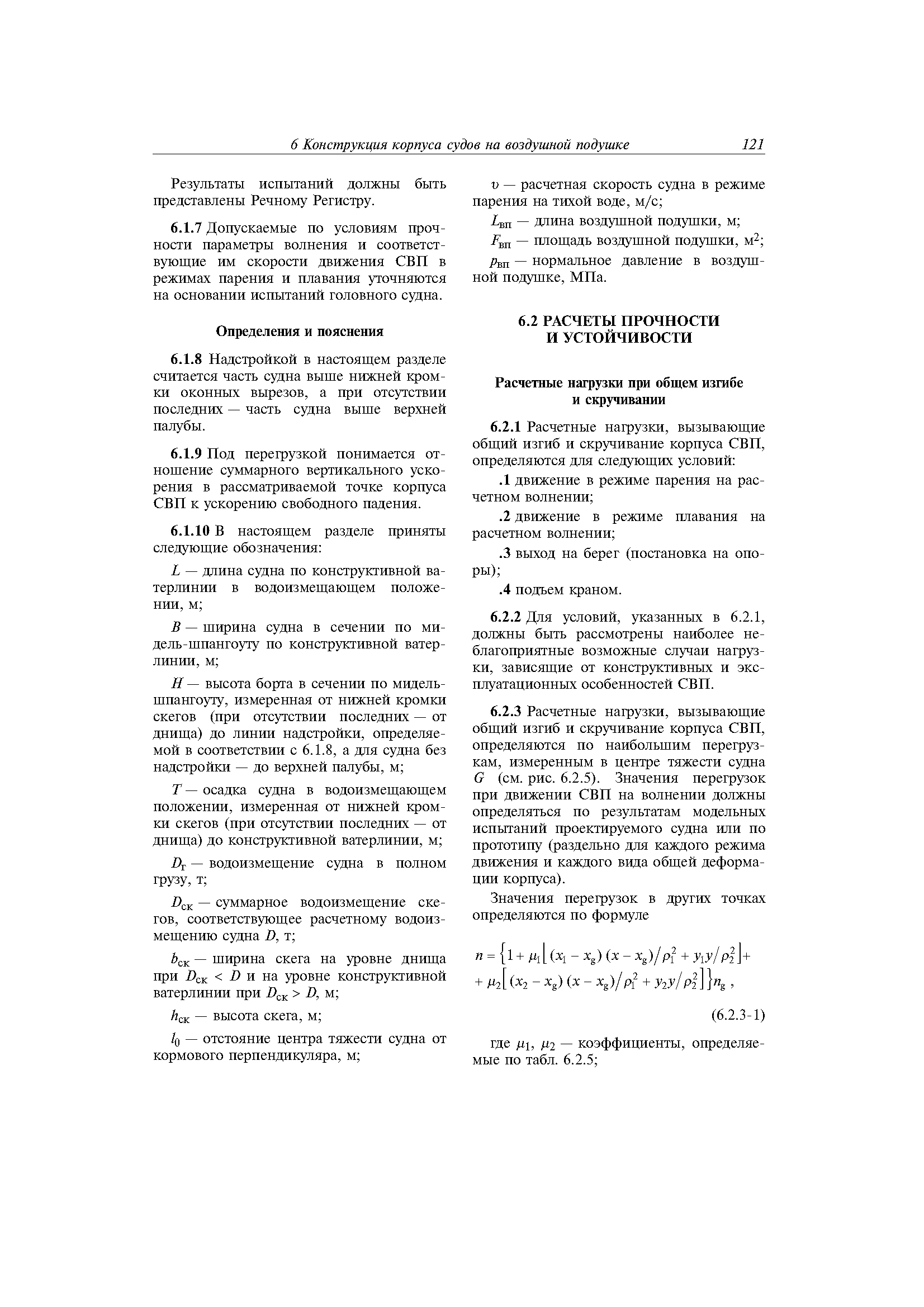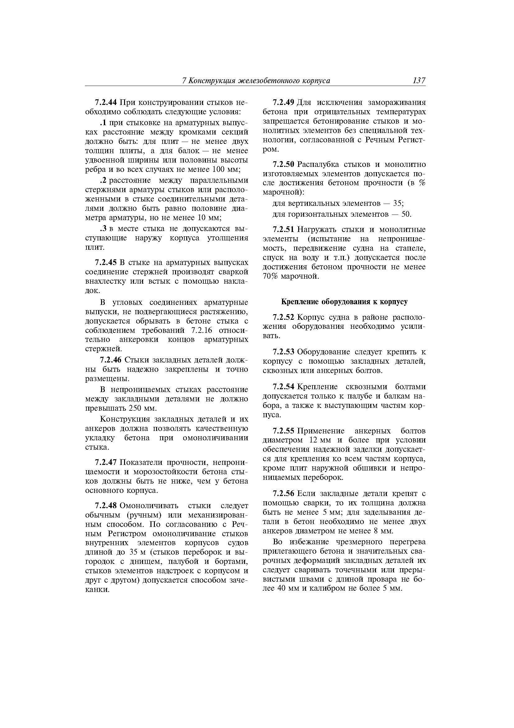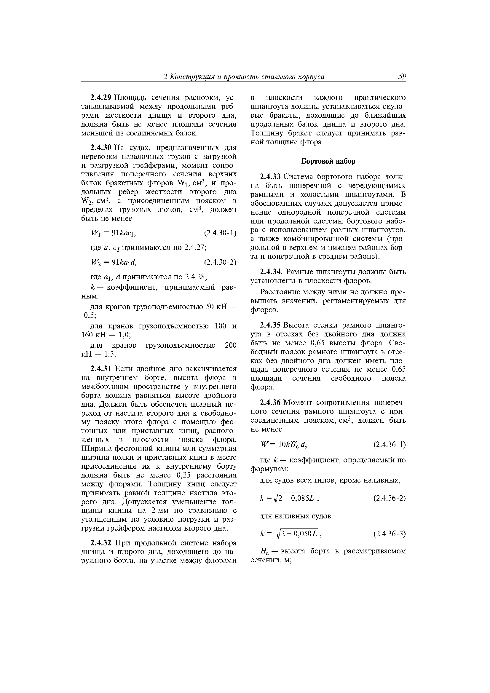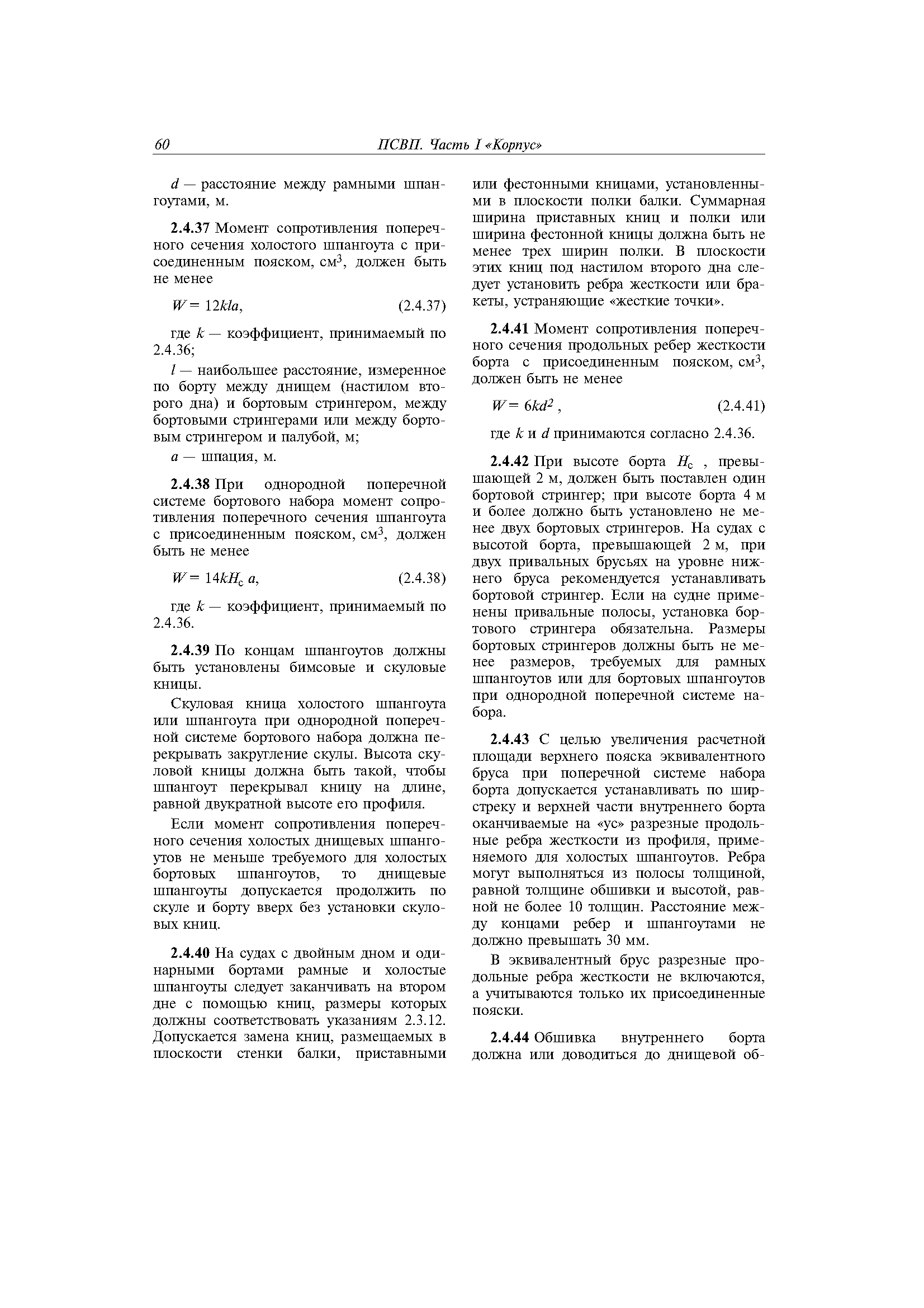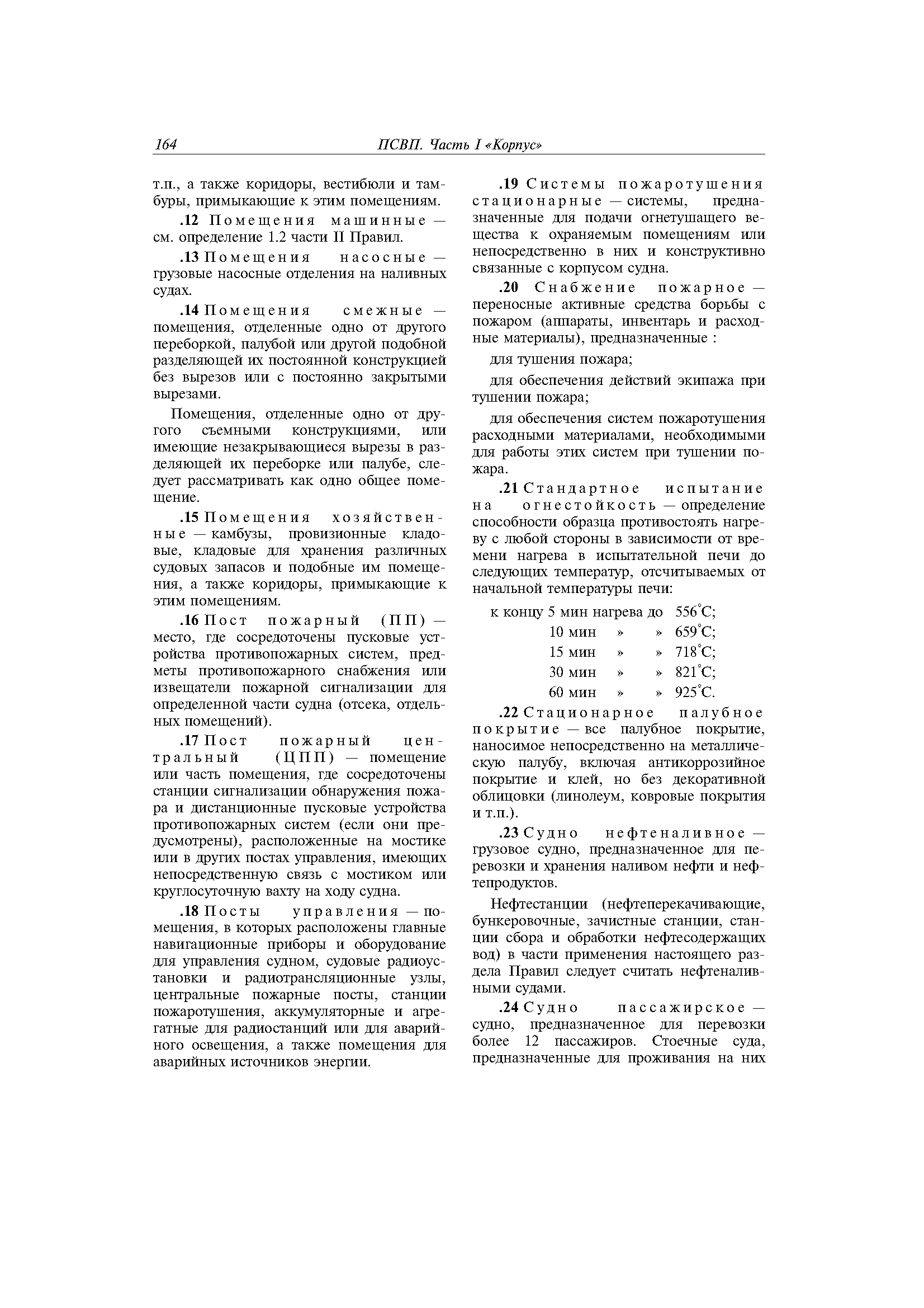 Часть I. Корпус (редакция 2002 года)| Статус: | действует | | Название рус.: | Часть I. Корпус (редакция 2002 года) | | Дата добавления в базу: | 01.09.2013 | | Дата актуализации: | 01.01.2021 | | Дата введения: | 31.03.2003 | | Область применения: | Документ распространяется на водоизмещающие однокорпусные суда и катамараны, суда на подводных крыльях и воздушной подушке и включает в себя требования к конструкции корпуса, прочности, остойчивости, непотопляемости, надводному борту и грузовой марке, а также к конструктивной противопожарной защите, оборудованию помещений, защите экипажа и пассажиров. | | Оглавление: | 1 Общие положения 2 Конструкция и прочность стального корпуса 3 Конструкция корпуса водоизмещающих судов из легких сплавов 4 Конструкция корпуса катамарана 5 Конструкция корпуса судов на подводных крыльях 6 Конструкция корпуса судов на воздушной подушке 7 Конструкция железобетонного корпуса 8 Конструкция пластмассового корпуса 9 Конструктивная противопожарная защита 10 Оборудование помещений 11 Ограждения, поручни, переходные мостики, сходные трапы 12 Остойчивость 13 Непотопляемость 14 Надводный борт и грузовая марка Приложения | | Утверждён: | 11.11.2002 Министерство транспорта РФ (Russian Federation Ministry of Transport НС-137-р)