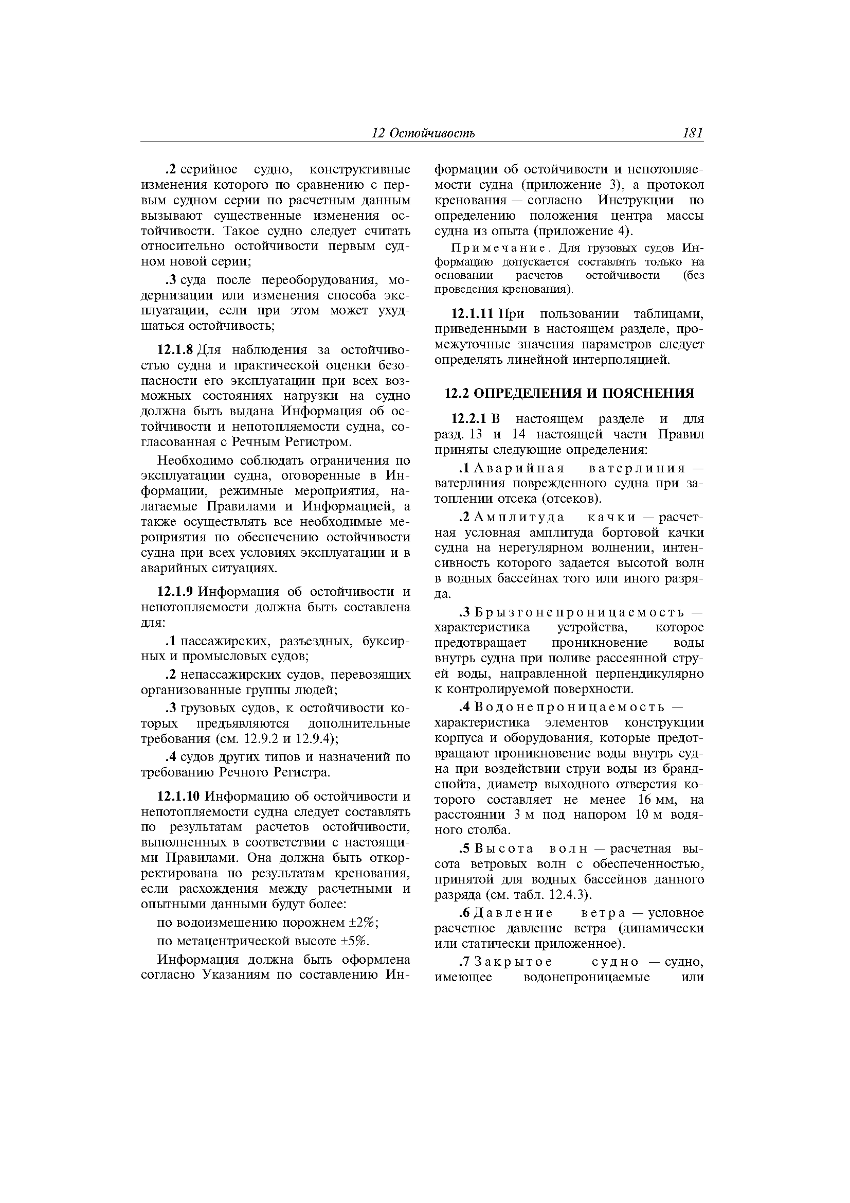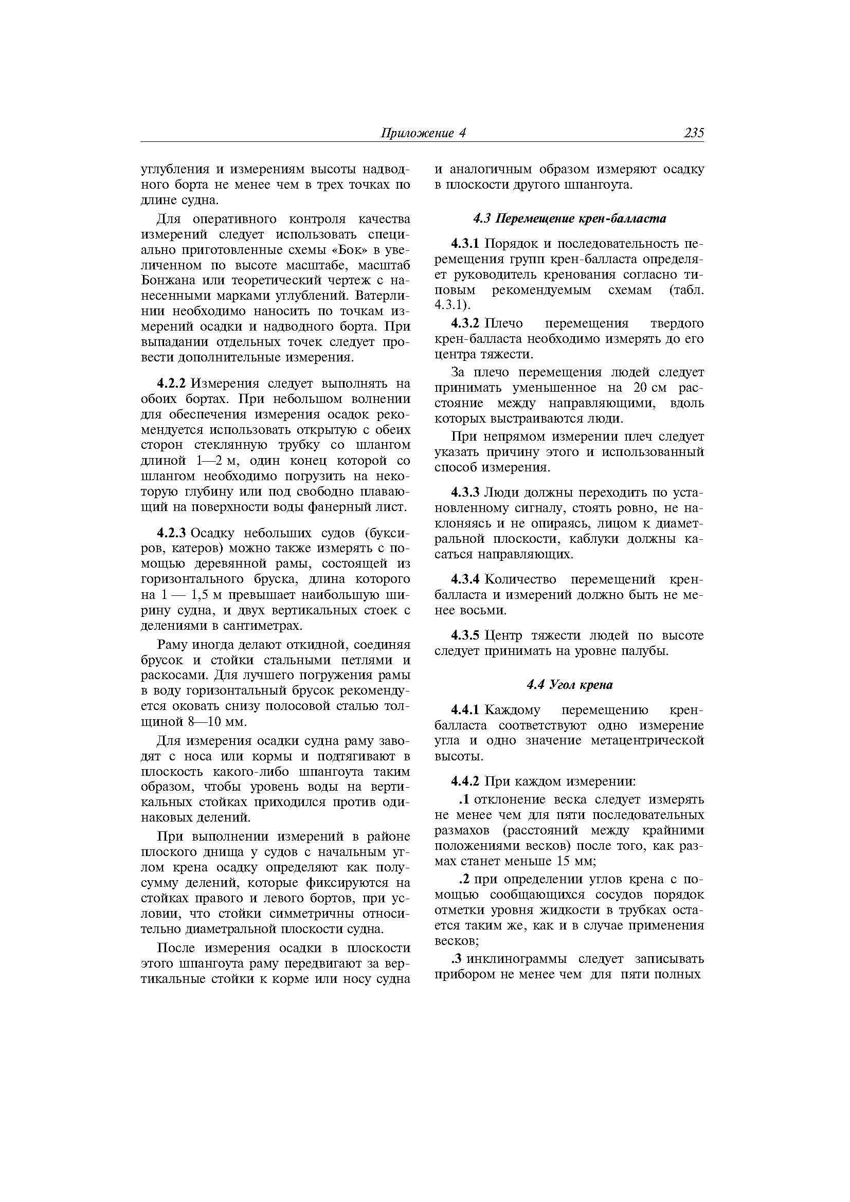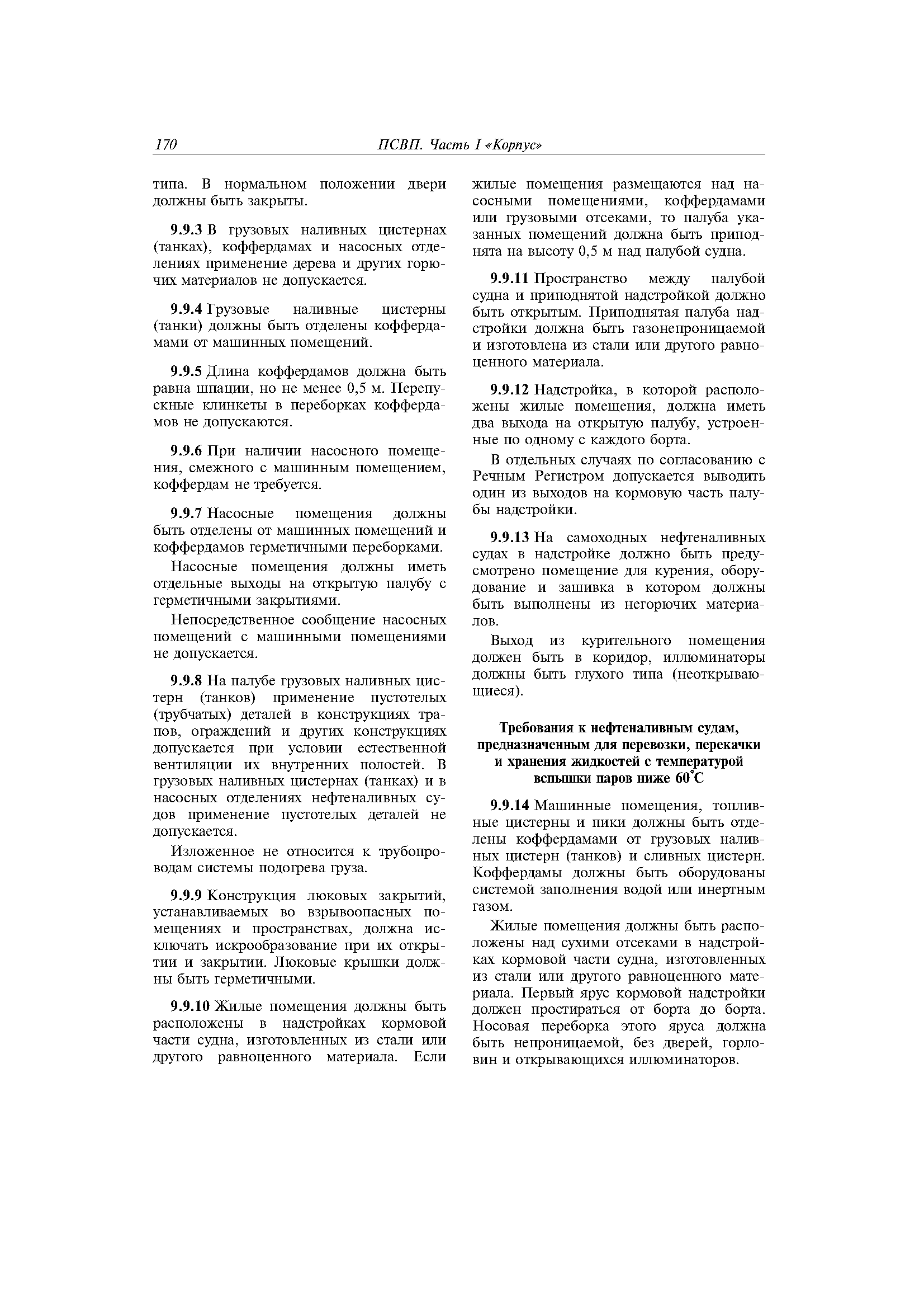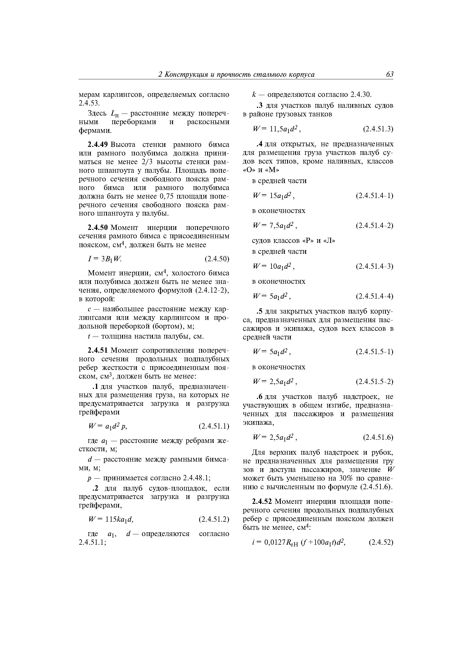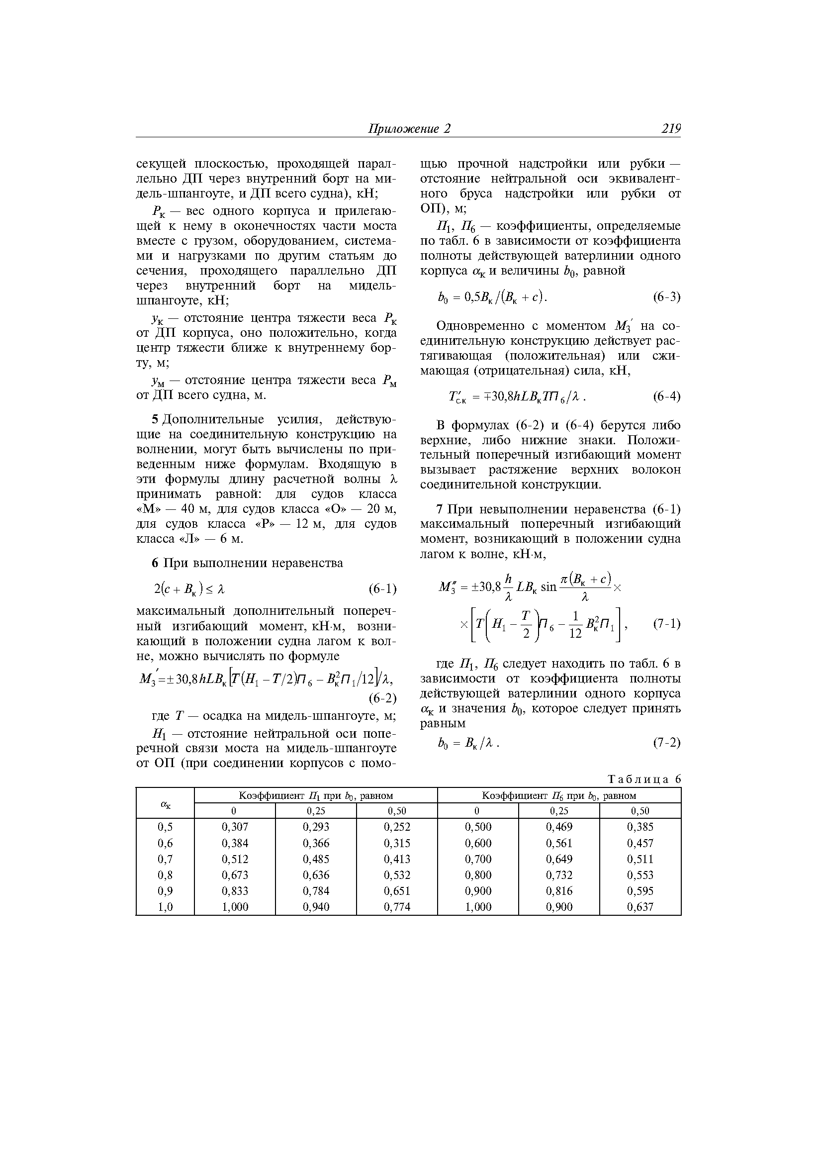 Часть I. Корпус (редакция 2002 года)| Статус: | действует | | Название рус.: | Часть I. Корпус (редакция 2002 года) | | Дата добавления в базу: | 01.09.2013 | | Дата актуализации: | 01.01.2021 | | Дата введения: | 31.03.2003 | | Область применения: | Документ распространяется на водоизмещающие однокорпусные суда и катамараны, суда на подводных крыльях и воздушной подушке и включает в себя требования к конструкции корпуса, прочности, остойчивости, непотопляемости, надводному борту и грузовой марке, а также к конструктивной противопожарной защите, оборудованию помещений, защите экипажа и пассажиров. | | Оглавление: | 1 Общие положения 2 Конструкция и прочность стального корпуса 3 Конструкция корпуса водоизмещающих судов из легких сплавов 4 Конструкция корпуса катамарана 5 Конструкция корпуса судов на подводных крыльях 6 Конструкция корпуса судов на воздушной подушке 7 Конструкция железобетонного корпуса 8 Конструкция пластмассового корпуса 9 Конструктивная противопожарная защита 10 Оборудование помещений 11 Ограждения, поручни, переходные мостики, сходные трапы 12 Остойчивость 13 Непотопляемость 14 Надводный борт и грузовая марка Приложения | | Утверждён: | 11.11.2002 Министерство транспорта РФ (Russian Federation Ministry of Transport НС-137-р)
