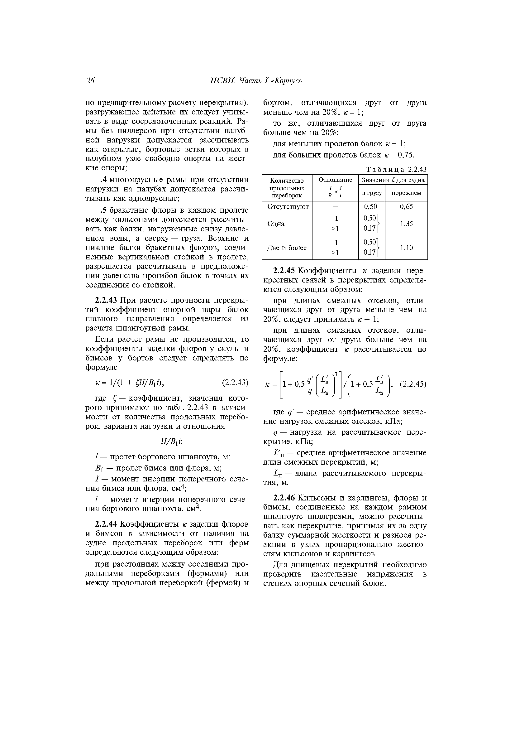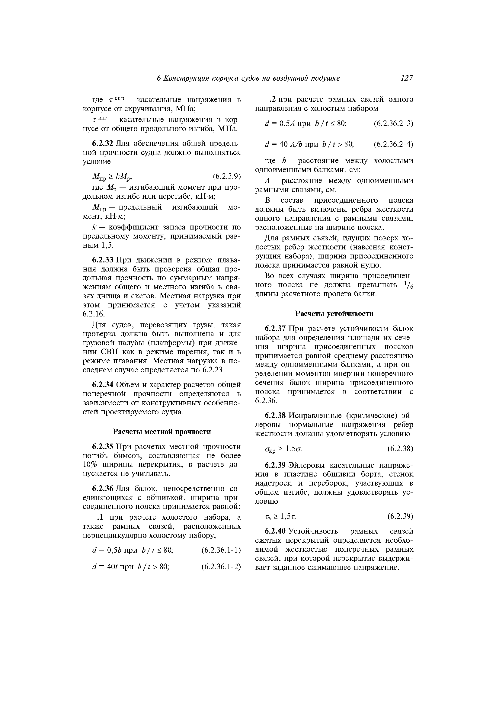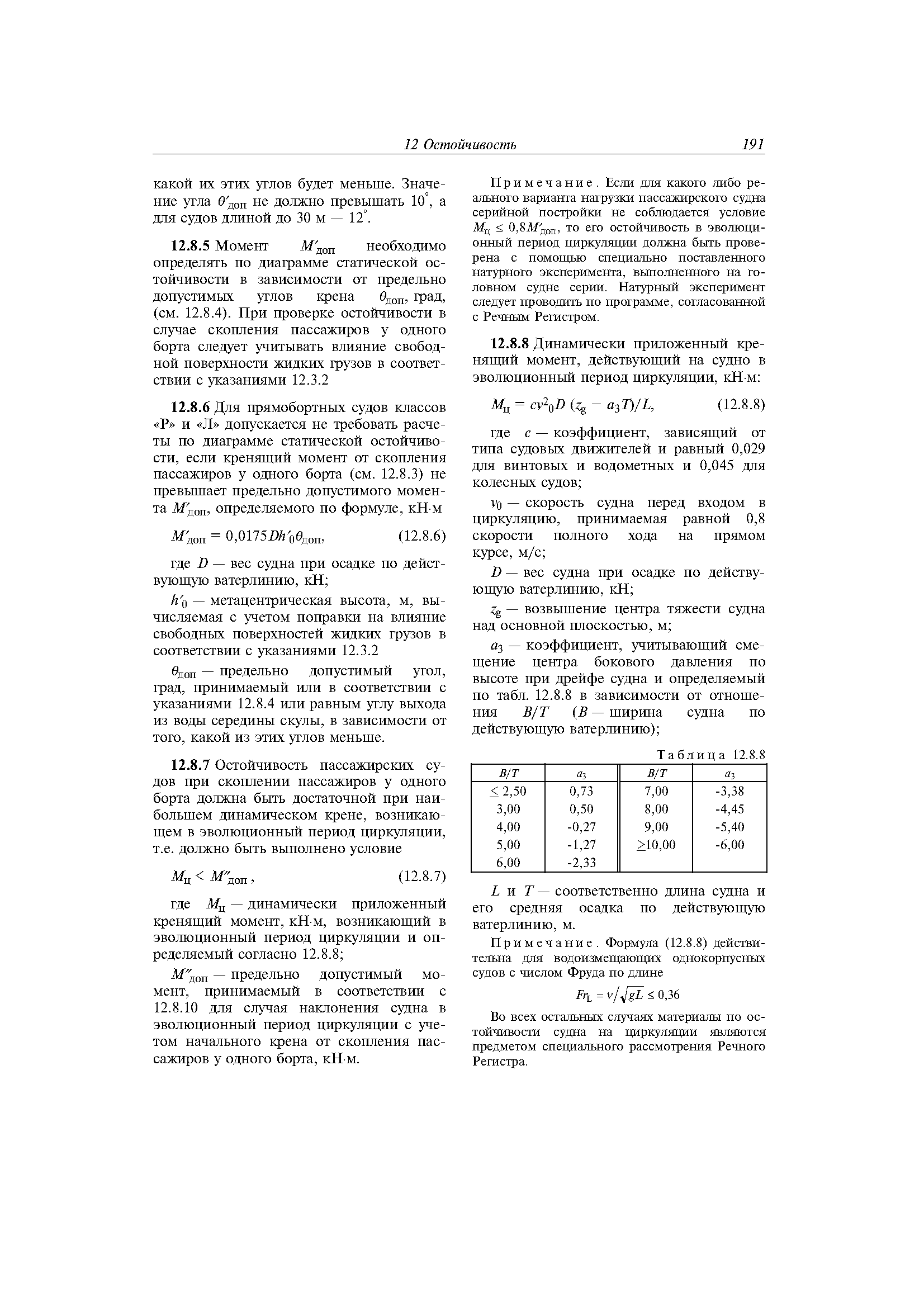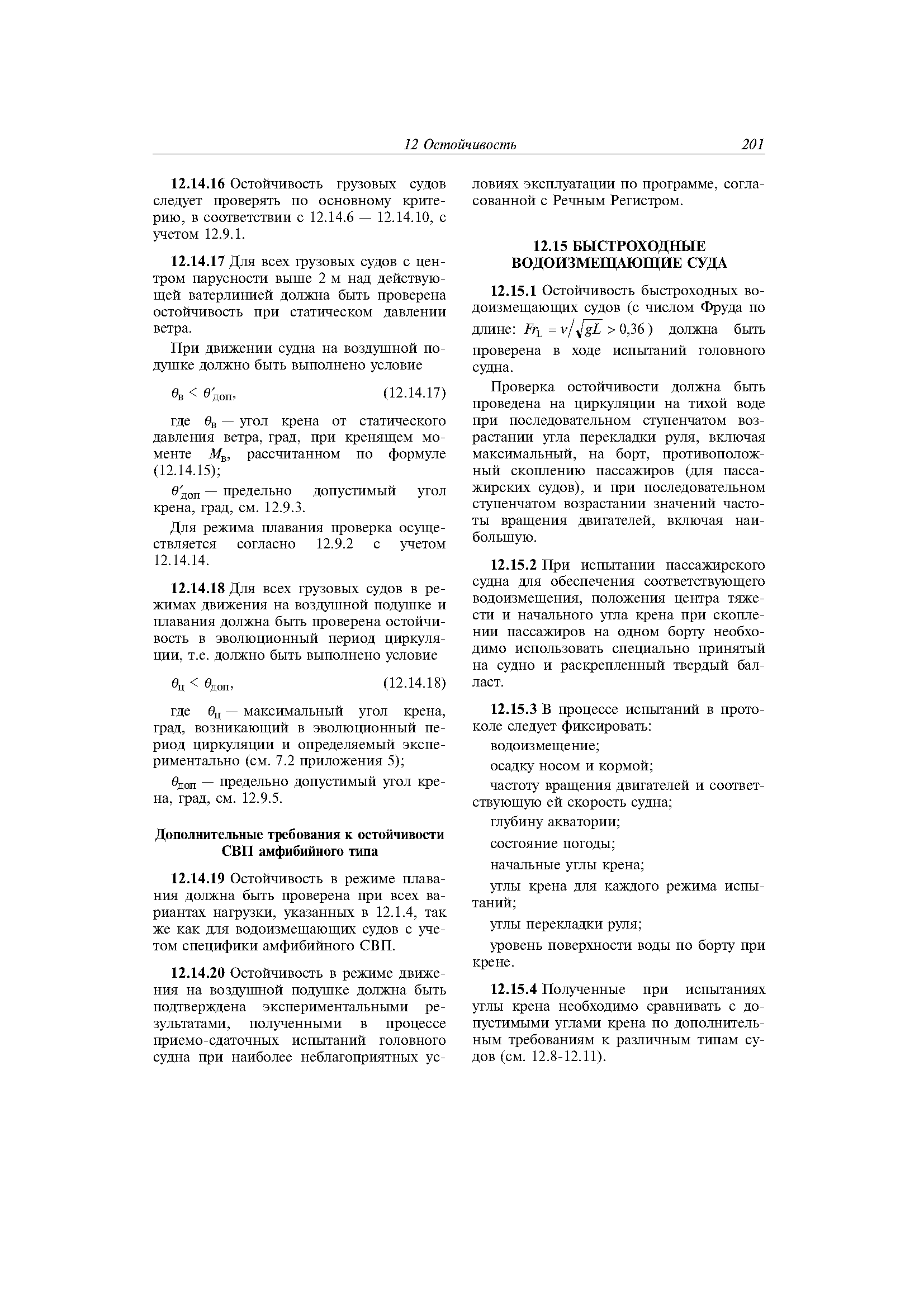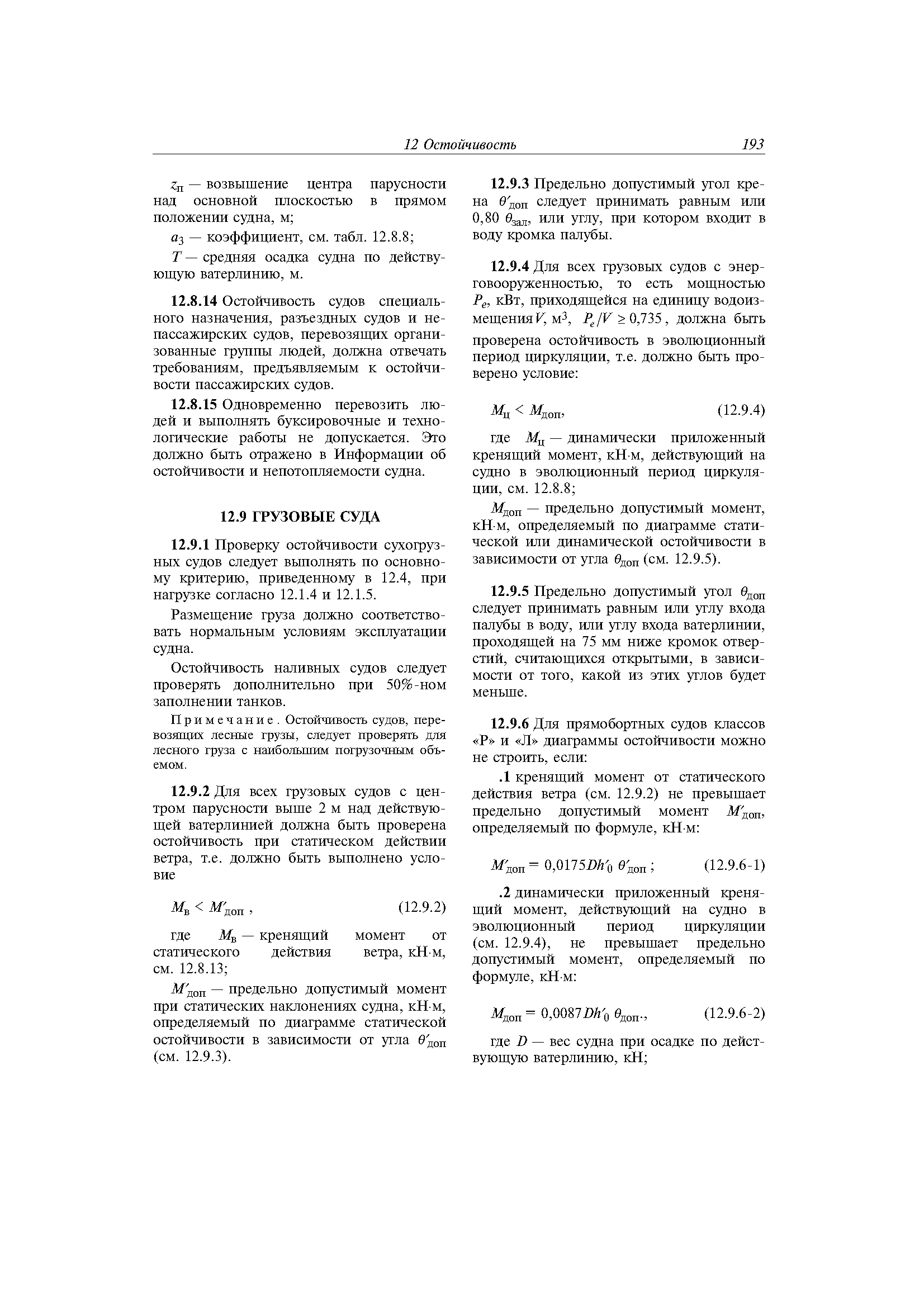 Часть I. Корпус (редакция 2002 года)| Статус: | действует | | Название рус.: | Часть I. Корпус (редакция 2002 года) | | Дата добавления в базу: | 01.09.2013 | | Дата актуализации: | 01.01.2021 | | Дата введения: | 31.03.2003 | | Область применения: | Документ распространяется на водоизмещающие однокорпусные суда и катамараны, суда на подводных крыльях и воздушной подушке и включает в себя требования к конструкции корпуса, прочности, остойчивости, непотопляемости, надводному борту и грузовой марке, а также к конструктивной противопожарной защите, оборудованию помещений, защите экипажа и пассажиров. | | Оглавление: | 1 Общие положения 2 Конструкция и прочность стального корпуса 3 Конструкция корпуса водоизмещающих судов из легких сплавов 4 Конструкция корпуса катамарана 5 Конструкция корпуса судов на подводных крыльях 6 Конструкция корпуса судов на воздушной подушке 7 Конструкция железобетонного корпуса 8 Конструкция пластмассового корпуса 9 Конструктивная противопожарная защита 10 Оборудование помещений 11 Ограждения, поручни, переходные мостики, сходные трапы 12 Остойчивость 13 Непотопляемость 14 Надводный борт и грузовая марка Приложения | | Утверждён: | 11.11.2002 Министерство транспорта РФ (Russian Federation Ministry of Transport НС-137-р)