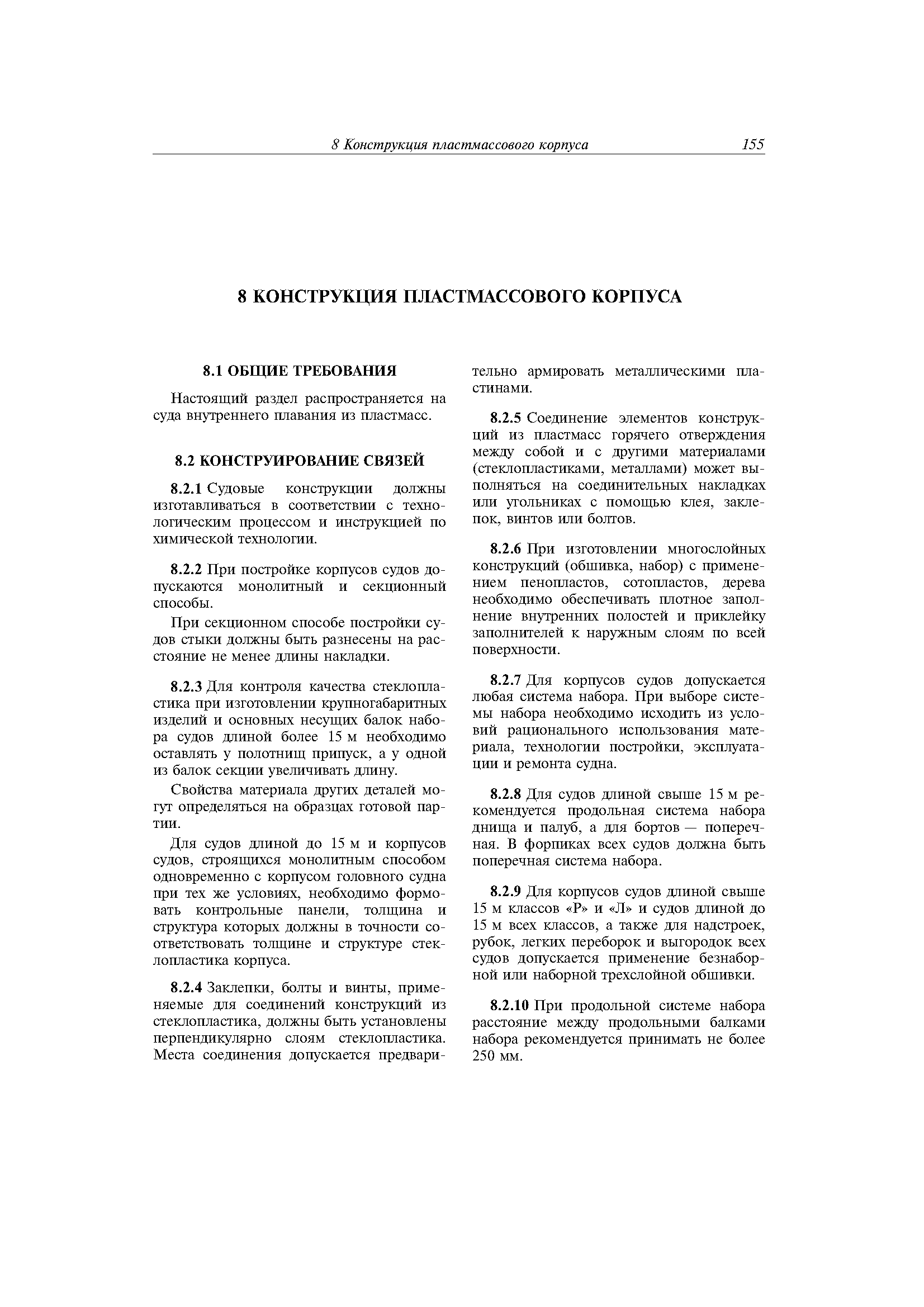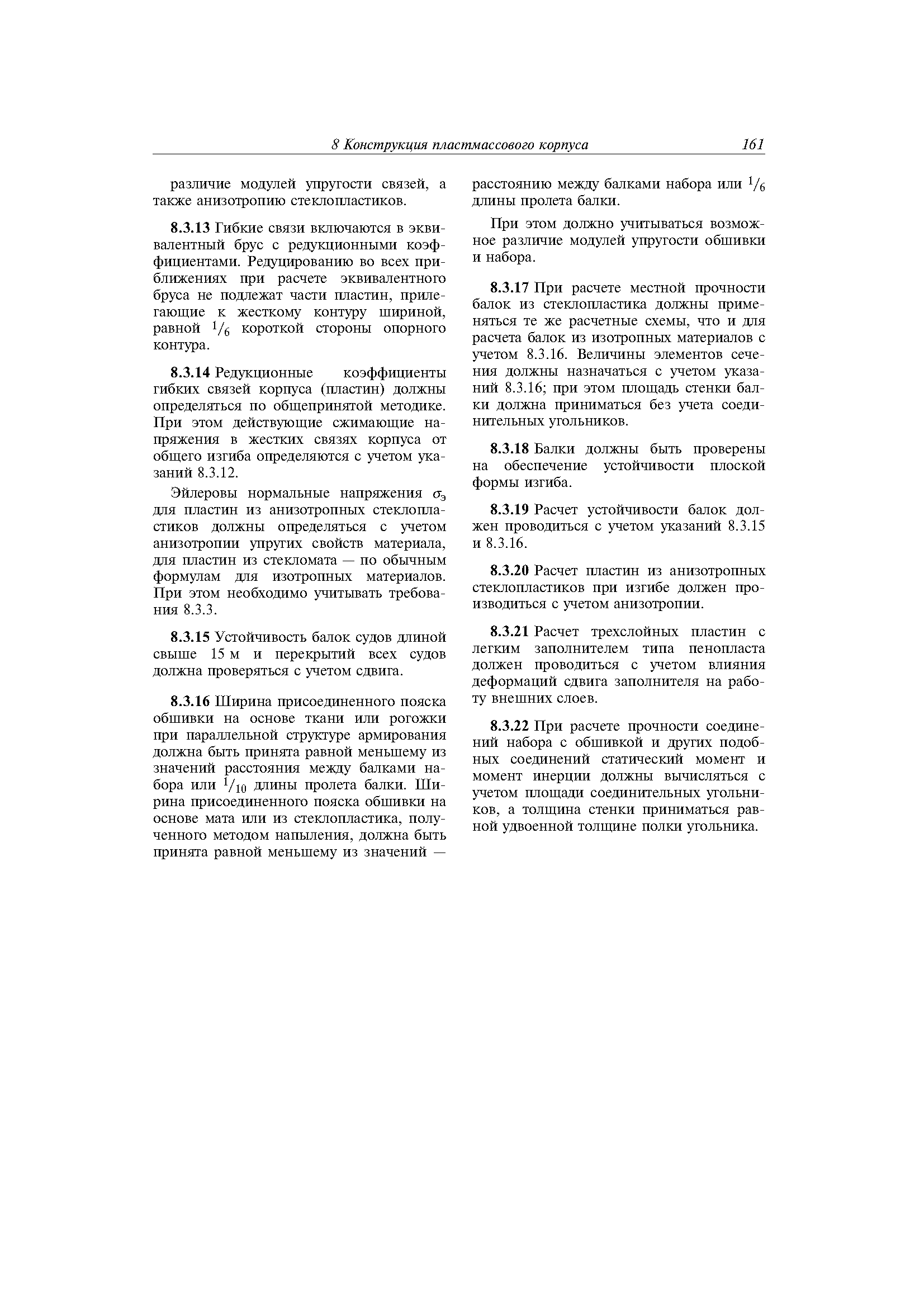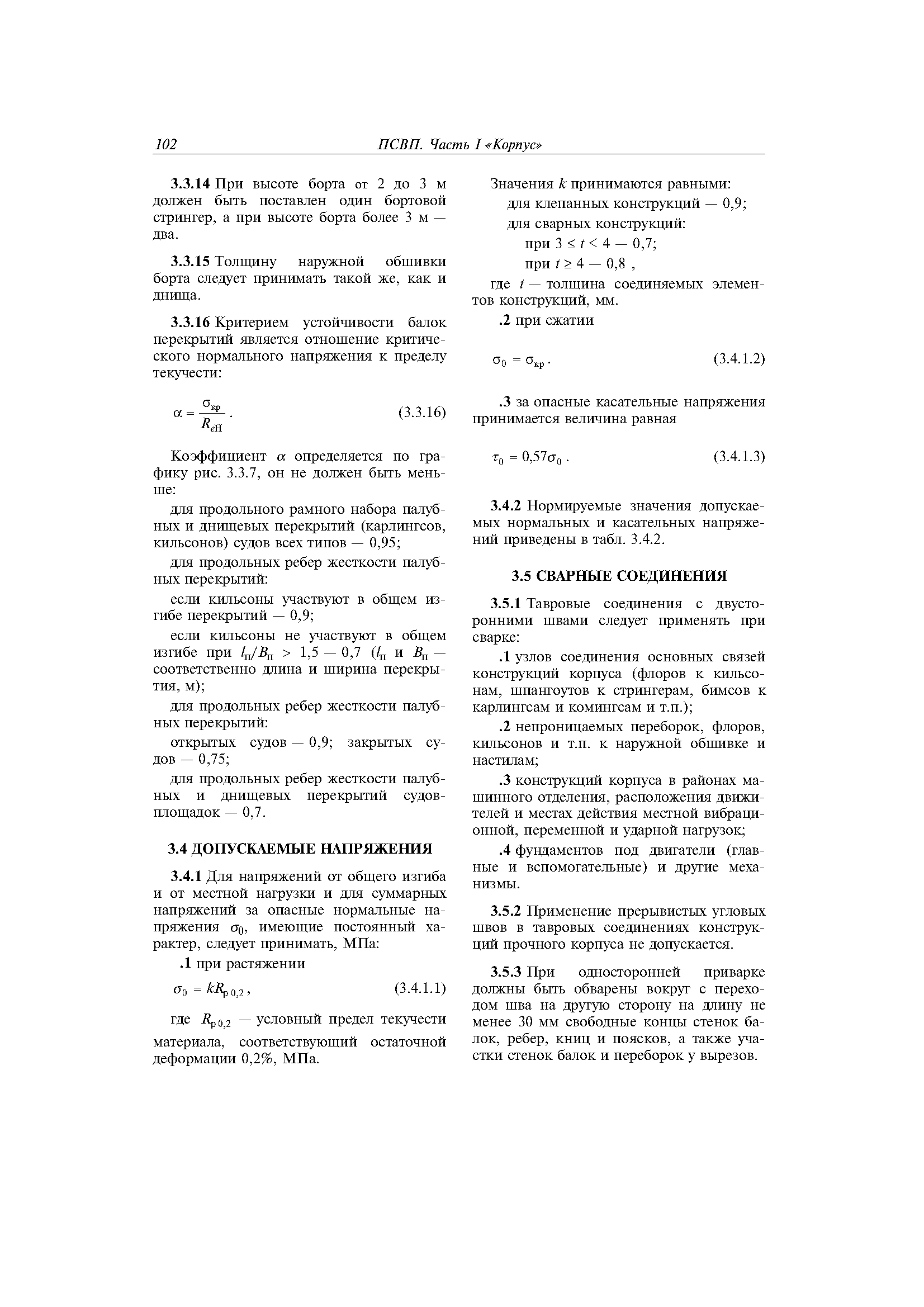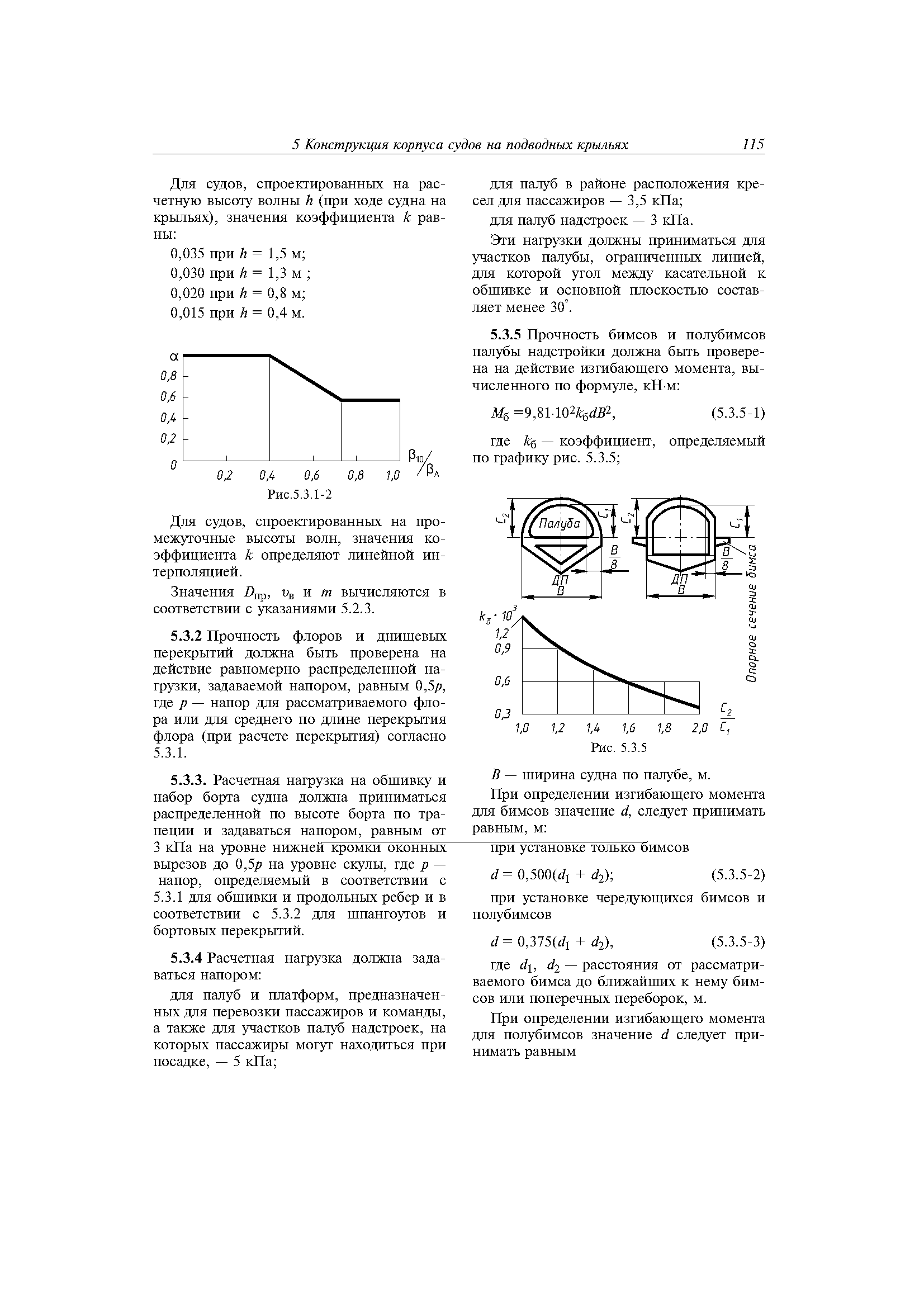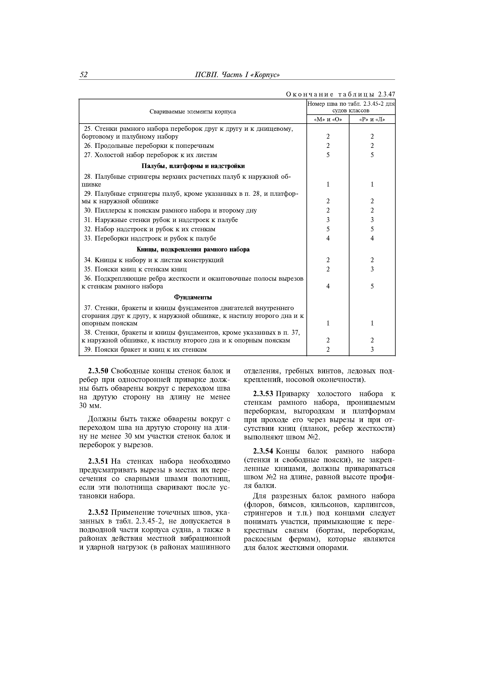 Часть I. Корпус (редакция 2002 года)| Статус: | действует | | Название рус.: | Часть I. Корпус (редакция 2002 года) | | Дата добавления в базу: | 01.09.2013 | | Дата актуализации: | 01.01.2021 | | Дата введения: | 31.03.2003 | | Область применения: | Документ распространяется на водоизмещающие однокорпусные суда и катамараны, суда на подводных крыльях и воздушной подушке и включает в себя требования к конструкции корпуса, прочности, остойчивости, непотопляемости, надводному борту и грузовой марке, а также к конструктивной противопожарной защите, оборудованию помещений, защите экипажа и пассажиров. | | Оглавление: | 1 Общие положения 2 Конструкция и прочность стального корпуса 3 Конструкция корпуса водоизмещающих судов из легких сплавов 4 Конструкция корпуса катамарана 5 Конструкция корпуса судов на подводных крыльях 6 Конструкция корпуса судов на воздушной подушке 7 Конструкция железобетонного корпуса 8 Конструкция пластмассового корпуса 9 Конструктивная противопожарная защита 10 Оборудование помещений 11 Ограждения, поручни, переходные мостики, сходные трапы 12 Остойчивость 13 Непотопляемость 14 Надводный борт и грузовая марка Приложения | | Утверждён: | 11.11.2002 Министерство транспорта РФ (Russian Federation Ministry of Transport НС-137-р)