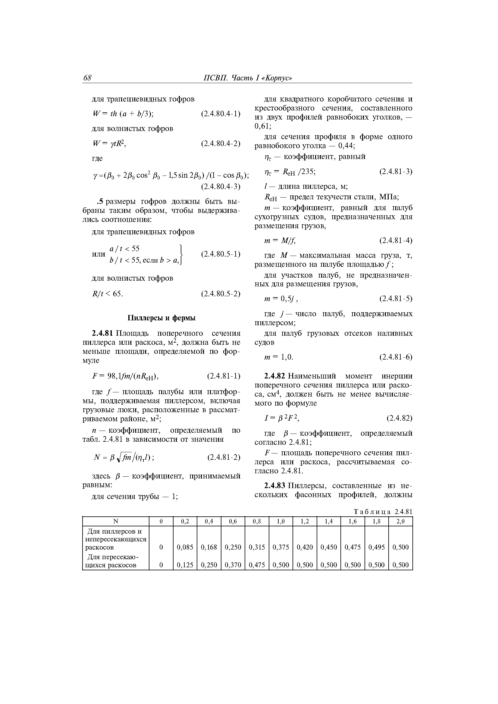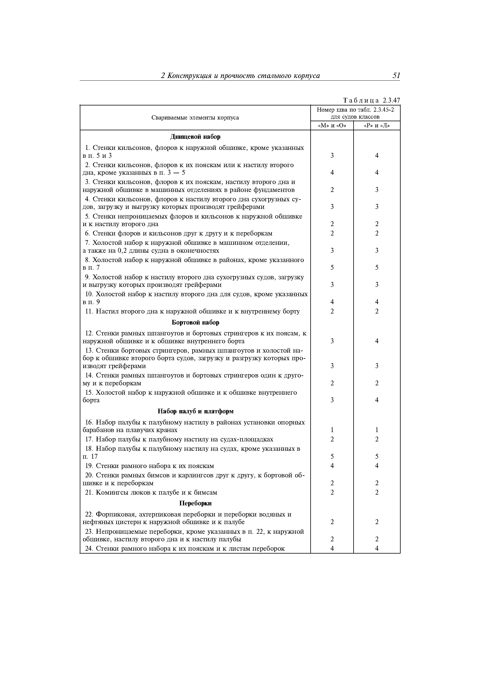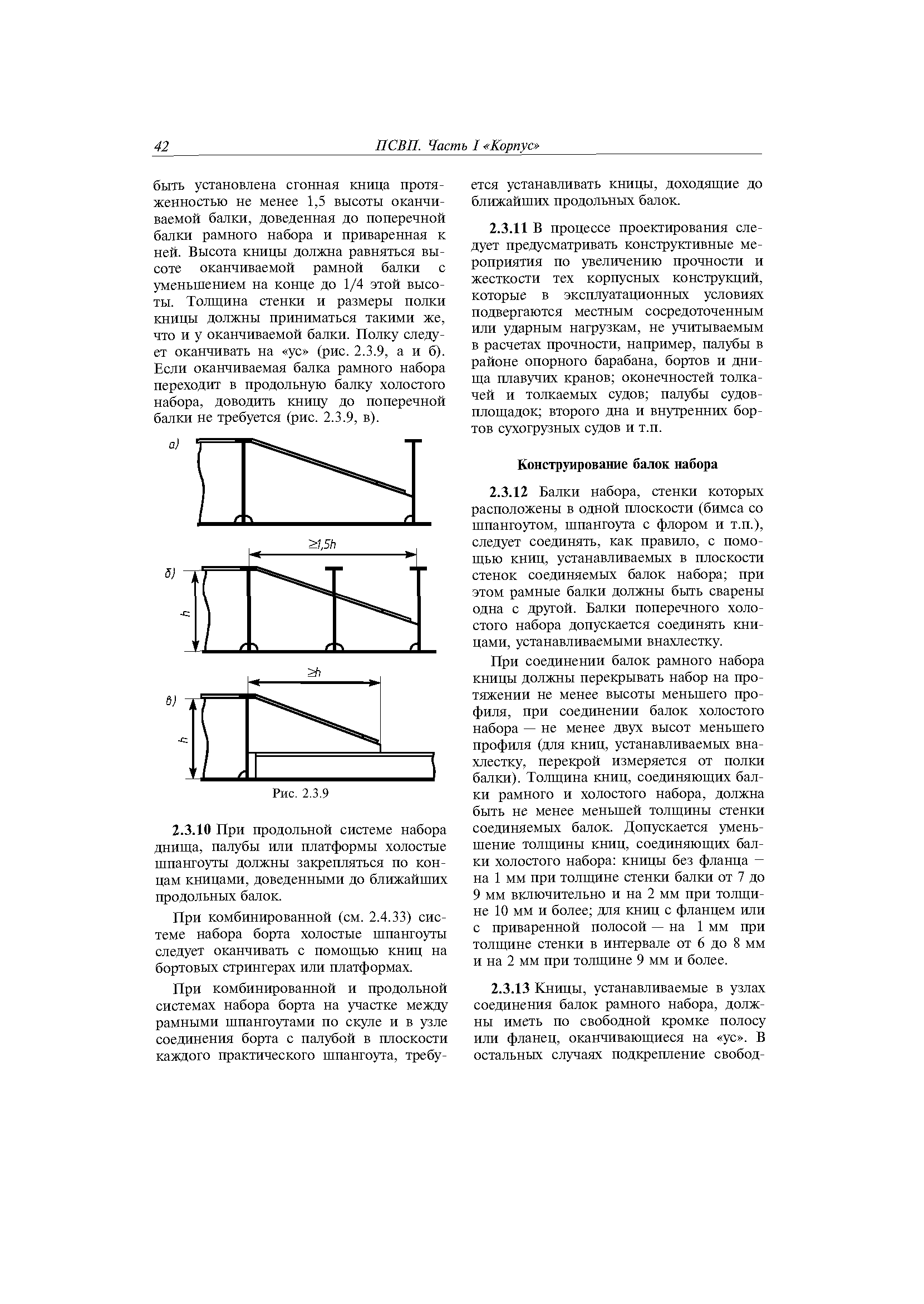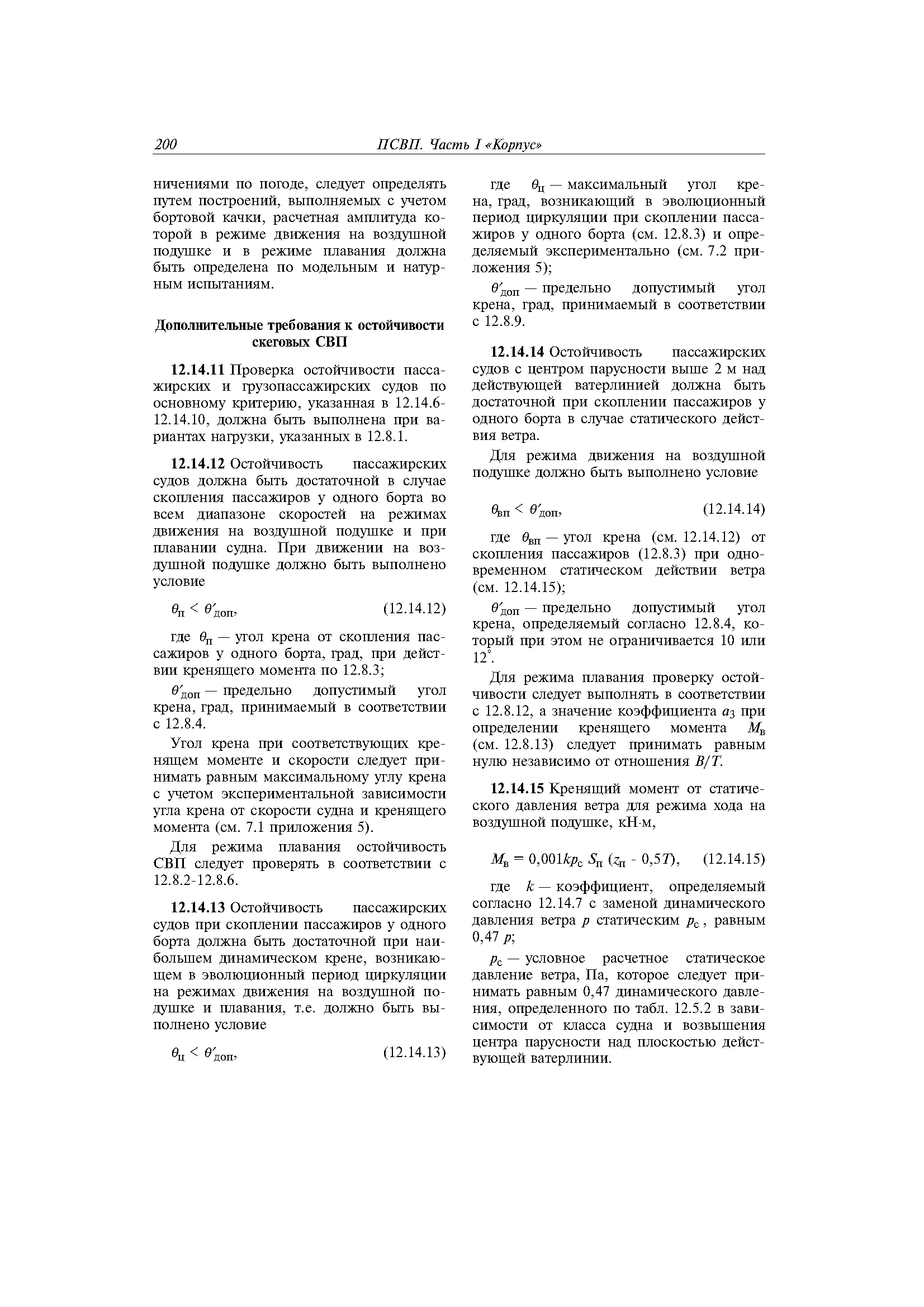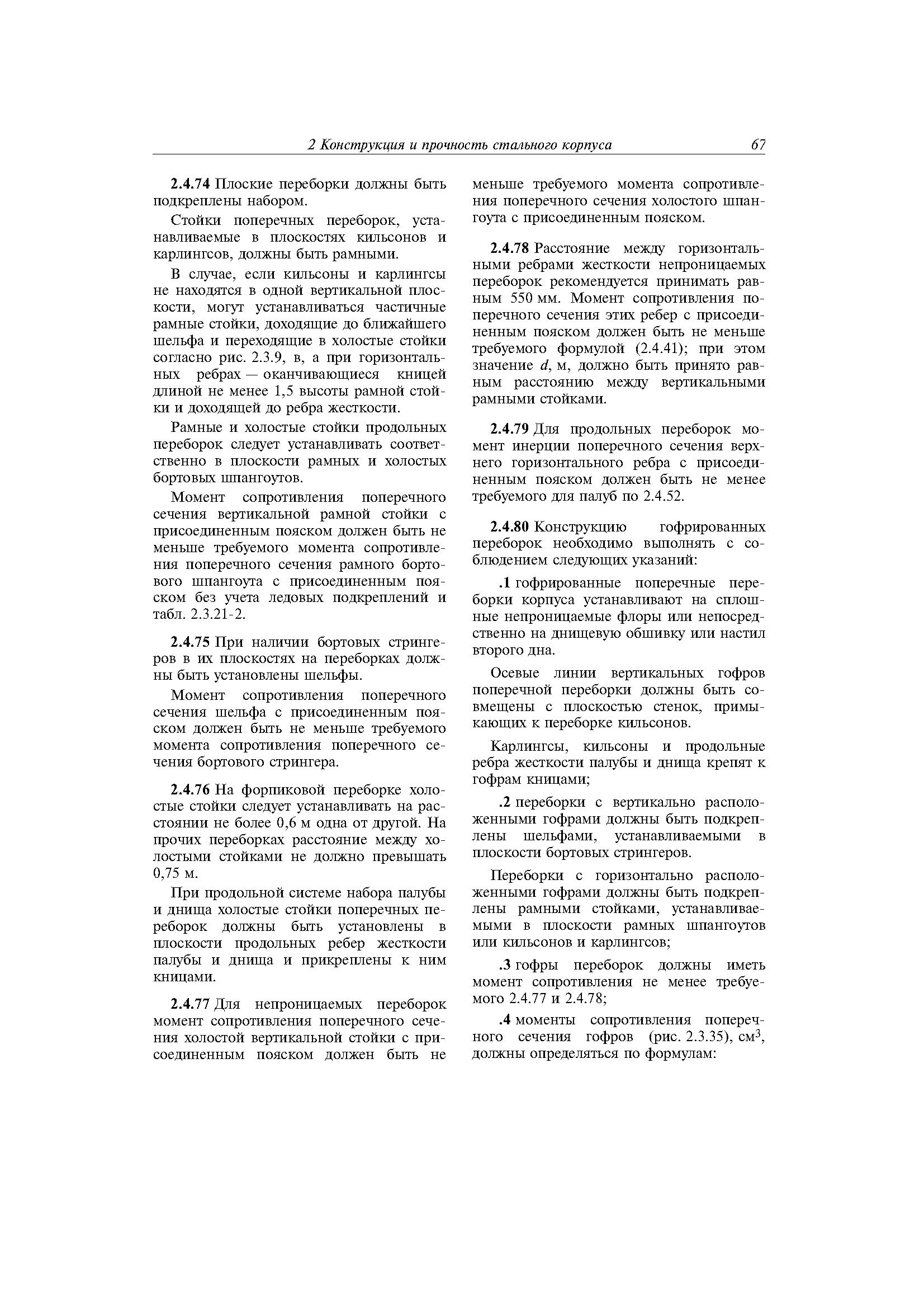 Часть I. Корпус (редакция 2002 года)| Статус: | действует | | Название рус.: | Часть I. Корпус (редакция 2002 года) | | Дата добавления в базу: | 01.09.2013 | | Дата актуализации: | 01.01.2021 | | Дата введения: | 31.03.2003 | | Область применения: | Документ распространяется на водоизмещающие однокорпусные суда и катамараны, суда на подводных крыльях и воздушной подушке и включает в себя требования к конструкции корпуса, прочности, остойчивости, непотопляемости, надводному борту и грузовой марке, а также к конструктивной противопожарной защите, оборудованию помещений, защите экипажа и пассажиров. | | Оглавление: | 1 Общие положения 2 Конструкция и прочность стального корпуса 3 Конструкция корпуса водоизмещающих судов из легких сплавов 4 Конструкция корпуса катамарана 5 Конструкция корпуса судов на подводных крыльях 6 Конструкция корпуса судов на воздушной подушке 7 Конструкция железобетонного корпуса 8 Конструкция пластмассового корпуса 9 Конструктивная противопожарная защита 10 Оборудование помещений 11 Ограждения, поручни, переходные мостики, сходные трапы 12 Остойчивость 13 Непотопляемость 14 Надводный борт и грузовая марка Приложения | | Утверждён: | 11.11.2002 Министерство транспорта РФ (Russian Federation Ministry of Transport НС-137-р)