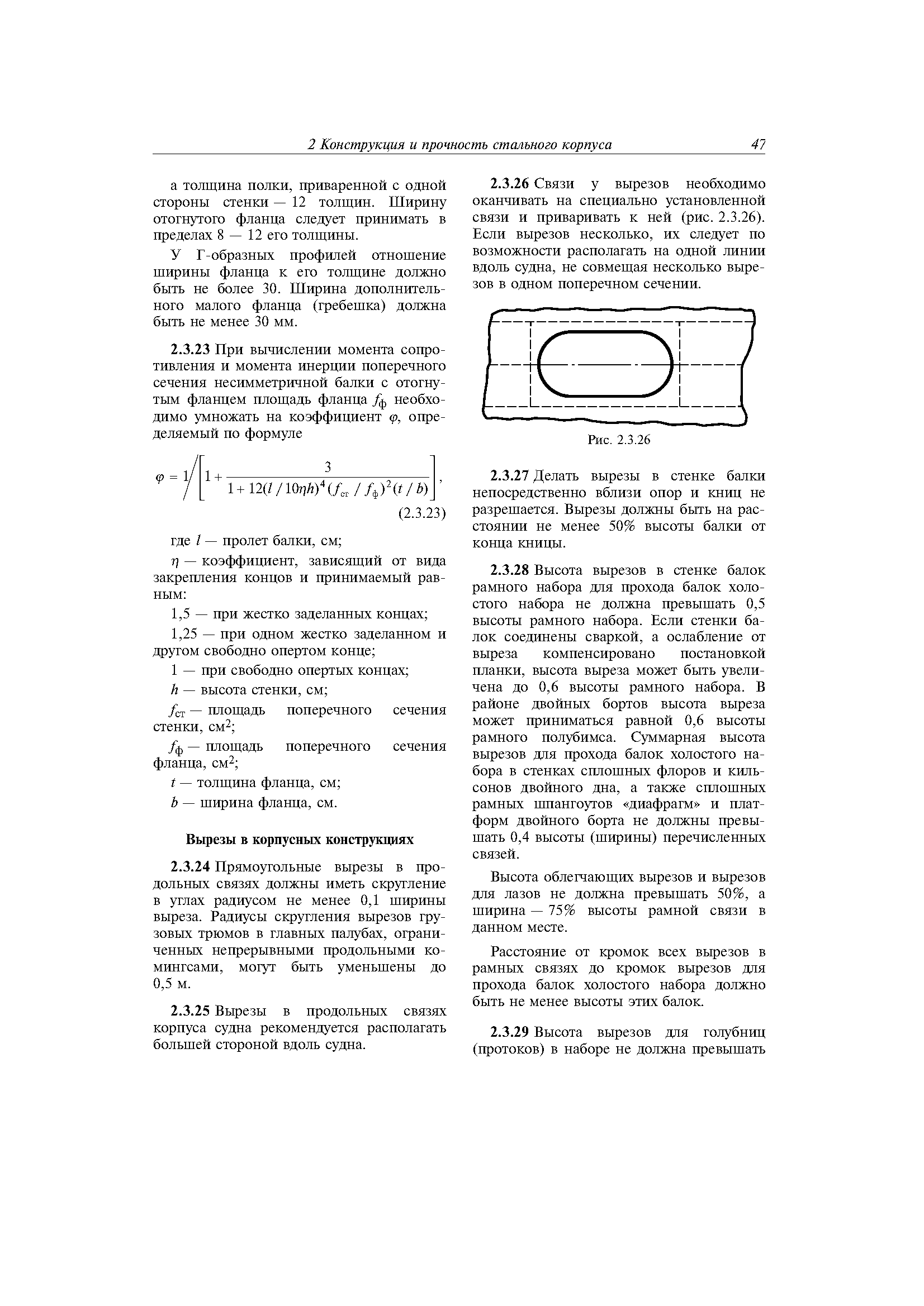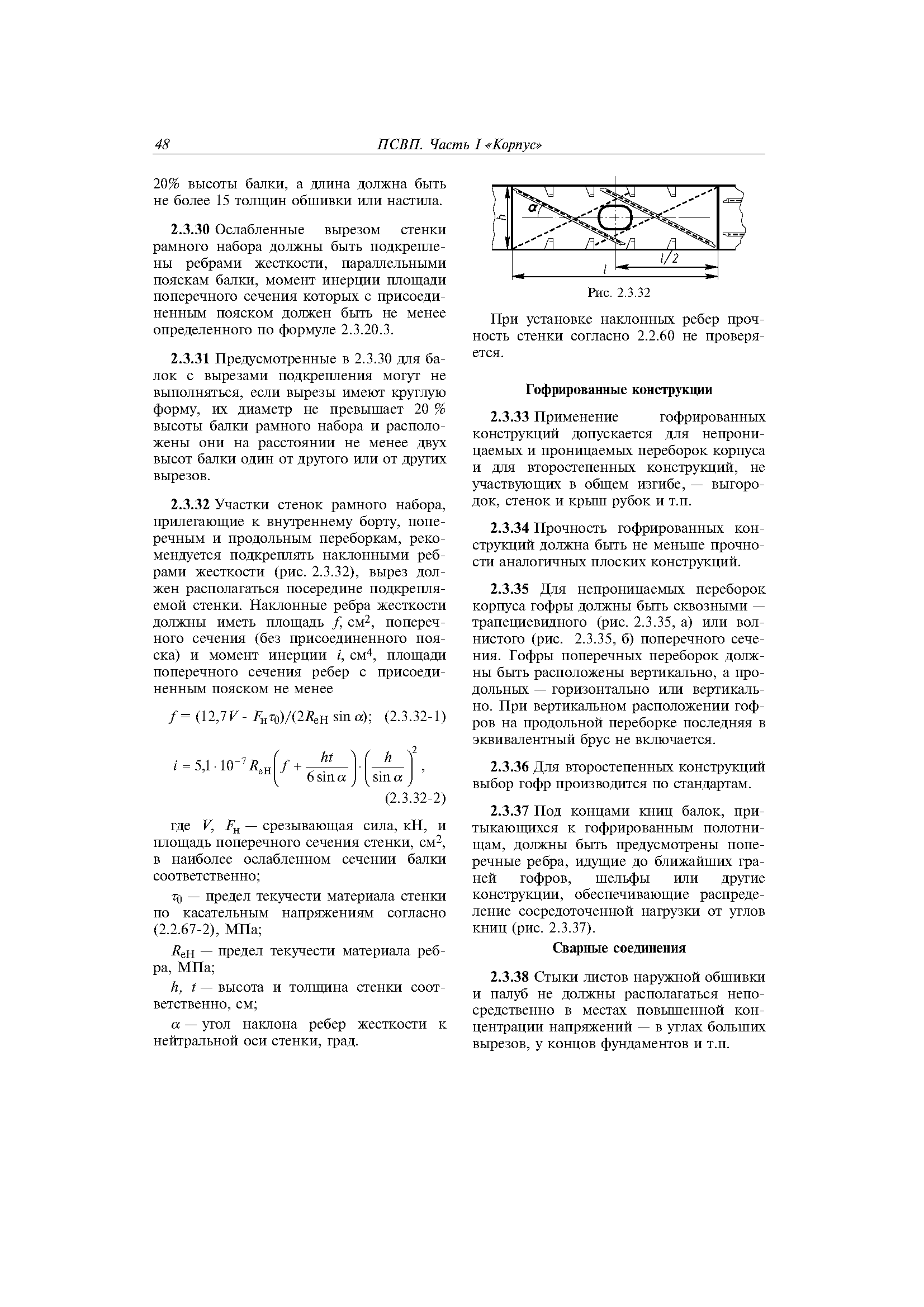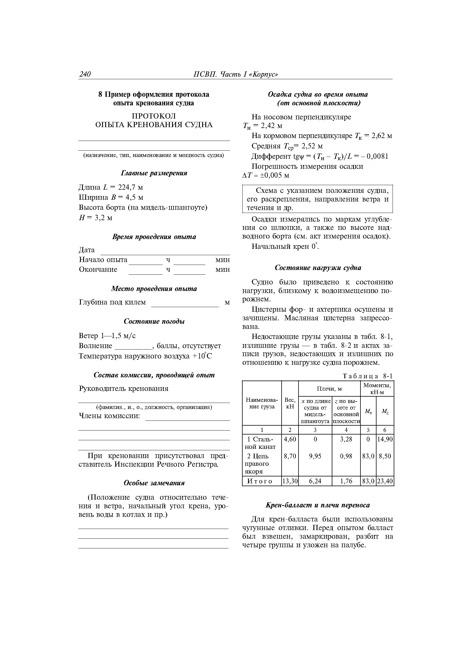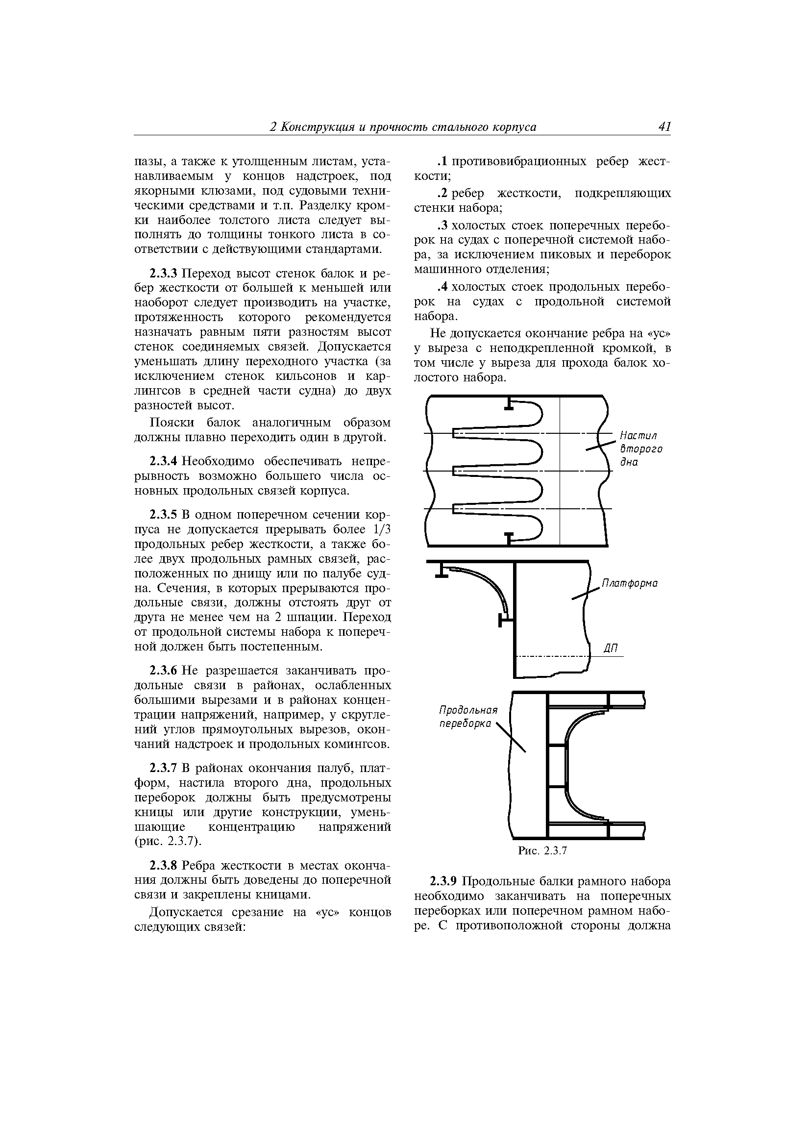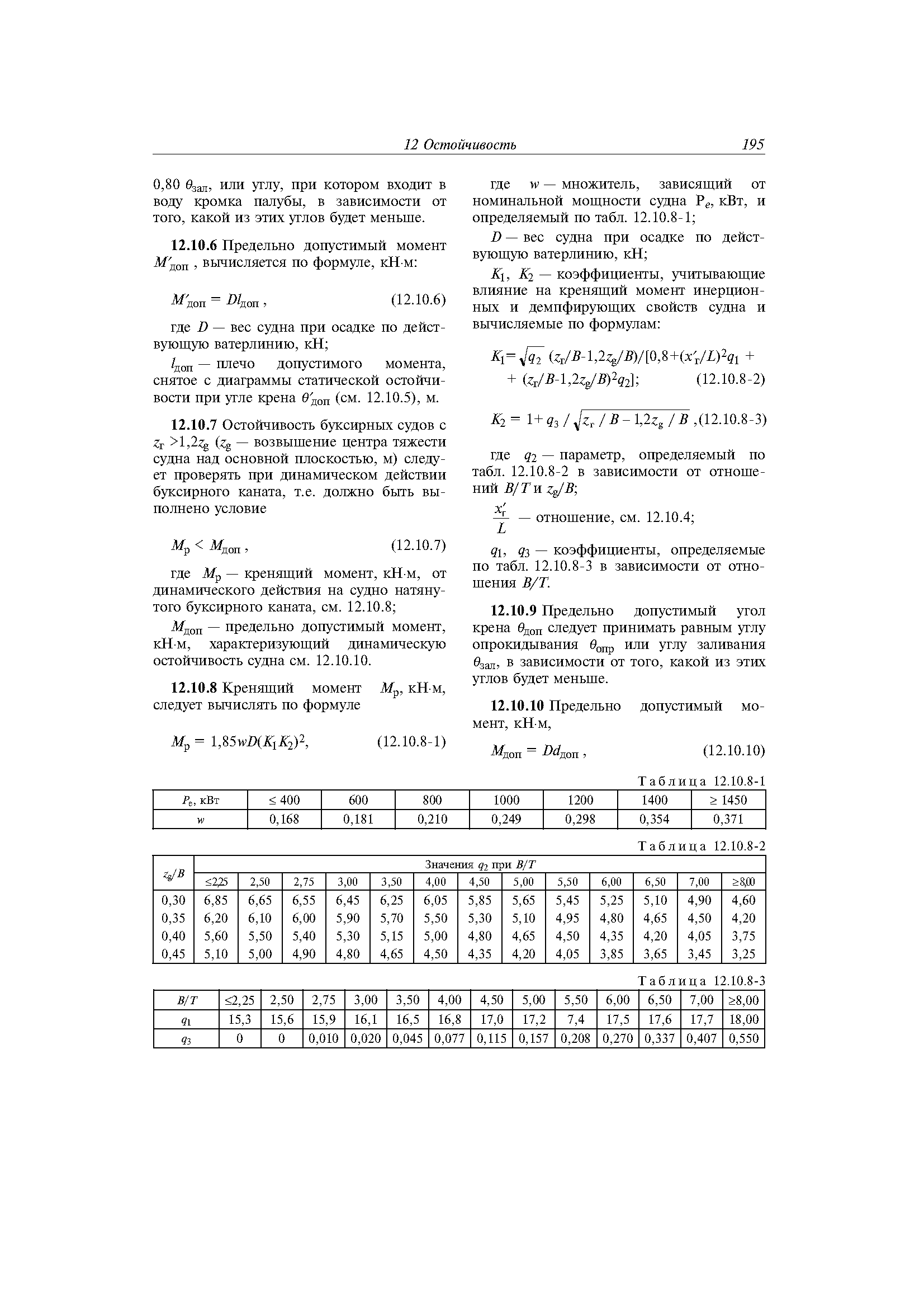Часть I. Корпус (редакция 2002 года)| Статус: | действует | | Название рус.: | Часть I. Корпус (редакция 2002 года) | | Дата добавления в базу: | 01.09.2013 | | Дата актуализации: | 01.01.2021 | | Дата введения: | 31.03.2003 | | Область применения: | Документ распространяется на водоизмещающие однокорпусные суда и катамараны, суда на подводных крыльях и воздушной подушке и включает в себя требования к конструкции корпуса, прочности, остойчивости, непотопляемости, надводному борту и грузовой марке, а также к конструктивной противопожарной защите, оборудованию помещений, защите экипажа и пассажиров. | | Оглавление: | 1 Общие положения 2 Конструкция и прочность стального корпуса 3 Конструкция корпуса водоизмещающих судов из легких сплавов 4 Конструкция корпуса катамарана 5 Конструкция корпуса судов на подводных крыльях 6 Конструкция корпуса судов на воздушной подушке 7 Конструкция железобетонного корпуса 8 Конструкция пластмассового корпуса 9 Конструктивная противопожарная защита 10 Оборудование помещений 11 Ограждения, поручни, переходные мостики, сходные трапы 12 Остойчивость 13 Непотопляемость 14 Надводный борт и грузовая марка Приложения | | Утверждён: | 11.11.2002 Министерство транспорта РФ (Russian Federation Ministry of Transport НС-137-р)