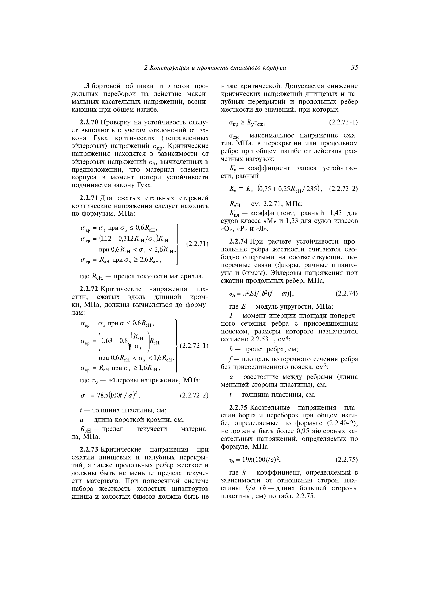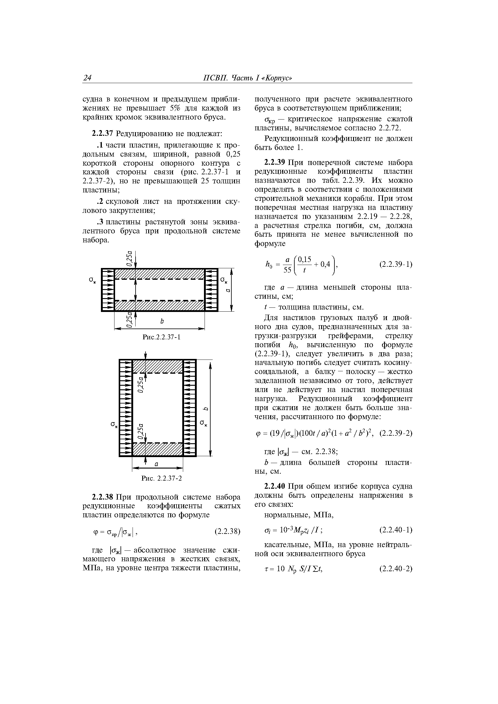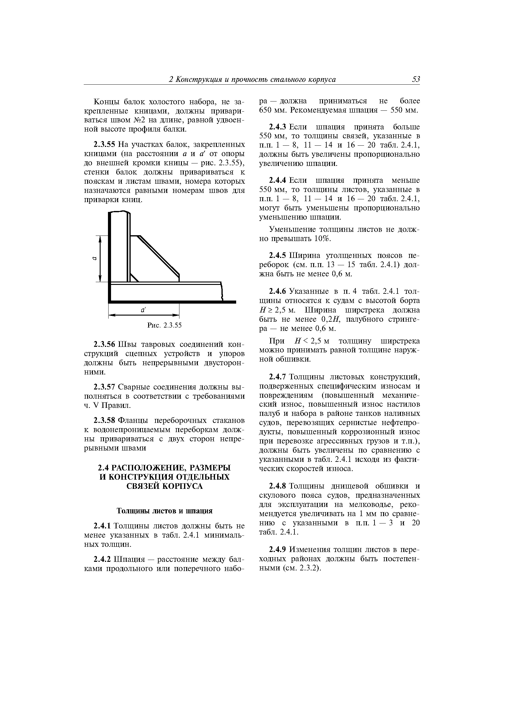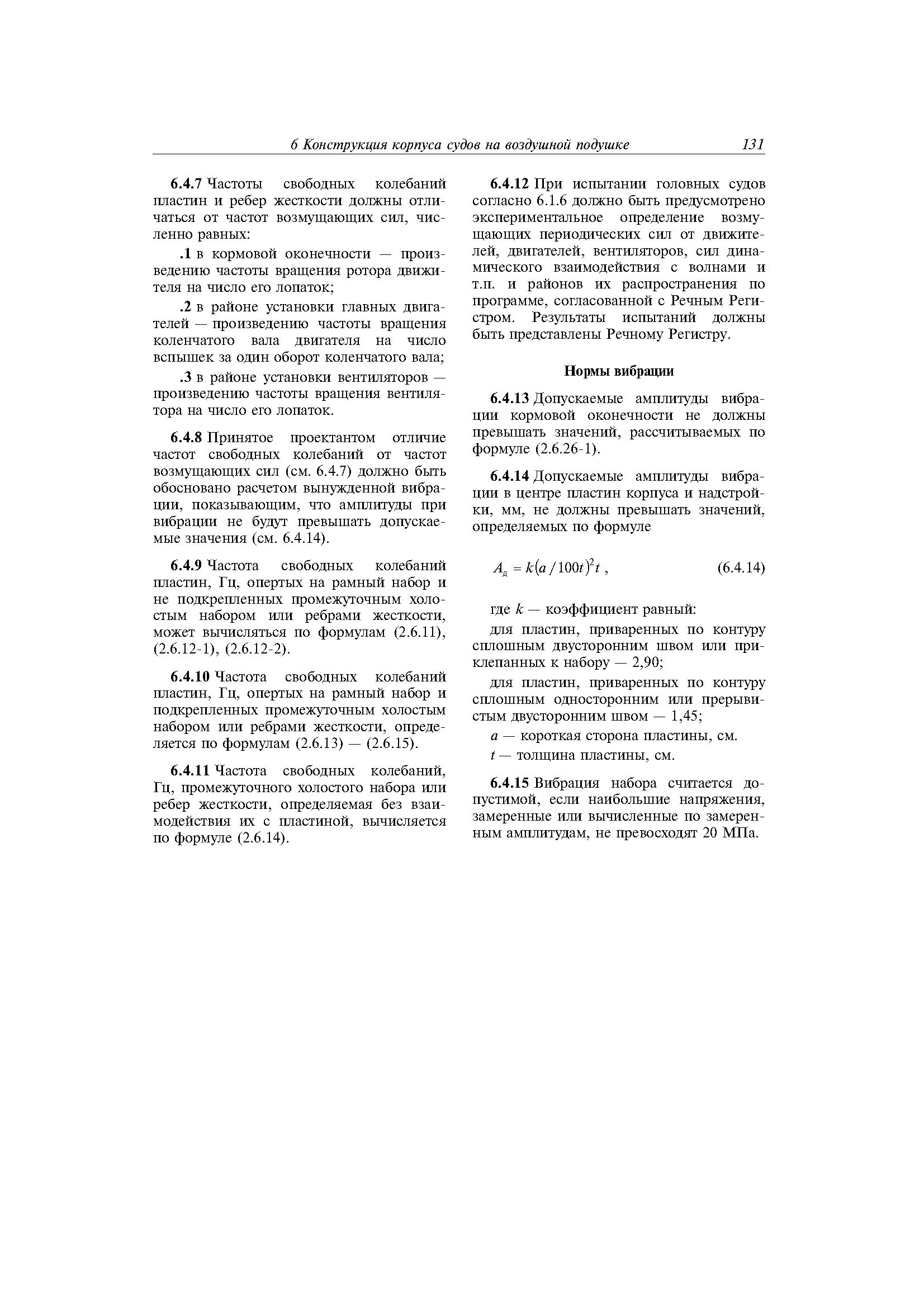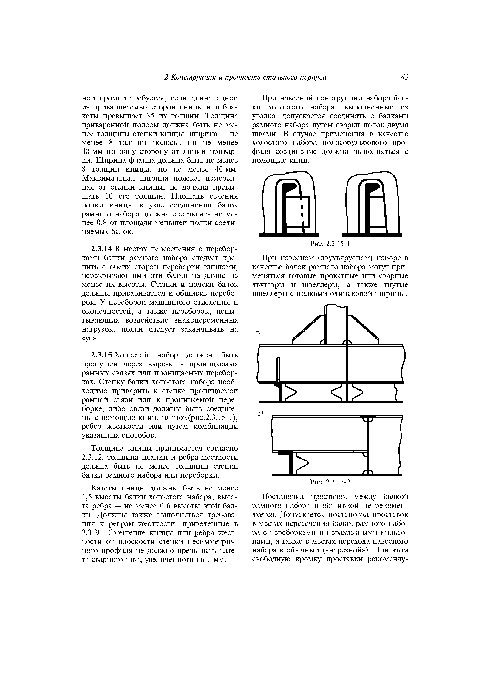 Часть I. Корпус (редакция 2002 года)| Статус: | действует | | Название рус.: | Часть I. Корпус (редакция 2002 года) | | Дата добавления в базу: | 01.09.2013 | | Дата актуализации: | 01.01.2021 | | Дата введения: | 31.03.2003 | | Область применения: | Документ распространяется на водоизмещающие однокорпусные суда и катамараны, суда на подводных крыльях и воздушной подушке и включает в себя требования к конструкции корпуса, прочности, остойчивости, непотопляемости, надводному борту и грузовой марке, а также к конструктивной противопожарной защите, оборудованию помещений, защите экипажа и пассажиров. | | Оглавление: | 1 Общие положения 2 Конструкция и прочность стального корпуса 3 Конструкция корпуса водоизмещающих судов из легких сплавов 4 Конструкция корпуса катамарана 5 Конструкция корпуса судов на подводных крыльях 6 Конструкция корпуса судов на воздушной подушке 7 Конструкция железобетонного корпуса 8 Конструкция пластмассового корпуса 9 Конструктивная противопожарная защита 10 Оборудование помещений 11 Ограждения, поручни, переходные мостики, сходные трапы 12 Остойчивость 13 Непотопляемость 14 Надводный борт и грузовая марка Приложения | | Утверждён: | 11.11.2002 Министерство транспорта РФ (Russian Federation Ministry of Transport НС-137-р)