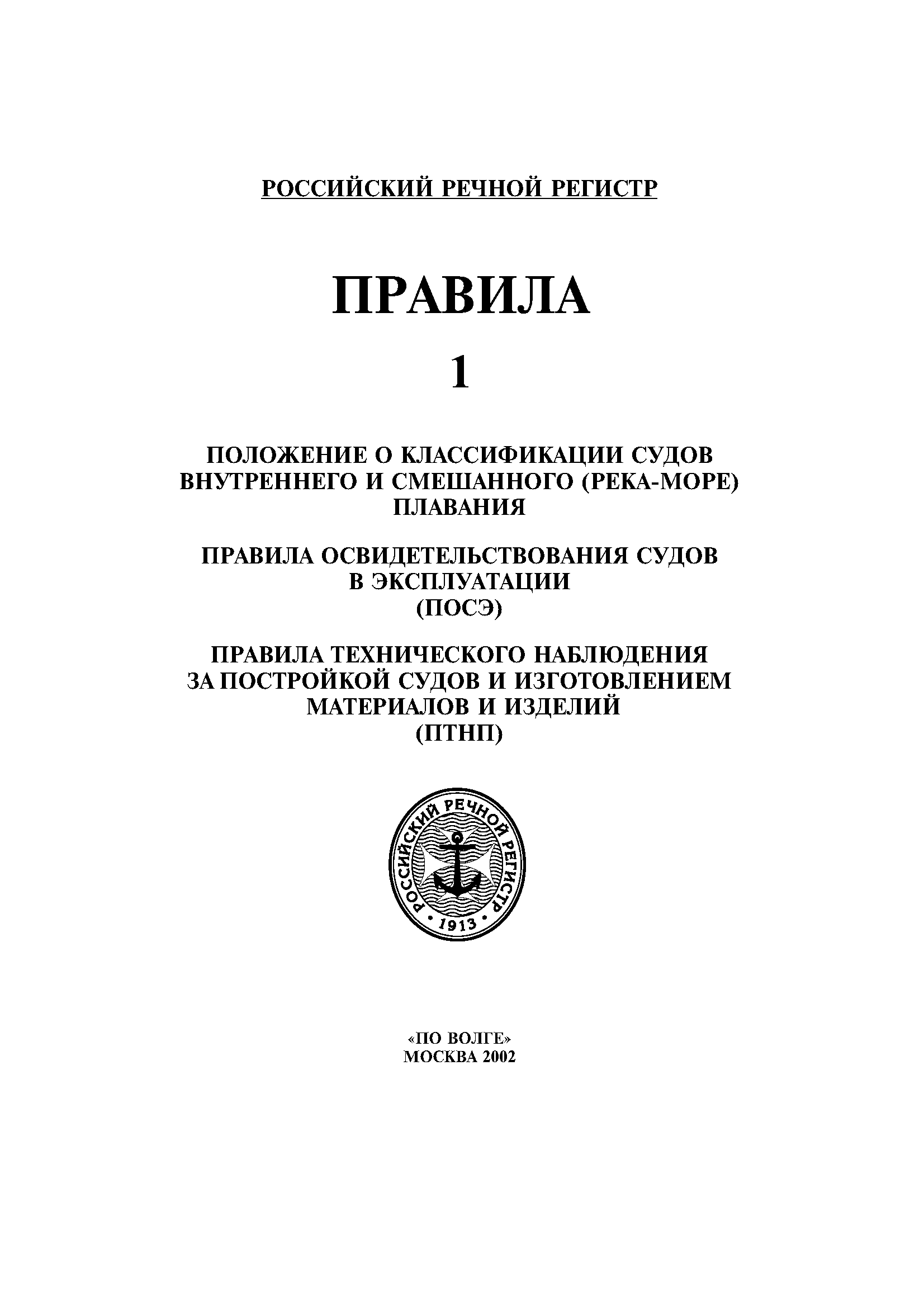 | | Заменяет собой: | - «Российский Речной Регистр. Правила, том 1, том 2» (Москва 1995 год)