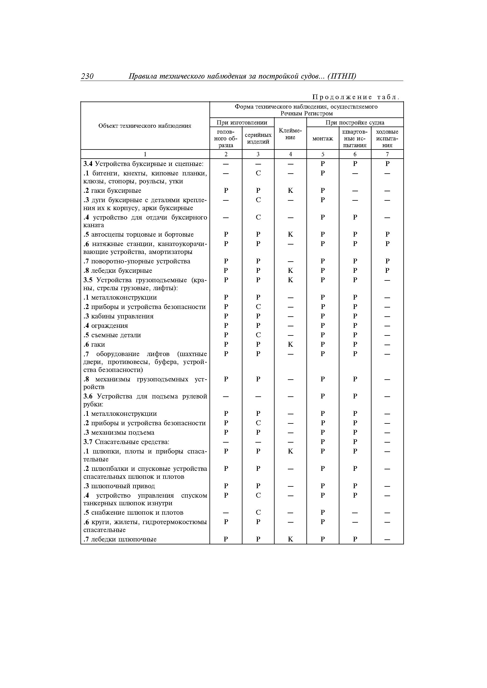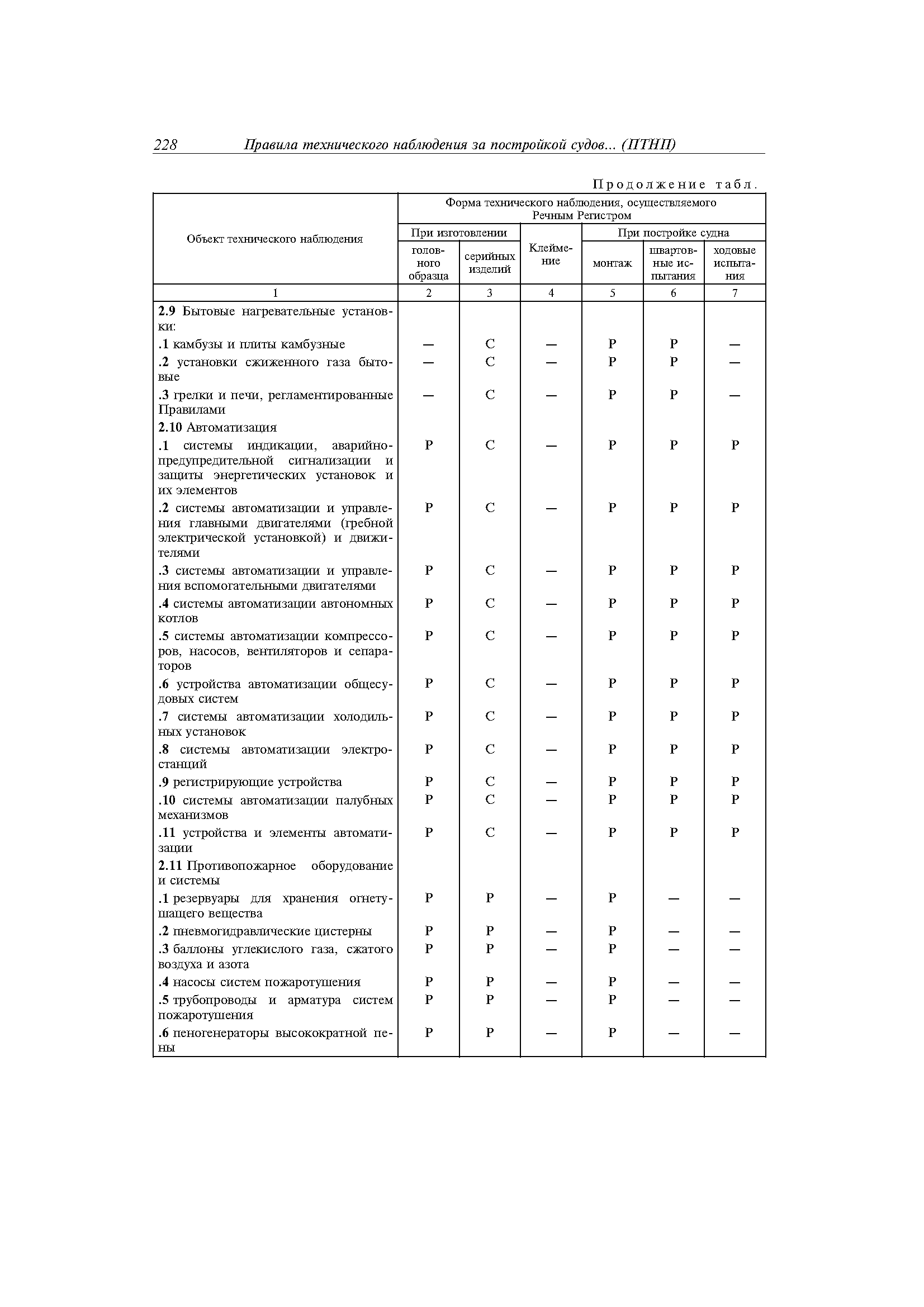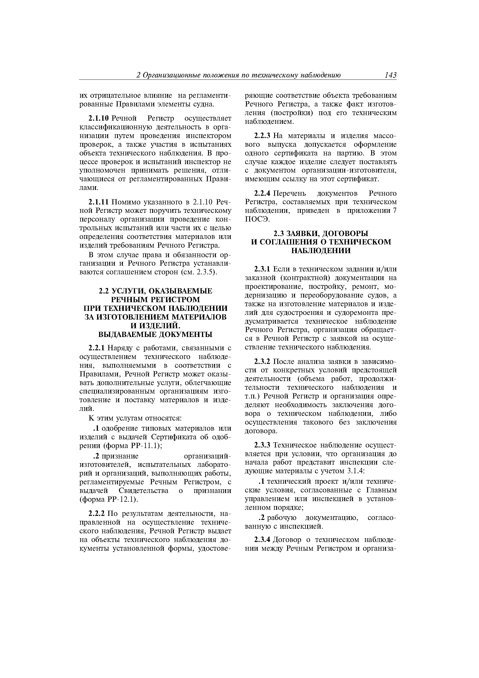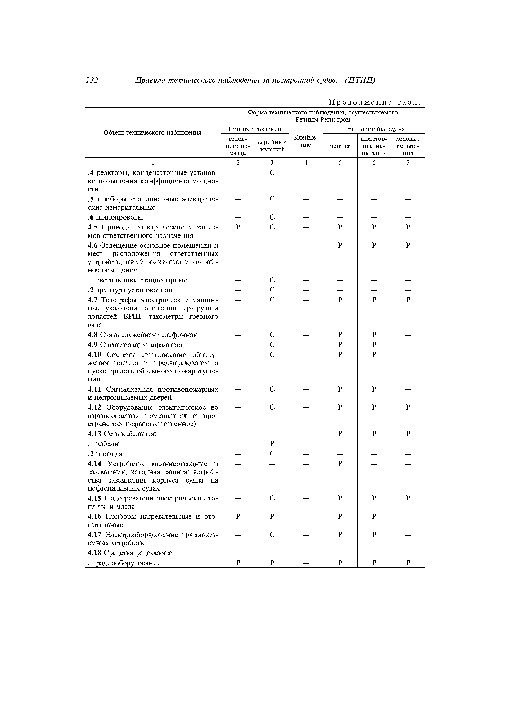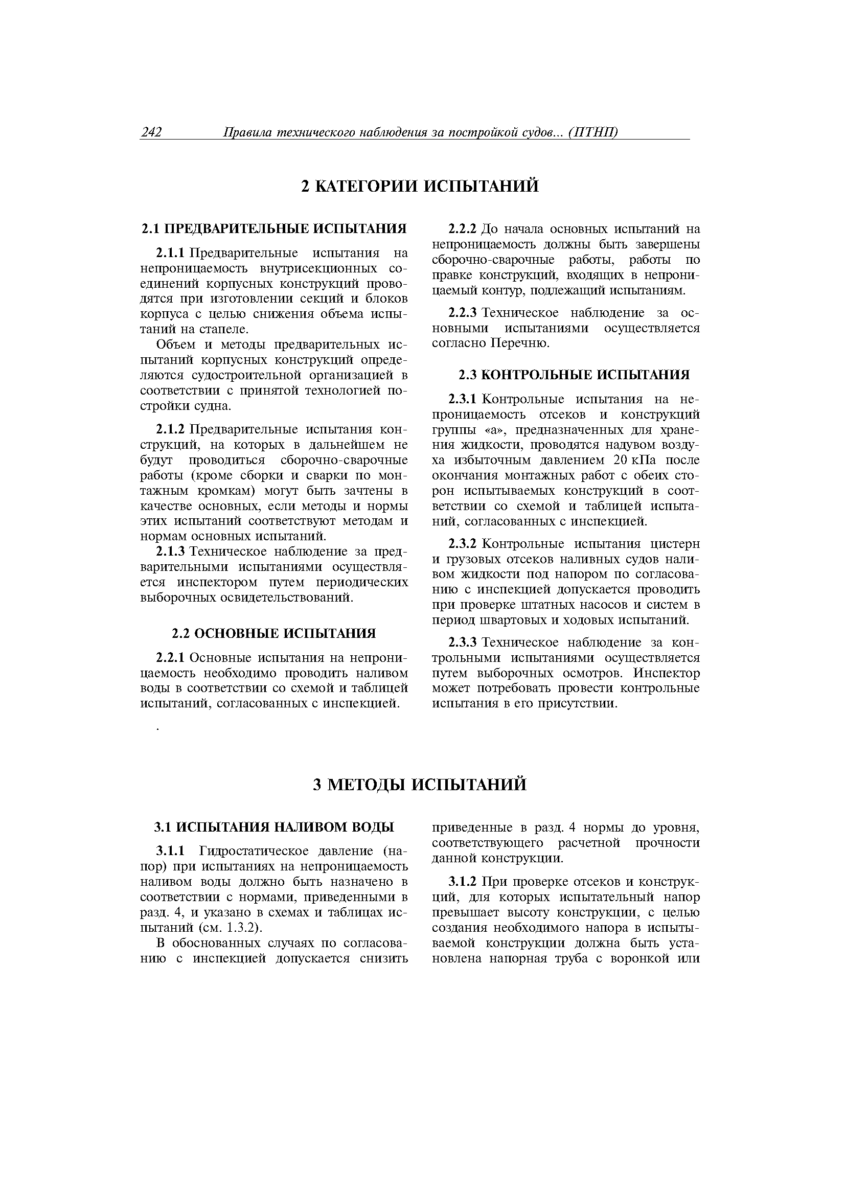 Правила технического наблюдения за постройкой судов и изготовлением материалов и изделий (ПТНП) (редакция 2002 года)| Статус: | действует | | Название рус.: | Правила технического наблюдения за постройкой судов и изготовлением материалов и изделий (ПТНП) (редакция 2002 года) | | Дата добавления в базу: | 01.09.2013 | | Дата актуализации: | 01.01.2021 | | Дата введения: | 31.03.2003 | | Область применения: | Правила устанавливают формы, порядок, методы и объем технического наблюдения, осуществляемого Речным Регистром в целях контроля, проверки выполнения требований Правил классификации и постройки судов внутреннего плавания, Правил классификации и постройки судов смешанного плавания и Правил экологической безопасности. | | Оглавление: | 1 Общие положения 2 Организационные положения по техническому наблюдению 3 Техническое наблюдение за разработкой технической документации 4 Техническое наблюдение за постройкой и ремонтом судов 5 Корпус 6 Механизмы 7 Котлы, теплообменные аппараты и сосуды под давлением 8 Холодильные установки 9 Судовые устройства и снабжение 10 Грузоподъемные устройства 11 Электрическое оборудование 12 Средства радиосвязи и навигационное оборудование 13 Оборудование экологической безопасности Приложение 1. Номенклатура объектов технического наблюдения, осуществляемого Речным Регистром Приложение 2. Перечень контрольных проверок объектов и технологических операций, обязательных для предъявления инспекции Приложение 3. Форма журнала технического наблюдения Приложение 4. Форма извещения о вызове инженера-инспектора Приложение 5. Форма построечного журнала Приложение 6. Форма карты разрешения на отступление от чертежа, технологического процесса или технических условий Приложение 7. Испытания корпуса на непроницаемость Приложение 8. Допускаемые значения сварочных деформаций обшивки и набора корпусных конструкций и отклонений при сборке корпуса судна Приложение 9. Типовой перечень технической документации, представляемой на рассмотрение Речному Регистру | | Утверждён: | 29.11.2002 Министерство транспорта РФ (Russian Federation Ministry of Transport НС-148-р)