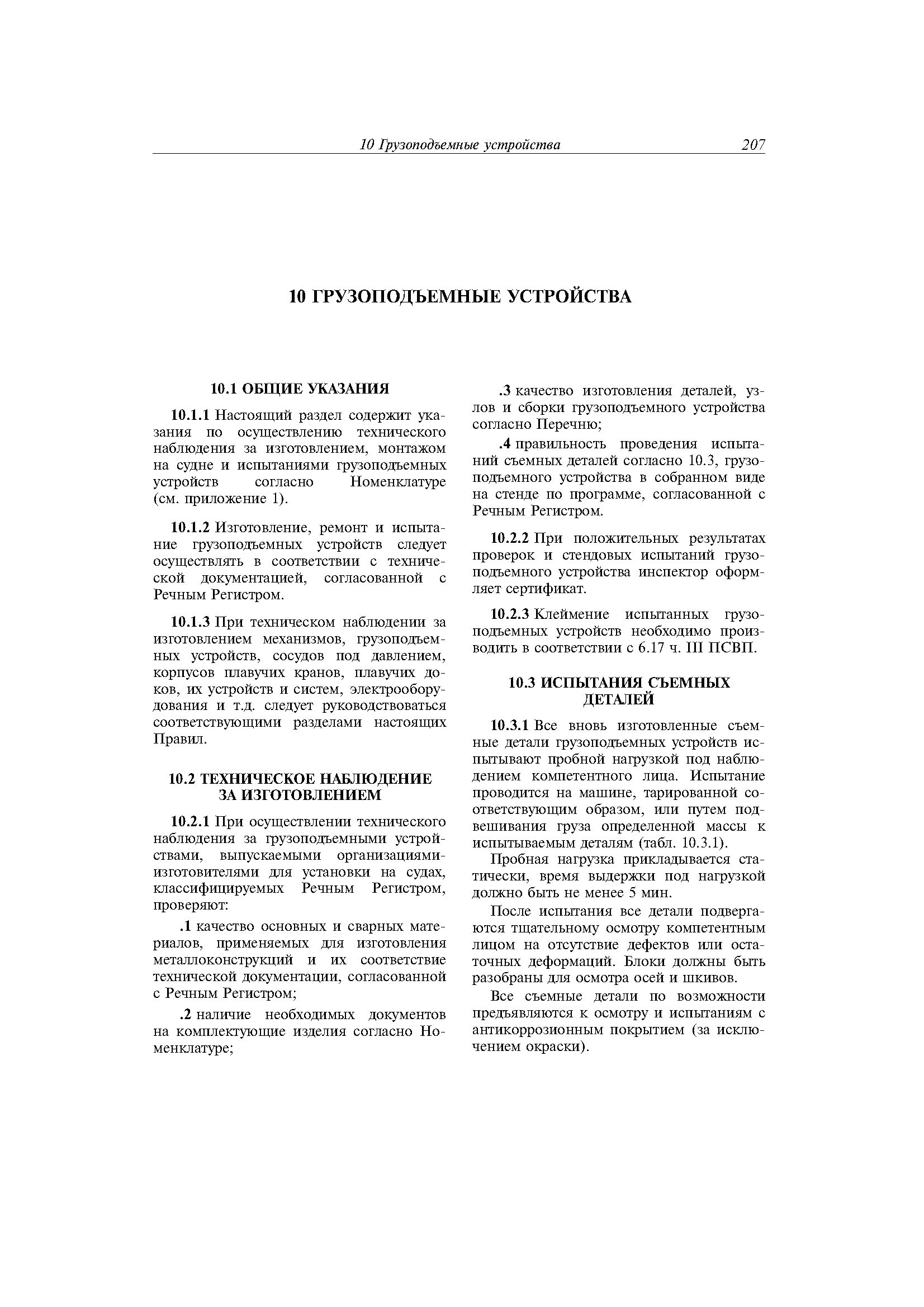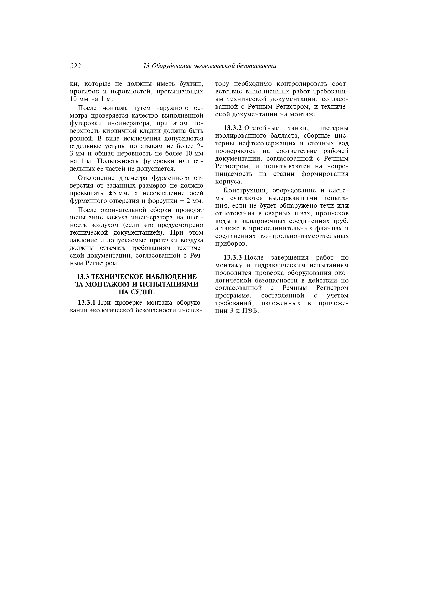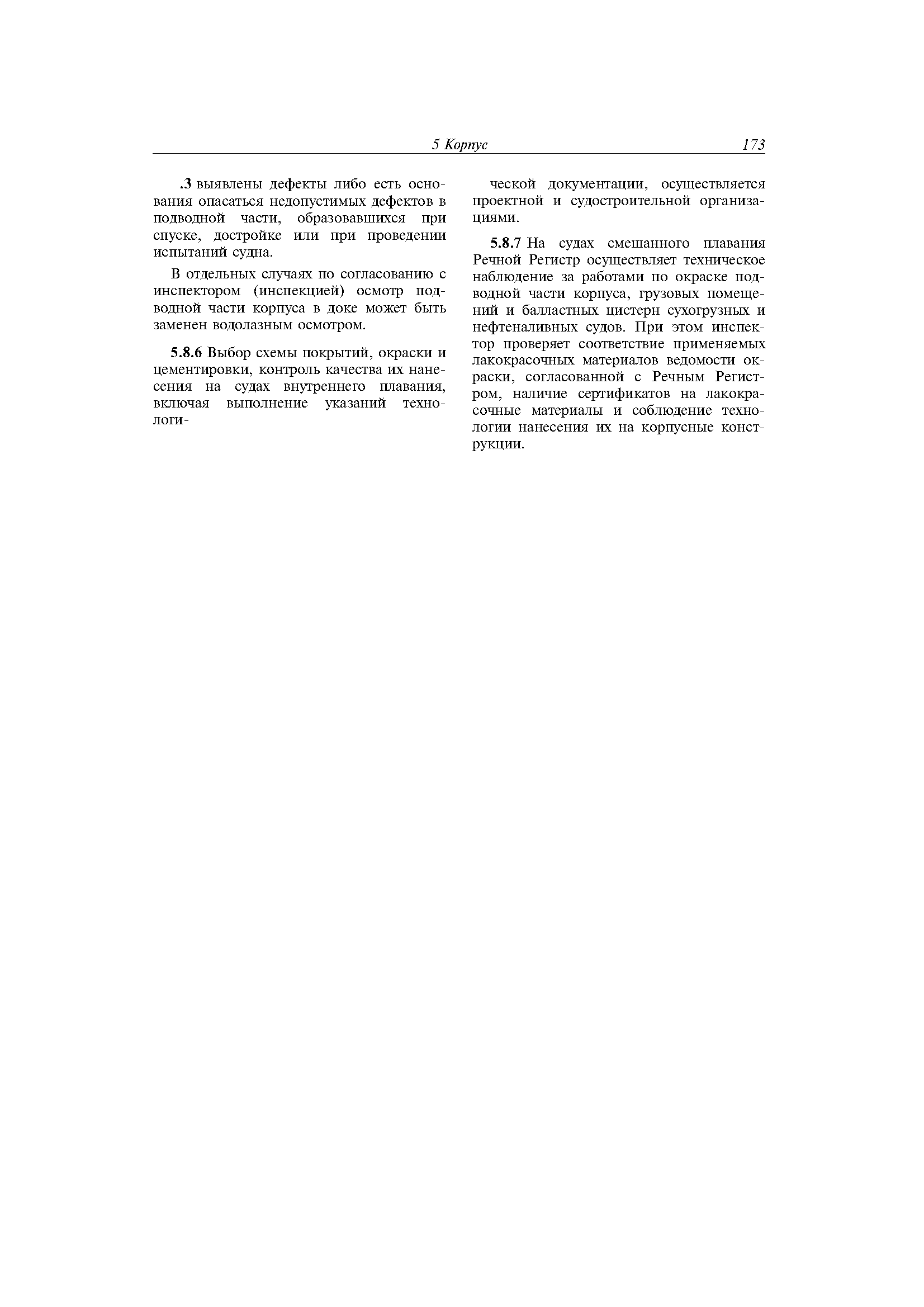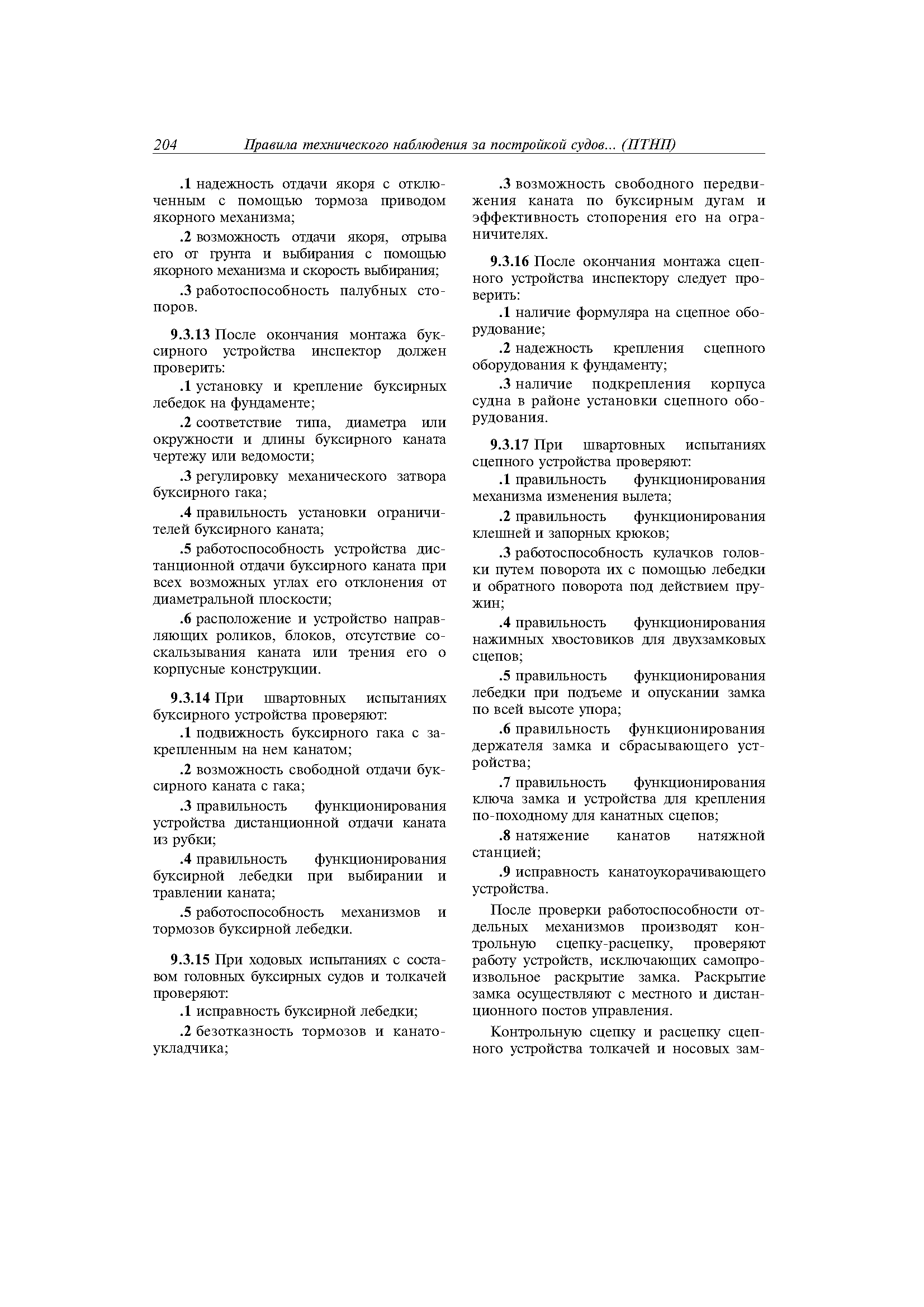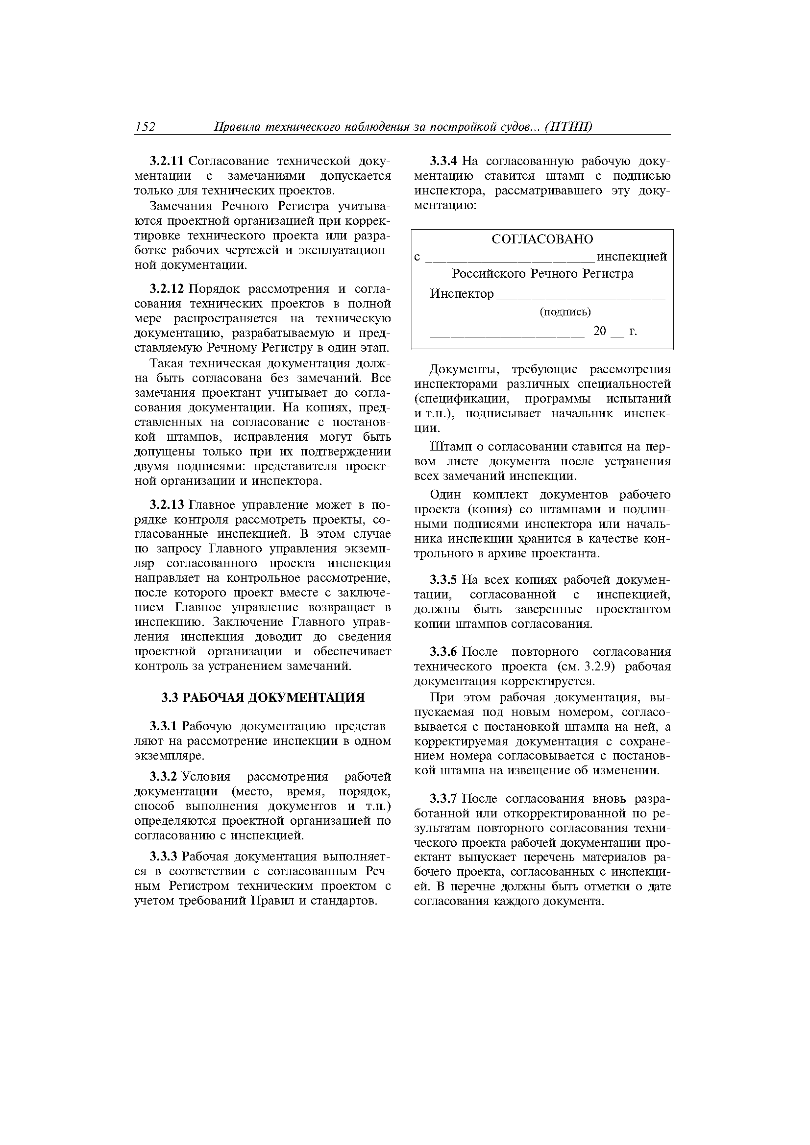 Правила технического наблюдения за постройкой судов и изготовлением материалов и изделий (ПТНП) (редакция 2002 года)| Статус: | действует | | Название рус.: | Правила технического наблюдения за постройкой судов и изготовлением материалов и изделий (ПТНП) (редакция 2002 года) | | Дата добавления в базу: | 01.09.2013 | | Дата актуализации: | 01.01.2021 | | Дата введения: | 31.03.2003 | | Область применения: | Правила устанавливают формы, порядок, методы и объем технического наблюдения, осуществляемого Речным Регистром в целях контроля, проверки выполнения требований Правил классификации и постройки судов внутреннего плавания, Правил классификации и постройки судов смешанного плавания и Правил экологической безопасности. | | Оглавление: | 1 Общие положения 2 Организационные положения по техническому наблюдению 3 Техническое наблюдение за разработкой технической документации 4 Техническое наблюдение за постройкой и ремонтом судов 5 Корпус 6 Механизмы 7 Котлы, теплообменные аппараты и сосуды под давлением 8 Холодильные установки 9 Судовые устройства и снабжение 10 Грузоподъемные устройства 11 Электрическое оборудование 12 Средства радиосвязи и навигационное оборудование 13 Оборудование экологической безопасности Приложение 1. Номенклатура объектов технического наблюдения, осуществляемого Речным Регистром Приложение 2. Перечень контрольных проверок объектов и технологических операций, обязательных для предъявления инспекции Приложение 3. Форма журнала технического наблюдения Приложение 4. Форма извещения о вызове инженера-инспектора Приложение 5. Форма построечного журнала Приложение 6. Форма карты разрешения на отступление от чертежа, технологического процесса или технических условий Приложение 7. Испытания корпуса на непроницаемость Приложение 8. Допускаемые значения сварочных деформаций обшивки и набора корпусных конструкций и отклонений при сборке корпуса судна Приложение 9. Типовой перечень технической документации, представляемой на рассмотрение Речному Регистру | | Утверждён: | 29.11.2002 Министерство транспорта РФ (Russian Federation Ministry of Transport НС-148-р)