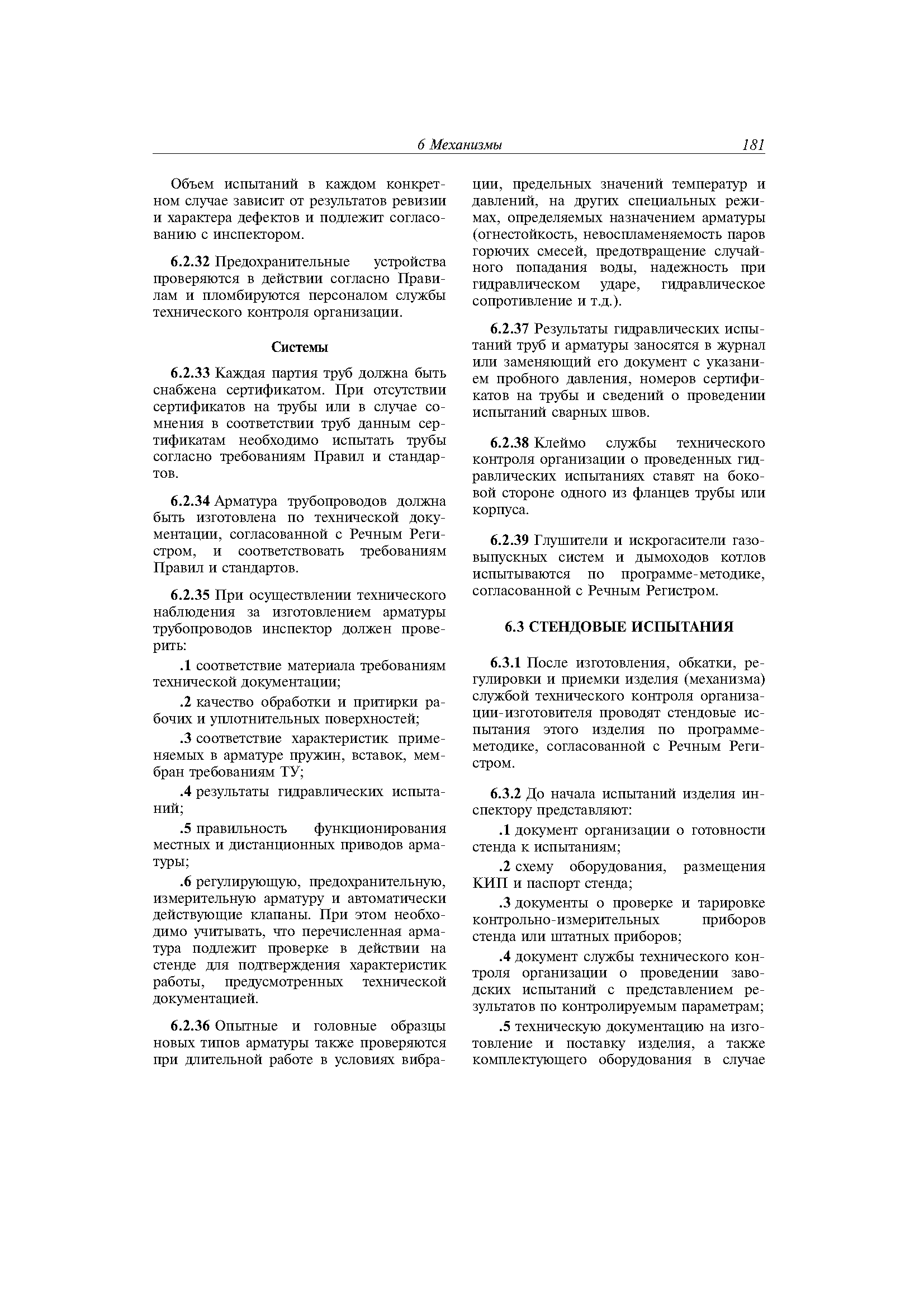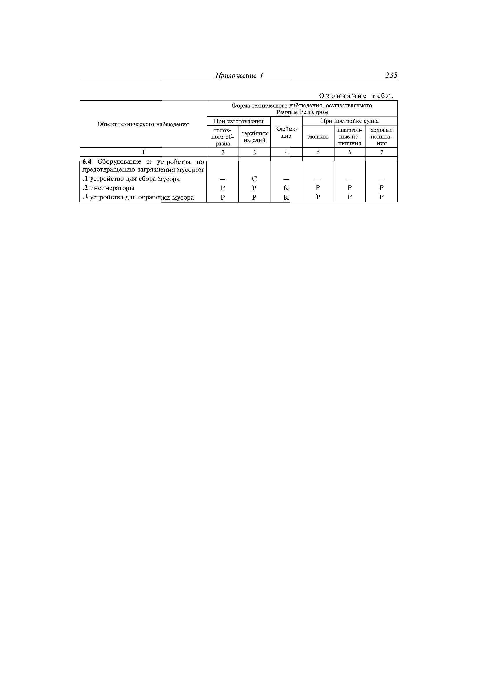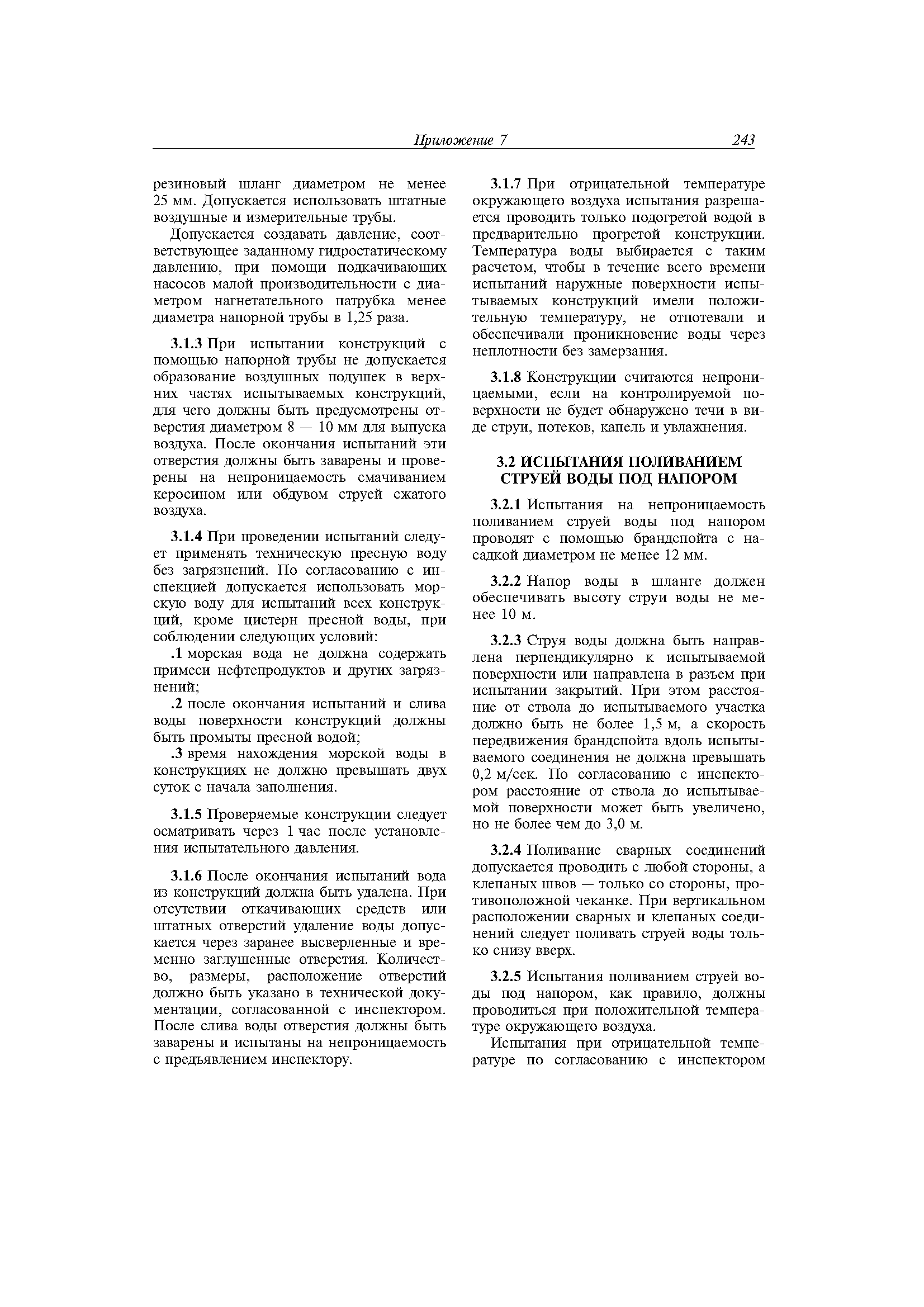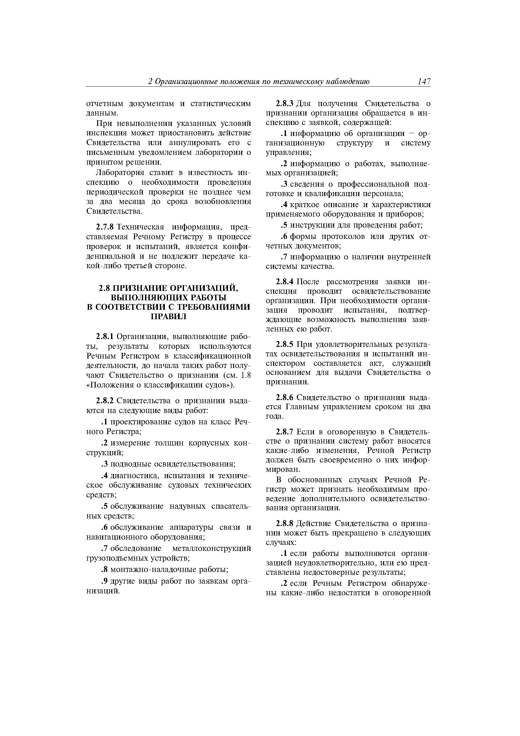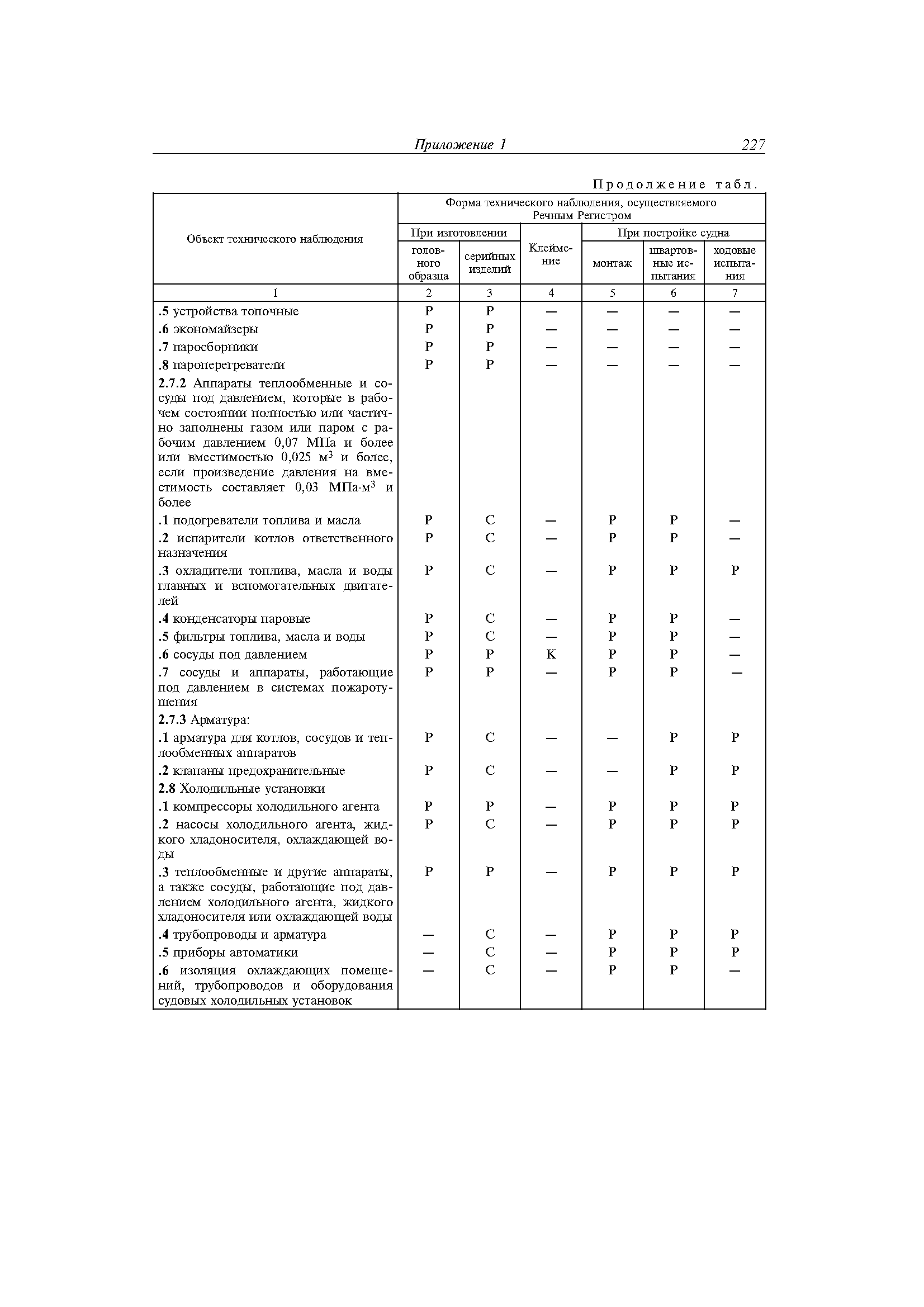 Правила технического наблюдения за постройкой судов и изготовлением материалов и изделий (ПТНП) (редакция 2002 года)| Статус: | действует | | Название рус.: | Правила технического наблюдения за постройкой судов и изготовлением материалов и изделий (ПТНП) (редакция 2002 года) | | Дата добавления в базу: | 01.09.2013 | | Дата актуализации: | 01.01.2021 | | Дата введения: | 31.03.2003 | | Область применения: | Правила устанавливают формы, порядок, методы и объем технического наблюдения, осуществляемого Речным Регистром в целях контроля, проверки выполнения требований Правил классификации и постройки судов внутреннего плавания, Правил классификации и постройки судов смешанного плавания и Правил экологической безопасности. | | Оглавление: | 1 Общие положения 2 Организационные положения по техническому наблюдению 3 Техническое наблюдение за разработкой технической документации 4 Техническое наблюдение за постройкой и ремонтом судов 5 Корпус 6 Механизмы 7 Котлы, теплообменные аппараты и сосуды под давлением 8 Холодильные установки 9 Судовые устройства и снабжение 10 Грузоподъемные устройства 11 Электрическое оборудование 12 Средства радиосвязи и навигационное оборудование 13 Оборудование экологической безопасности Приложение 1. Номенклатура объектов технического наблюдения, осуществляемого Речным Регистром Приложение 2. Перечень контрольных проверок объектов и технологических операций, обязательных для предъявления инспекции Приложение 3. Форма журнала технического наблюдения Приложение 4. Форма извещения о вызове инженера-инспектора Приложение 5. Форма построечного журнала Приложение 6. Форма карты разрешения на отступление от чертежа, технологического процесса или технических условий Приложение 7. Испытания корпуса на непроницаемость Приложение 8. Допускаемые значения сварочных деформаций обшивки и набора корпусных конструкций и отклонений при сборке корпуса судна Приложение 9. Типовой перечень технической документации, представляемой на рассмотрение Речному Регистру | | Утверждён: | 29.11.2002 Министерство транспорта РФ (Russian Federation Ministry of Transport НС-148-р)