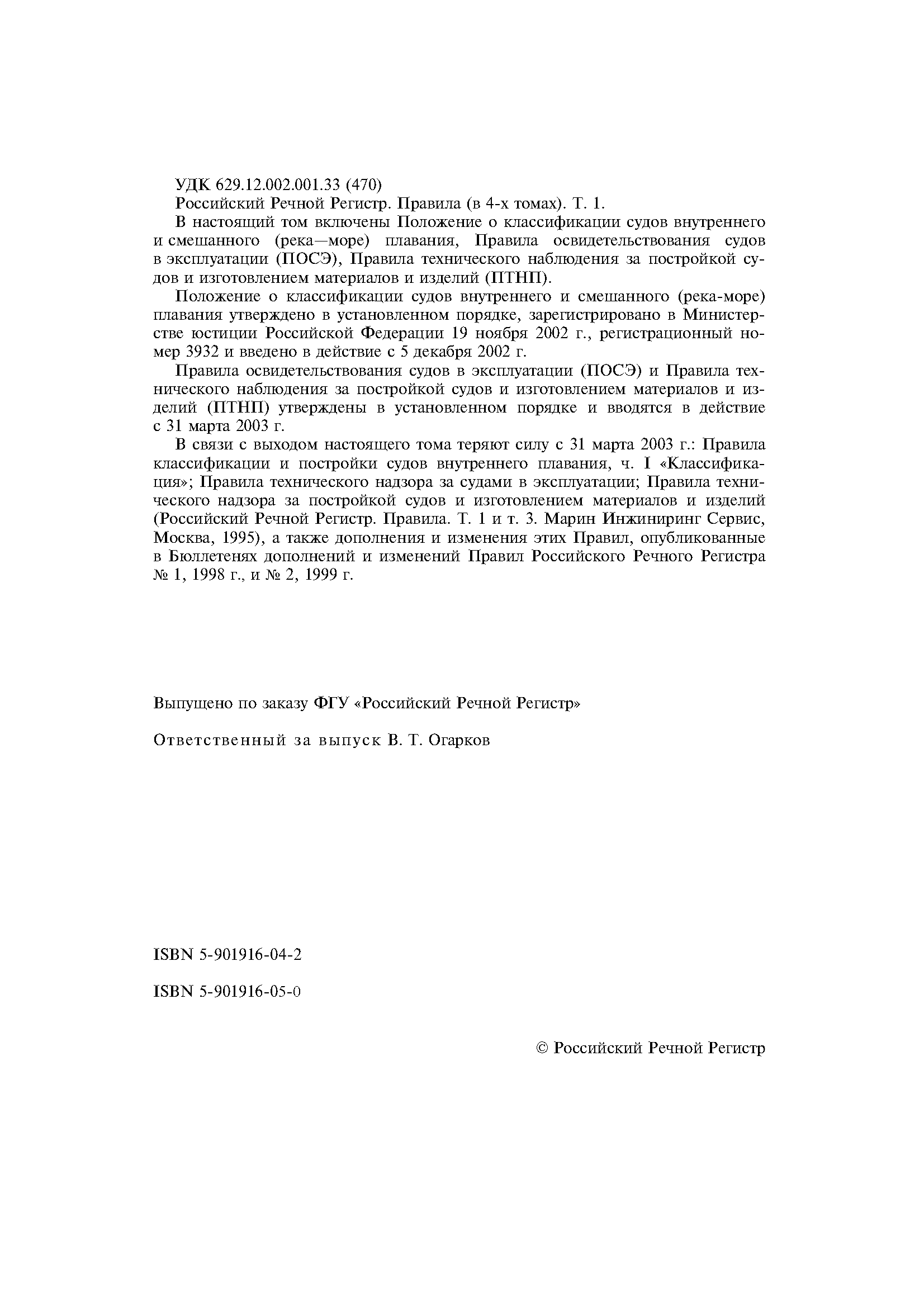 | Заменяет собой: | - «Российский Речной Регистр, том 1, том 3» (Москва, 1995 год)