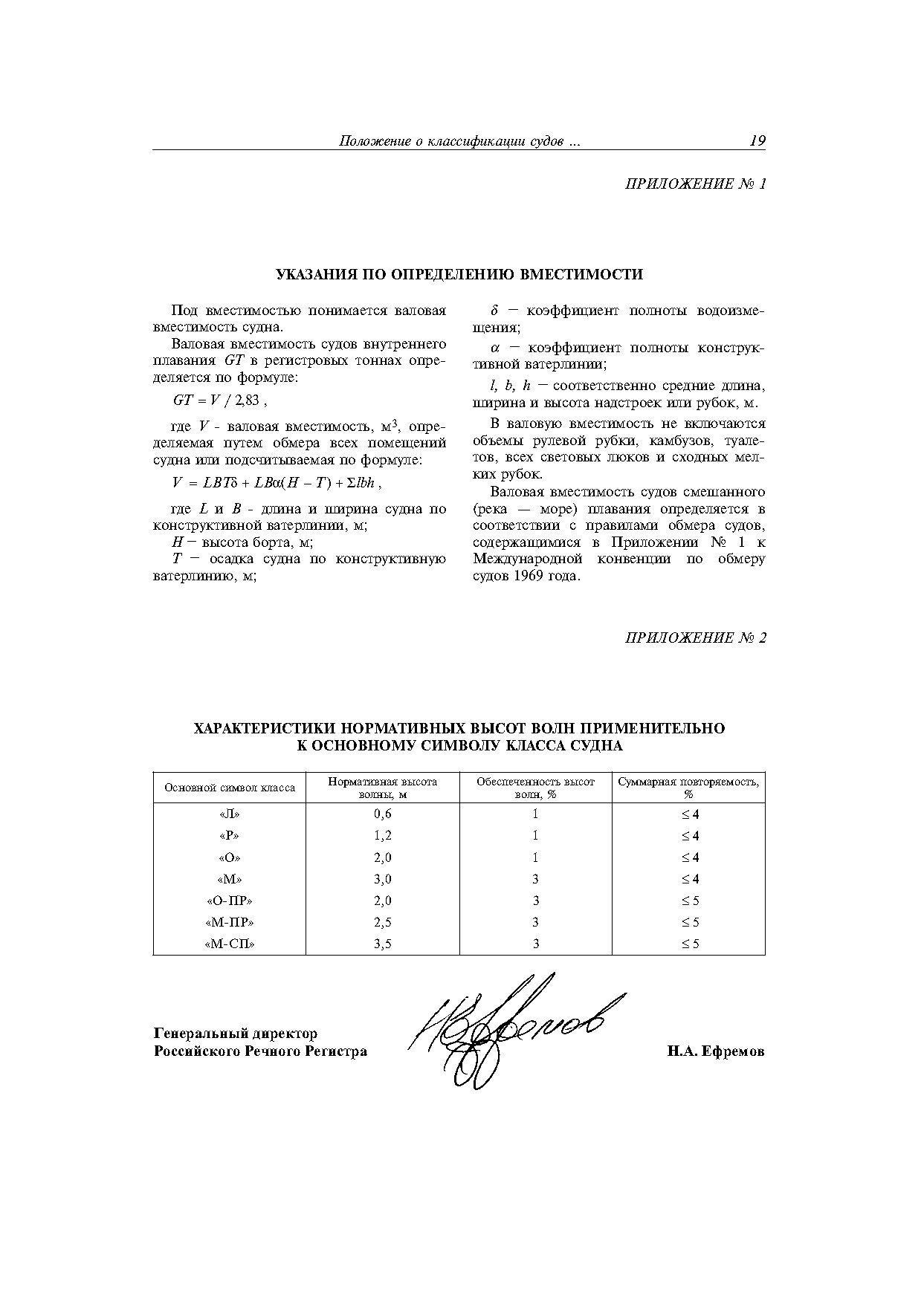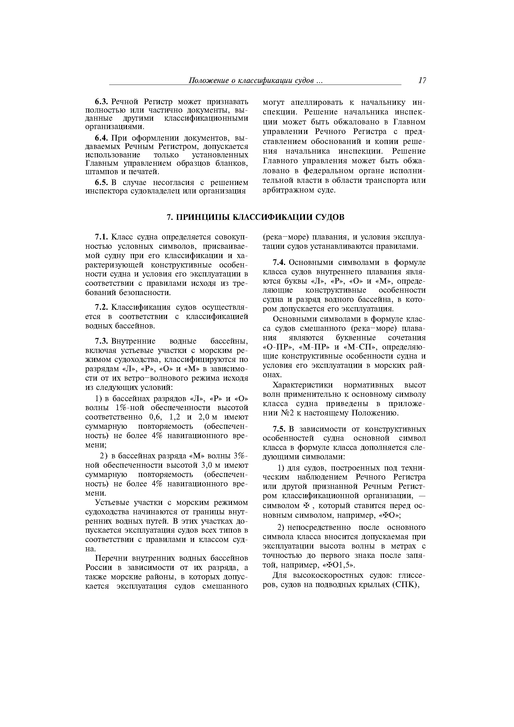| Оглавление: | 1 Общие положения 2 Порядок применения Правил 3 Рассмотрение и согласование технической документации 4 Техническое наблюдение 5 Освидетельствование судов в эксплуатации 6 Документы Речного Регистра 7 Принципы классификации судов Приложение 1. Указания по определению вместимости Приложение 2. Характеристики нормативных высот волн применительно к основному символу класса судна |