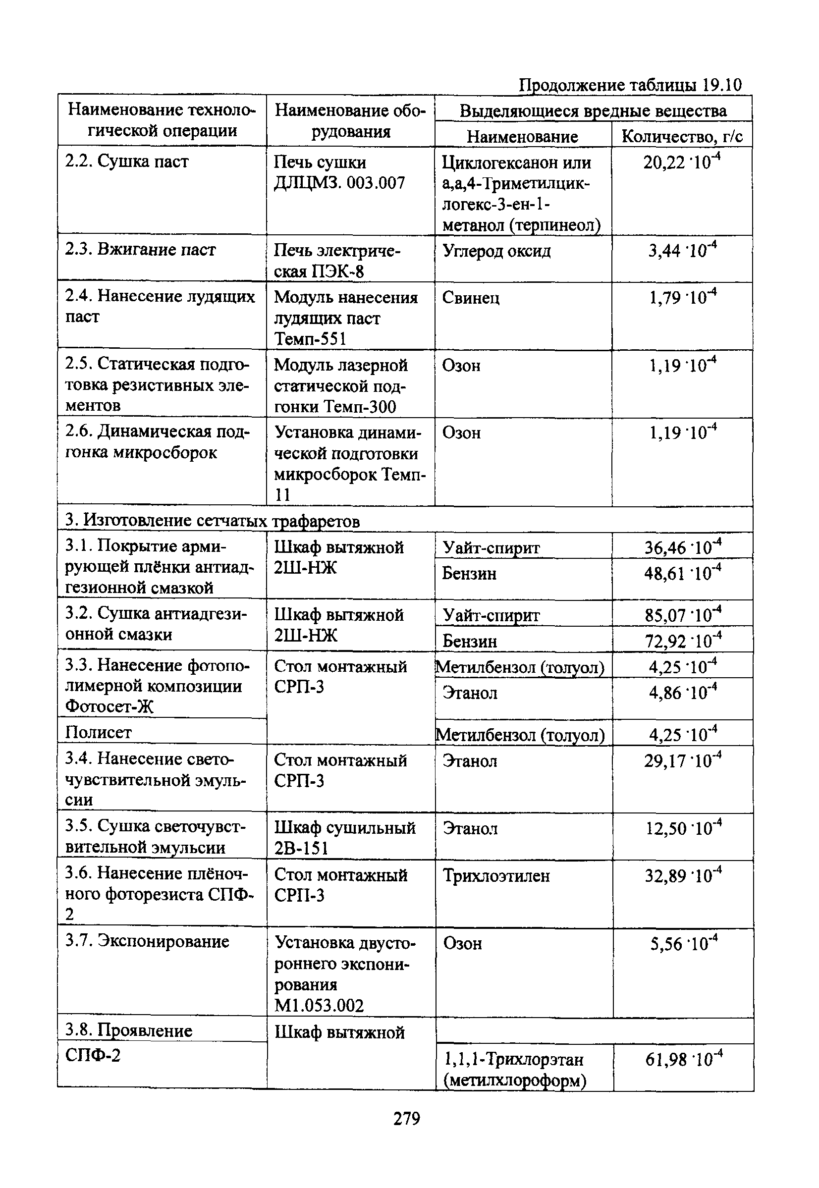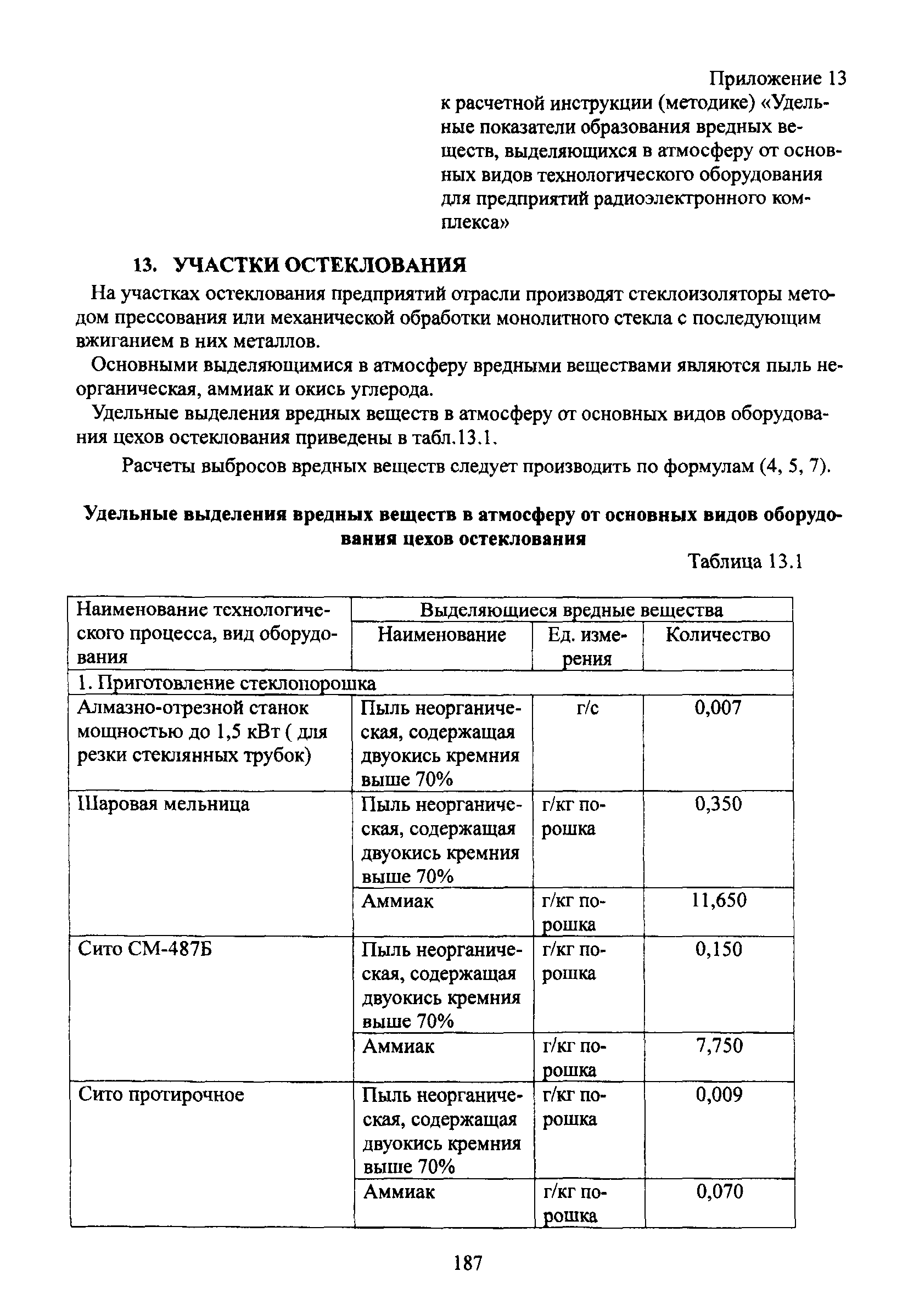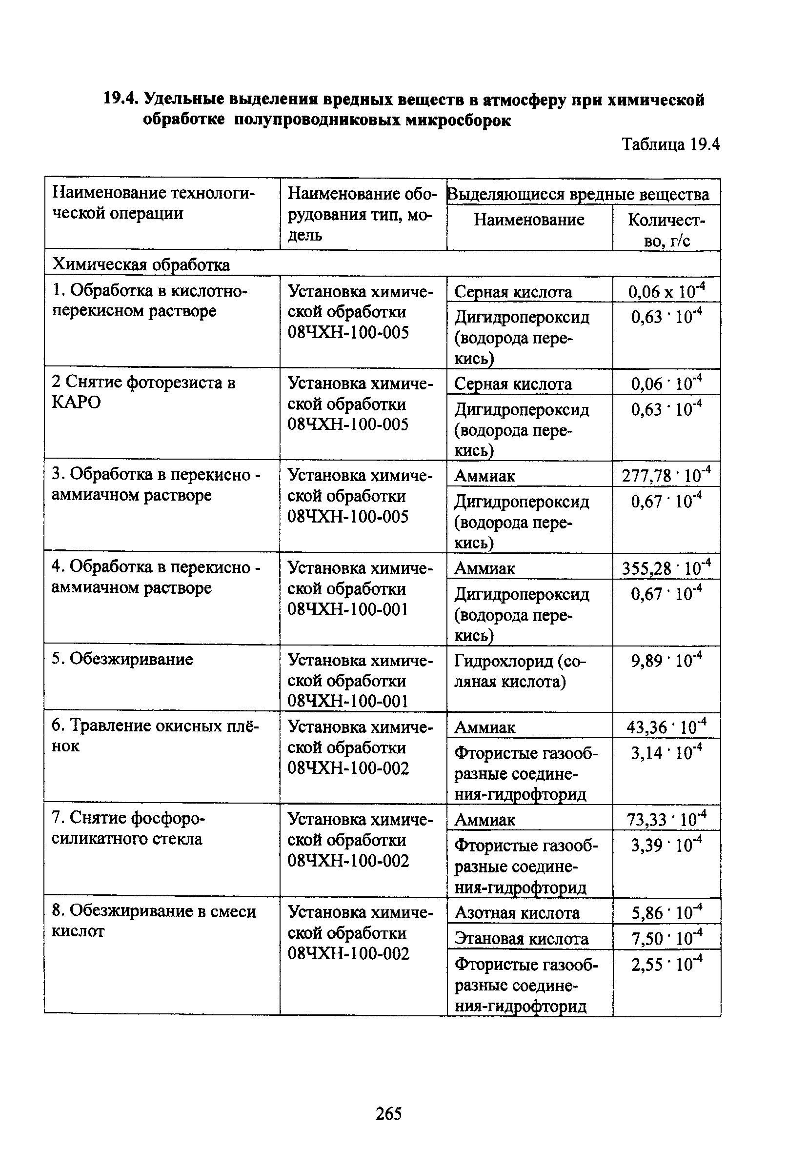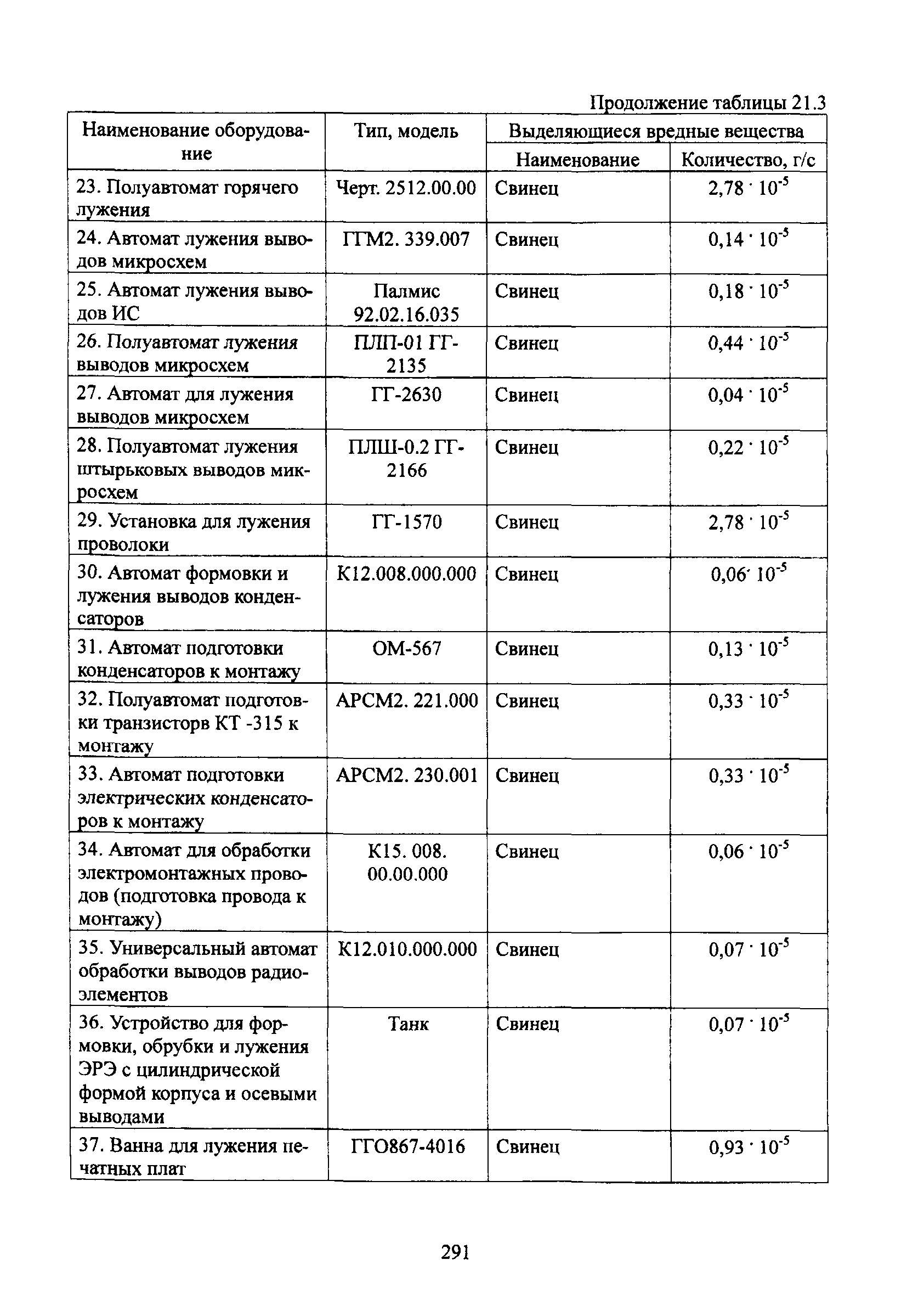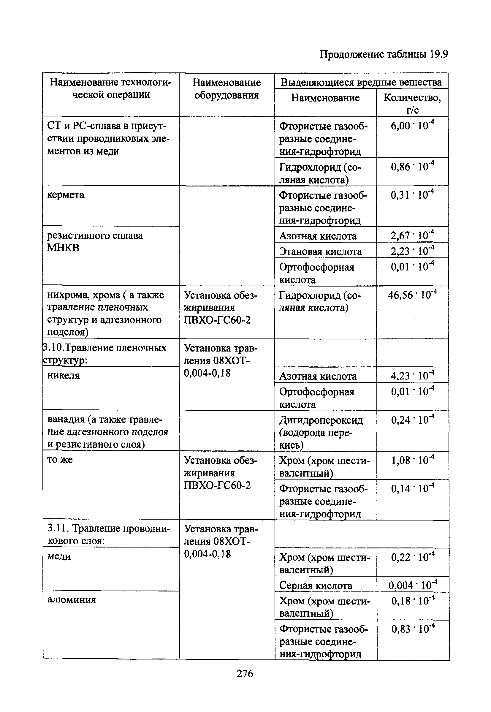 Расчетная инструкция (методика). Удельные показатели образования вредных веществ, выделяющихся в атмосферу от основных видов технологического оборудования для предприятий радиоэлектронного комплекса| Статус: | действует | | Название рус.: | Расчетная инструкция (методика). Удельные показатели образования вредных веществ, выделяющихся в атмосферу от основных видов технологического оборудования для предприятий радиоэлектронного комплекса | | Дата добавления в базу: | 01.09.2013 | | Дата актуализации: | 01.01.2021 | | Дата введения: | 01.01.2007 | | Область применения: | В методике обобщены многолетние данные натурных замеров, выполнявшиеся при проведении инвентаризации, разработке проектов нормативов предельно допустимых выбросов в атмосферу (ПДВ) на предприятиях г. Санкт- Петербурга, новейшие паспортные данные по технологическим процессам и оборудованию.