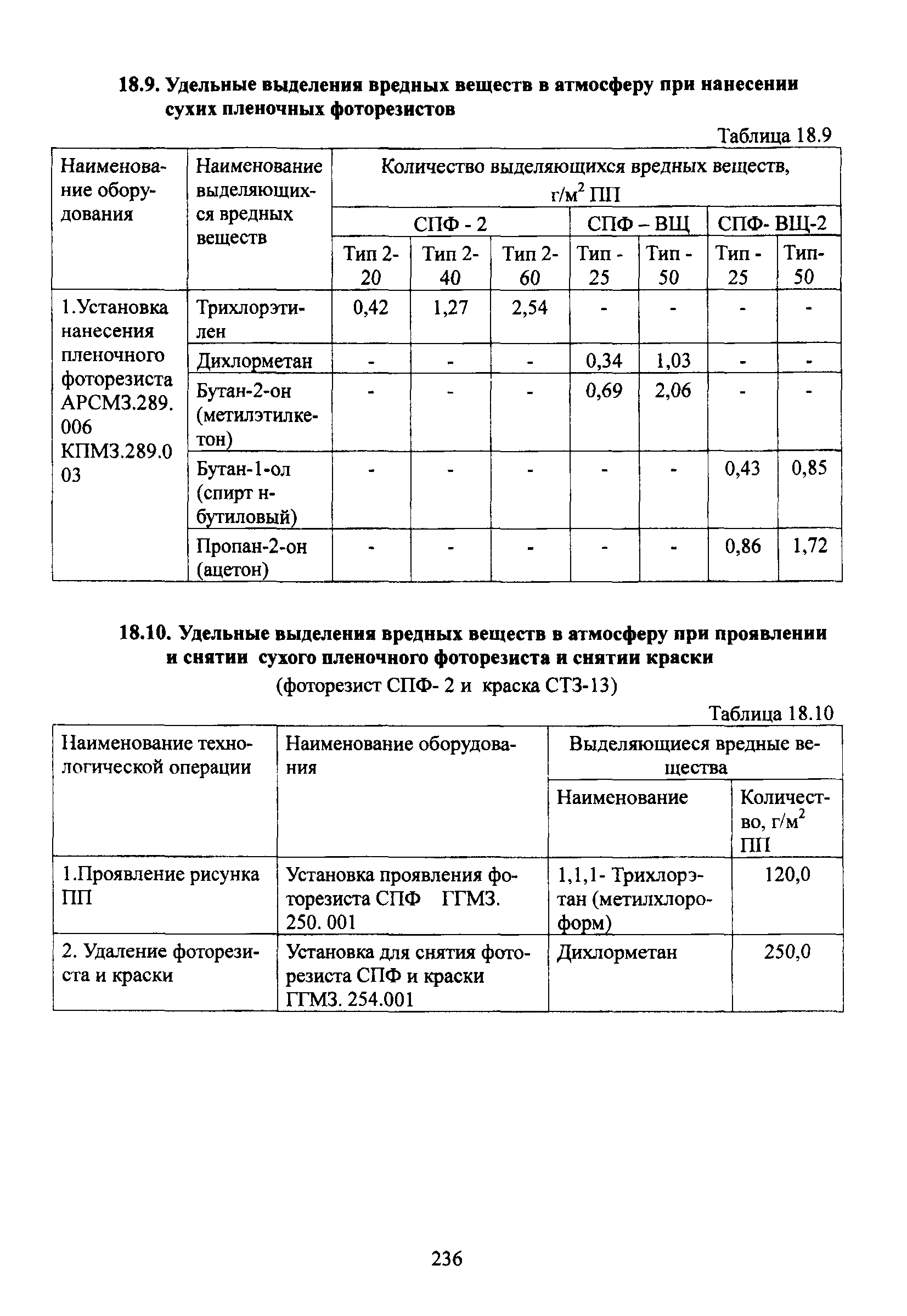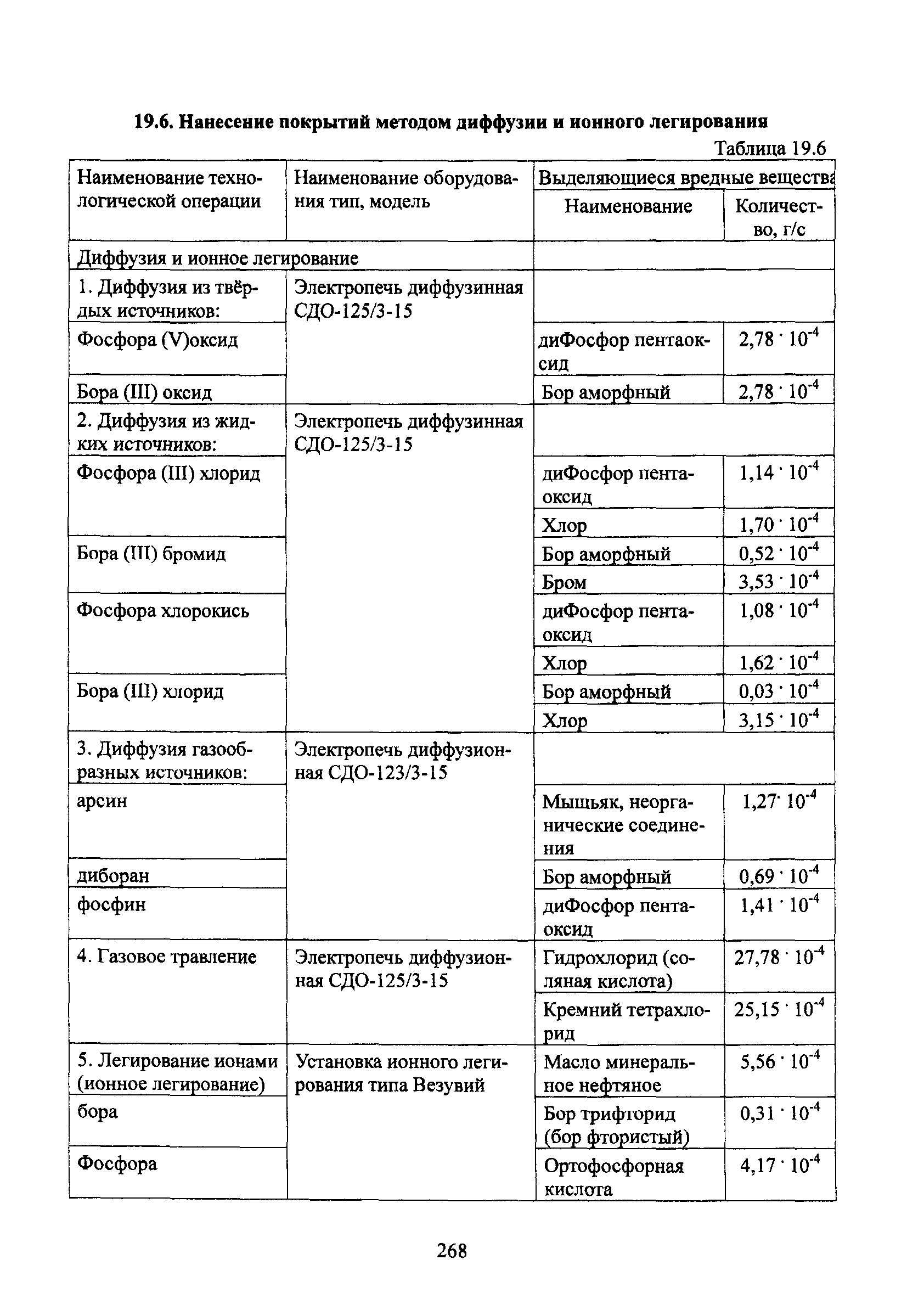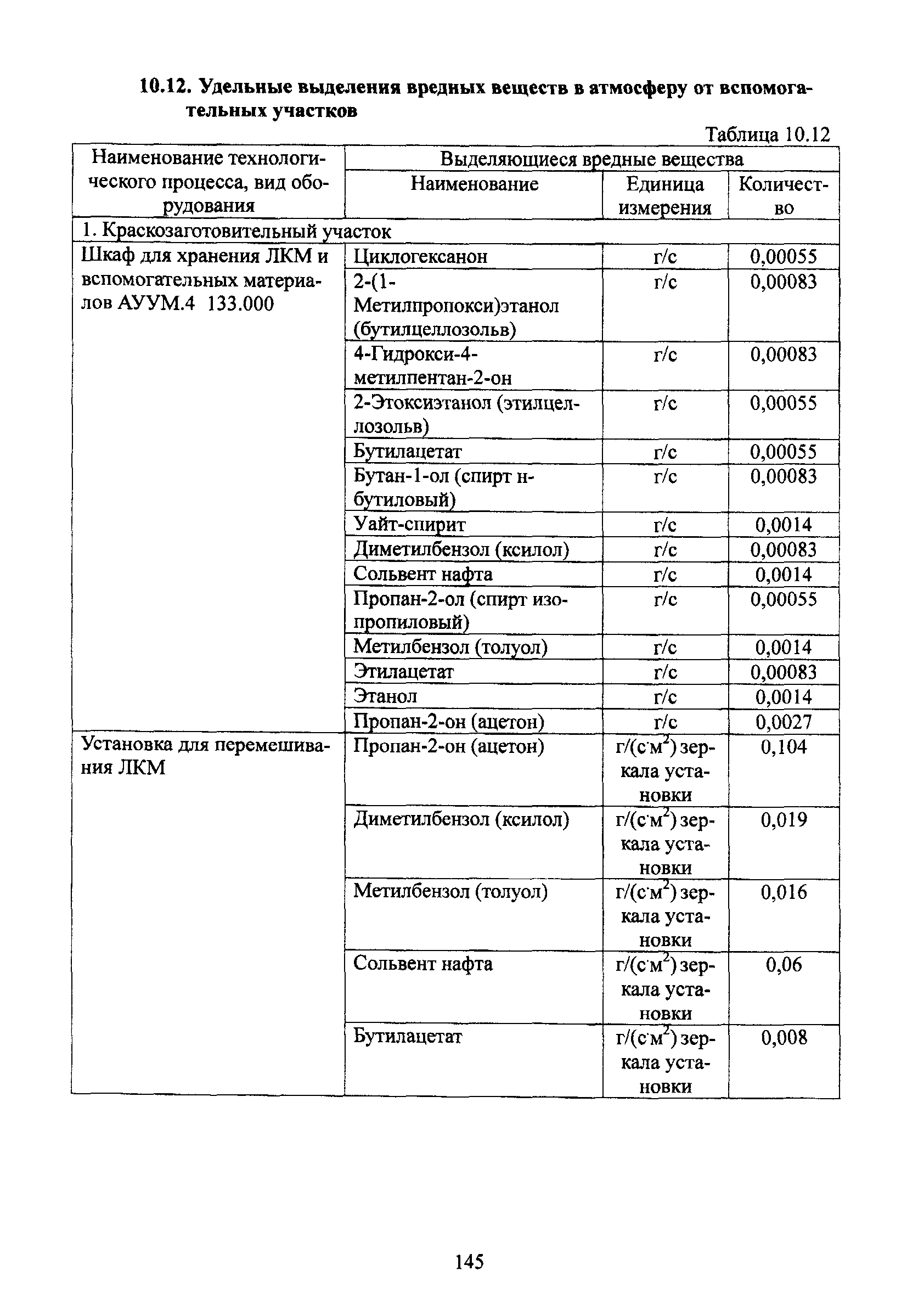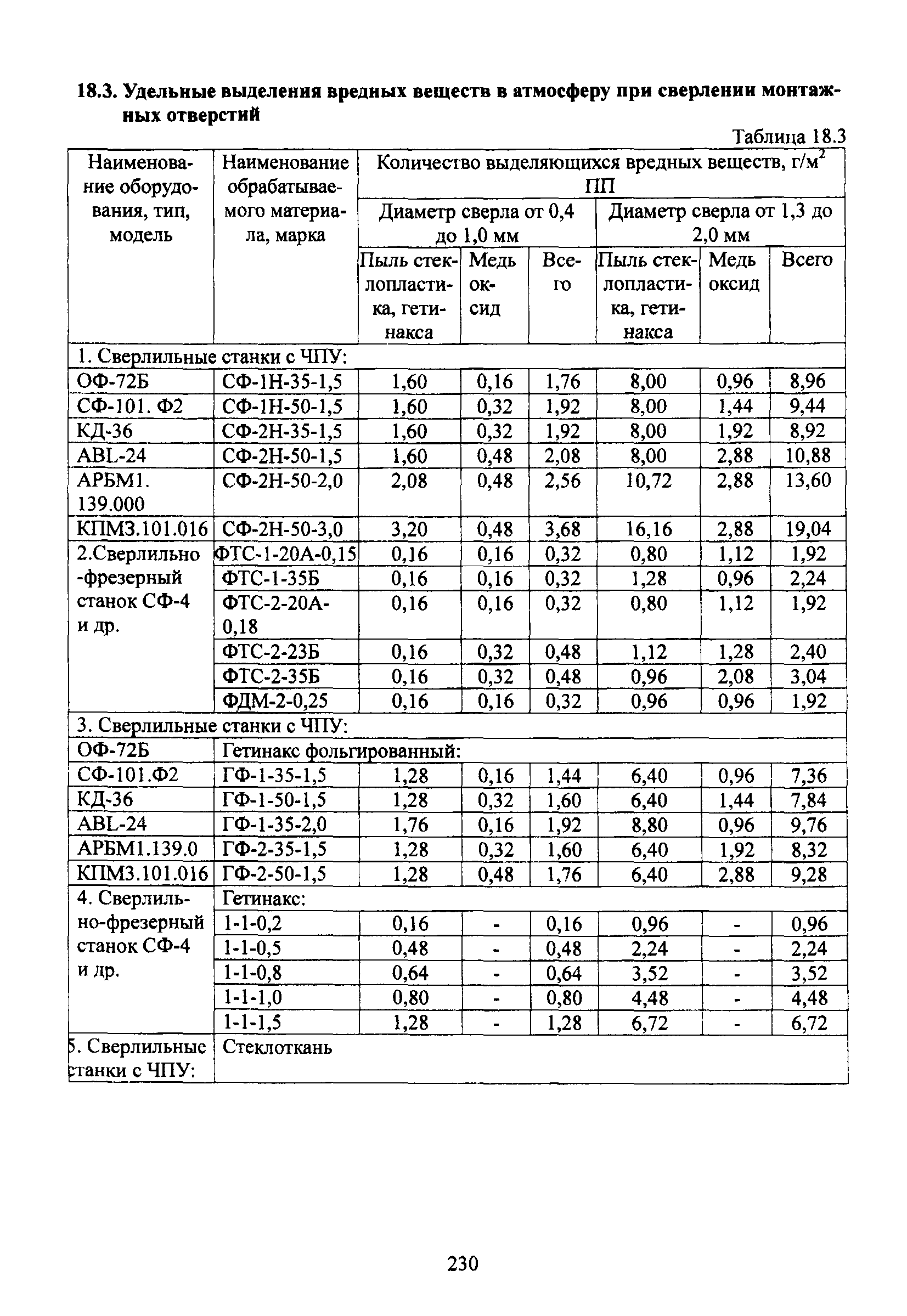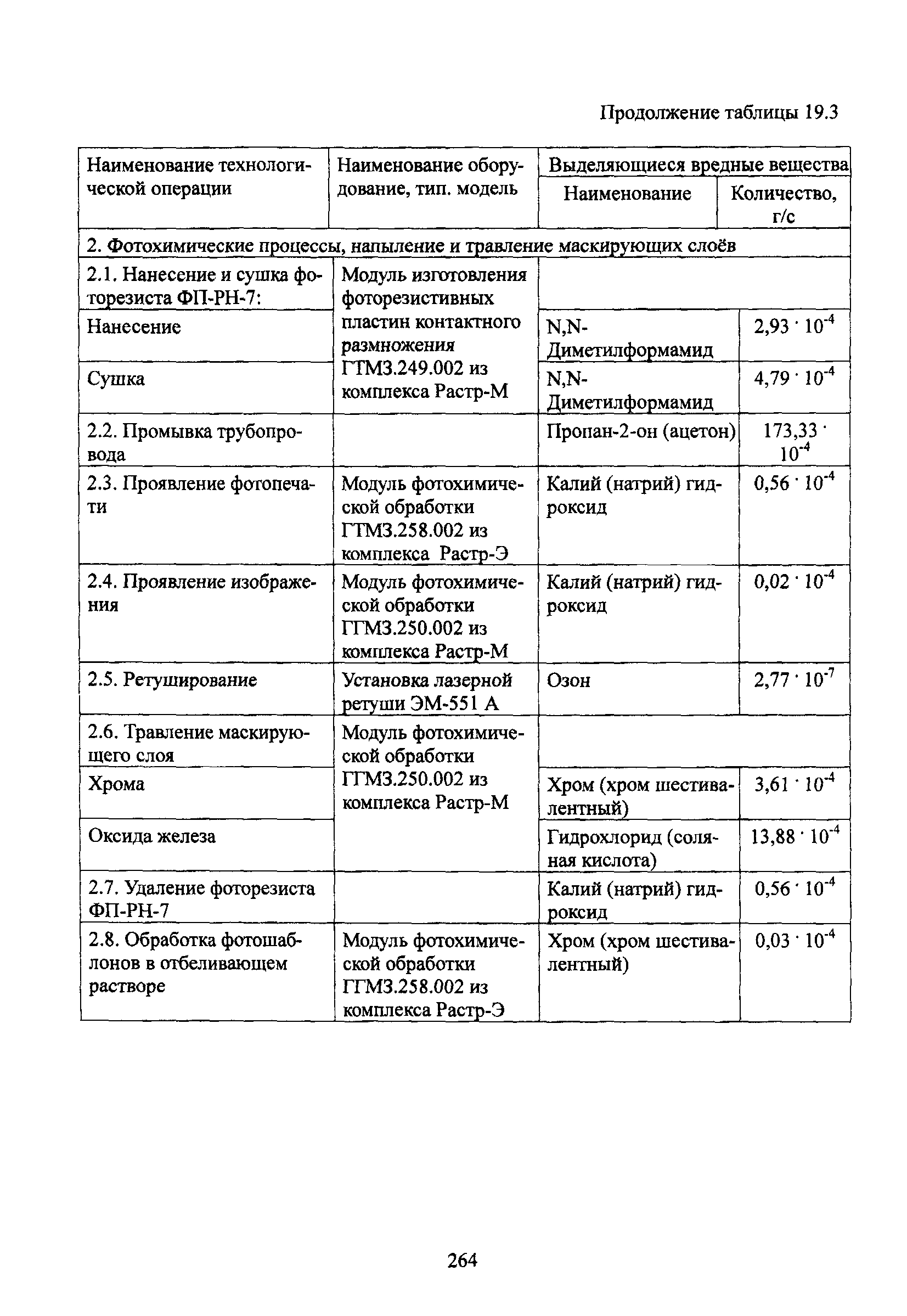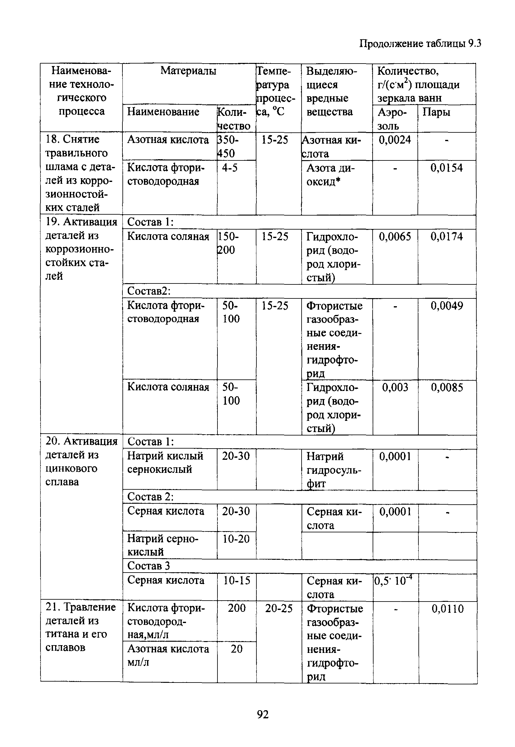 Расчетная инструкция (методика). Удельные показатели образования вредных веществ, выделяющихся в атмосферу от основных видов технологического оборудования для предприятий радиоэлектронного комплекса| Статус: | действует | | Название рус.: | Расчетная инструкция (методика). Удельные показатели образования вредных веществ, выделяющихся в атмосферу от основных видов технологического оборудования для предприятий радиоэлектронного комплекса | | Дата добавления в базу: | 01.09.2013 | | Дата актуализации: | 01.01.2021 | | Дата введения: | 01.01.2007 | | Область применения: | В методике обобщены многолетние данные натурных замеров, выполнявшиеся при проведении инвентаризации, разработке проектов нормативов предельно допустимых выбросов в атмосферу (ПДВ) на предприятиях г. Санкт- Петербурга, новейшие паспортные данные по технологическим процессам и оборудованию.