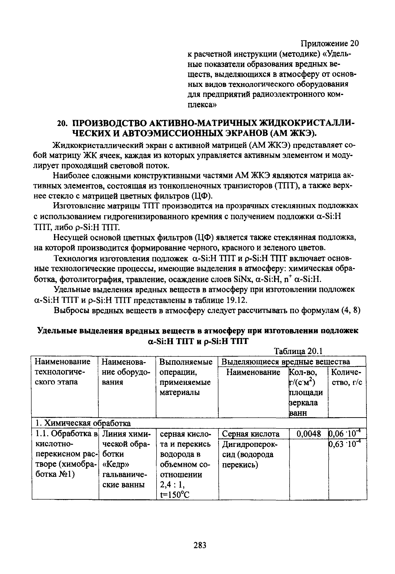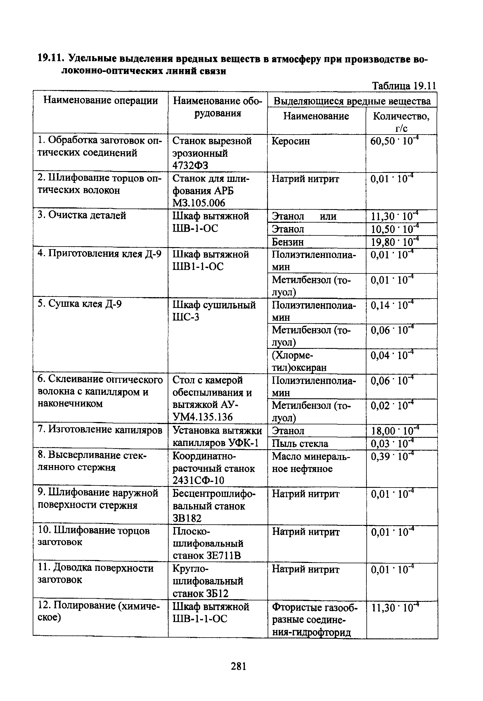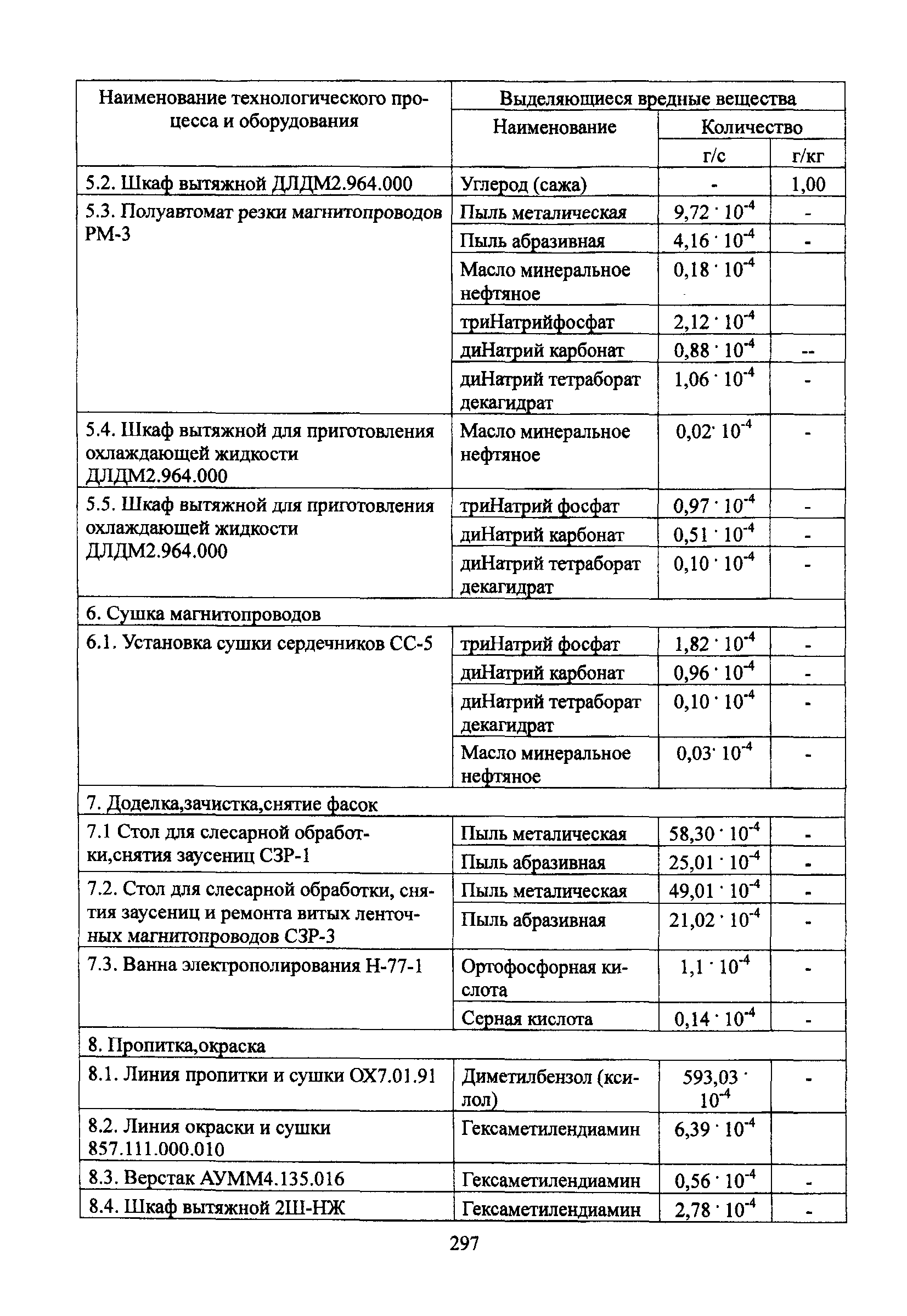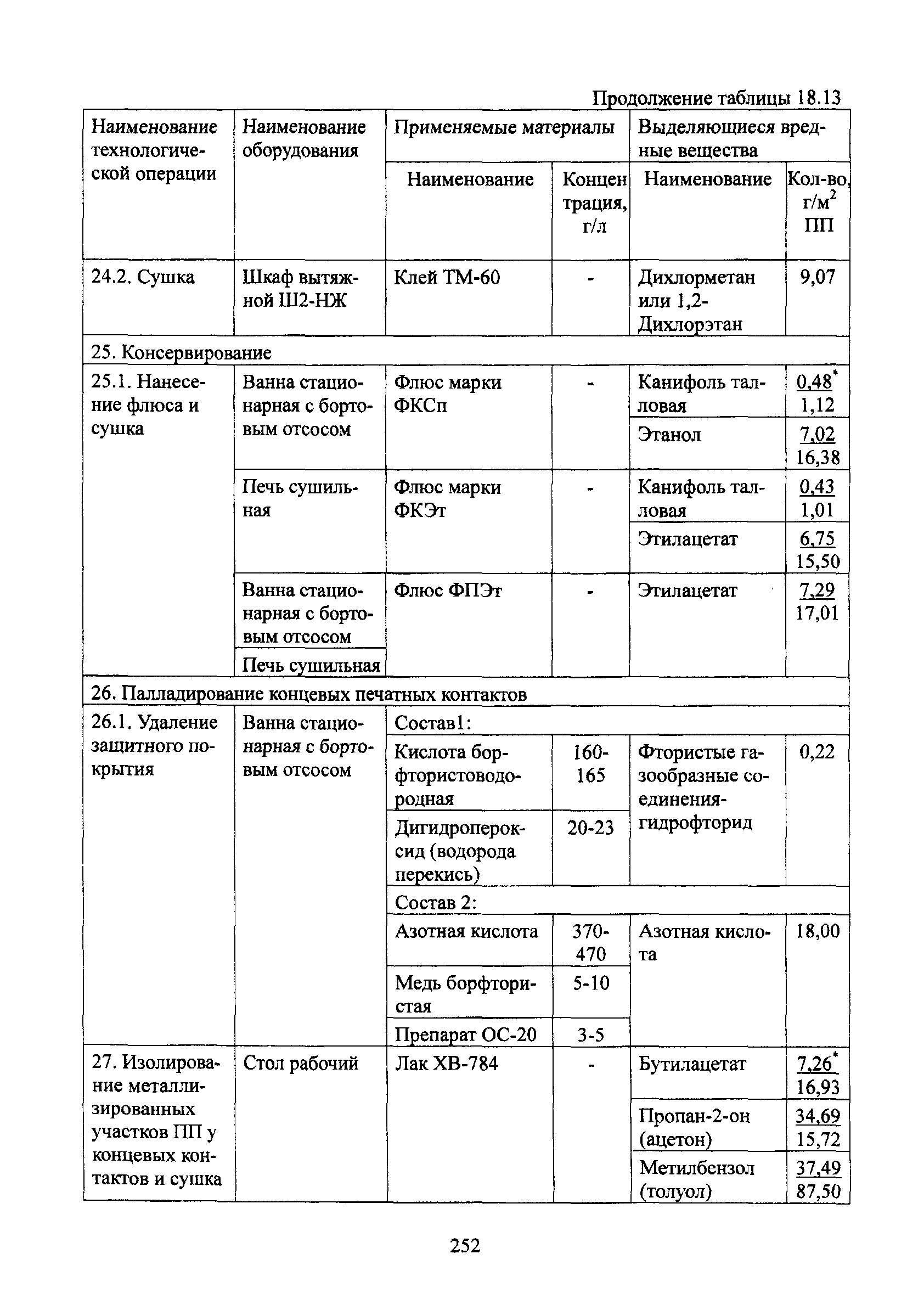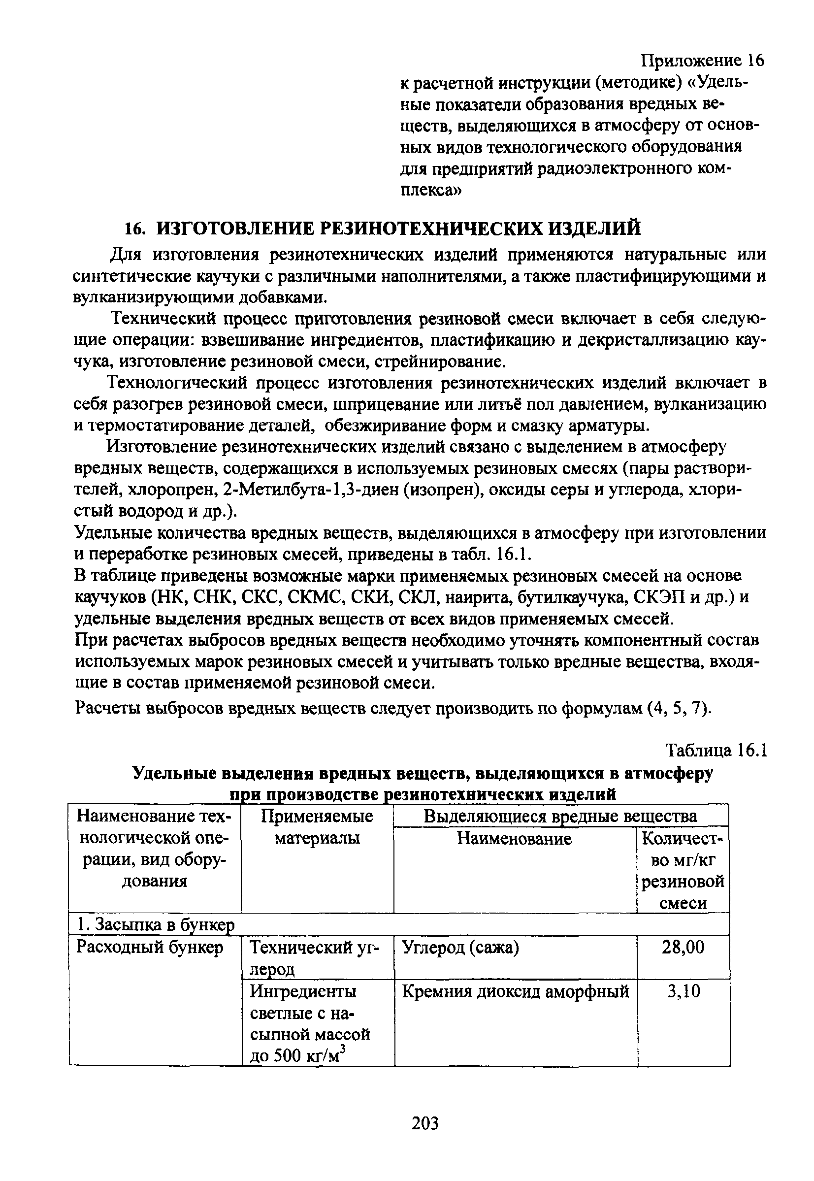 Расчетная инструкция (методика). Удельные показатели образования вредных веществ, выделяющихся в атмосферу от основных видов технологического оборудования для предприятий радиоэлектронного комплекса| Статус: | действует | | Название рус.: | Расчетная инструкция (методика). Удельные показатели образования вредных веществ, выделяющихся в атмосферу от основных видов технологического оборудования для предприятий радиоэлектронного комплекса | | Дата добавления в базу: | 01.09.2013 | | Дата актуализации: | 01.01.2021 | | Дата введения: | 01.01.2007 | | Область применения: | В методике обобщены многолетние данные натурных замеров, выполнявшиеся при проведении инвентаризации, разработке проектов нормативов предельно допустимых выбросов в атмосферу (ПДВ) на предприятиях г. Санкт- Петербурга, новейшие паспортные данные по технологическим процессам и оборудованию.