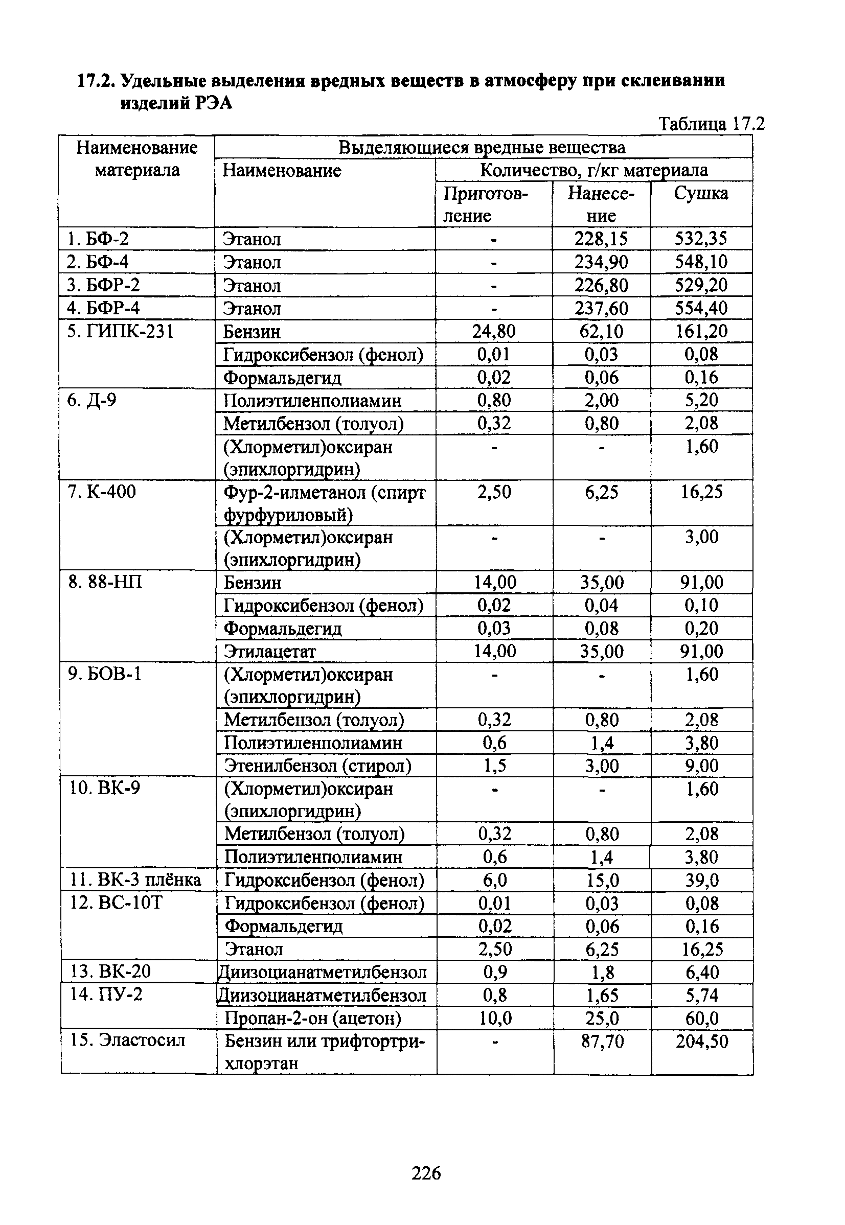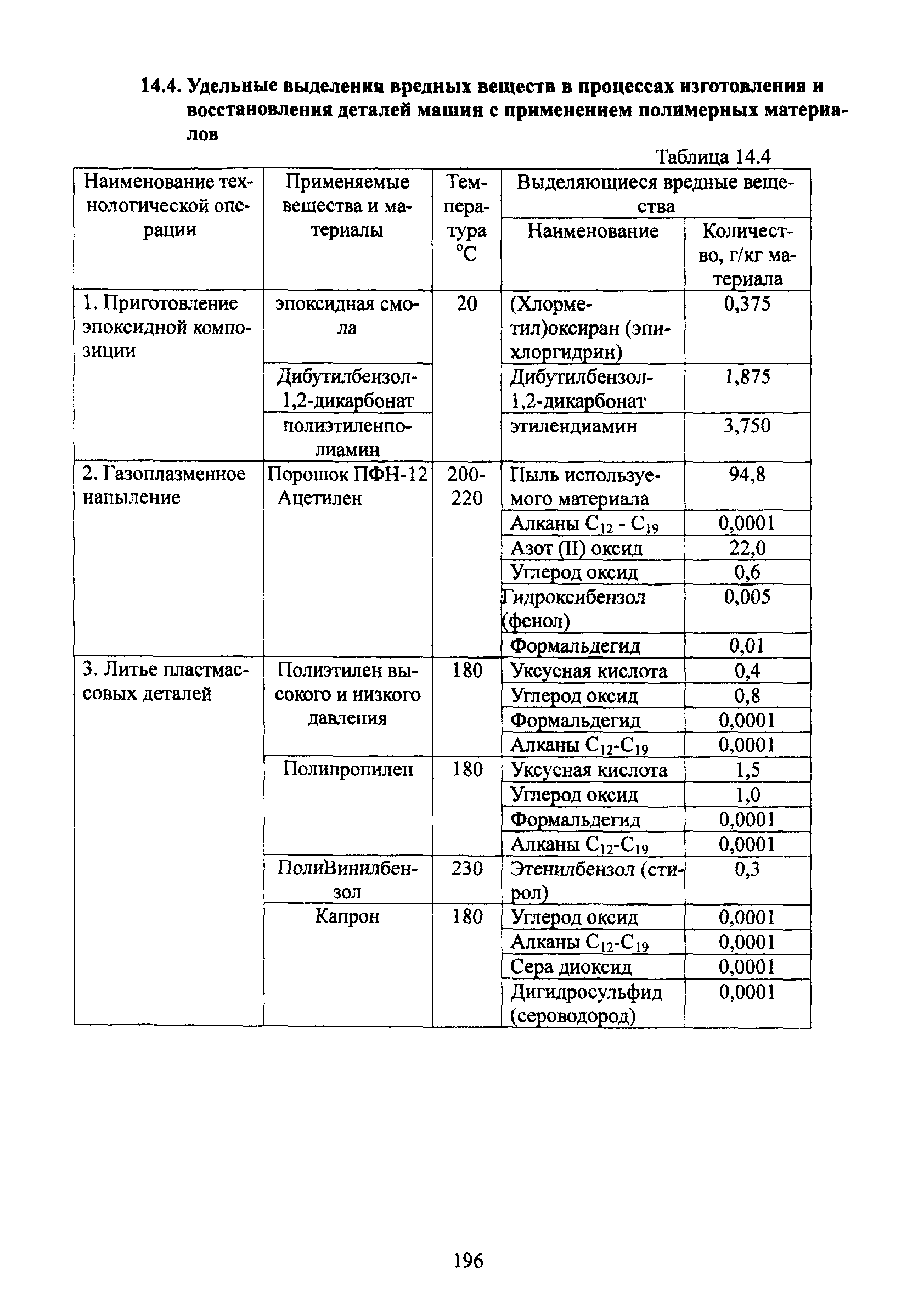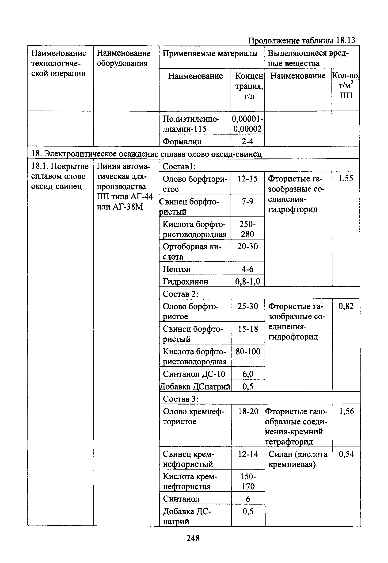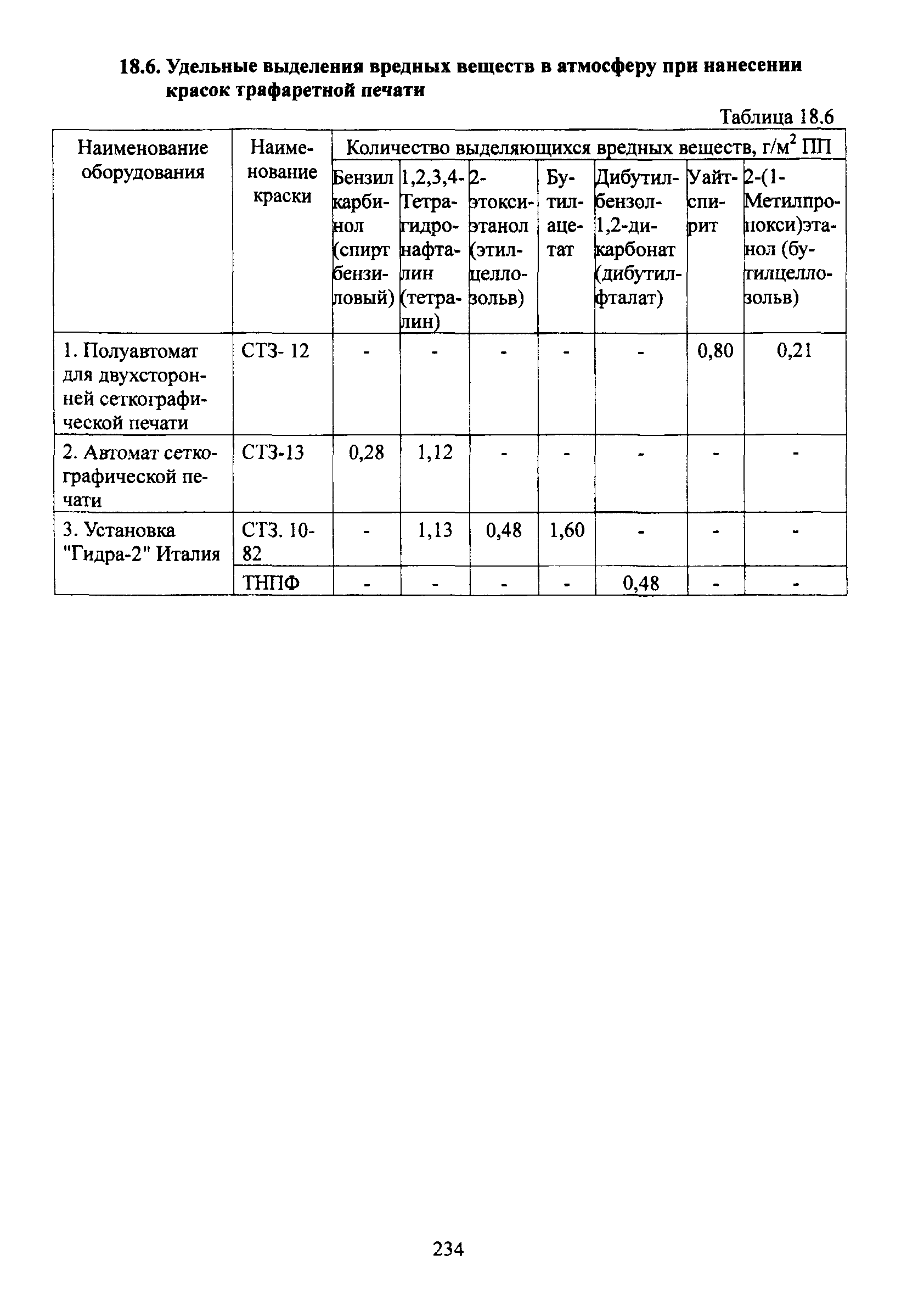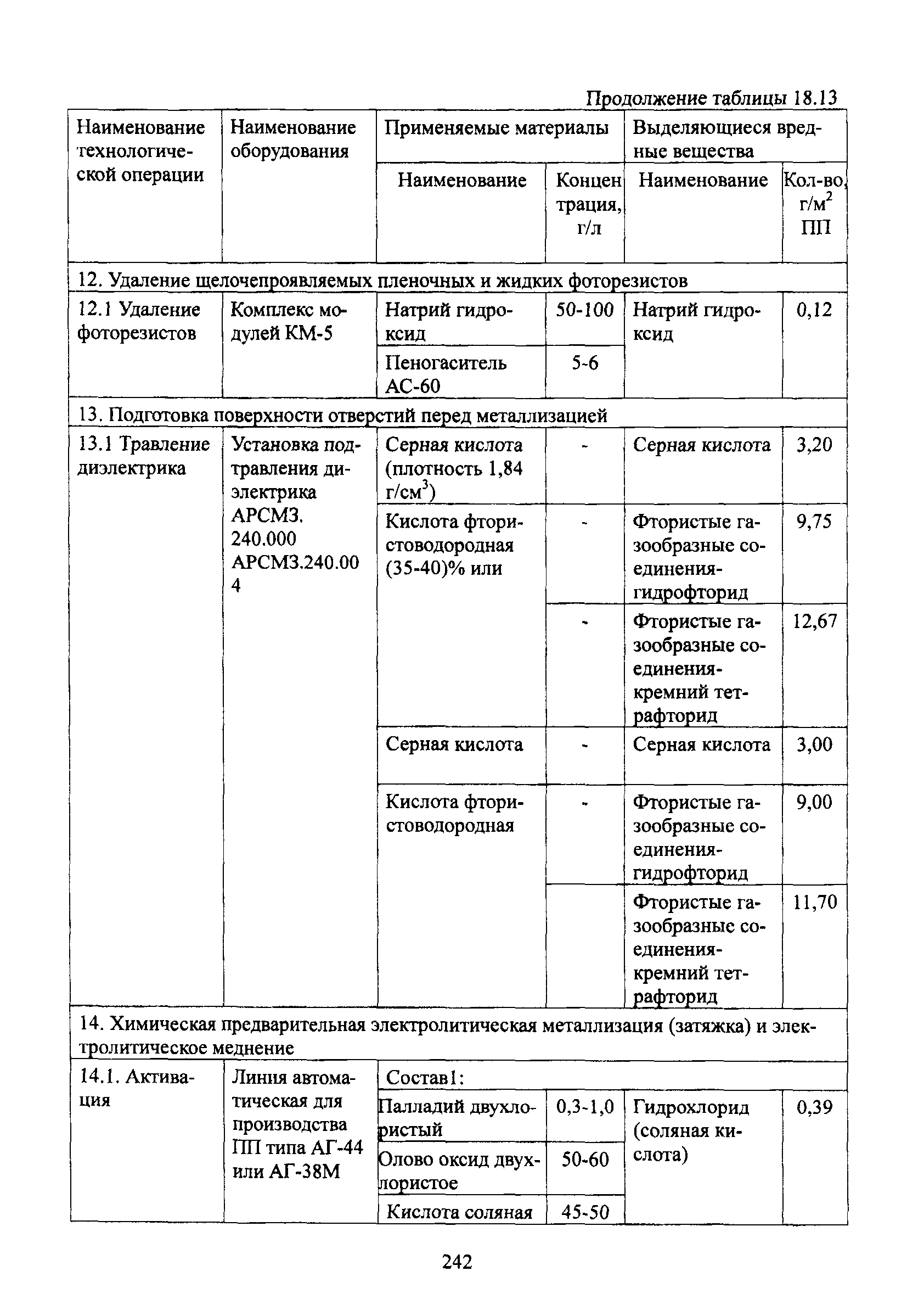 Расчетная инструкция (методика). Удельные показатели образования вредных веществ, выделяющихся в атмосферу от основных видов технологического оборудования для предприятий радиоэлектронного комплекса| Статус: | действует | | Название рус.: | Расчетная инструкция (методика). Удельные показатели образования вредных веществ, выделяющихся в атмосферу от основных видов технологического оборудования для предприятий радиоэлектронного комплекса | | Дата добавления в базу: | 01.09.2013 | | Дата актуализации: | 01.01.2021 | | Дата введения: | 01.01.2007 | | Область применения: | В методике обобщены многолетние данные натурных замеров, выполнявшиеся при проведении инвентаризации, разработке проектов нормативов предельно допустимых выбросов в атмосферу (ПДВ) на предприятиях г. Санкт- Петербурга, новейшие паспортные данные по технологическим процессам и оборудованию.