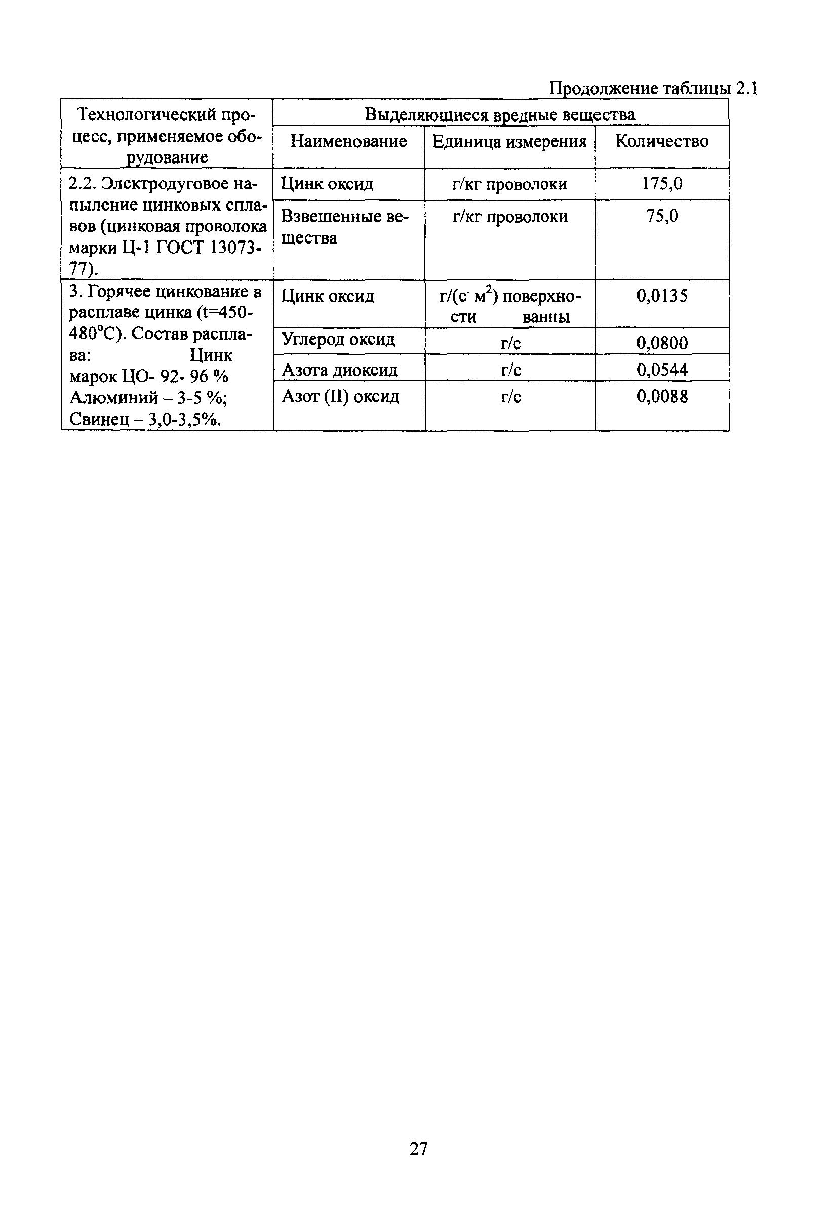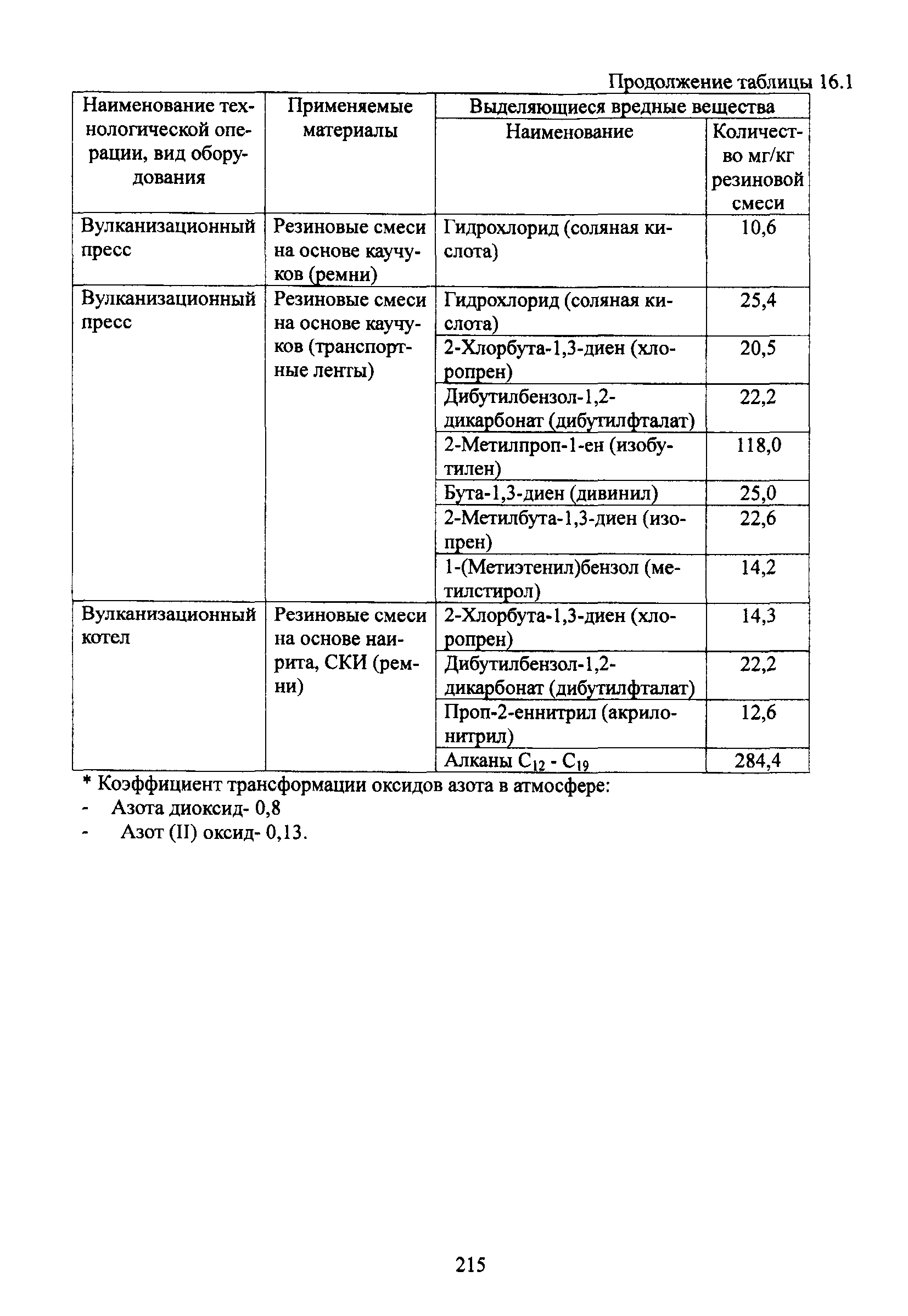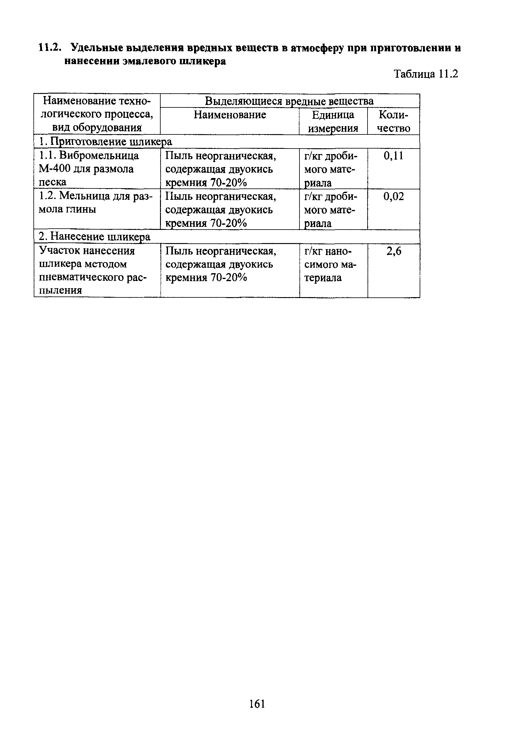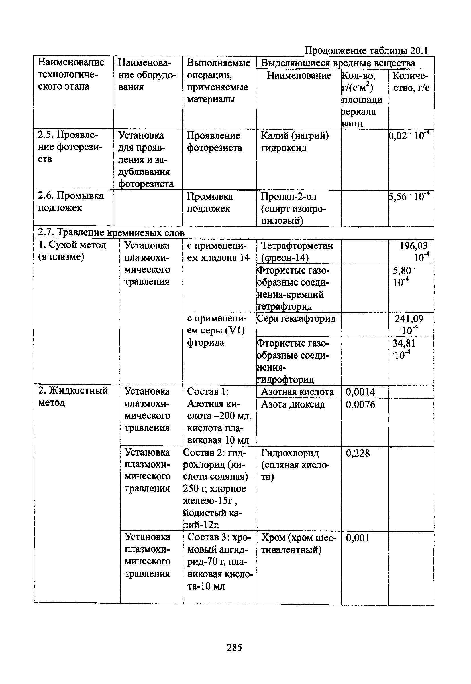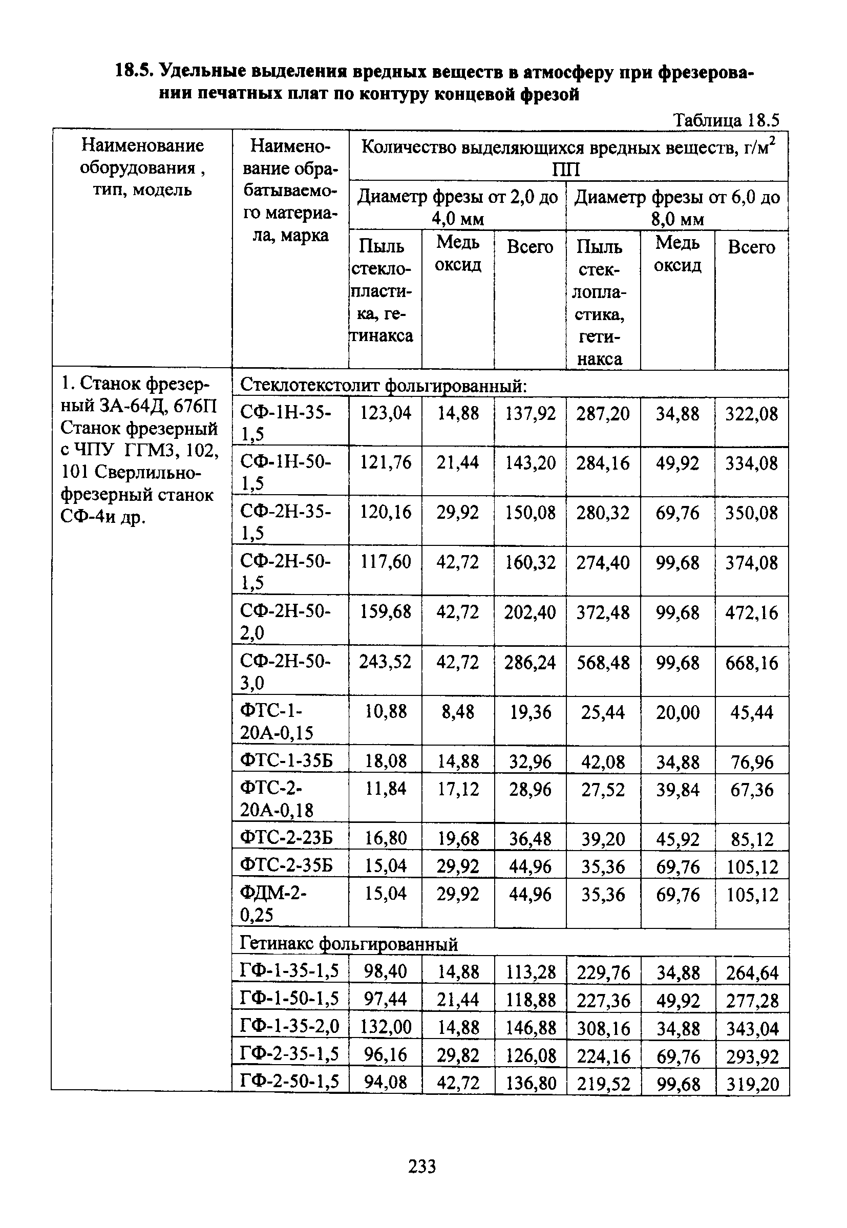Расчетная инструкция (методика). Удельные показатели образования вредных веществ, выделяющихся в атмосферу от основных видов технологического оборудования для предприятий радиоэлектронного комплекса| Статус: | действует | | Название рус.: | Расчетная инструкция (методика). Удельные показатели образования вредных веществ, выделяющихся в атмосферу от основных видов технологического оборудования для предприятий радиоэлектронного комплекса | | Дата добавления в базу: | 01.09.2013 | | Дата актуализации: | 01.01.2021 | | Дата введения: | 01.01.2007 | | Область применения: | В методике обобщены многолетние данные натурных замеров, выполнявшиеся при проведении инвентаризации, разработке проектов нормативов предельно допустимых выбросов в атмосферу (ПДВ) на предприятиях г. Санкт- Петербурга, новейшие паспортные данные по технологическим процессам и оборудованию.