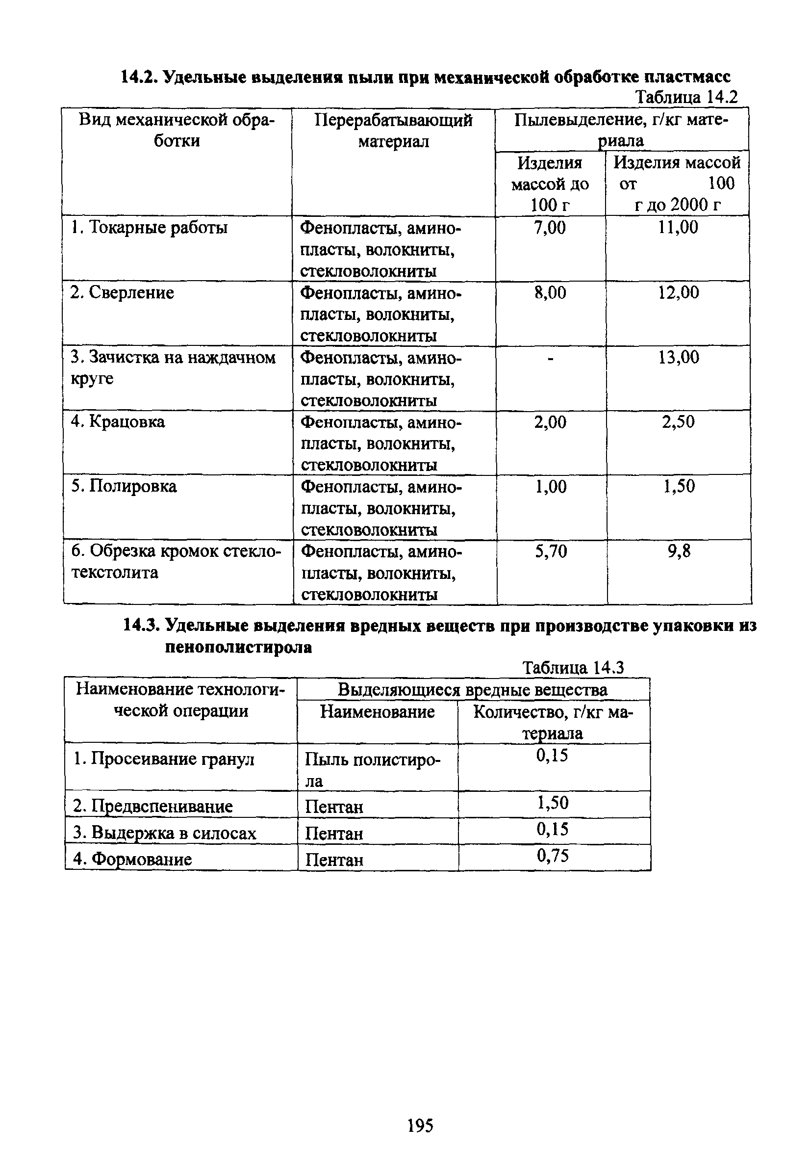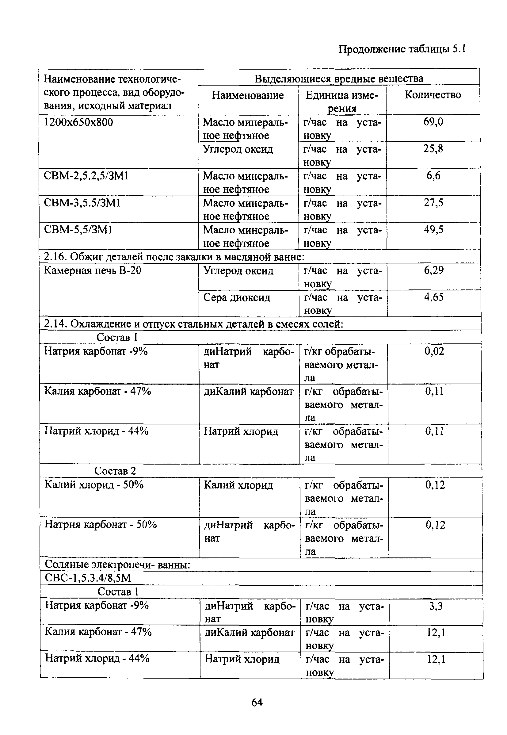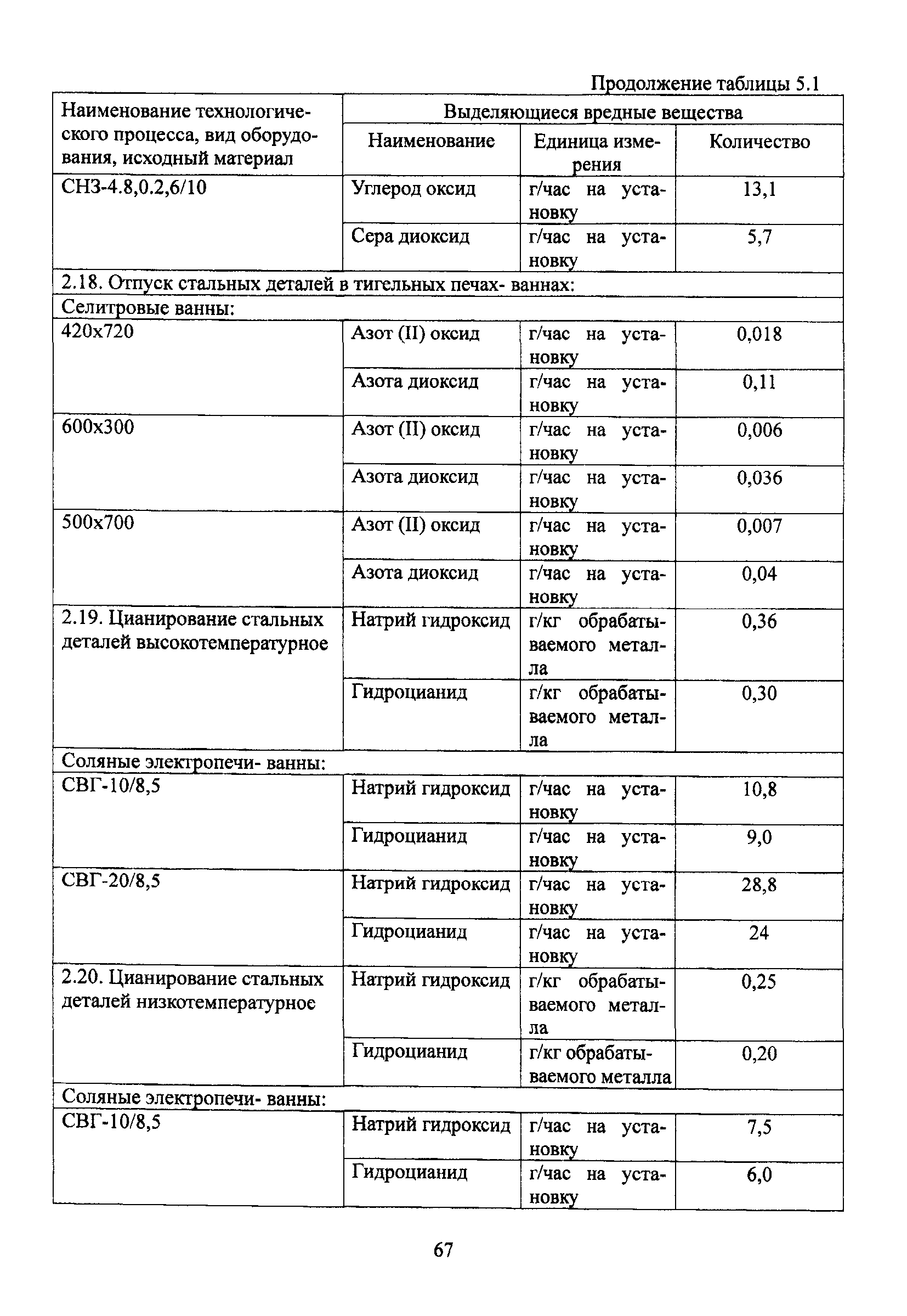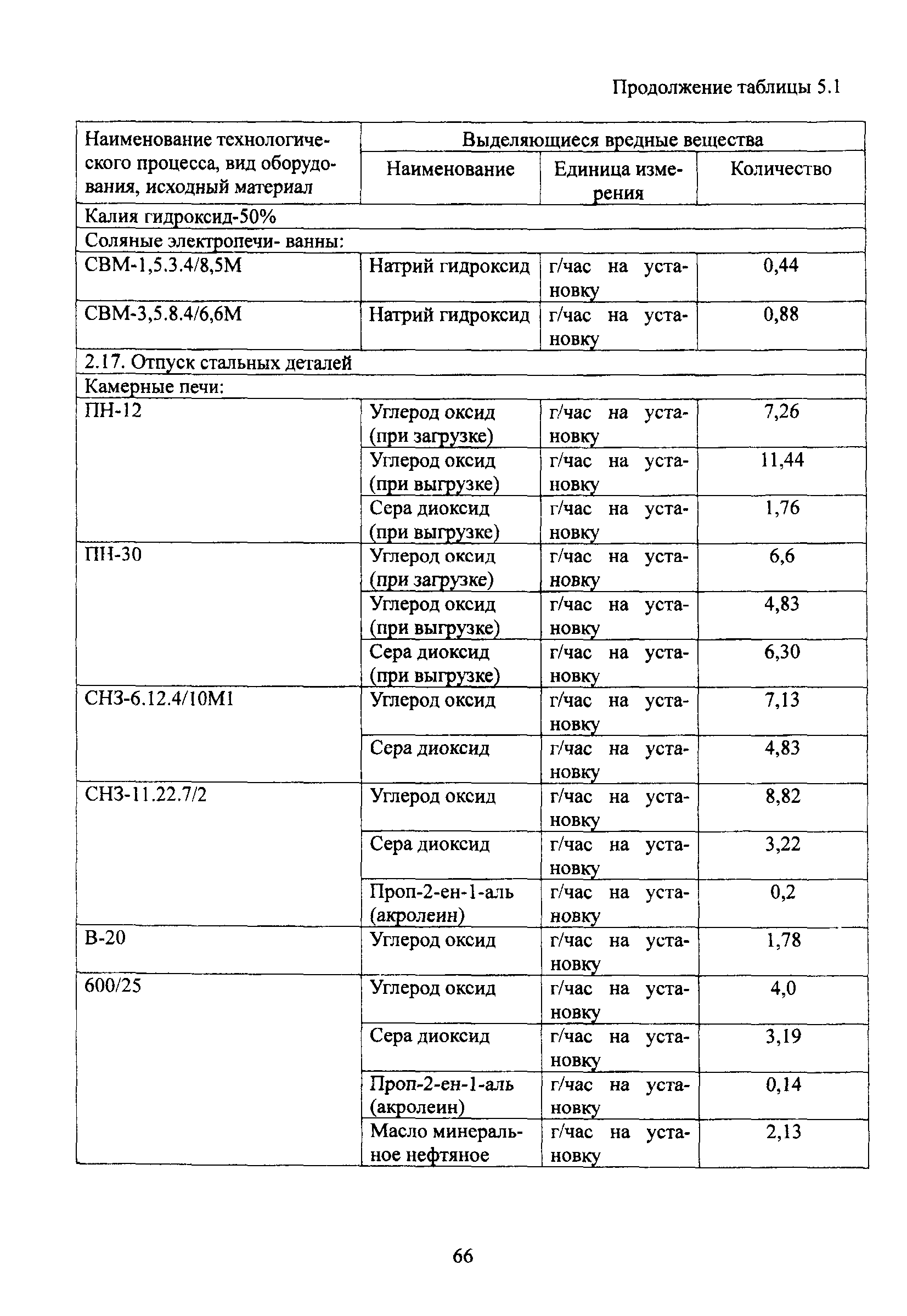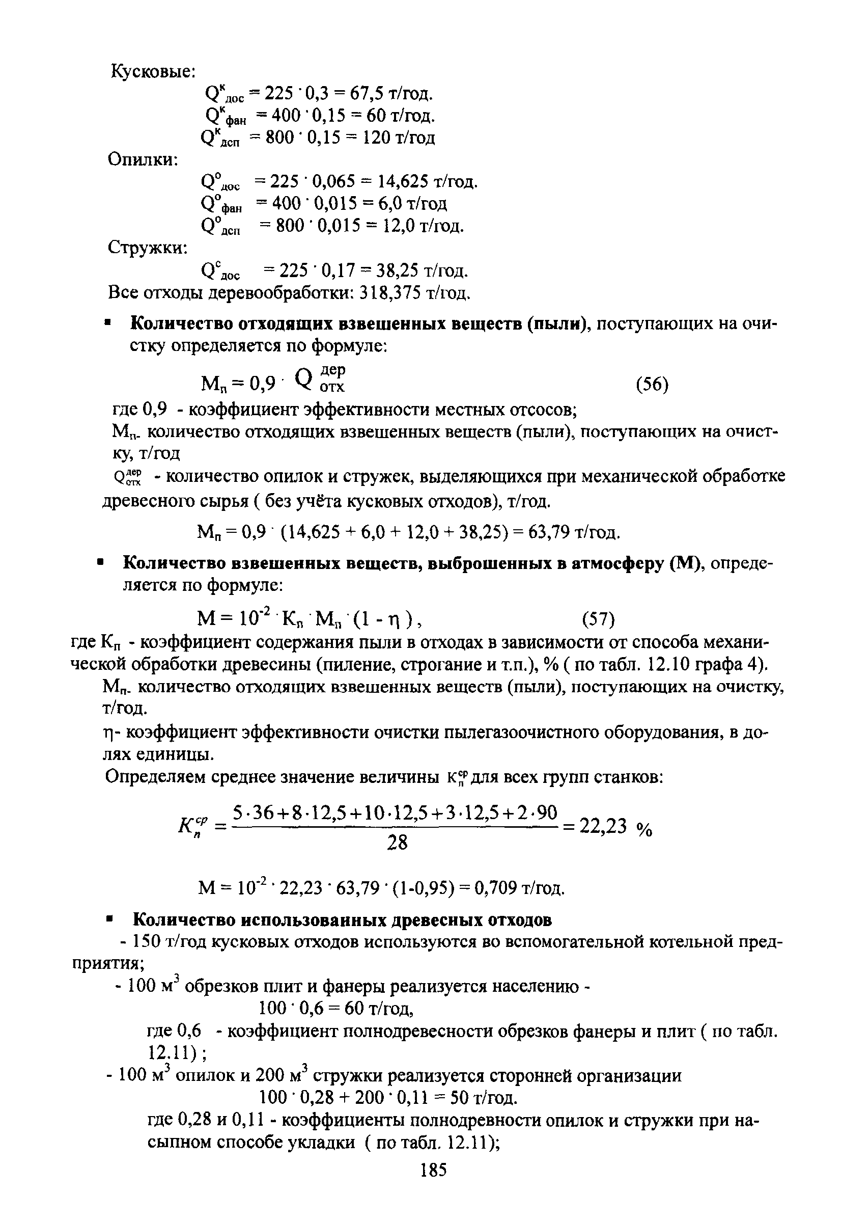 Методика предназначена для определения выбросов вредных веществ в атмосферу от промышленных производств. | | Оглавление: | Порядок применения расчетной инструкции (методики) 1. Область применения методики 2. Основные положения 3. Основные рекомендации по вопросу применения методики I. Введение II. Общие положения III. Методология расчета выбросов загрязняющих веществ в атмосферу на основании инструментальных замеров IV. Методология расчета выбросов загрязняющих веществ от источников выделений (единицы оборудования) на основании удельных показателей V. Методология расчета выбросов загрязняющих веществ, поступающих в атмосферу от источников выбросов 5.1. Количество вредных веществ, удаляемых местными отсосами 5.2. Суммарная эффективность двухступенчатой очистки 5.3. Количество вредных веществ, удаляемых общеобменной вентиляцией 5.4. Количество вредных веществ, удаляемых общеобменной вентиляцией в случае, если оборудование оснащено рециркуляционными пылеулавливающими агрегатами 5.5. Учет длительности выброса загрязняющего вещества 5.6. Годовые выбросы вредных веществ VI. Методология расчета выбросов загрязняющих веществ при сжигании топлива в горнах и бытовых теплогенераторах 6.1. Расчет количества топлива, сжигаемого в теплогенераторах 6.2. Расчет объема дымовых газов 6.3. Расчет температуры дымовых газов 6.4. Выделения вредных веществ при сжигании топлива 6.4.1. Расчет выделений твердых частиц 6.4.2. Расчет выделений серы диоксида 6.4.3. Расчет выделений углерода оксида 6.4.4. Расчет выделений оксидов азота 6.4.5. Расчет выделений бенз/а/пирена 6.5. Выделения вредных веществ при розжиге горнов с применением нефтесодержащих отходов Приложение 1 Сжигание топлива в горнах и бытовых теплогенераторах (печах) Приложение 2 Нанесение покрытий путем напыления и в расплавах металлов Приложение 3 Литейное производство Приложение 4 Производство деталей методом порошковой металлургии Приложение 5 Кузнечно - прессовое, штамповочное производство и термическая обработка металлов Приложение 6 Механическая обработка материалов Приложение 7 Общезаводские лаборатории Приложение 8 Механическая подготовка поверхностей деталей Приложение 9 Участки подготовки для нанесения электрохимических покрытий Приложение 10 Производство лакокрасочных покрытий Приложение 11 Производство эмалевых покрытий Приложение 12 Деревообрабатывающее производство Приложение 13 Участки остеклования Приложение 14 Производства по переработке пластмасс Приложение 15 Производство деталей из полимерных композиционных материалов (ПКМ) Приложение 16 Изготовление резинотехнических изделий Приложение 17 Участки герметизации изделий радиоэлектронной аппаратуры полимерными материалами Приложение 18 Производство печатных плат Приложение 19 Микроэлектронное производство Приложение 20 Производство активно-матричных жидкокристаллических и автоэмиссионных экранов (АМ ЖКЭ) Приложение 21 Сборочно-монтажное производство узлов и блоков радиоэлектронной аппаратуры Приложение 22 Вспомогательные и бытовые службы Приложение 23 Условные обозначения | | Разработан: | ООО ЭВИОН ОАО ГПНИИ-5