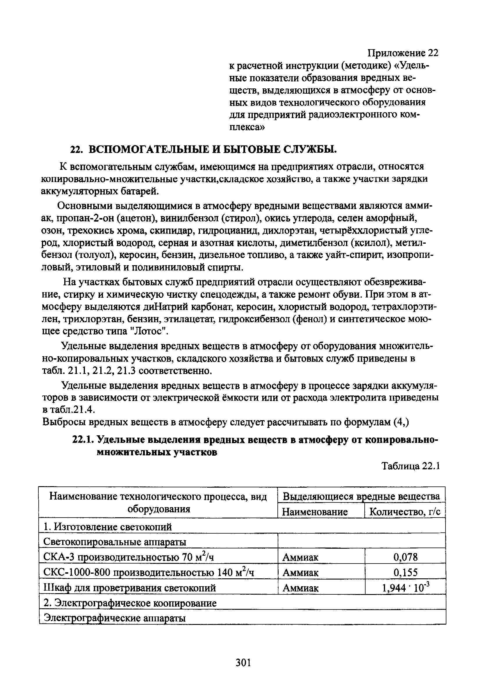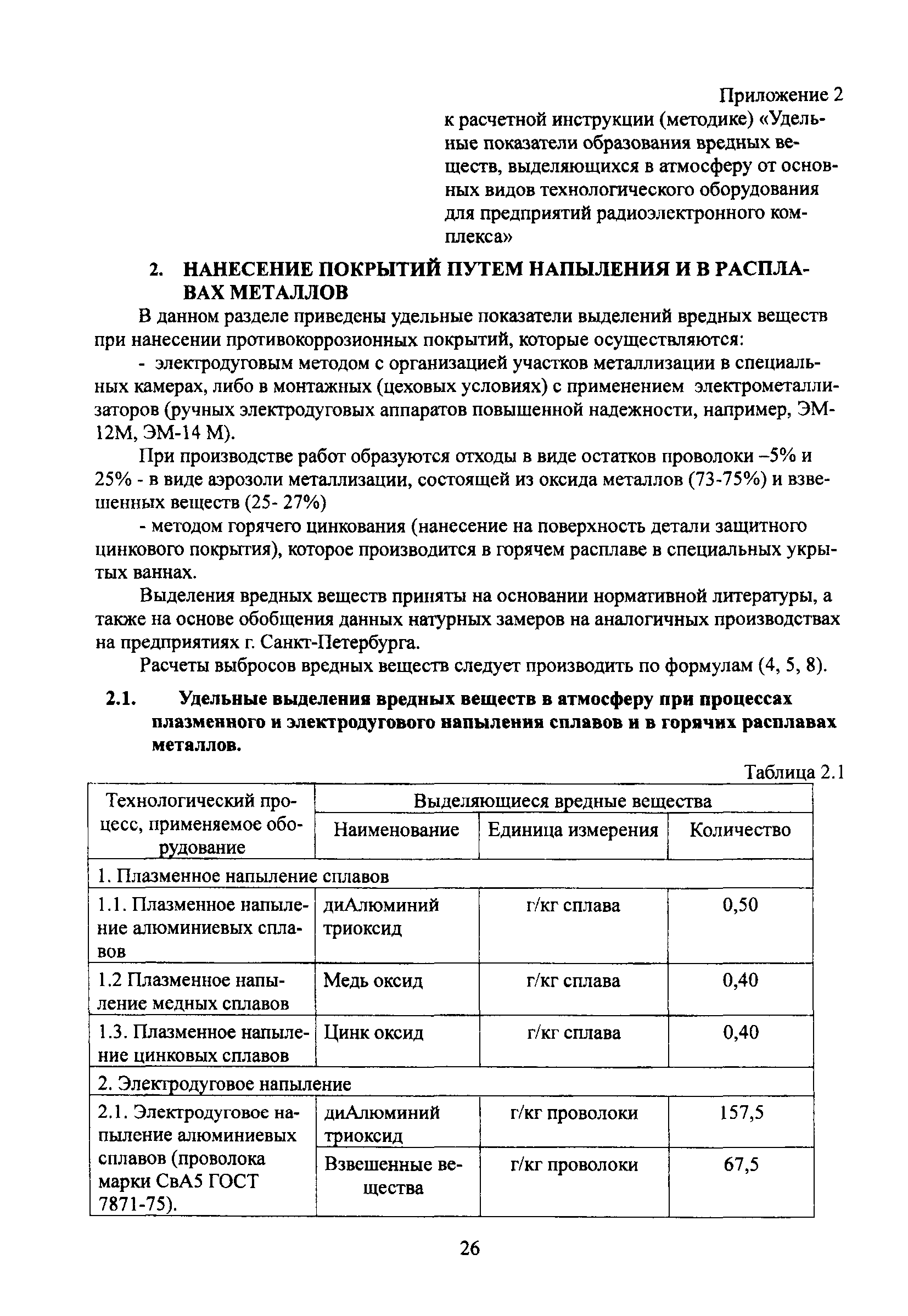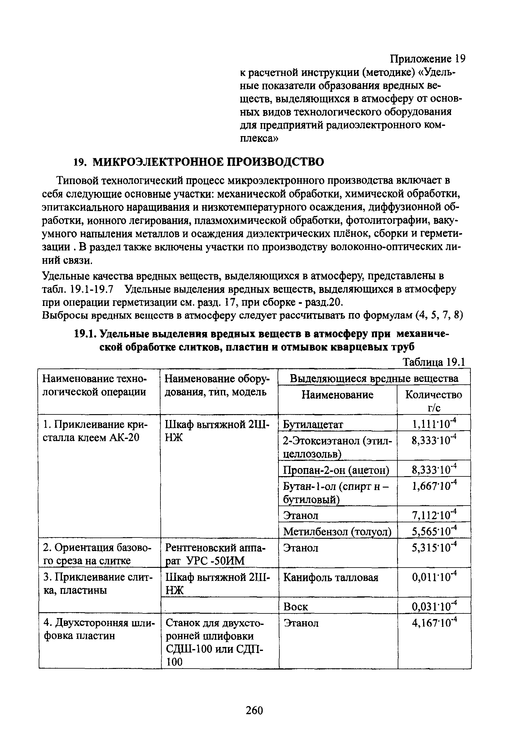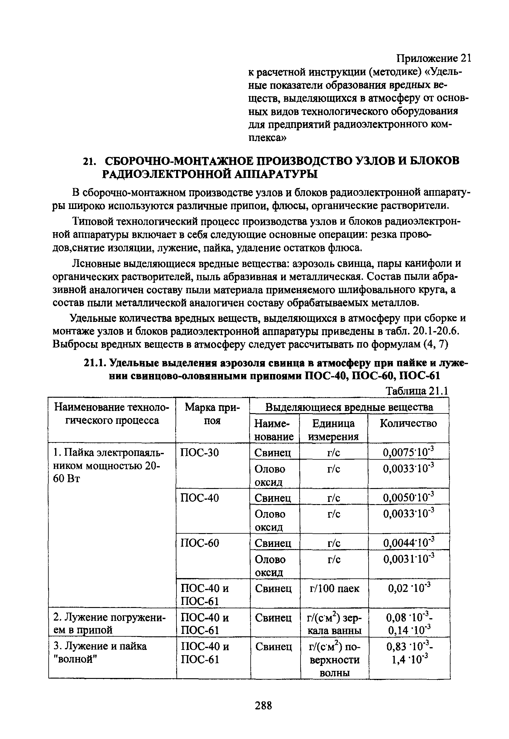 Скачать Расчетная инструкция (методика). Удельные показатели образования вредных веществ, выделяющихся в атмосферу от основных видов технологического оборудования для предприятий радиоэлектронного комплексаДата актуализации: 01.01.2021
