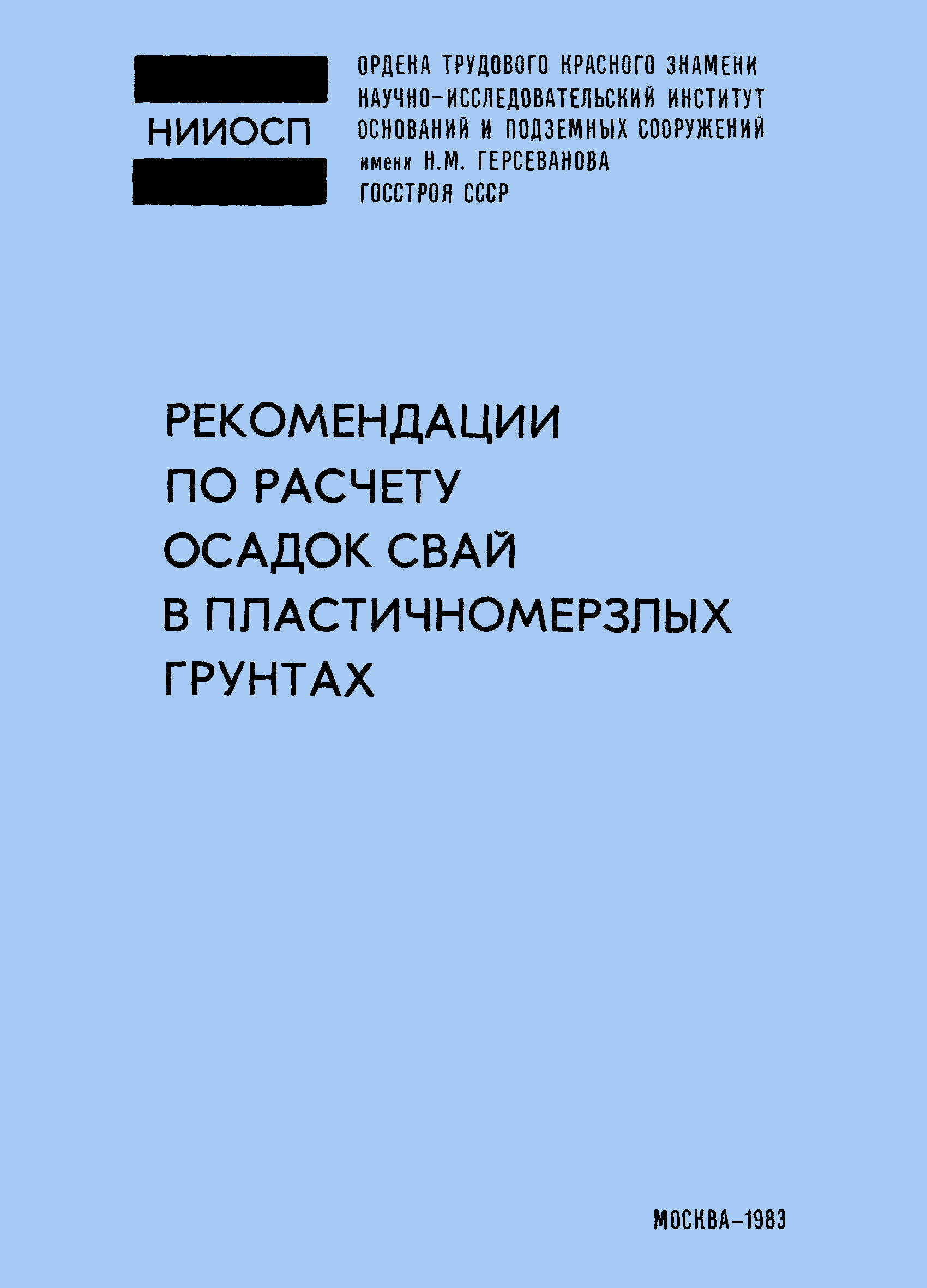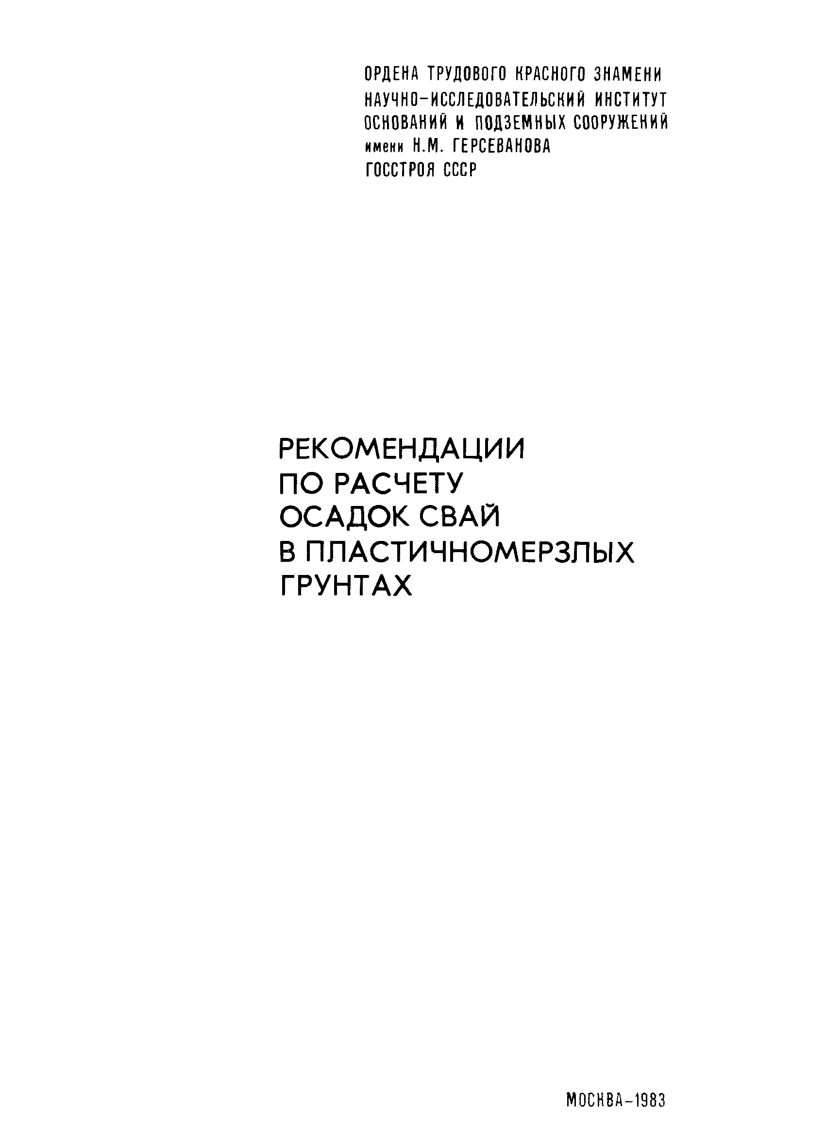 | Название рус.: | Рекомендации по расчету осадок свай в пластичномерзлых грунтах |