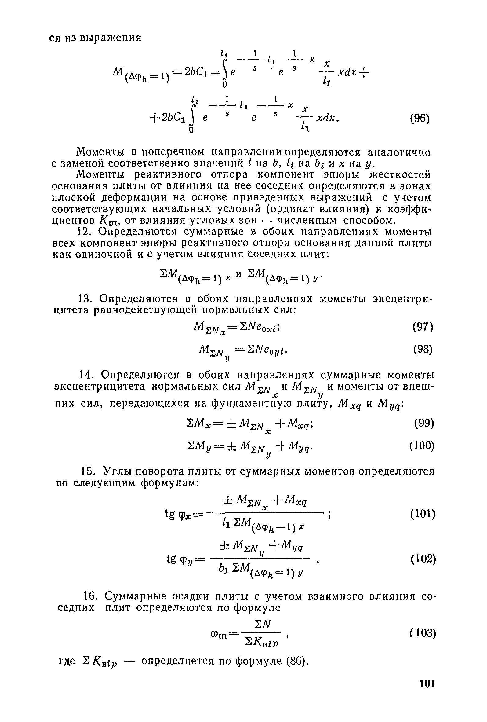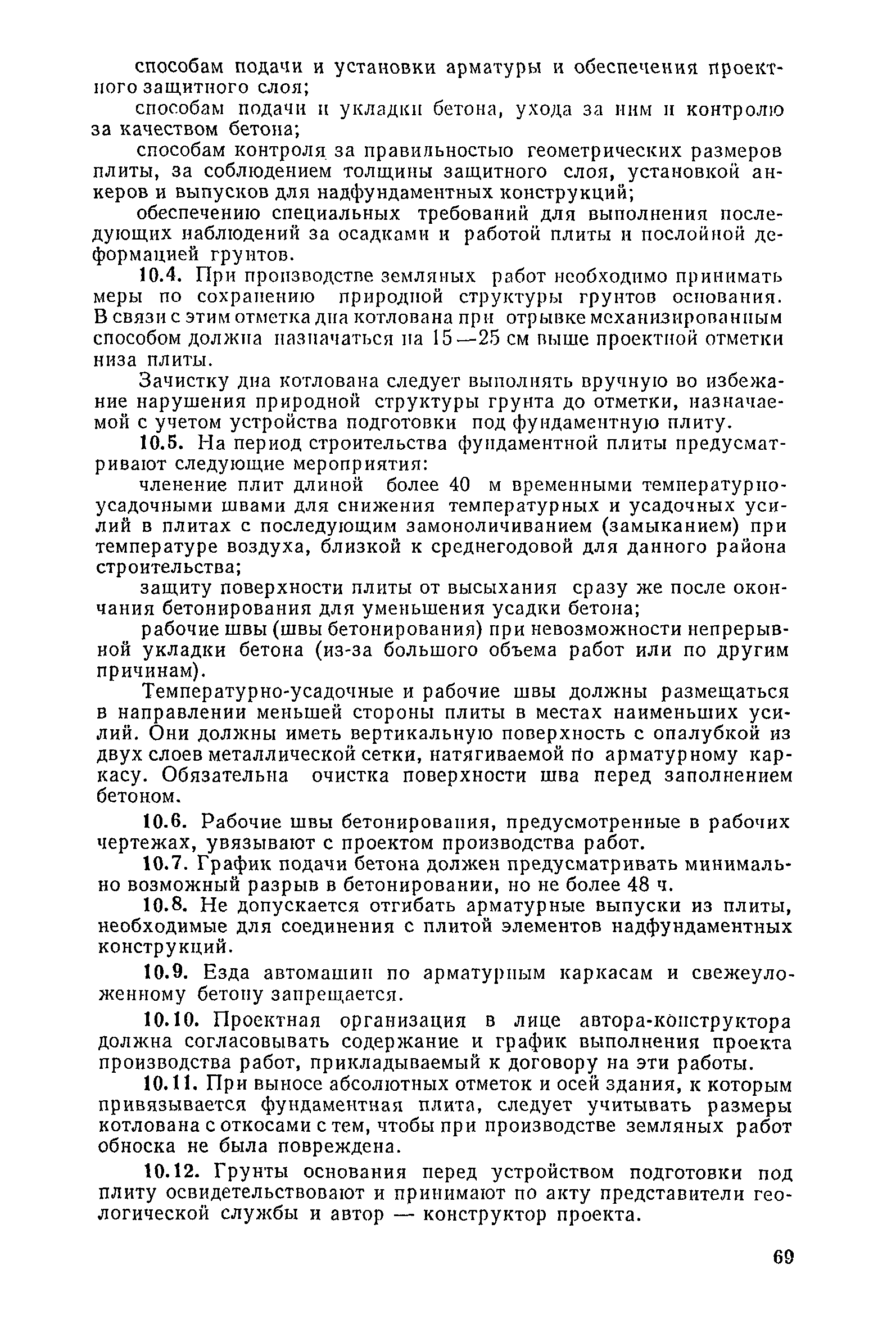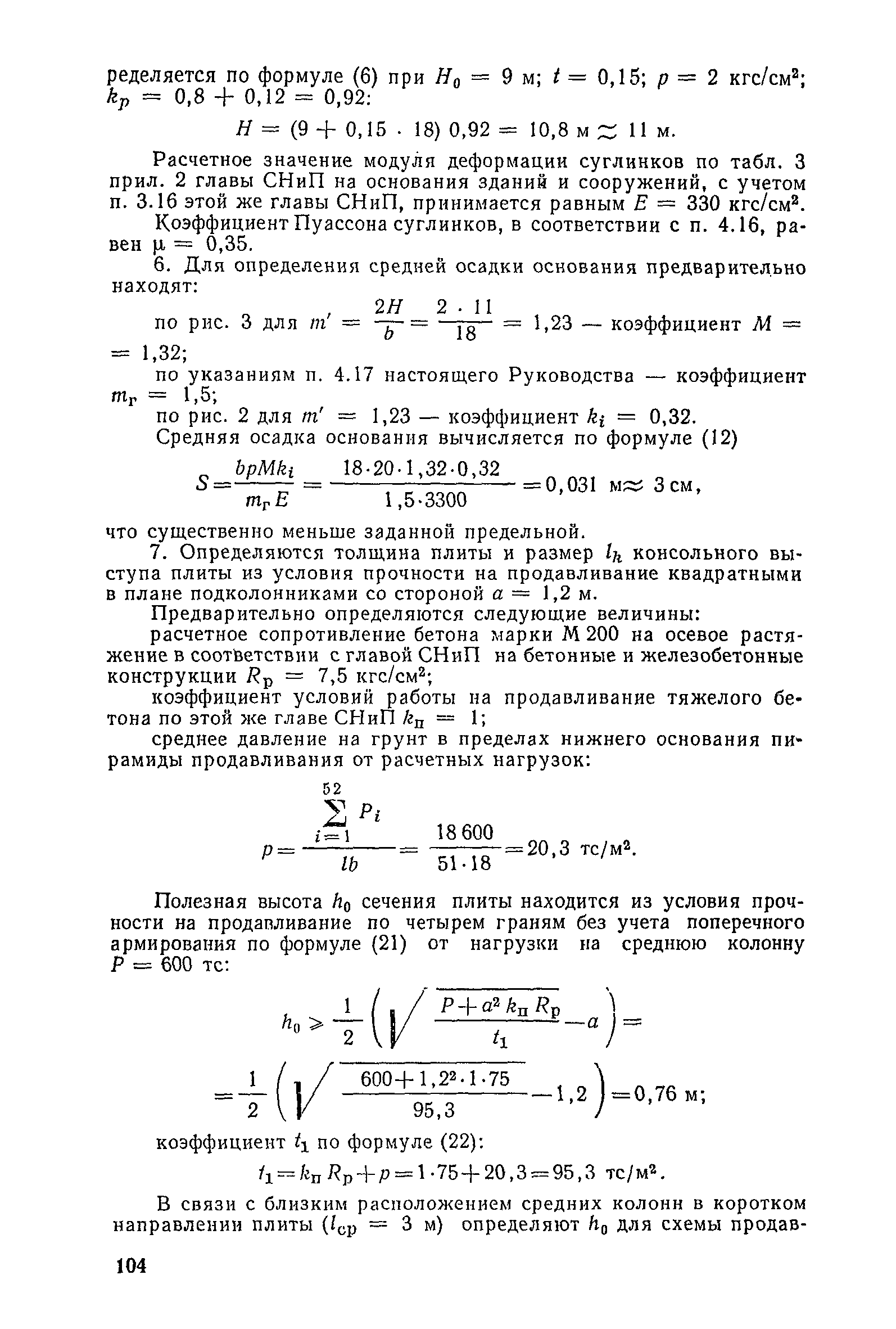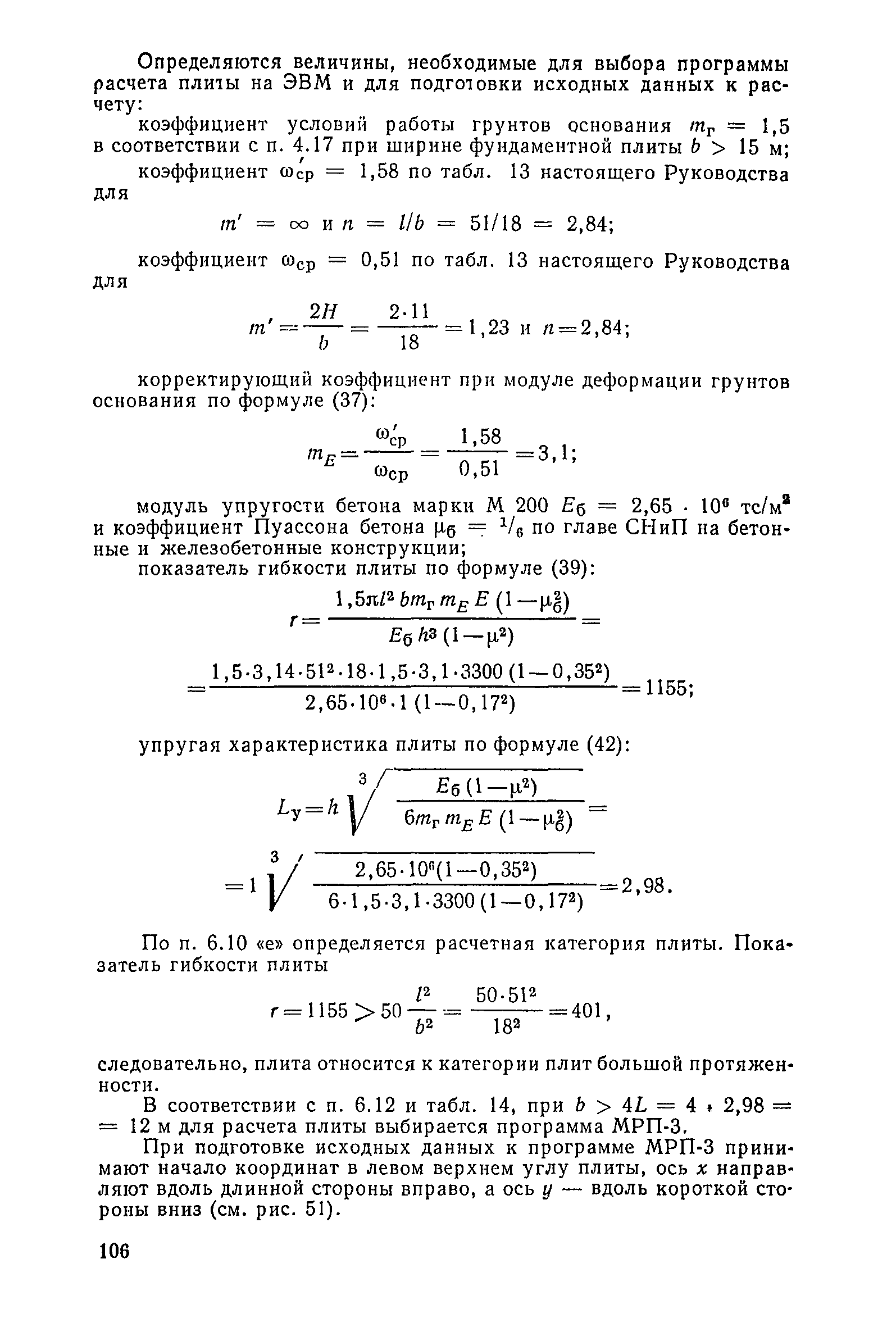 | Оглавление: | Предисловие 1. Общие указания 2. Состав инженерно-геологических изысканий 3. Основные расчетные положения 4. Расчет деформаций основания 5. Предварительное определение размеров фундаментных плит 6. Статический расчет фундаментных плит 7. Особенности конструирования 8. Антикоррозионные мероприятия 9. Состав проекта 10. Особенности производства и контроля работ при устройстве монолитных фундаментных плит 11. Натурные наблюдения за осадками фундаментных плит Приложение 1. Методика определения переменных коэффициентов жесткости оснований больших прямоугольных одиночных и групповых фундаментных плит Приложение 2. Зависимости для расчета кренов и осадок больших прямоугольных одиночных и групповых фундаментных плит Приложение 3. Пример расчета и конструирования фундаментной плиты Приложение 4. Материалы для натурных наблюдений за осадками фундаментных плит |