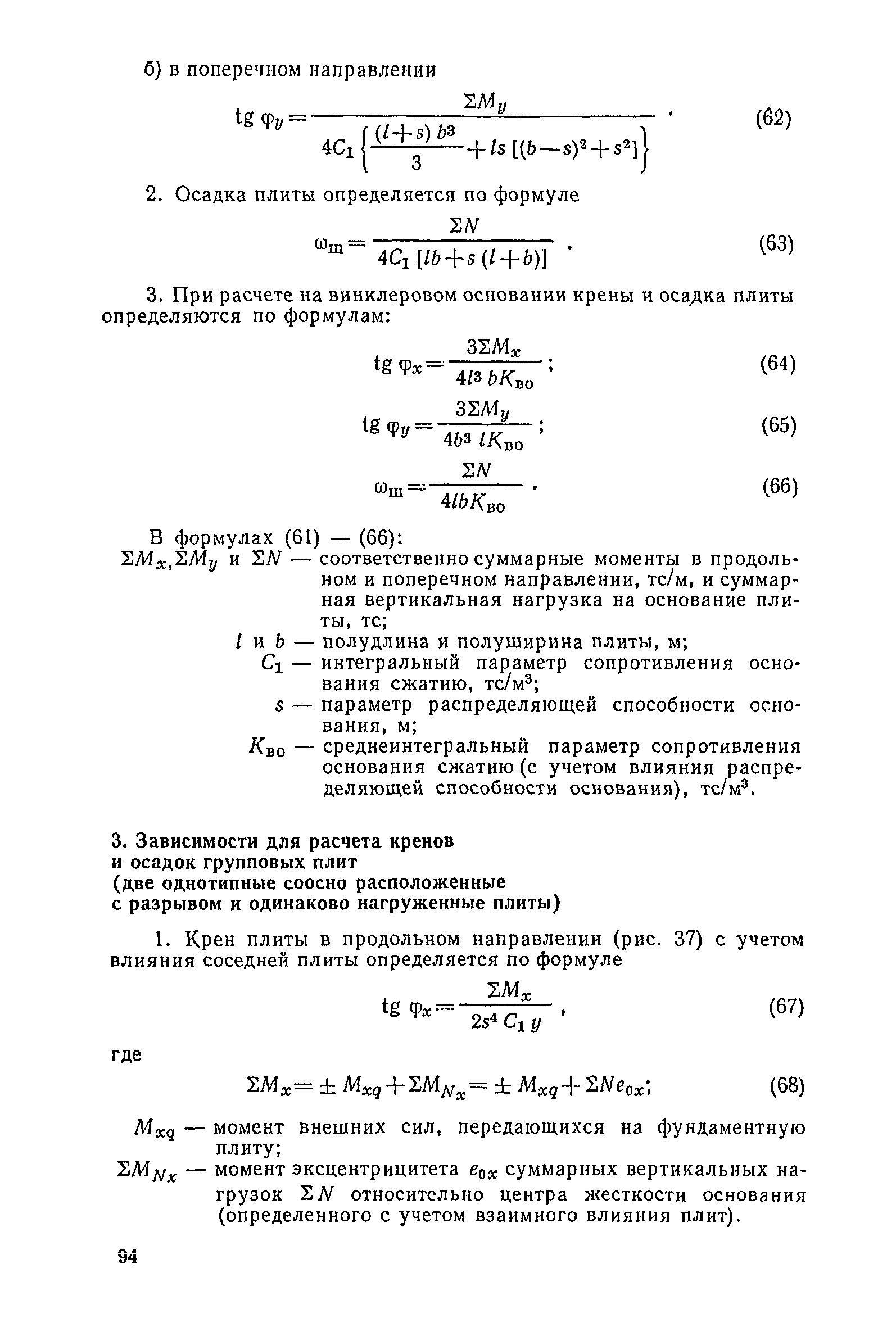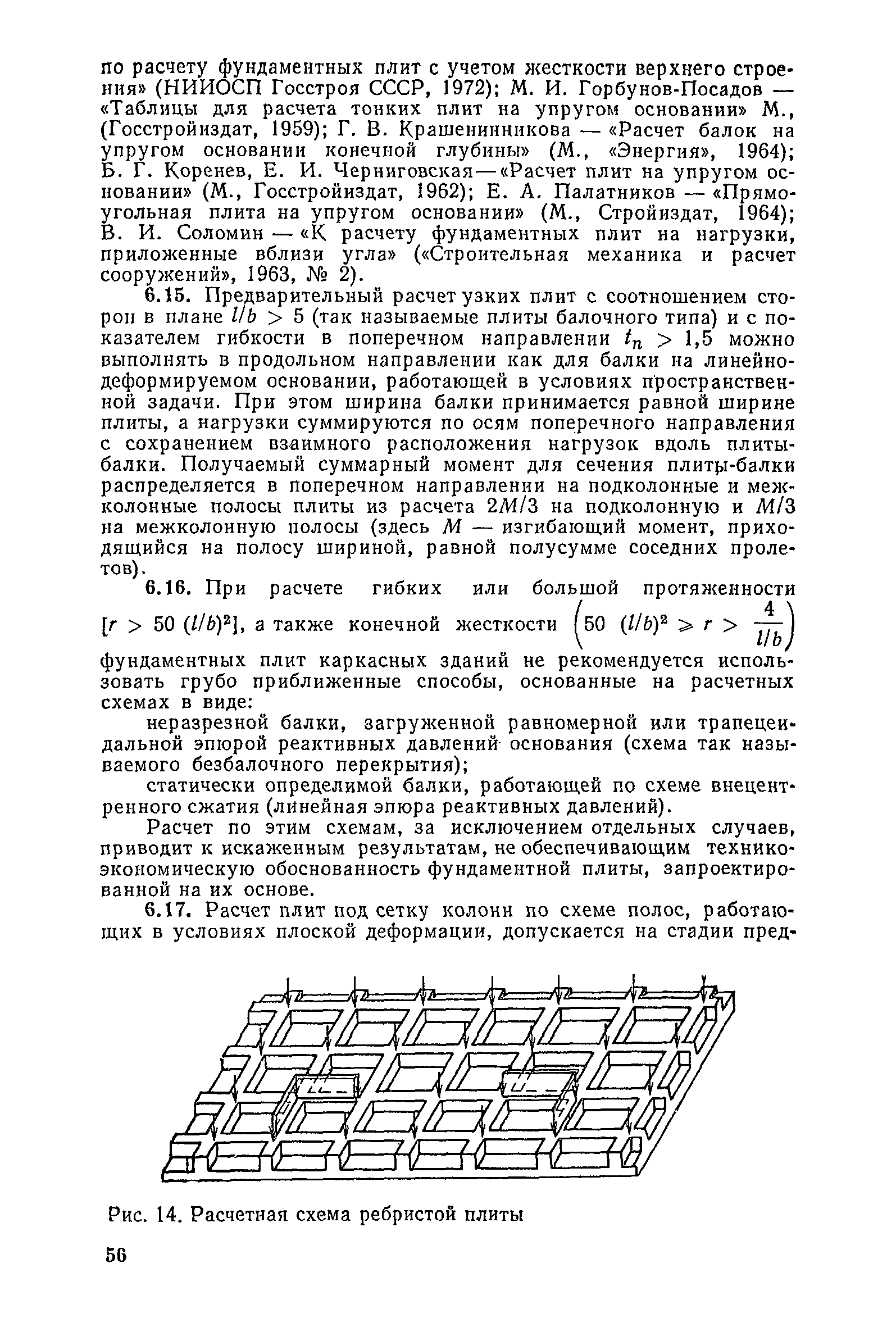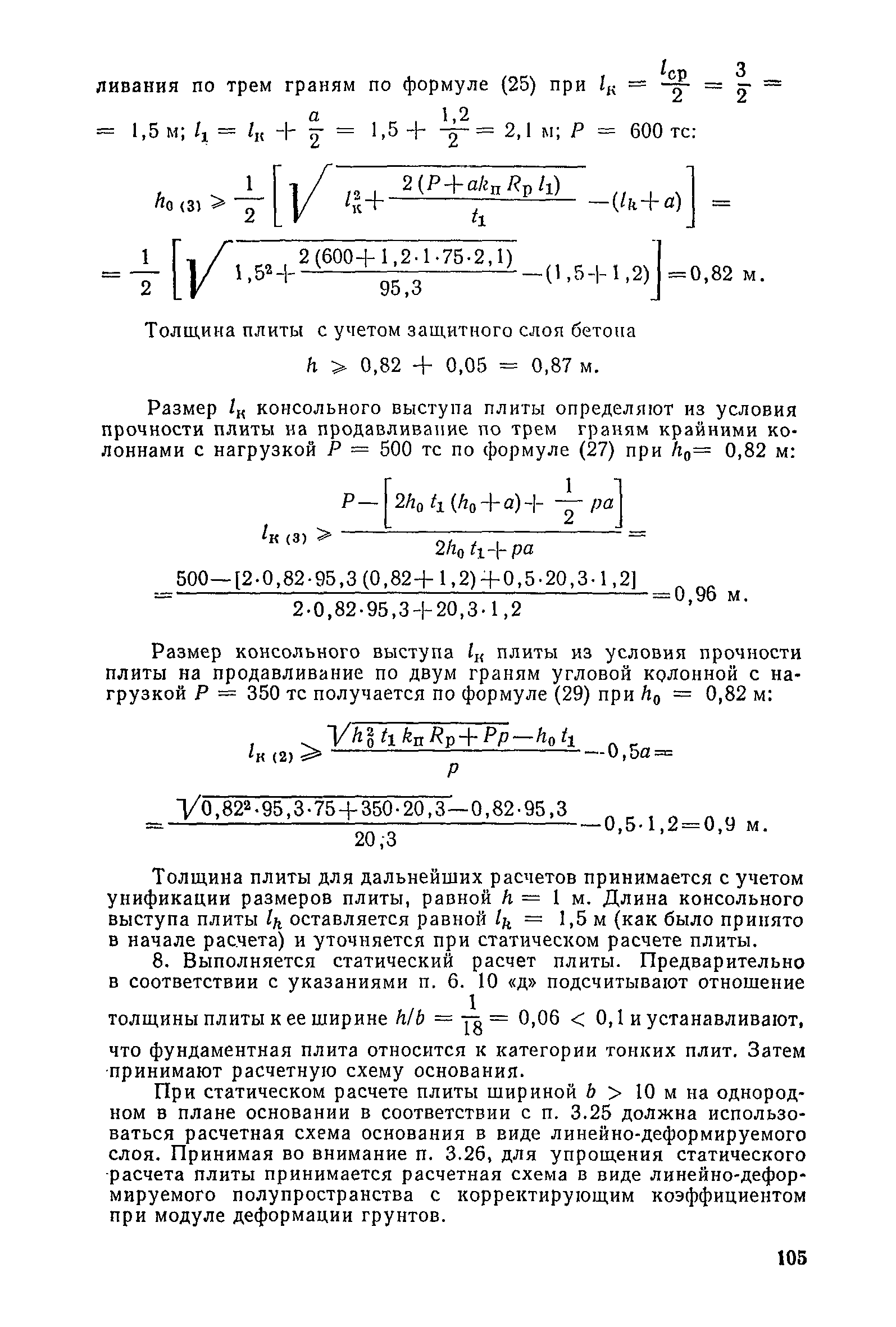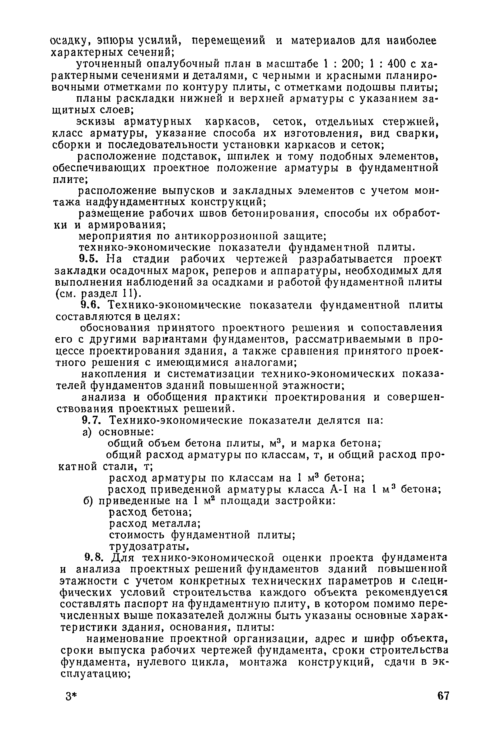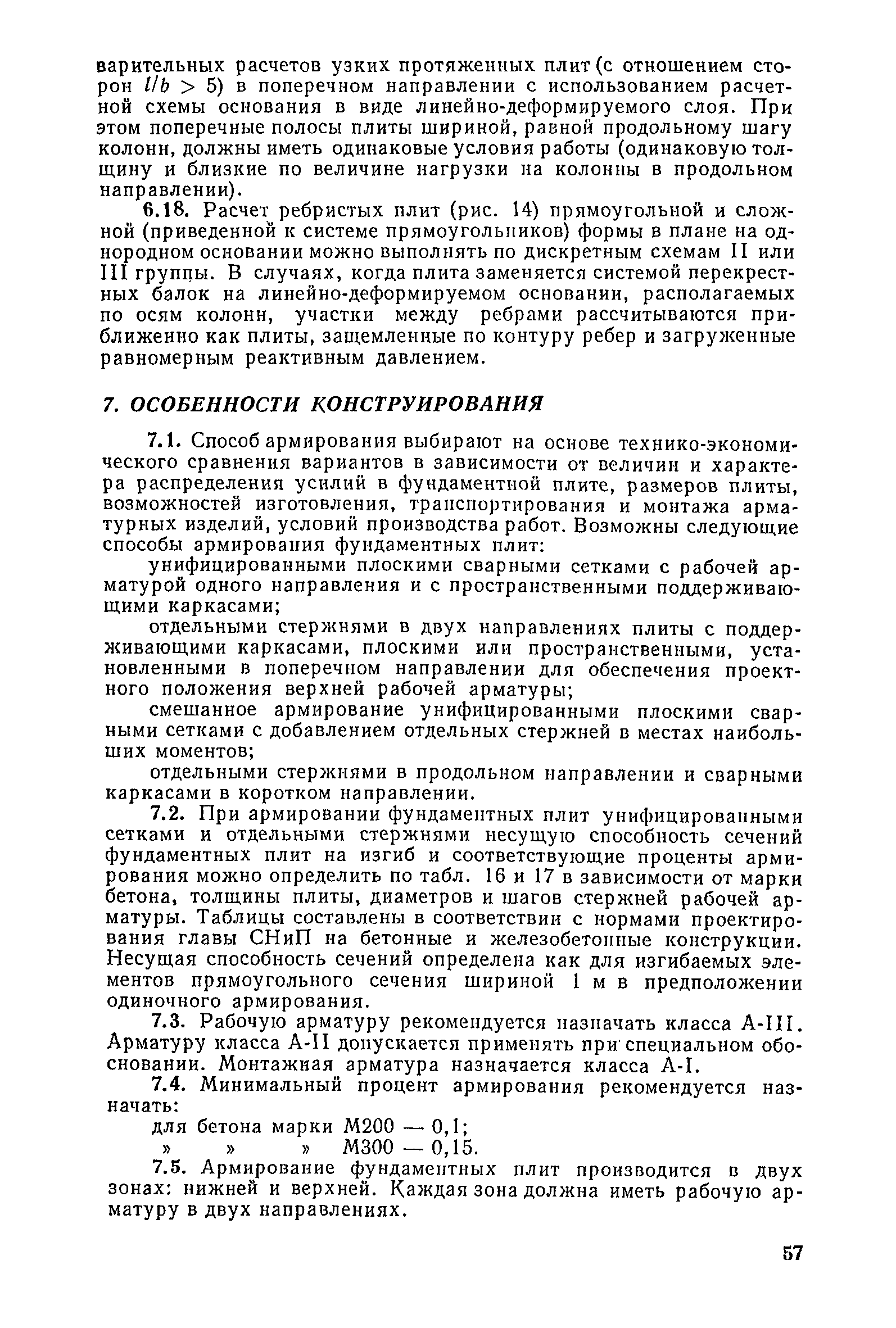 | Оглавление: | Предисловие 1. Общие указания 2. Состав инженерно-геологических изысканий 3. Основные расчетные положения 4. Расчет деформаций основания 5. Предварительное определение размеров фундаментных плит 6. Статический расчет фундаментных плит 7. Особенности конструирования 8. Антикоррозионные мероприятия 9. Состав проекта 10. Особенности производства и контроля работ при устройстве монолитных фундаментных плит 11. Натурные наблюдения за осадками фундаментных плит Приложение 1. Методика определения переменных коэффициентов жесткости оснований больших прямоугольных одиночных и групповых фундаментных плит Приложение 2. Зависимости для расчета кренов и осадок больших прямоугольных одиночных и групповых фундаментных плит Приложение 3. Пример расчета и конструирования фундаментной плиты Приложение 4. Материалы для натурных наблюдений за осадками фундаментных плит |