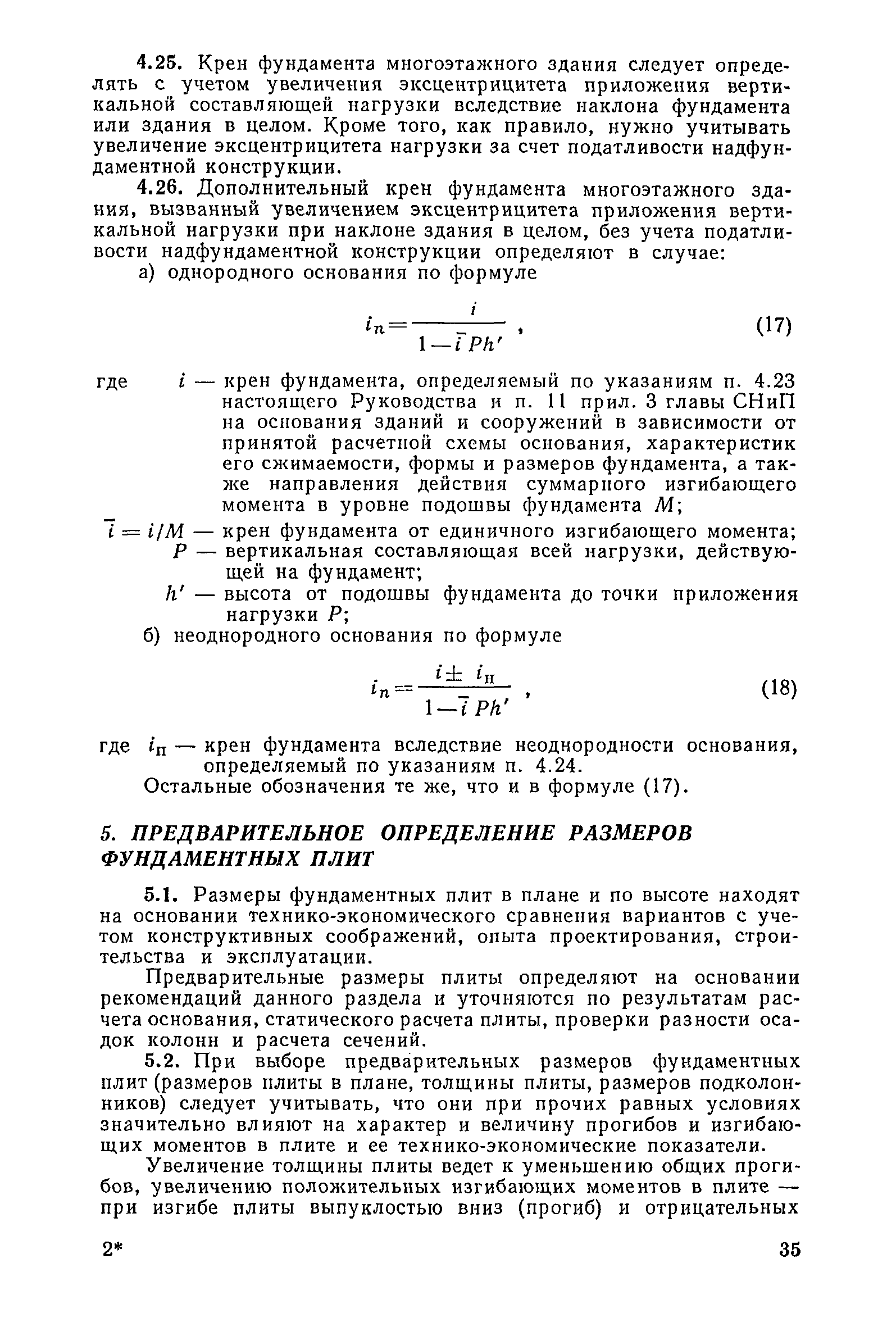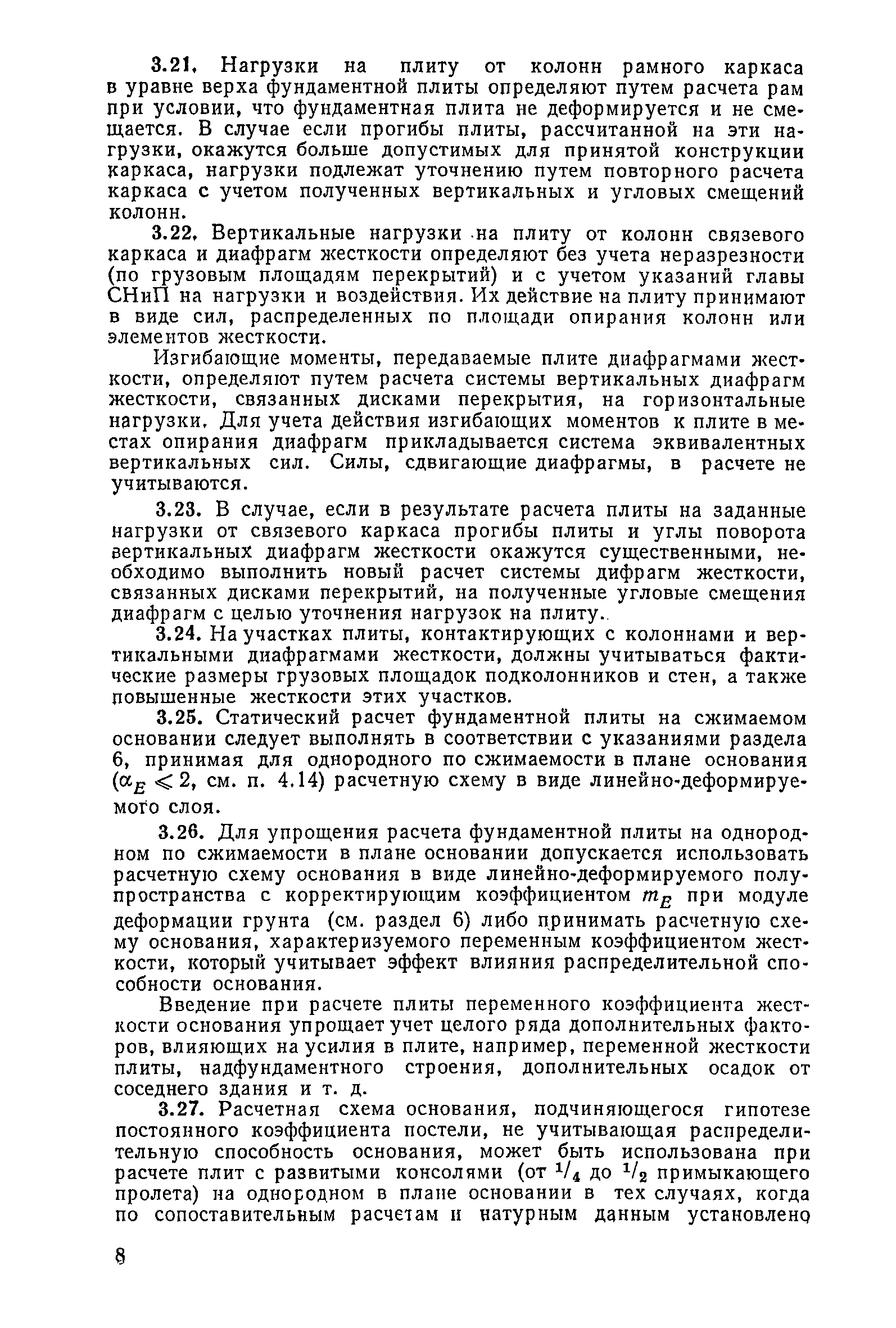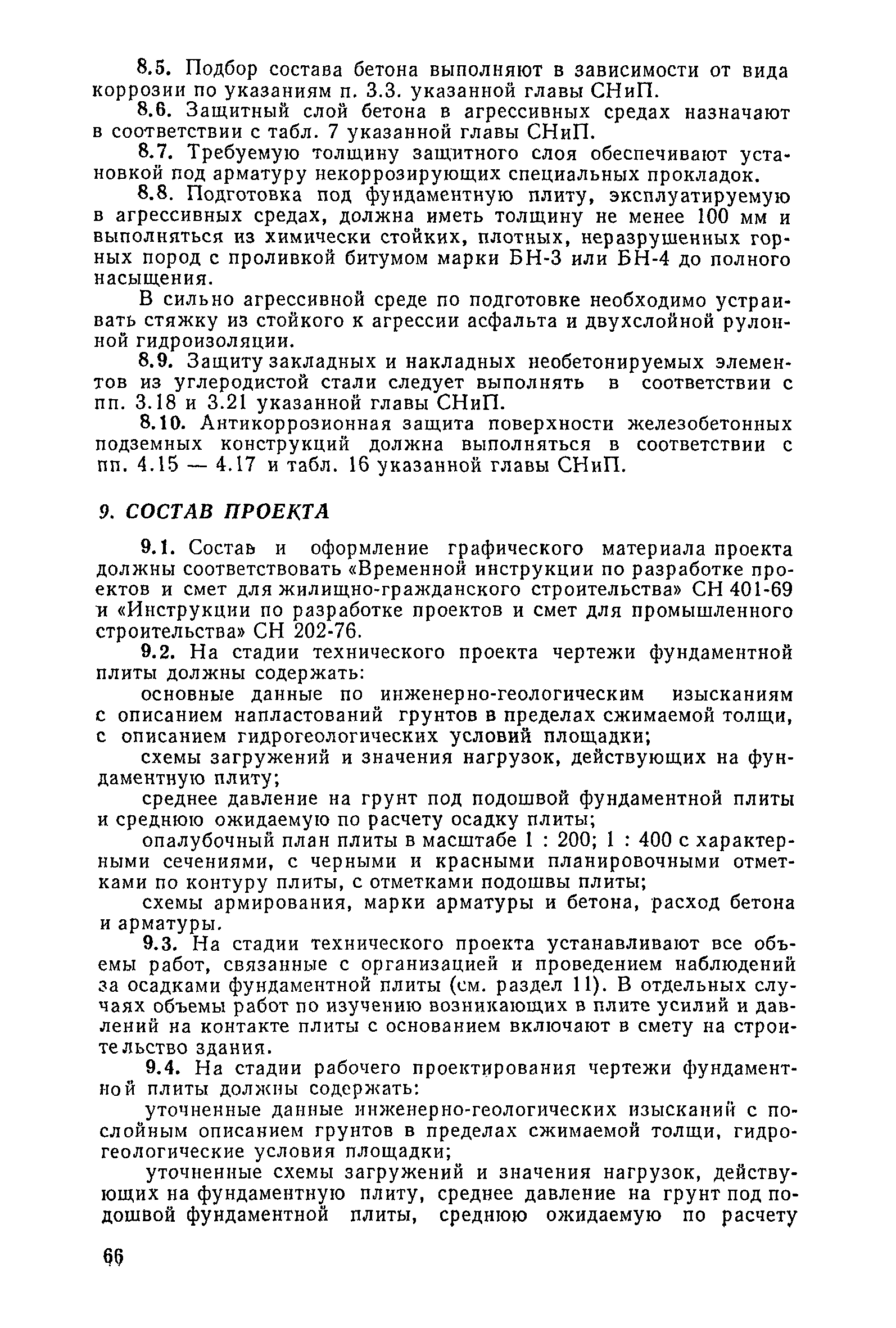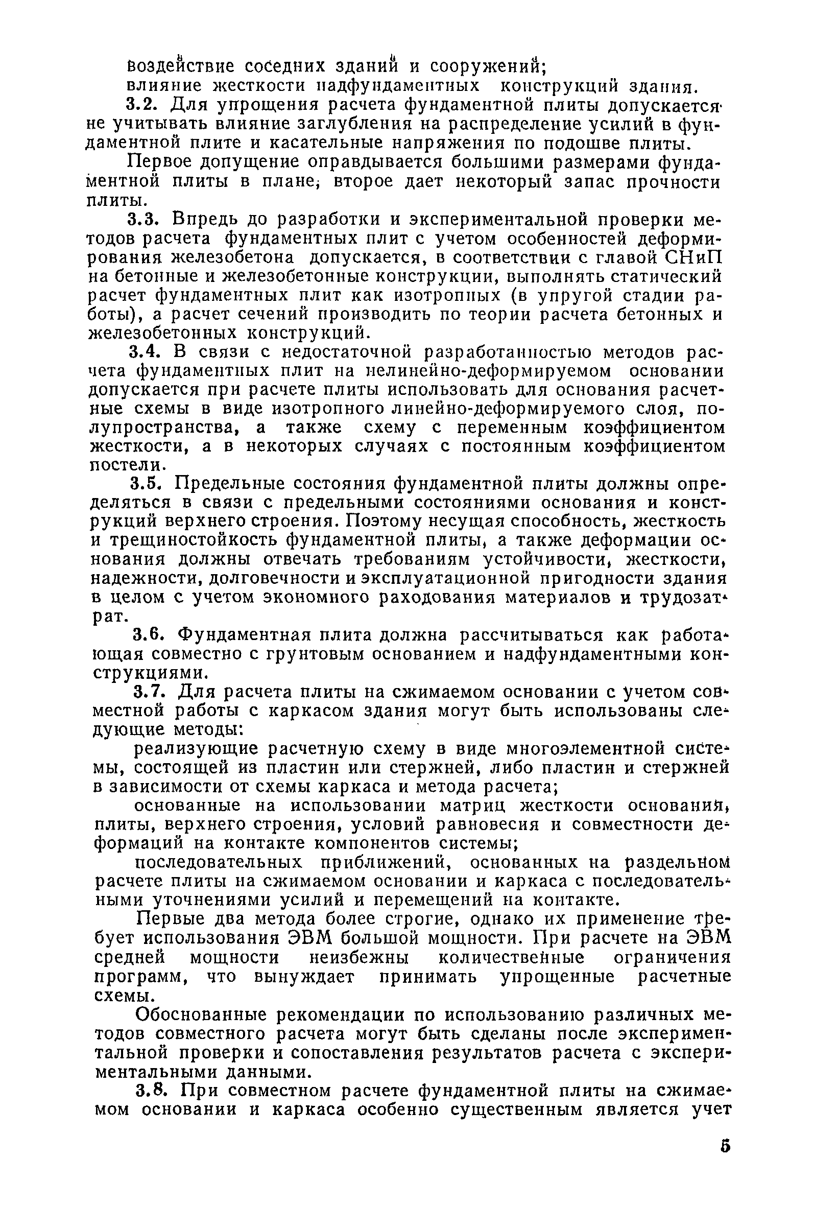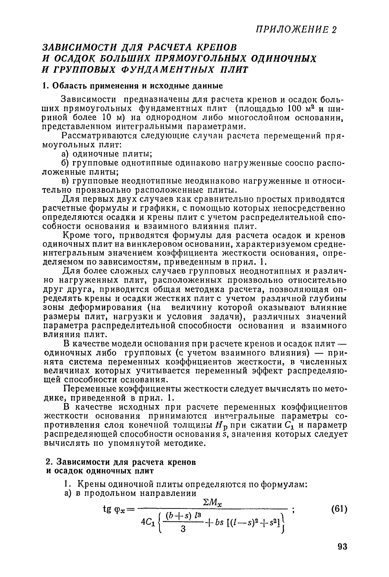 | Оглавление: | Предисловие 1. Общие указания 2. Состав инженерно-геологических изысканий 3. Основные расчетные положения 4. Расчет деформаций основания 5. Предварительное определение размеров фундаментных плит 6. Статический расчет фундаментных плит 7. Особенности конструирования 8. Антикоррозионные мероприятия 9. Состав проекта 10. Особенности производства и контроля работ при устройстве монолитных фундаментных плит 11. Натурные наблюдения за осадками фундаментных плит Приложение 1. Методика определения переменных коэффициентов жесткости оснований больших прямоугольных одиночных и групповых фундаментных плит Приложение 2. Зависимости для расчета кренов и осадок больших прямоугольных одиночных и групповых фундаментных плит Приложение 3. Пример расчета и конструирования фундаментной плиты Приложение 4. Материалы для натурных наблюдений за осадками фундаментных плит |