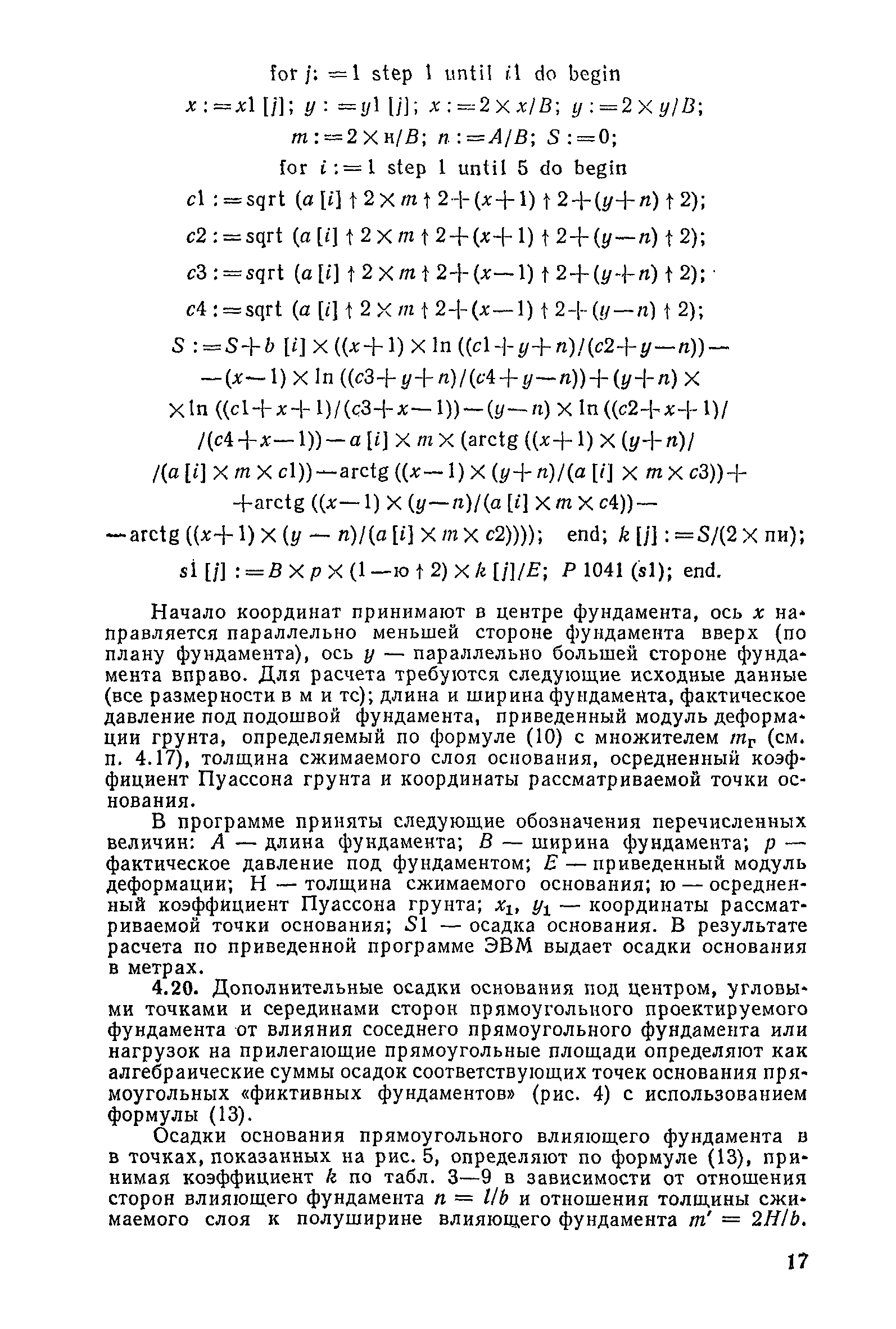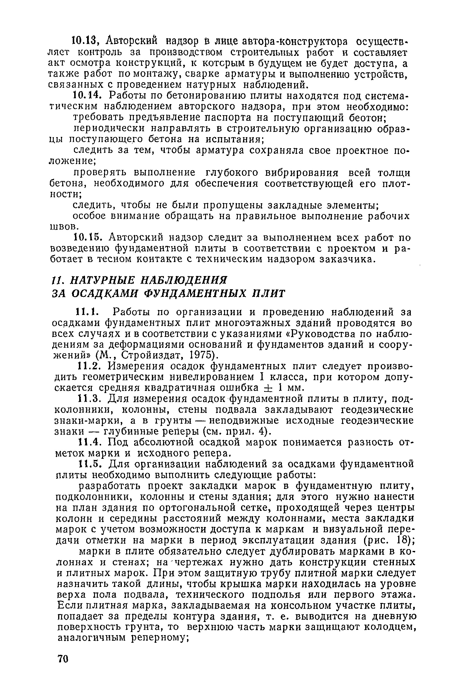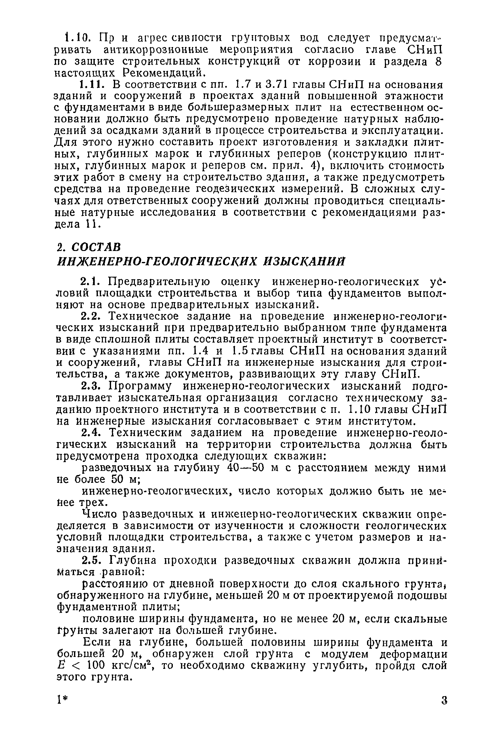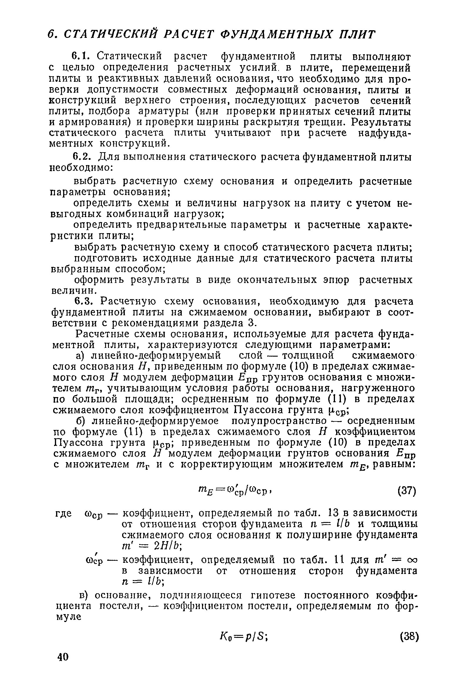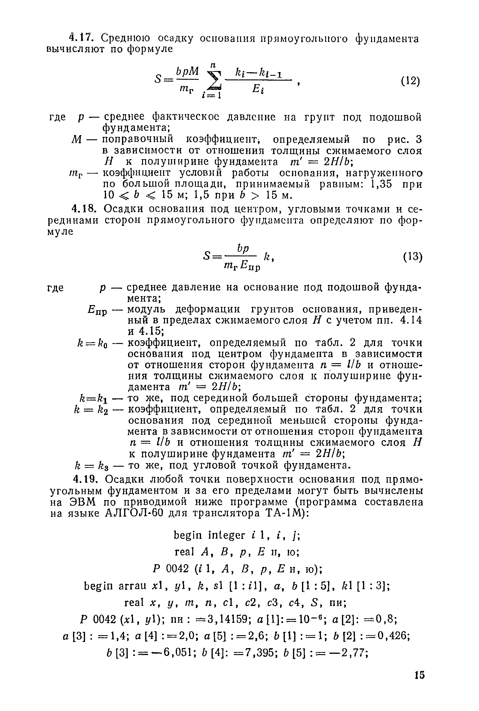 | Оглавление: | Предисловие 1. Общие указания 2. Состав инженерно-геологических изысканий 3. Основные расчетные положения 4. Расчет деформаций основания 5. Предварительное определение размеров фундаментных плит 6. Статический расчет фундаментных плит 7. Особенности конструирования 8. Антикоррозионные мероприятия 9. Состав проекта 10. Особенности производства и контроля работ при устройстве монолитных фундаментных плит 11. Натурные наблюдения за осадками фундаментных плит Приложение 1. Методика определения переменных коэффициентов жесткости оснований больших прямоугольных одиночных и групповых фундаментных плит Приложение 2. Зависимости для расчета кренов и осадок больших прямоугольных одиночных и групповых фундаментных плит Приложение 3. Пример расчета и конструирования фундаментной плиты Приложение 4. Материалы для натурных наблюдений за осадками фундаментных плит |