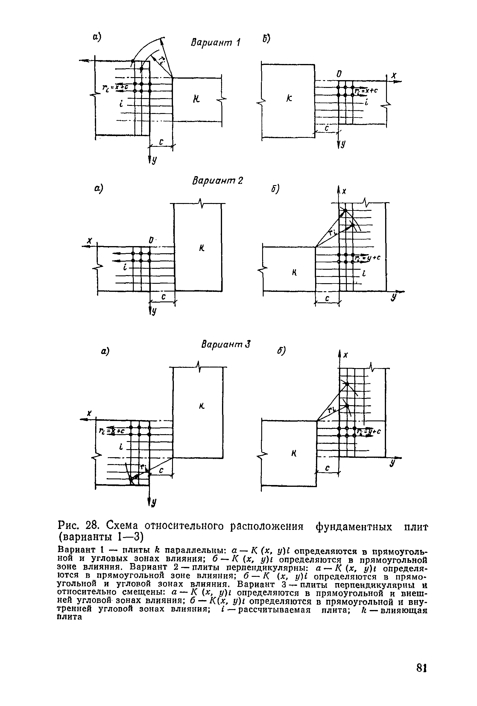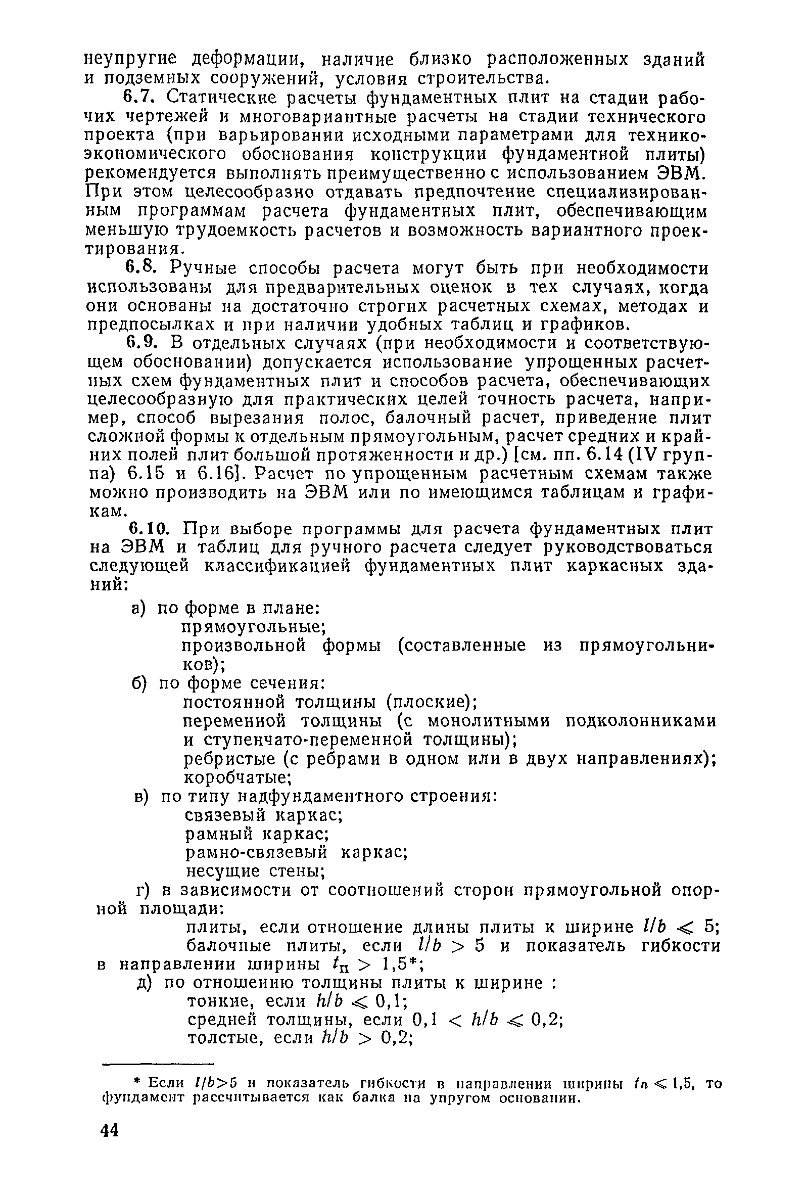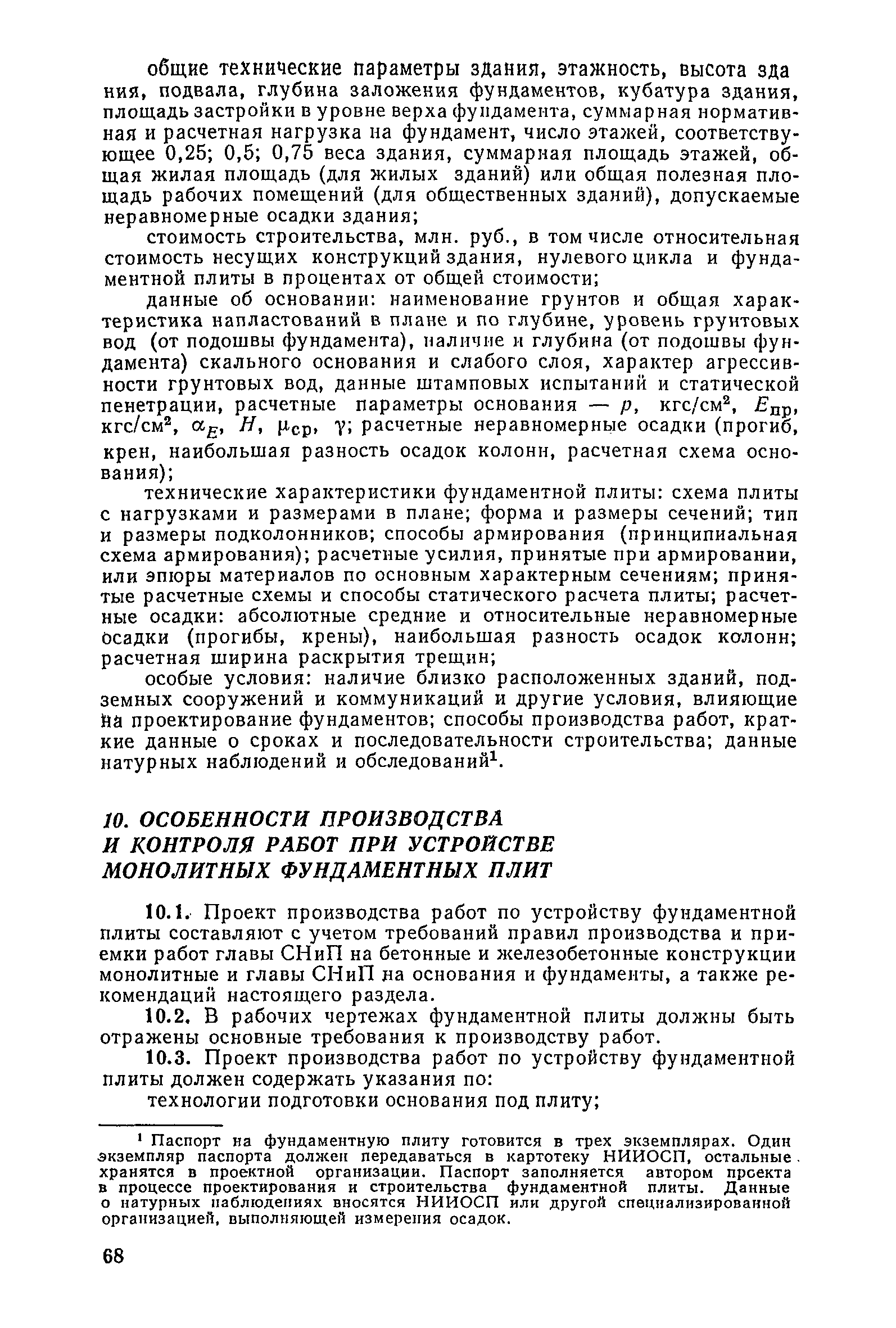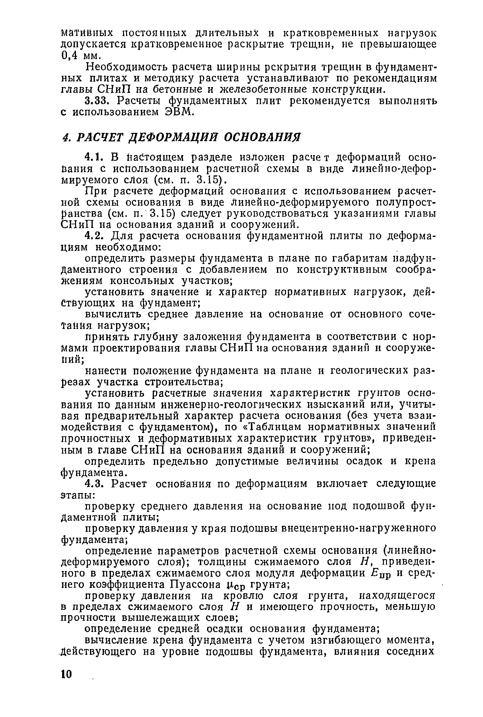 | Оглавление: | Предисловие 1. Общие указания 2. Состав инженерно-геологических изысканий 3. Основные расчетные положения 4. Расчет деформаций основания 5. Предварительное определение размеров фундаментных плит 6. Статический расчет фундаментных плит 7. Особенности конструирования 8. Антикоррозионные мероприятия 9. Состав проекта 10. Особенности производства и контроля работ при устройстве монолитных фундаментных плит 11. Натурные наблюдения за осадками фундаментных плит Приложение 1. Методика определения переменных коэффициентов жесткости оснований больших прямоугольных одиночных и групповых фундаментных плит Приложение 2. Зависимости для расчета кренов и осадок больших прямоугольных одиночных и групповых фундаментных плит Приложение 3. Пример расчета и конструирования фундаментной плиты Приложение 4. Материалы для натурных наблюдений за осадками фундаментных плит |