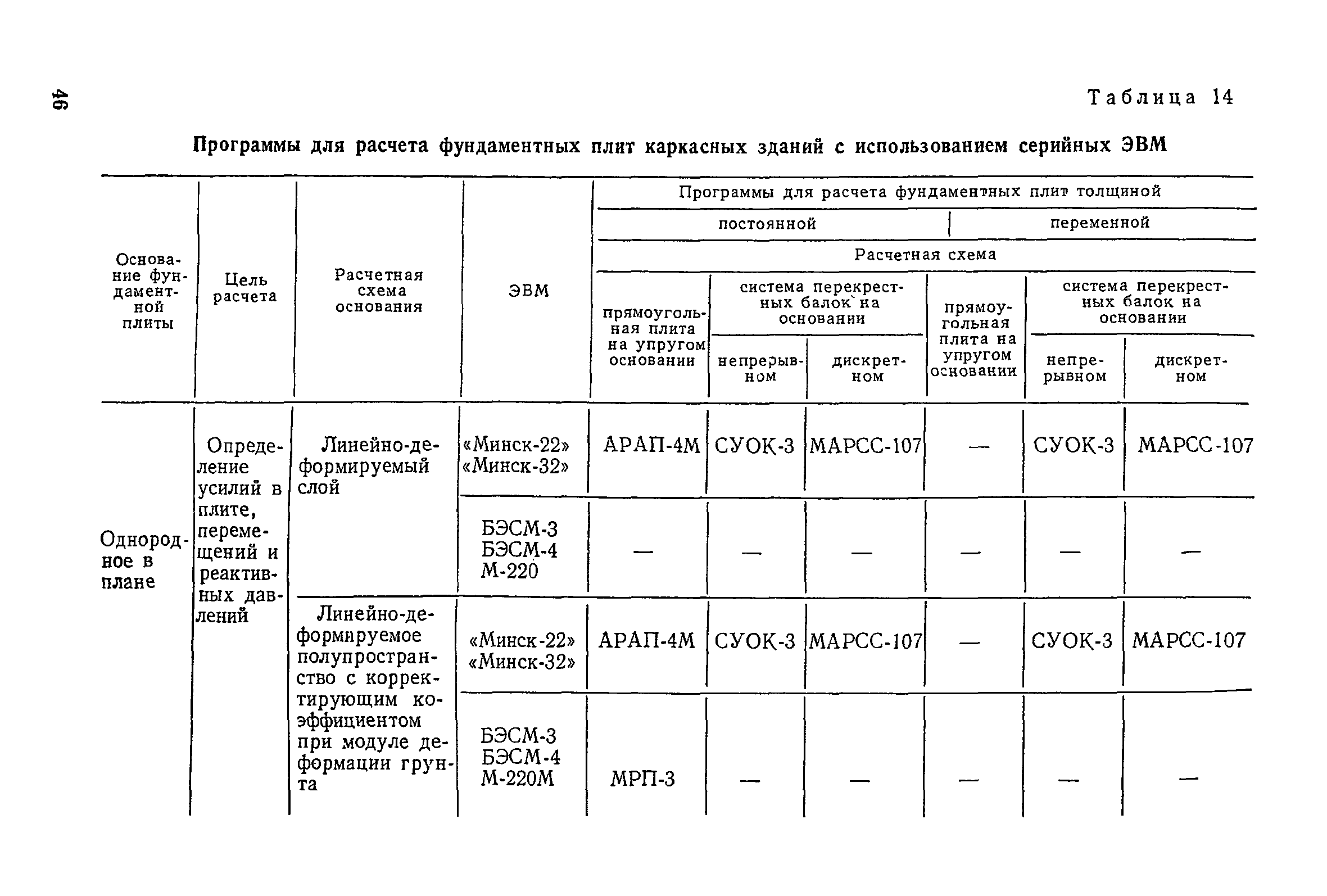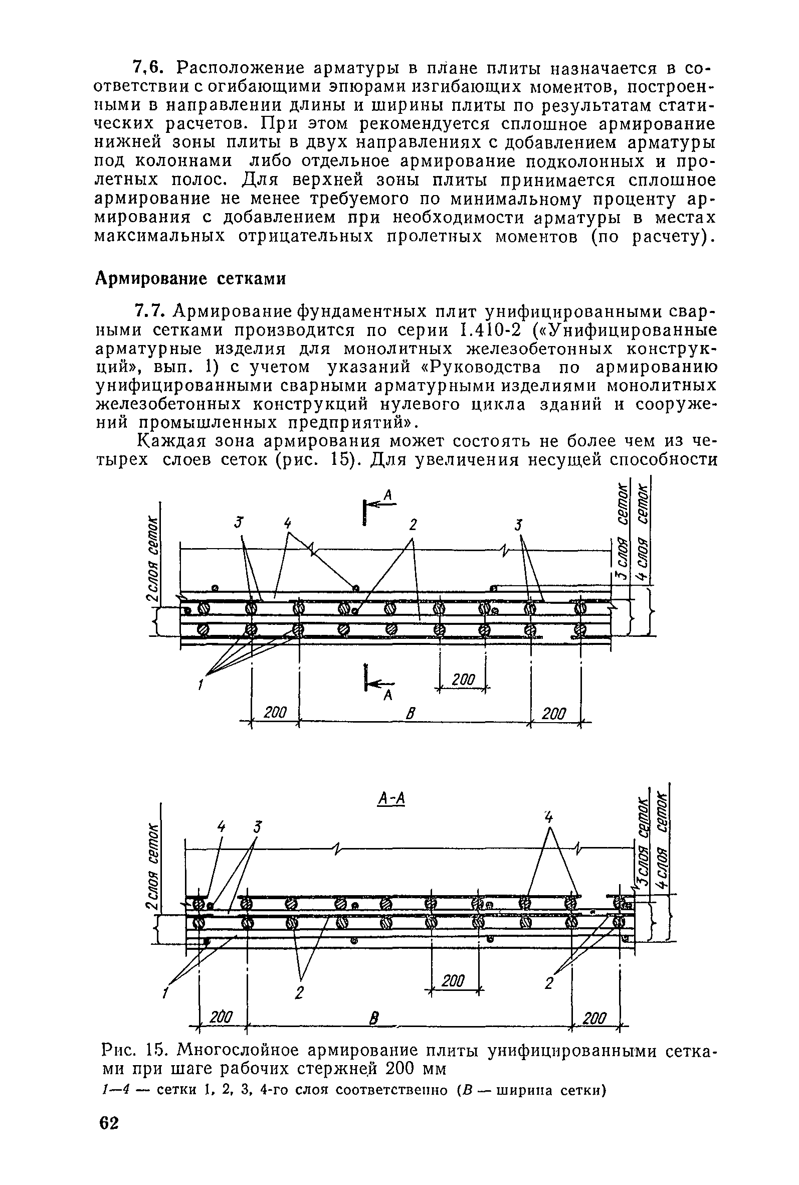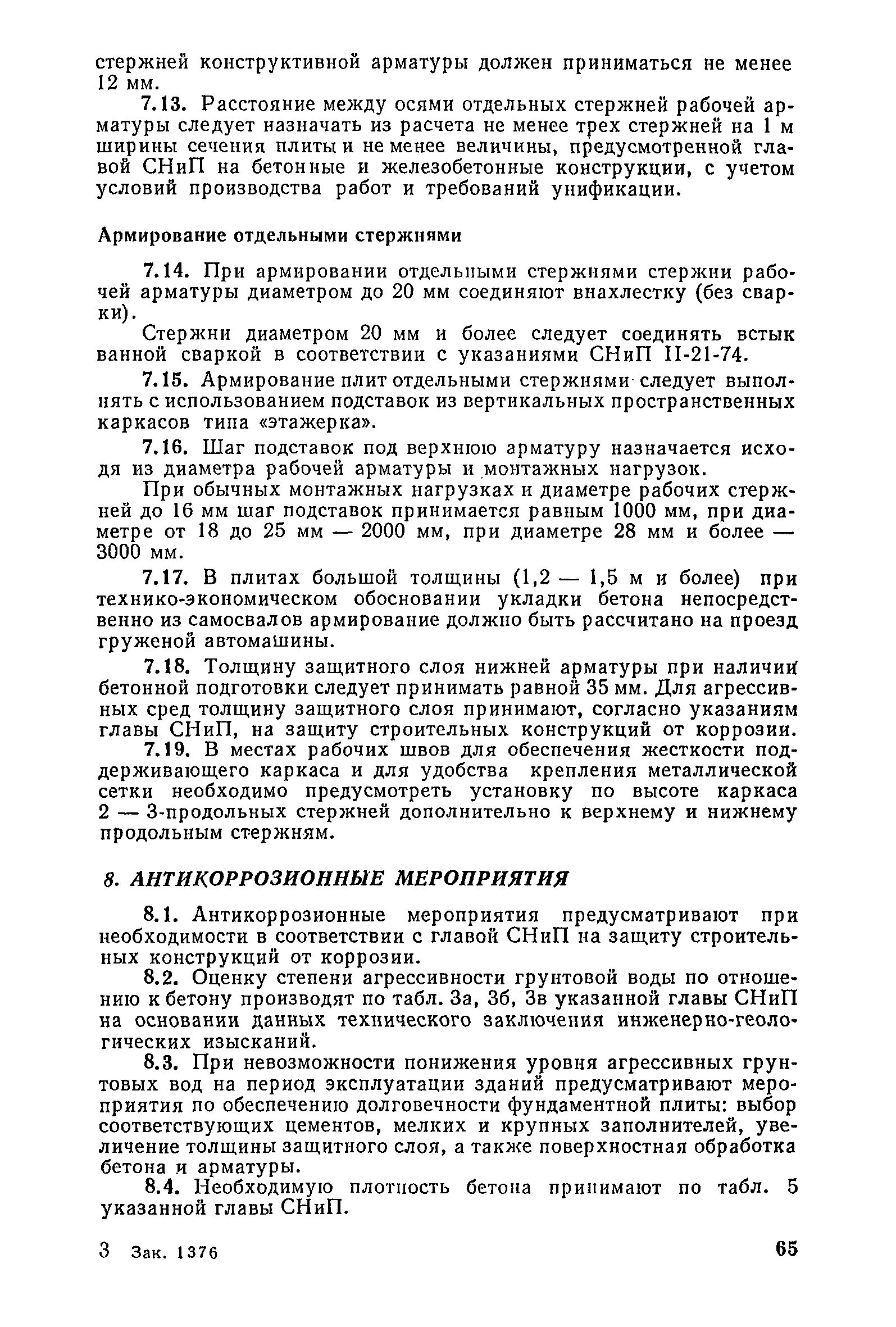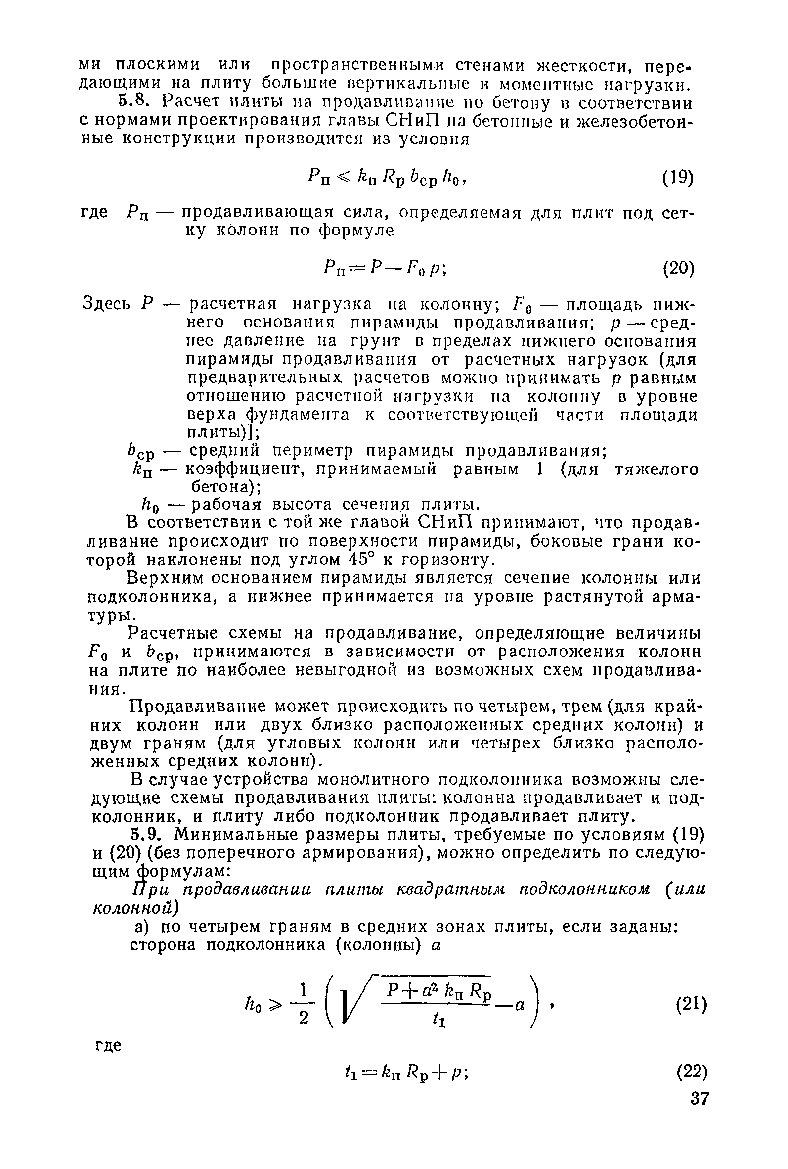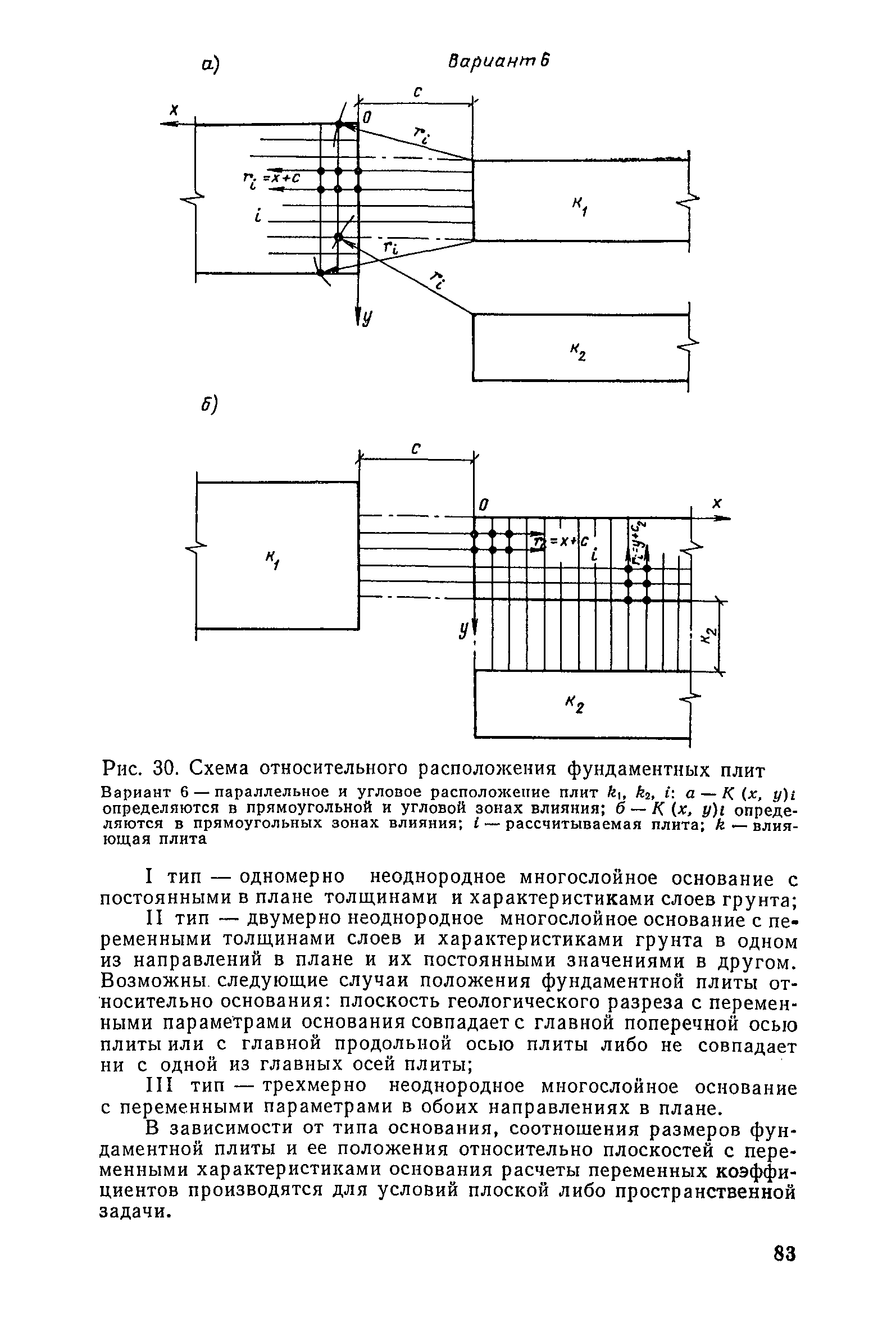 | Оглавление: | Предисловие 1. Общие указания 2. Состав инженерно-геологических изысканий 3. Основные расчетные положения 4. Расчет деформаций основания 5. Предварительное определение размеров фундаментных плит 6. Статический расчет фундаментных плит 7. Особенности конструирования 8. Антикоррозионные мероприятия 9. Состав проекта 10. Особенности производства и контроля работ при устройстве монолитных фундаментных плит 11. Натурные наблюдения за осадками фундаментных плит Приложение 1. Методика определения переменных коэффициентов жесткости оснований больших прямоугольных одиночных и групповых фундаментных плит Приложение 2. Зависимости для расчета кренов и осадок больших прямоугольных одиночных и групповых фундаментных плит Приложение 3. Пример расчета и конструирования фундаментной плиты Приложение 4. Материалы для натурных наблюдений за осадками фундаментных плит |