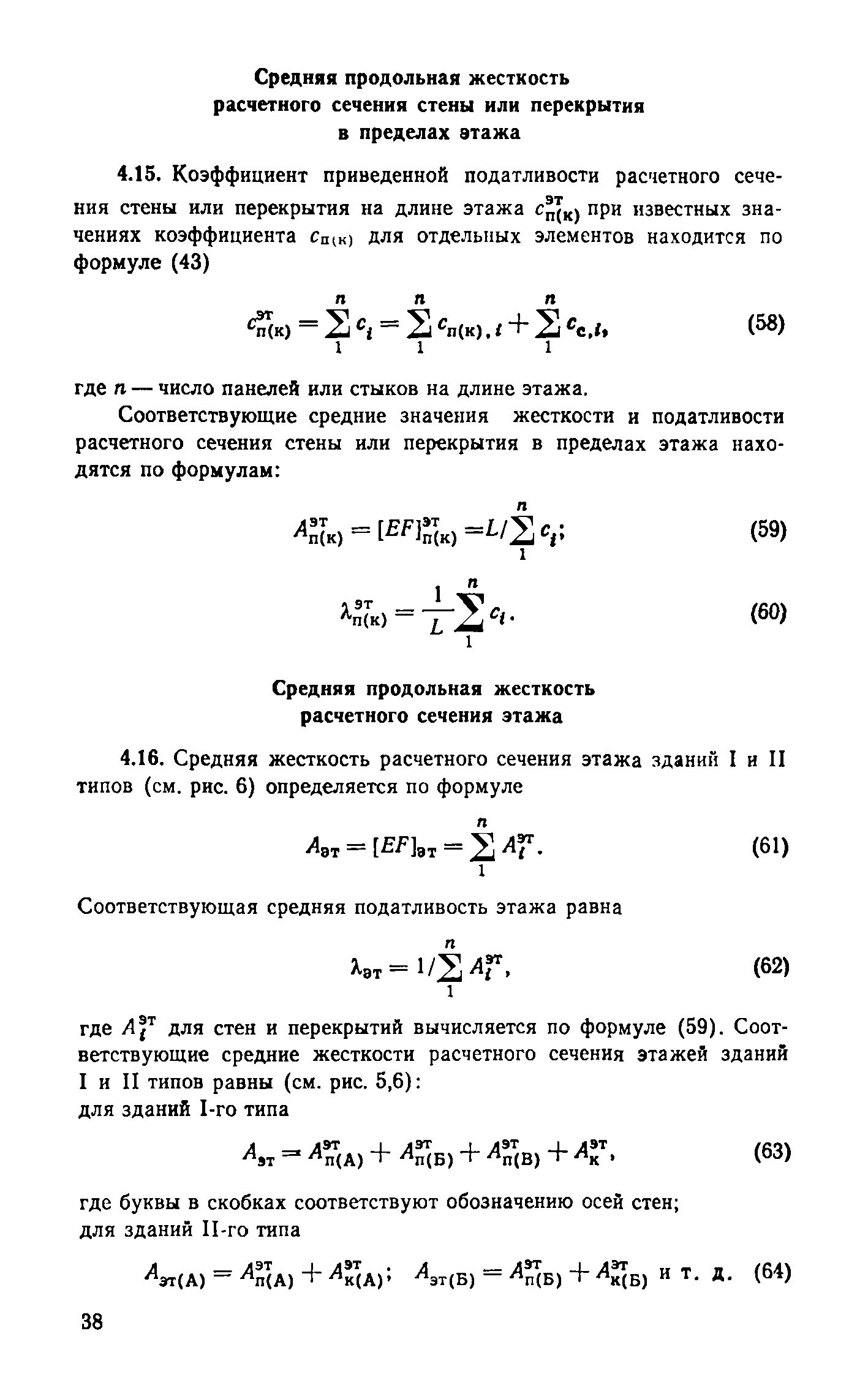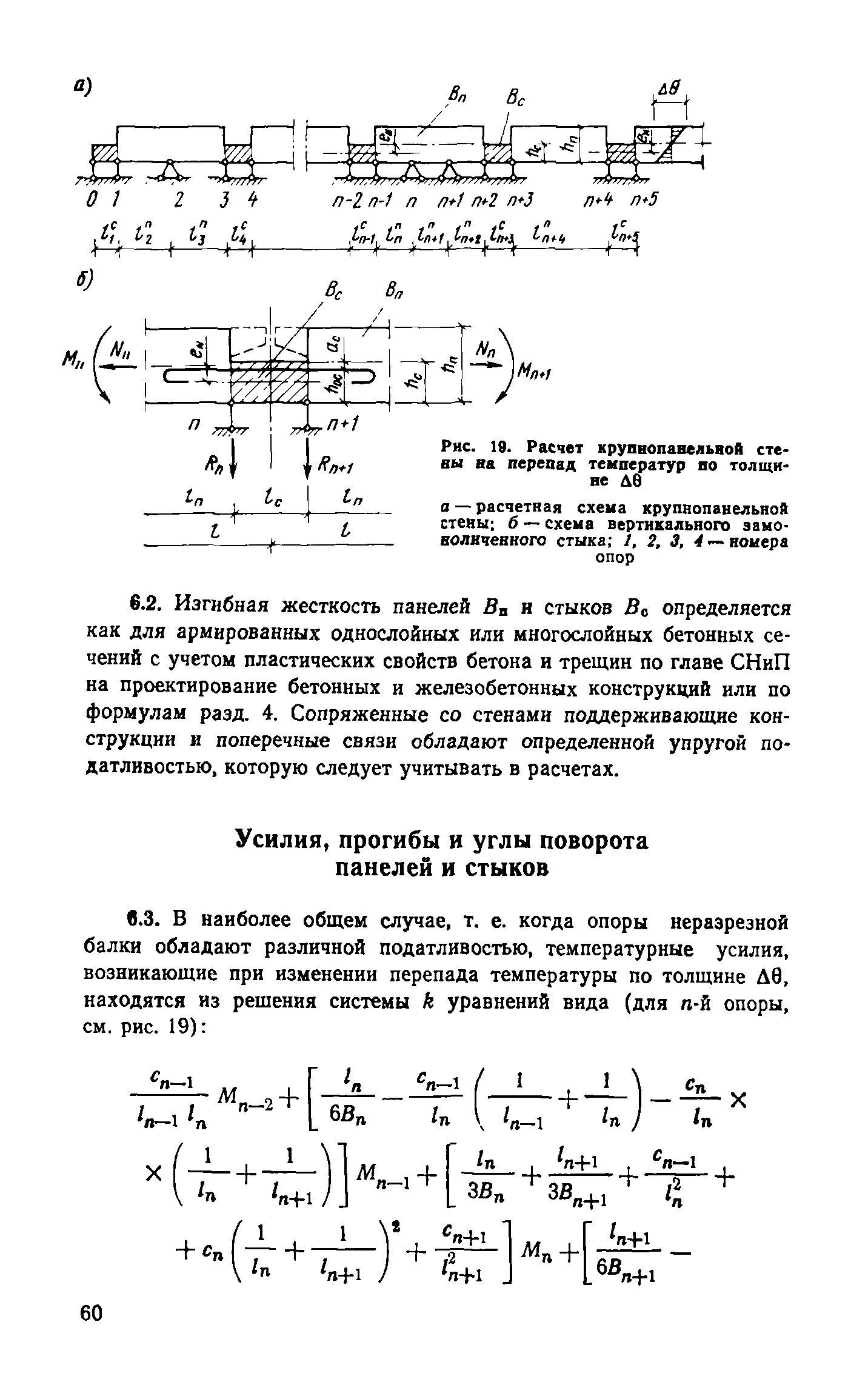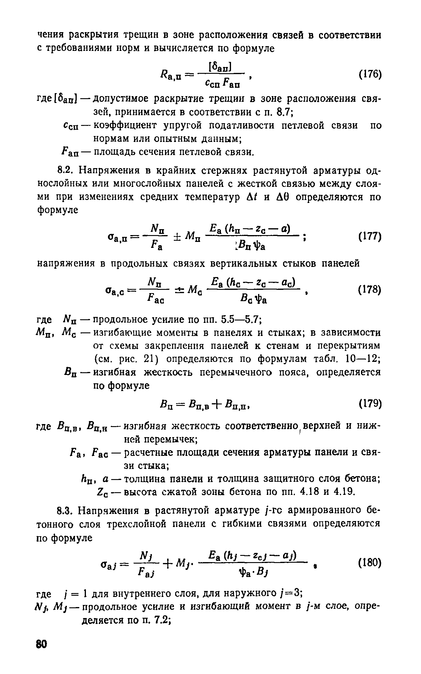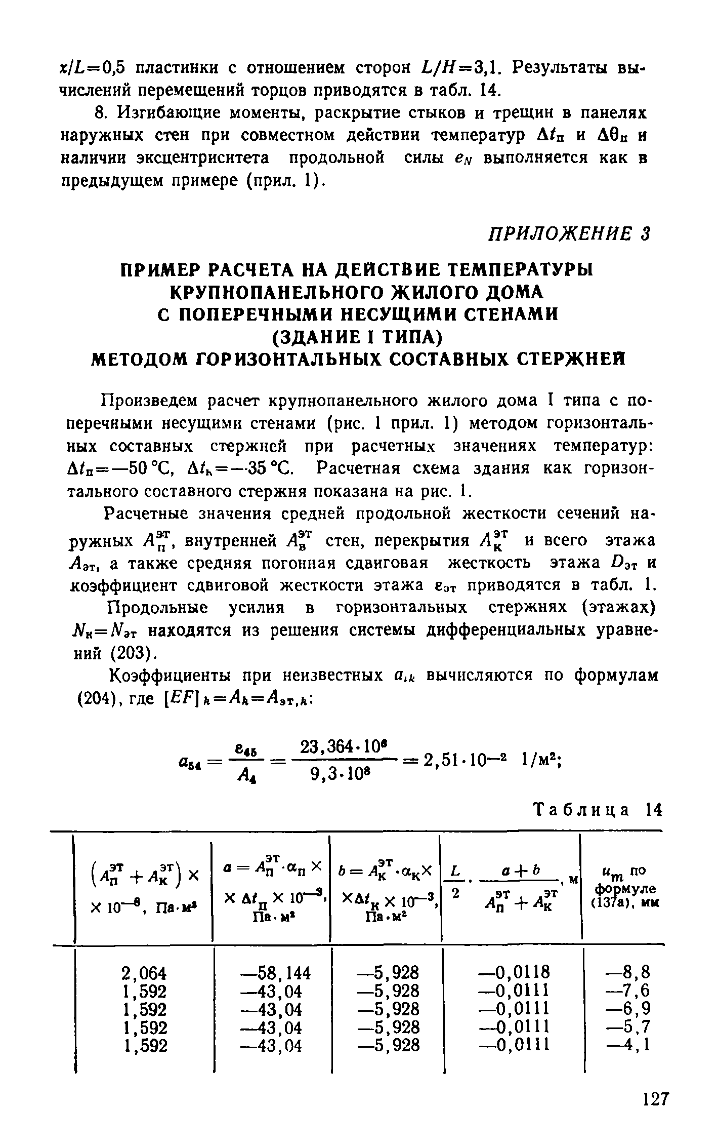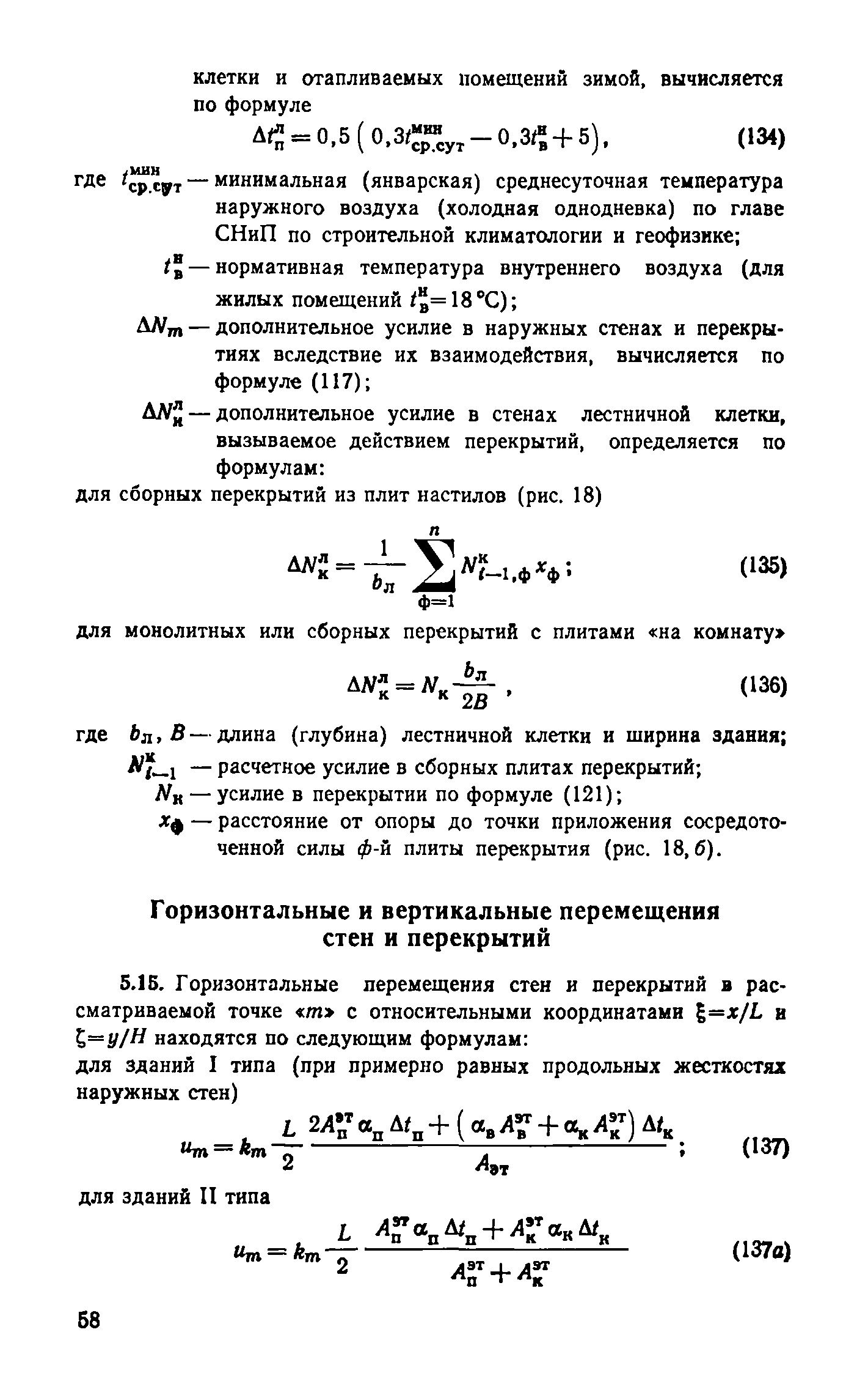 | Оглавление: | Предисловие 1 Основные положения 2 Расчетные температуры однослойных и многослойных стен и перекрытий Приведенные средние температуры однослойных и многослойных конструкций Усадка Начальная температура Приближенные значения средних температур однослойных стен и средних температур бетонных слоев трехслойных панелей с гибкими связями 3 Расчетные схемы и методы расчета крупнопанельных зданий на действие температуры 4 Жесткостные характеристики сборных конструкций Продольная жесткость (податливость) составных стержней Изгибная жесткость Сдвиговая жесткость Приведенная высота этажа и здания 5 Расчет стен и перекрытий крупнопанельных зданий как квазнизотропных пластинок на действие средней температуры Расчетные значения коэффициентов температурных усилий и перемещений Температурные усилия в стенах и перекрытиях Влияние отверстий и проемов Горизонтальные и вертикальные перемещения стен и перекрытий 6 Расчет наружных стен из однослойных и многослойных панелей с жесткой связью между слоями на действие перепада температуры по толщине и эксцентриситета продольной силы Основные положения Усилия, прогибы и углы поворота панелей и стыков 7 Расчет трехслойных панелей с гибкими связями на температурные воздействия с учетом упругой работы герметиков 8 Напряжения в арматуре панелей и связях стыков, раскрытие трещин в панелях и вертикальных стыках при совместном действии продольных сил и изгибающих моментов Напряжения в арматуре панелей и связях стыков Раскрытие трещин в бетоне панелей Раскрытие вертикальных стыков панелей 9 Расчет крупнопанельных зданий как плоских или пространственных составных стержней Выбор расчетной схемы. Обозначения Жесткостные характеристики составных стержней Дифференциальные уравнения для горизонтального составного стержня и их решение Приложение 1 Пример расчета на действие температуры крупнопанельного жилого дома I типа с поперечными несущими стенами Приложение 2 Пример расчета на действие температуры крупнопанельного жилого дома II типа с продольными несущими стенами Приложение 3 Пример расчета на действие температуры крупнопанельного жилого дома с поперечными несущими стенами (здание I типа) методом горизонтальных составных стержней Приложение 4 Устройство температурных швов |