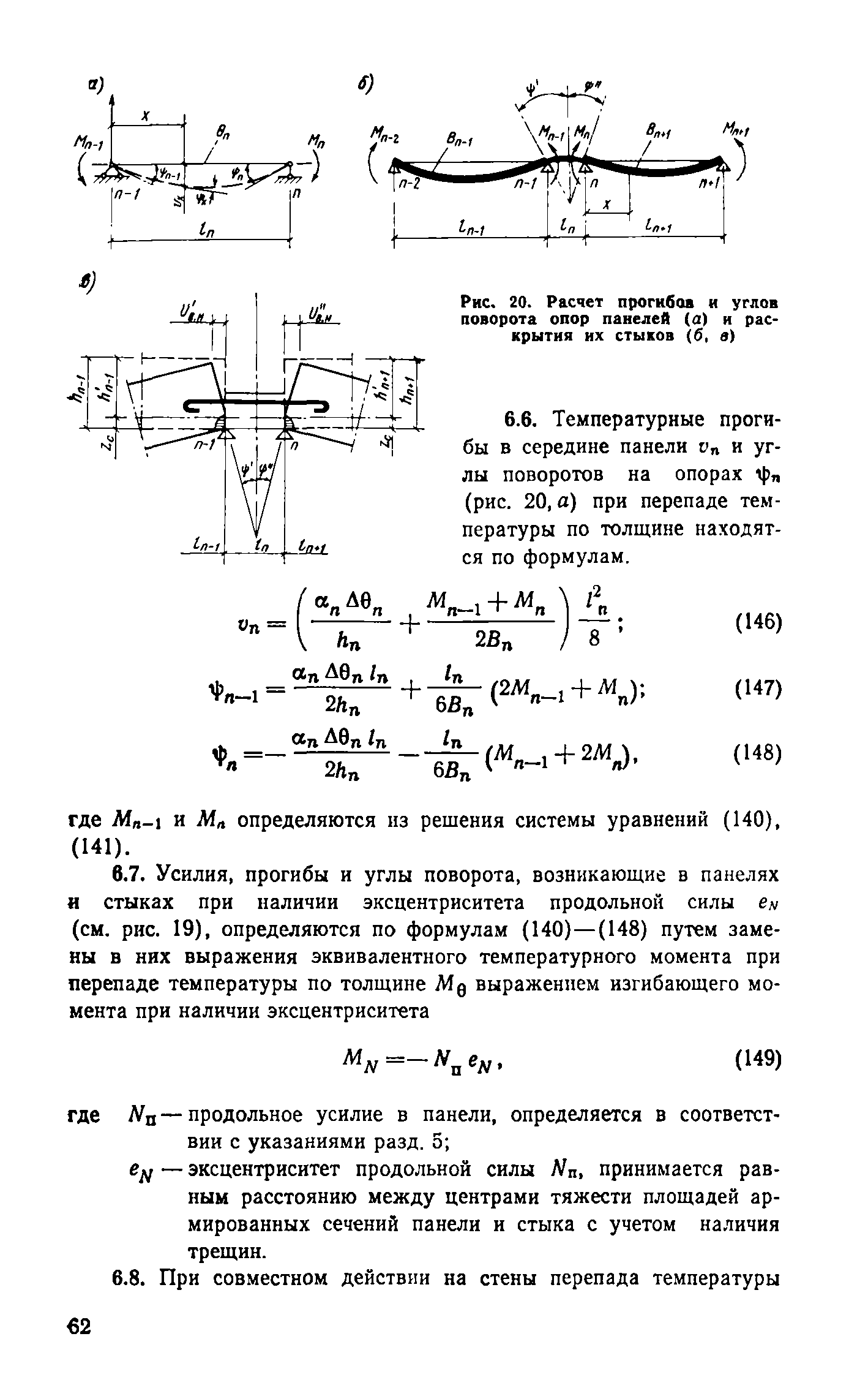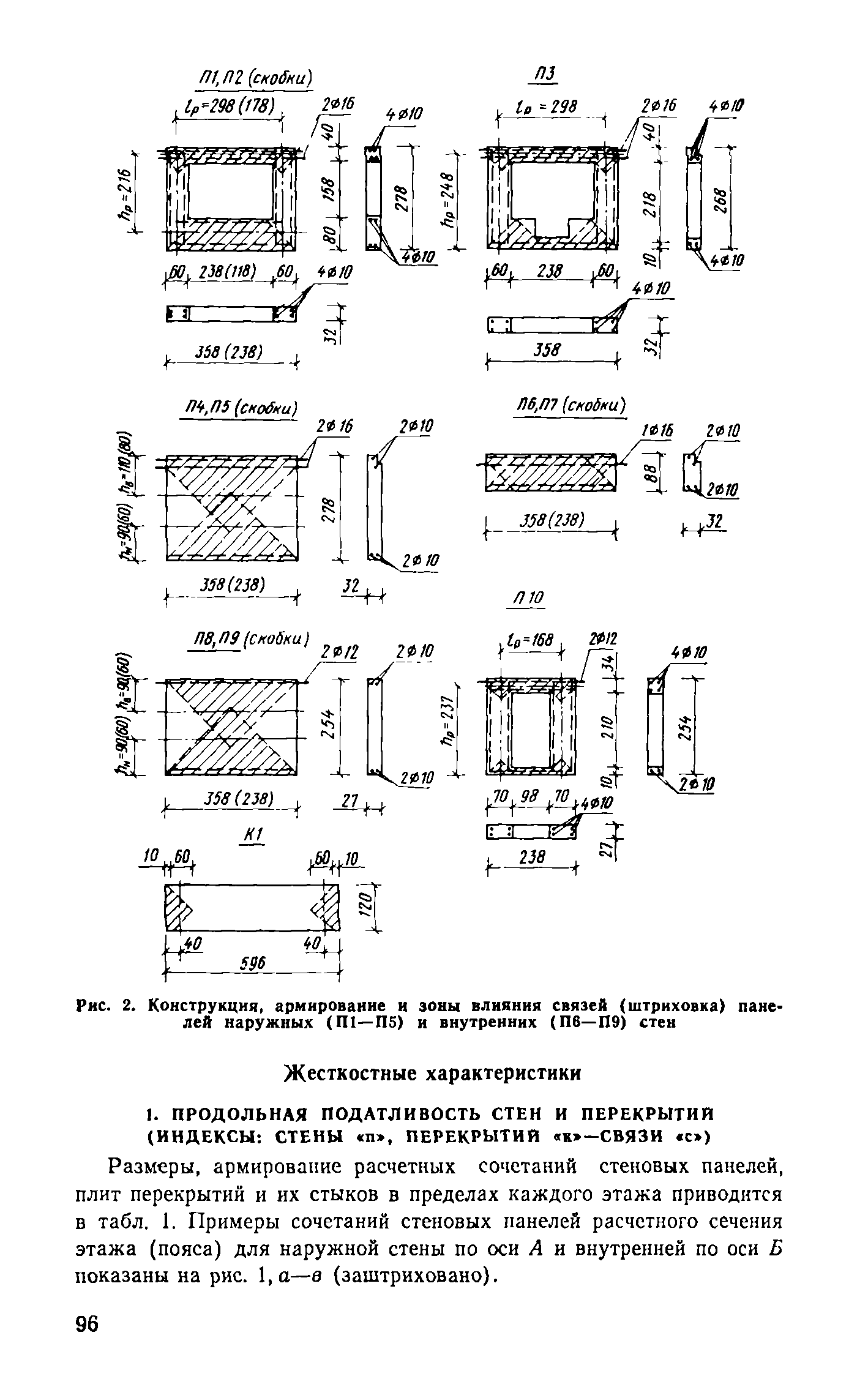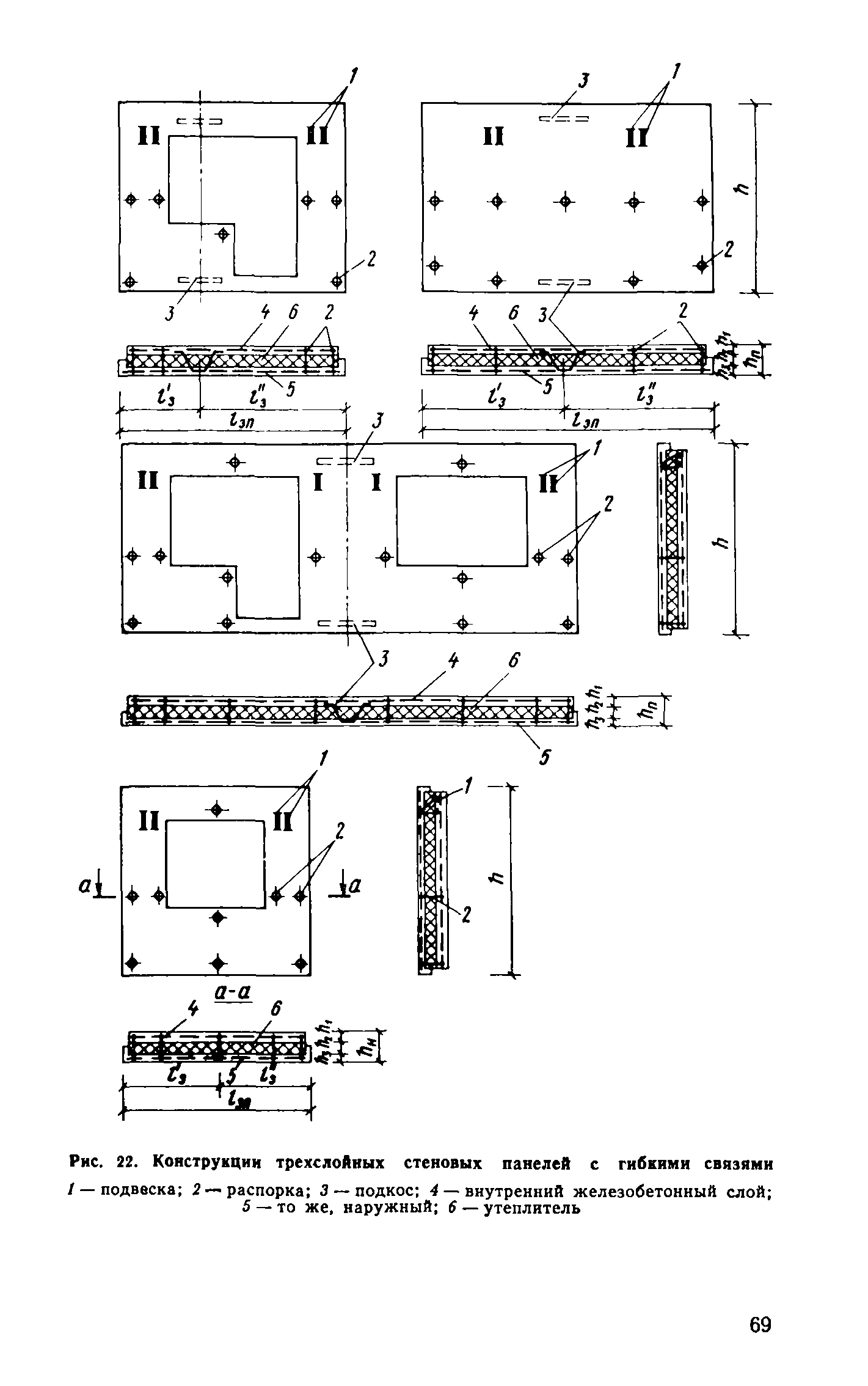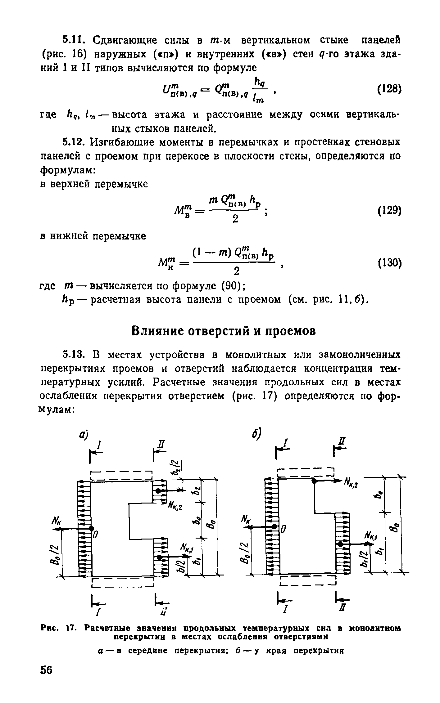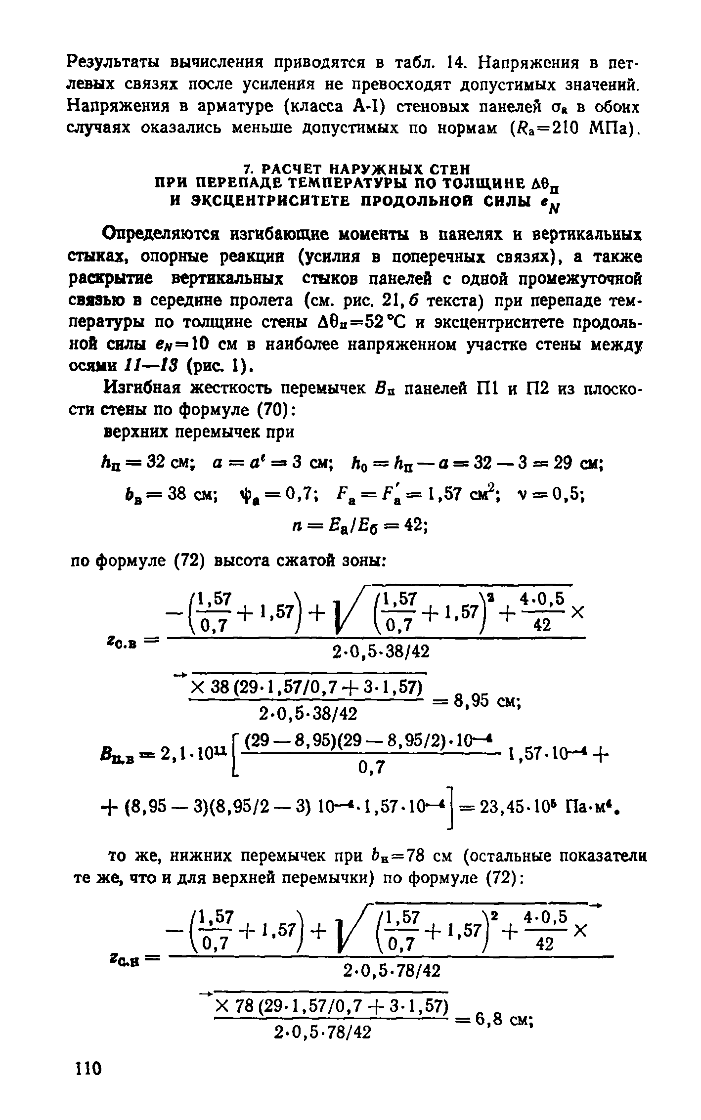 | Оглавление: | Предисловие 1 Основные положения 2 Расчетные температуры однослойных и многослойных стен и перекрытий Приведенные средние температуры однослойных и многослойных конструкций Усадка Начальная температура Приближенные значения средних температур однослойных стен и средних температур бетонных слоев трехслойных панелей с гибкими связями 3 Расчетные схемы и методы расчета крупнопанельных зданий на действие температуры 4 Жесткостные характеристики сборных конструкций Продольная жесткость (податливость) составных стержней Изгибная жесткость Сдвиговая жесткость Приведенная высота этажа и здания 5 Расчет стен и перекрытий крупнопанельных зданий как квазнизотропных пластинок на действие средней температуры Расчетные значения коэффициентов температурных усилий и перемещений Температурные усилия в стенах и перекрытиях Влияние отверстий и проемов Горизонтальные и вертикальные перемещения стен и перекрытий 6 Расчет наружных стен из однослойных и многослойных панелей с жесткой связью между слоями на действие перепада температуры по толщине и эксцентриситета продольной силы Основные положения Усилия, прогибы и углы поворота панелей и стыков 7 Расчет трехслойных панелей с гибкими связями на температурные воздействия с учетом упругой работы герметиков 8 Напряжения в арматуре панелей и связях стыков, раскрытие трещин в панелях и вертикальных стыках при совместном действии продольных сил и изгибающих моментов Напряжения в арматуре панелей и связях стыков Раскрытие трещин в бетоне панелей Раскрытие вертикальных стыков панелей 9 Расчет крупнопанельных зданий как плоских или пространственных составных стержней Выбор расчетной схемы. Обозначения Жесткостные характеристики составных стержней Дифференциальные уравнения для горизонтального составного стержня и их решение Приложение 1 Пример расчета на действие температуры крупнопанельного жилого дома I типа с поперечными несущими стенами Приложение 2 Пример расчета на действие температуры крупнопанельного жилого дома II типа с продольными несущими стенами Приложение 3 Пример расчета на действие температуры крупнопанельного жилого дома с поперечными несущими стенами (здание I типа) методом горизонтальных составных стержней Приложение 4 Устройство температурных швов |