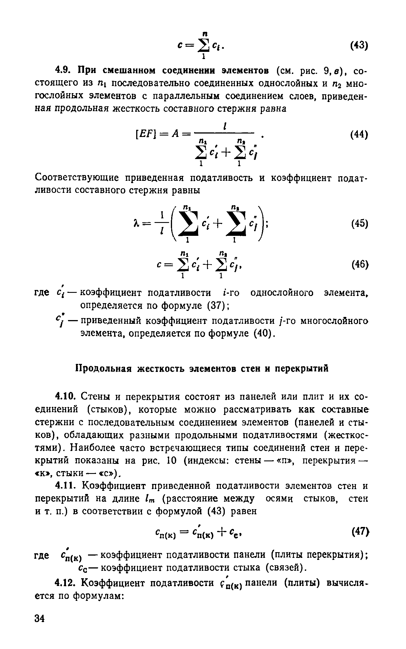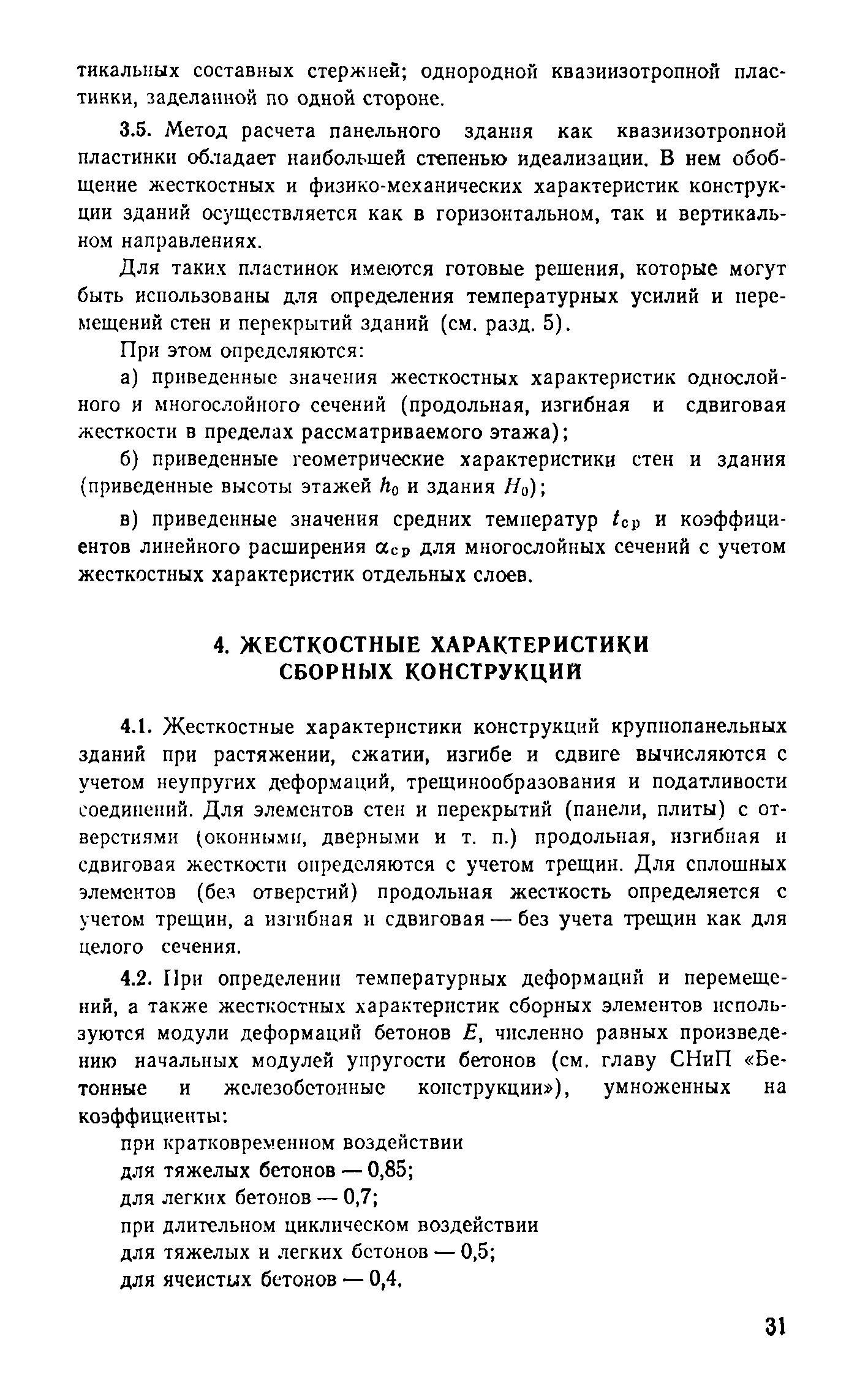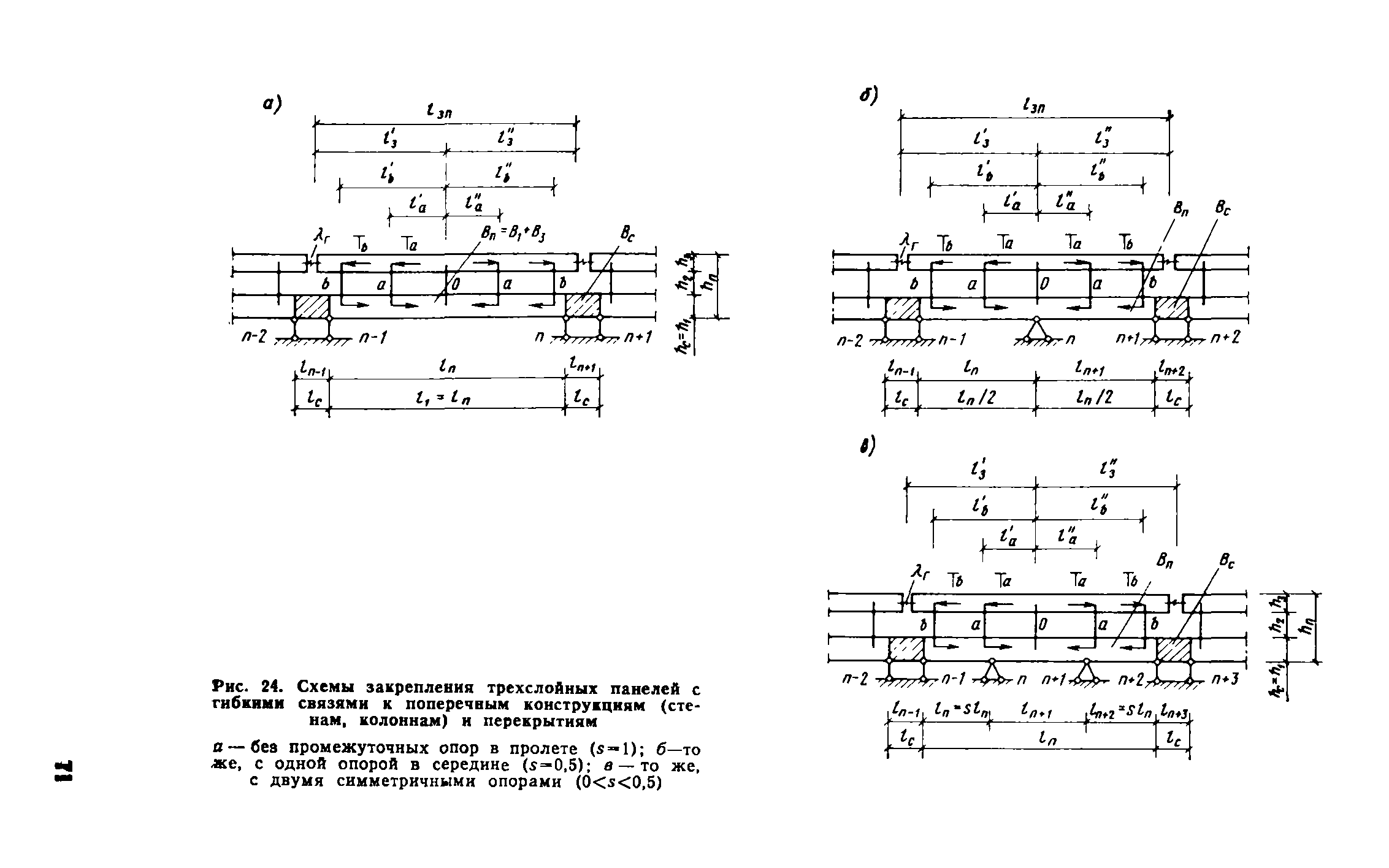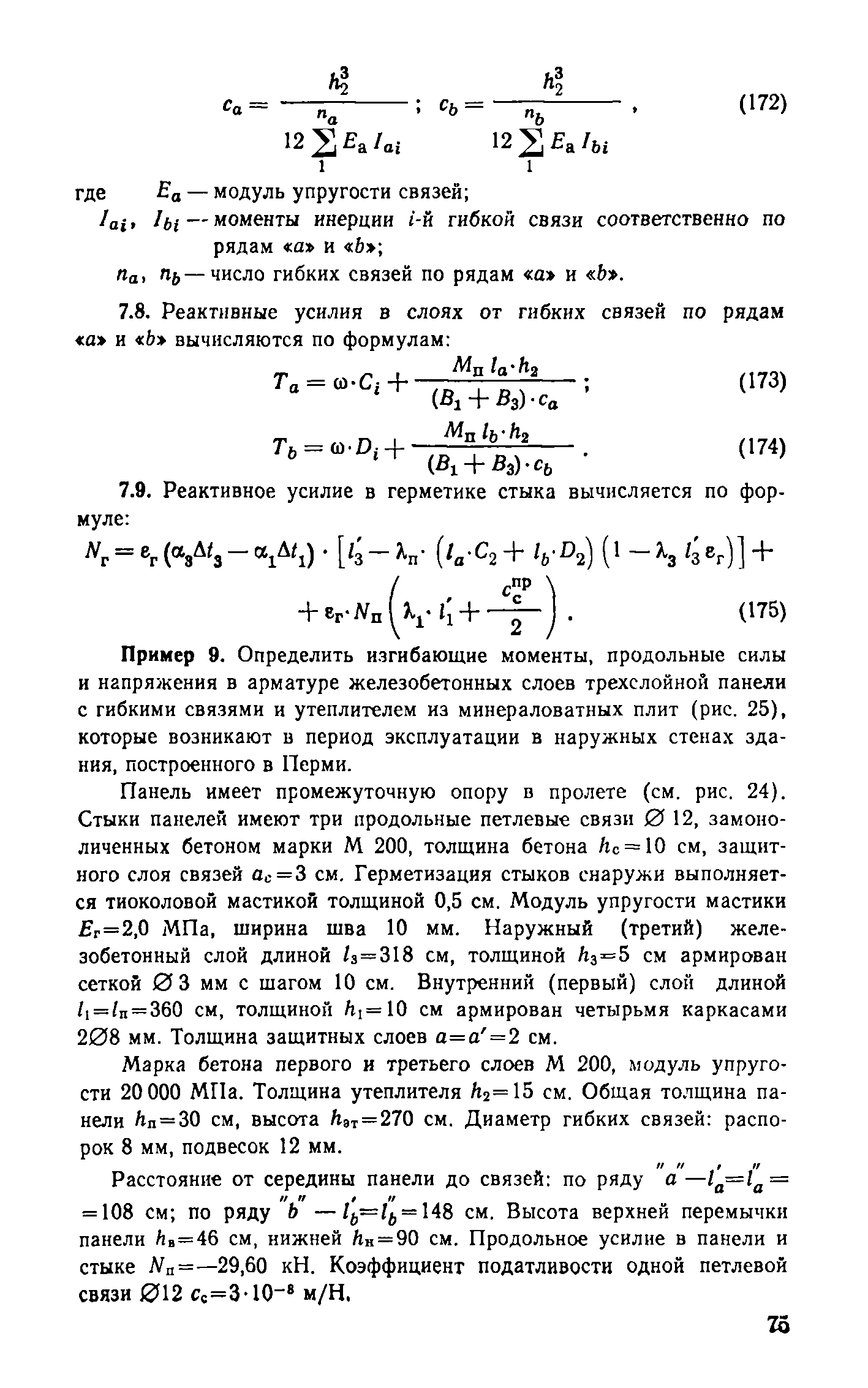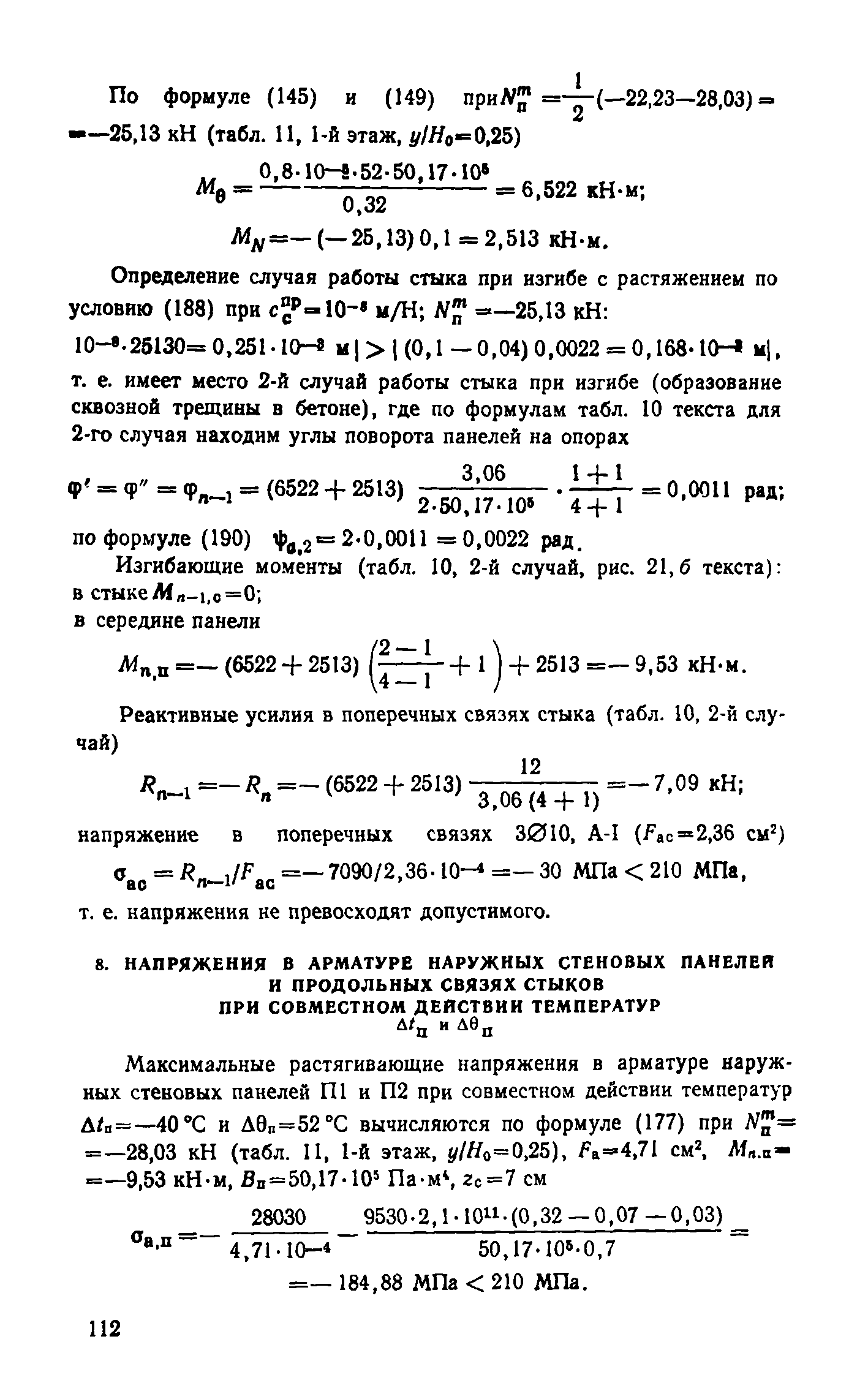 | Оглавление: | Предисловие 1 Основные положения 2 Расчетные температуры однослойных и многослойных стен и перекрытий Приведенные средние температуры однослойных и многослойных конструкций Усадка Начальная температура Приближенные значения средних температур однослойных стен и средних температур бетонных слоев трехслойных панелей с гибкими связями 3 Расчетные схемы и методы расчета крупнопанельных зданий на действие температуры 4 Жесткостные характеристики сборных конструкций Продольная жесткость (податливость) составных стержней Изгибная жесткость Сдвиговая жесткость Приведенная высота этажа и здания 5 Расчет стен и перекрытий крупнопанельных зданий как квазнизотропных пластинок на действие средней температуры Расчетные значения коэффициентов температурных усилий и перемещений Температурные усилия в стенах и перекрытиях Влияние отверстий и проемов Горизонтальные и вертикальные перемещения стен и перекрытий 6 Расчет наружных стен из однослойных и многослойных панелей с жесткой связью между слоями на действие перепада температуры по толщине и эксцентриситета продольной силы Основные положения Усилия, прогибы и углы поворота панелей и стыков 7 Расчет трехслойных панелей с гибкими связями на температурные воздействия с учетом упругой работы герметиков 8 Напряжения в арматуре панелей и связях стыков, раскрытие трещин в панелях и вертикальных стыках при совместном действии продольных сил и изгибающих моментов Напряжения в арматуре панелей и связях стыков Раскрытие трещин в бетоне панелей Раскрытие вертикальных стыков панелей 9 Расчет крупнопанельных зданий как плоских или пространственных составных стержней Выбор расчетной схемы. Обозначения Жесткостные характеристики составных стержней Дифференциальные уравнения для горизонтального составного стержня и их решение Приложение 1 Пример расчета на действие температуры крупнопанельного жилого дома I типа с поперечными несущими стенами Приложение 2 Пример расчета на действие температуры крупнопанельного жилого дома II типа с продольными несущими стенами Приложение 3 Пример расчета на действие температуры крупнопанельного жилого дома с поперечными несущими стенами (здание I типа) методом горизонтальных составных стержней Приложение 4 Устройство температурных швов |