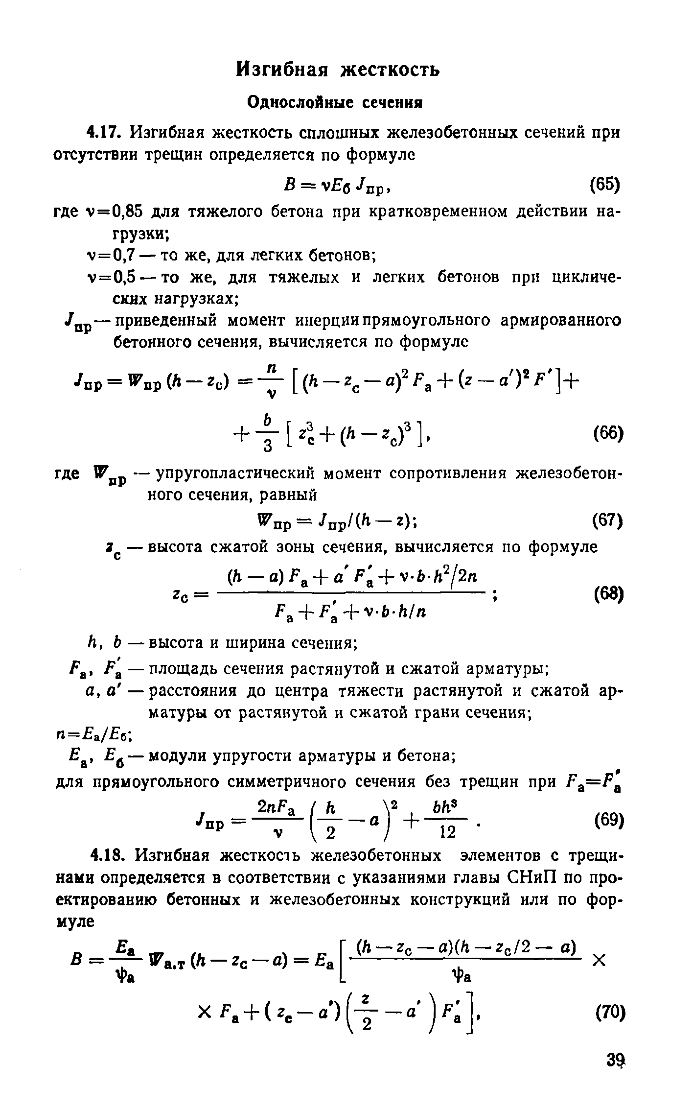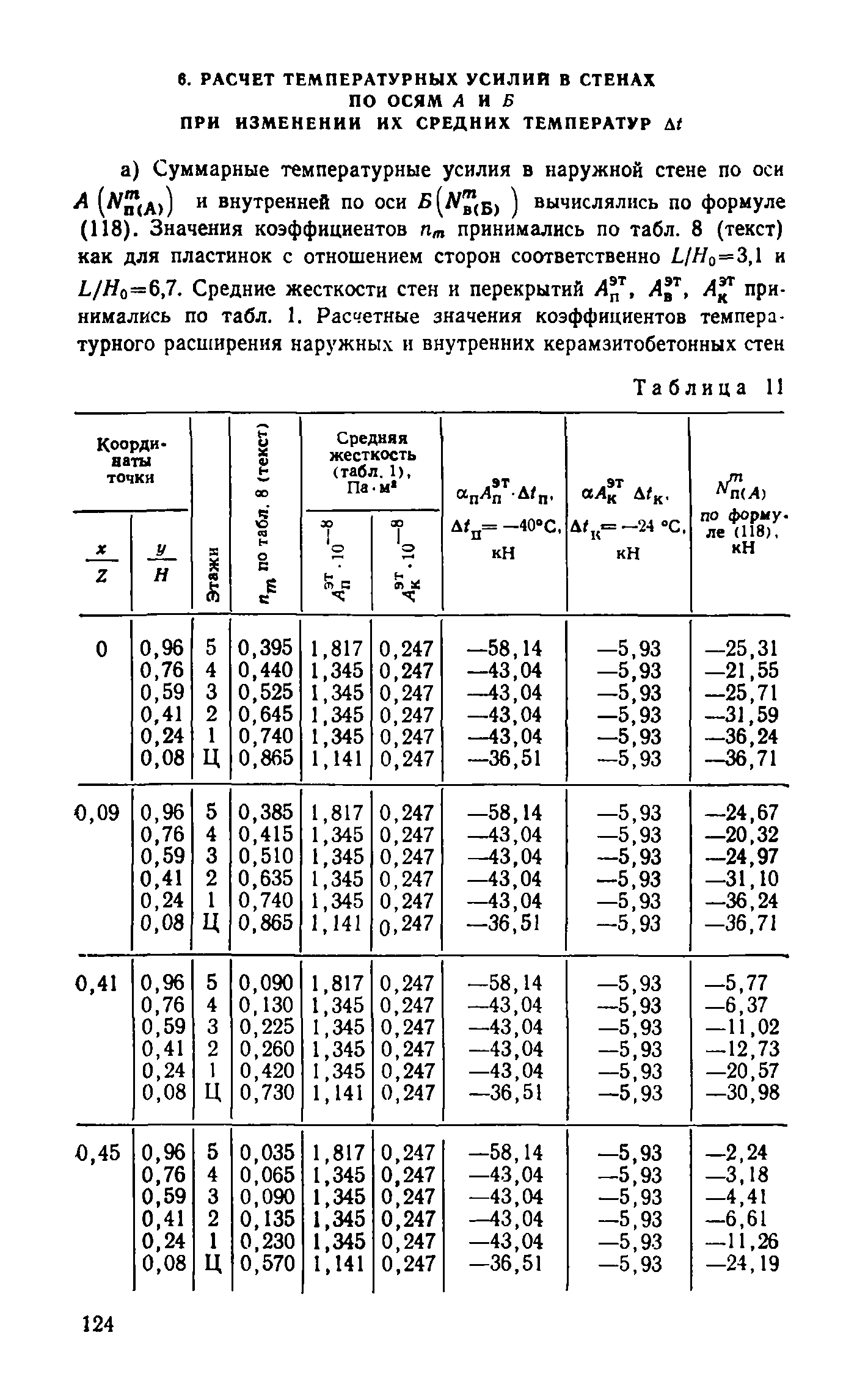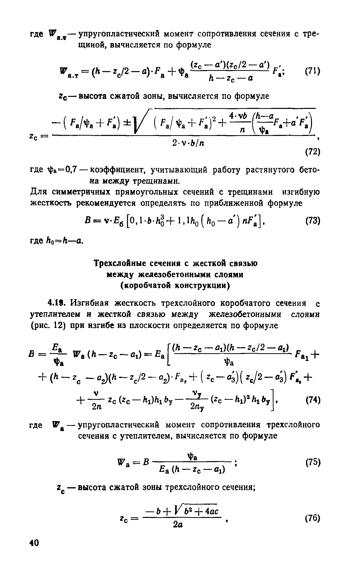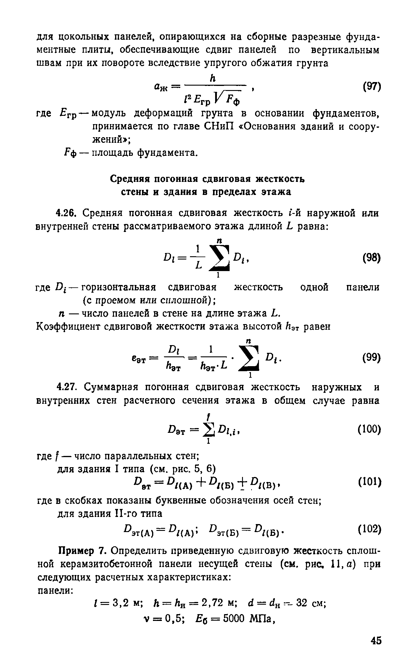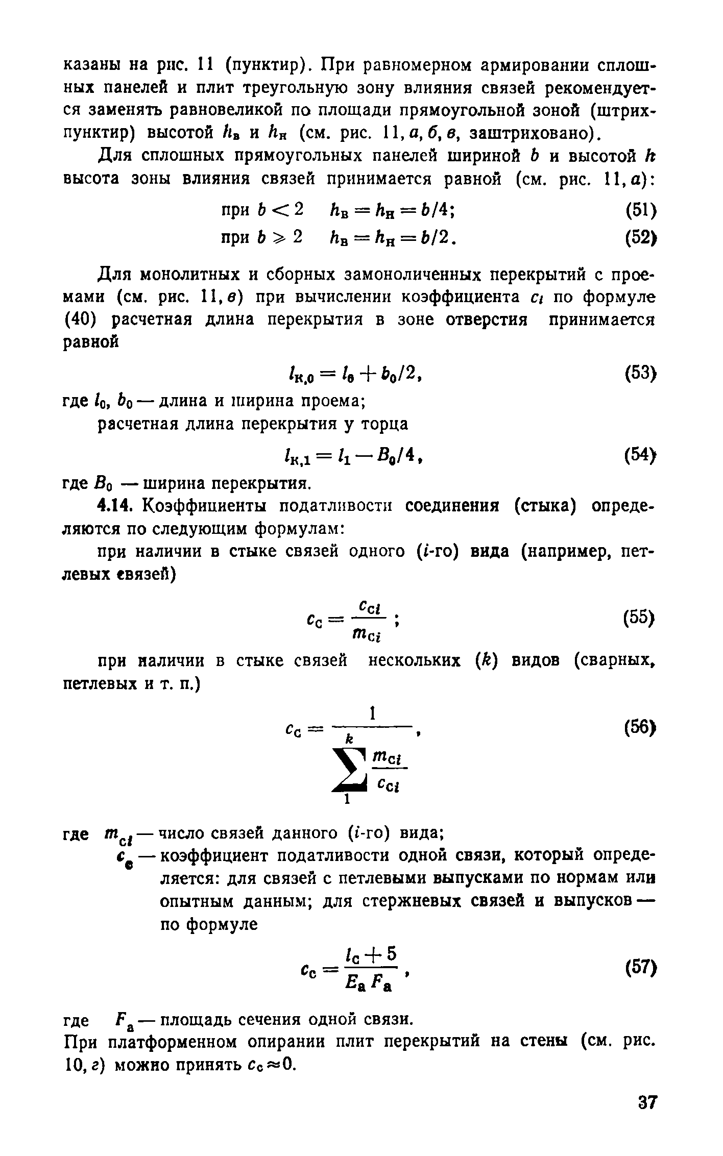| Оглавление: | Предисловие 1 Основные положения 2 Расчетные температуры однослойных и многослойных стен и перекрытий Приведенные средние температуры однослойных и многослойных конструкций Усадка Начальная температура Приближенные значения средних температур однослойных стен и средних температур бетонных слоев трехслойных панелей с гибкими связями 3 Расчетные схемы и методы расчета крупнопанельных зданий на действие температуры 4 Жесткостные характеристики сборных конструкций Продольная жесткость (податливость) составных стержней Изгибная жесткость Сдвиговая жесткость Приведенная высота этажа и здания 5 Расчет стен и перекрытий крупнопанельных зданий как квазнизотропных пластинок на действие средней температуры Расчетные значения коэффициентов температурных усилий и перемещений Температурные усилия в стенах и перекрытиях Влияние отверстий и проемов Горизонтальные и вертикальные перемещения стен и перекрытий 6 Расчет наружных стен из однослойных и многослойных панелей с жесткой связью между слоями на действие перепада температуры по толщине и эксцентриситета продольной силы Основные положения Усилия, прогибы и углы поворота панелей и стыков 7 Расчет трехслойных панелей с гибкими связями на температурные воздействия с учетом упругой работы герметиков 8 Напряжения в арматуре панелей и связях стыков, раскрытие трещин в панелях и вертикальных стыках при совместном действии продольных сил и изгибающих моментов Напряжения в арматуре панелей и связях стыков Раскрытие трещин в бетоне панелей Раскрытие вертикальных стыков панелей 9 Расчет крупнопанельных зданий как плоских или пространственных составных стержней Выбор расчетной схемы. Обозначения Жесткостные характеристики составных стержней Дифференциальные уравнения для горизонтального составного стержня и их решение Приложение 1 Пример расчета на действие температуры крупнопанельного жилого дома I типа с поперечными несущими стенами Приложение 2 Пример расчета на действие температуры крупнопанельного жилого дома II типа с продольными несущими стенами Приложение 3 Пример расчета на действие температуры крупнопанельного жилого дома с поперечными несущими стенами (здание I типа) методом горизонтальных составных стержней Приложение 4 Устройство температурных швов |