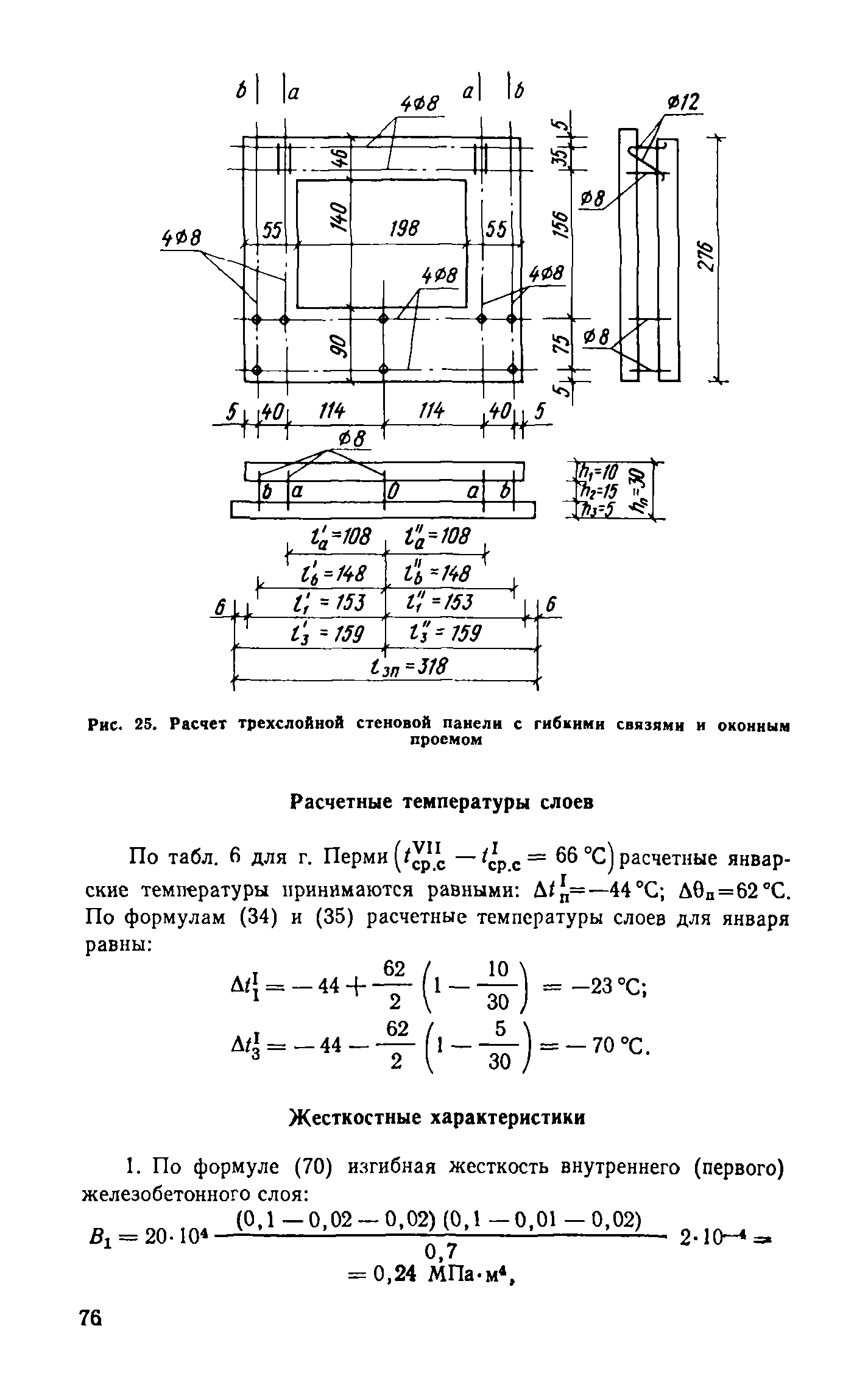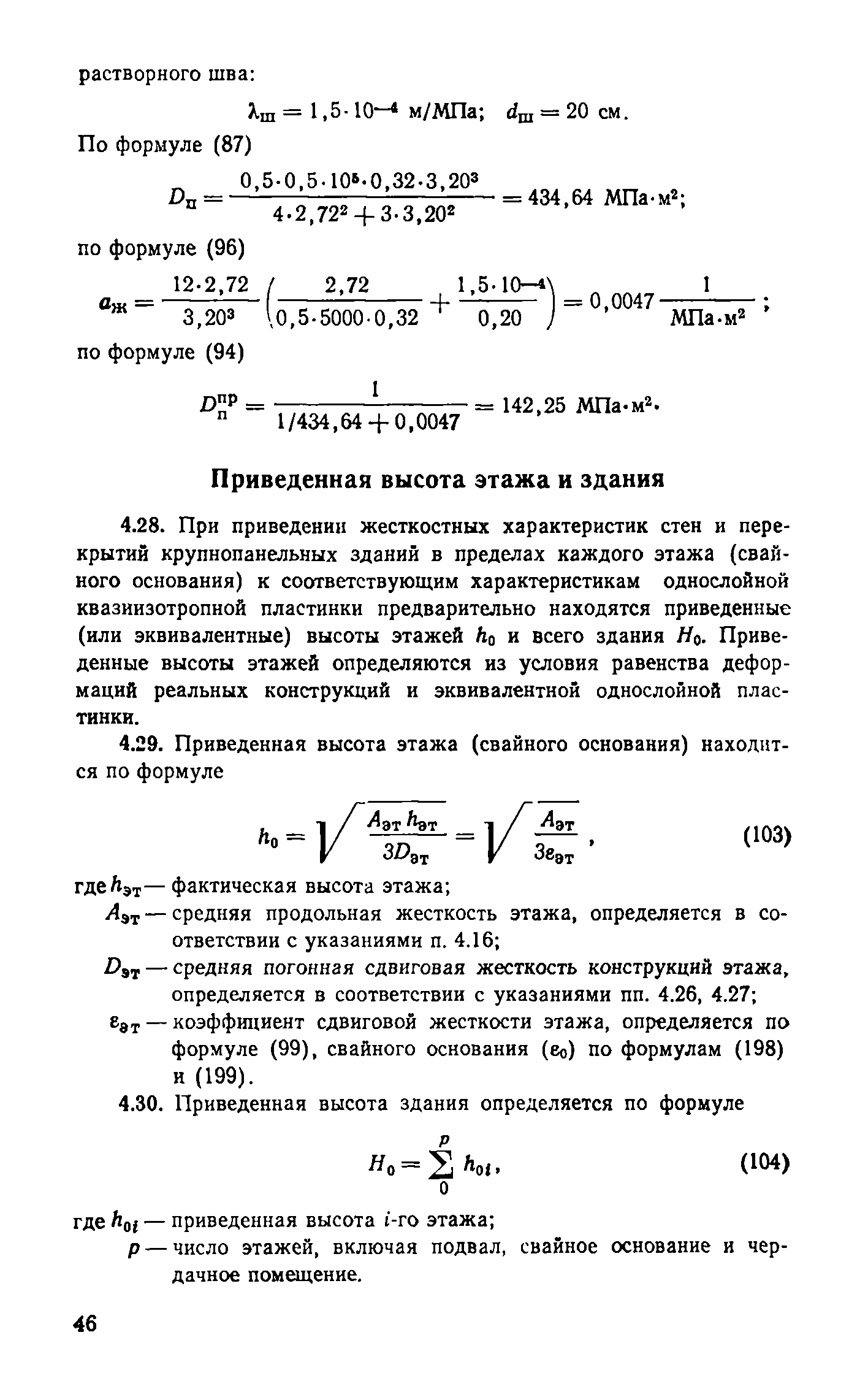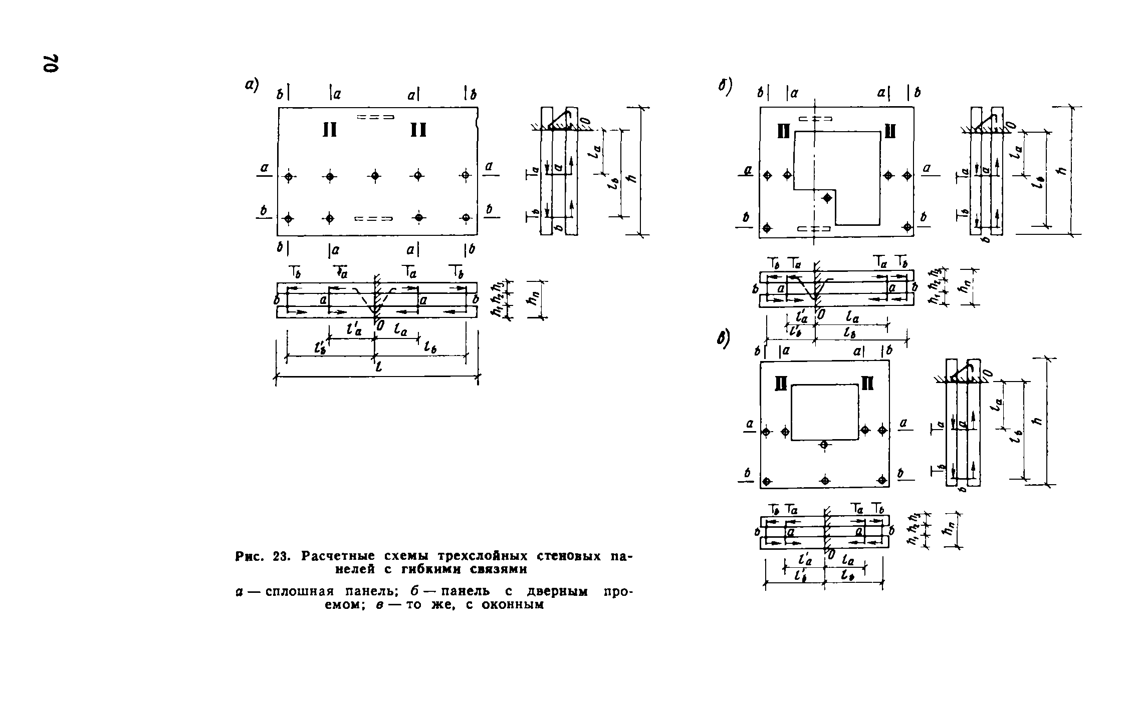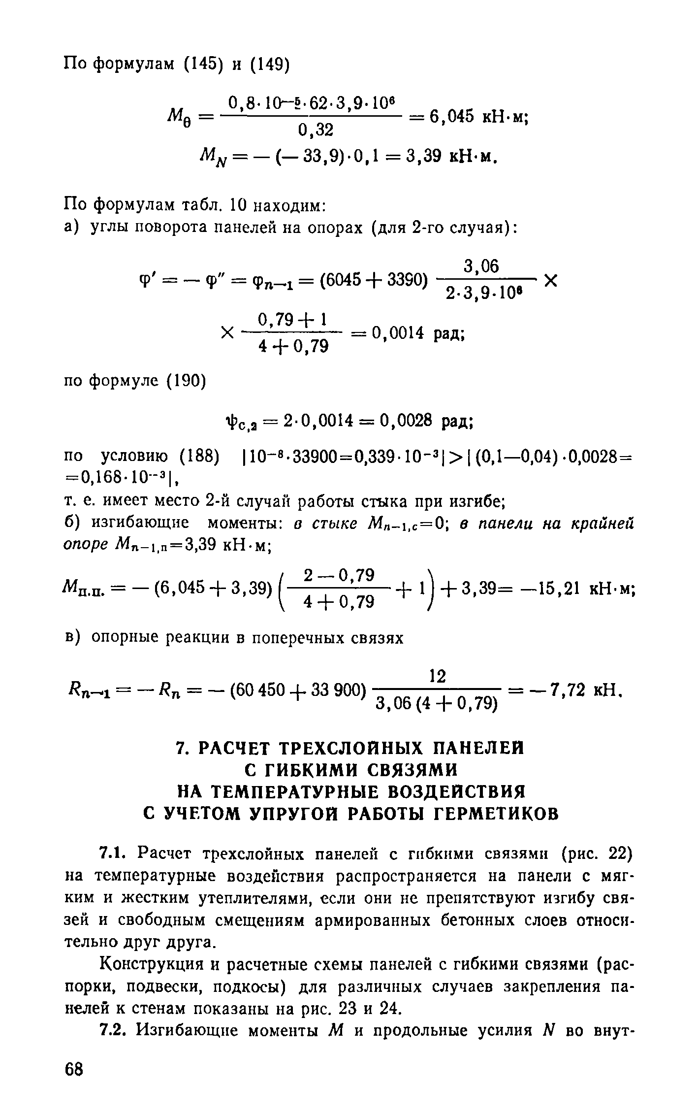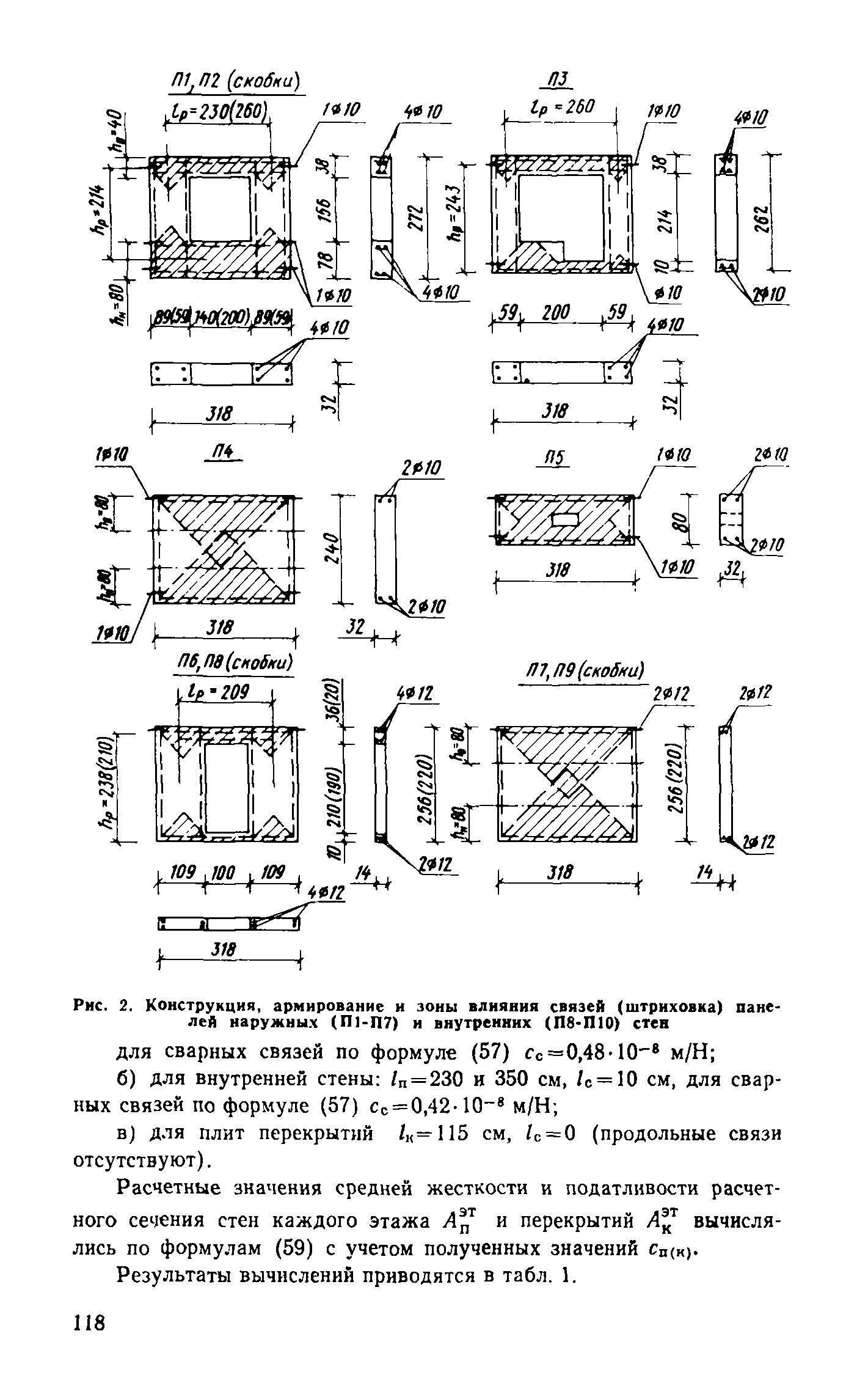 | Оглавление: | Предисловие 1 Основные положения 2 Расчетные температуры однослойных и многослойных стен и перекрытий Приведенные средние температуры однослойных и многослойных конструкций Усадка Начальная температура Приближенные значения средних температур однослойных стен и средних температур бетонных слоев трехслойных панелей с гибкими связями 3 Расчетные схемы и методы расчета крупнопанельных зданий на действие температуры 4 Жесткостные характеристики сборных конструкций Продольная жесткость (податливость) составных стержней Изгибная жесткость Сдвиговая жесткость Приведенная высота этажа и здания 5 Расчет стен и перекрытий крупнопанельных зданий как квазнизотропных пластинок на действие средней температуры Расчетные значения коэффициентов температурных усилий и перемещений Температурные усилия в стенах и перекрытиях Влияние отверстий и проемов Горизонтальные и вертикальные перемещения стен и перекрытий 6 Расчет наружных стен из однослойных и многослойных панелей с жесткой связью между слоями на действие перепада температуры по толщине и эксцентриситета продольной силы Основные положения Усилия, прогибы и углы поворота панелей и стыков 7 Расчет трехслойных панелей с гибкими связями на температурные воздействия с учетом упругой работы герметиков 8 Напряжения в арматуре панелей и связях стыков, раскрытие трещин в панелях и вертикальных стыках при совместном действии продольных сил и изгибающих моментов Напряжения в арматуре панелей и связях стыков Раскрытие трещин в бетоне панелей Раскрытие вертикальных стыков панелей 9 Расчет крупнопанельных зданий как плоских или пространственных составных стержней Выбор расчетной схемы. Обозначения Жесткостные характеристики составных стержней Дифференциальные уравнения для горизонтального составного стержня и их решение Приложение 1 Пример расчета на действие температуры крупнопанельного жилого дома I типа с поперечными несущими стенами Приложение 2 Пример расчета на действие температуры крупнопанельного жилого дома II типа с продольными несущими стенами Приложение 3 Пример расчета на действие температуры крупнопанельного жилого дома с поперечными несущими стенами (здание I типа) методом горизонтальных составных стержней Приложение 4 Устройство температурных швов |