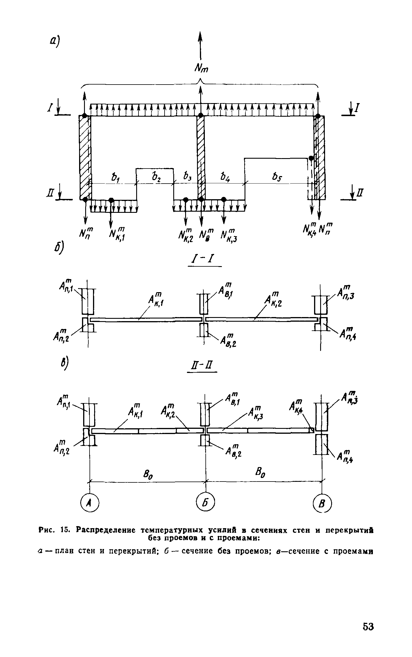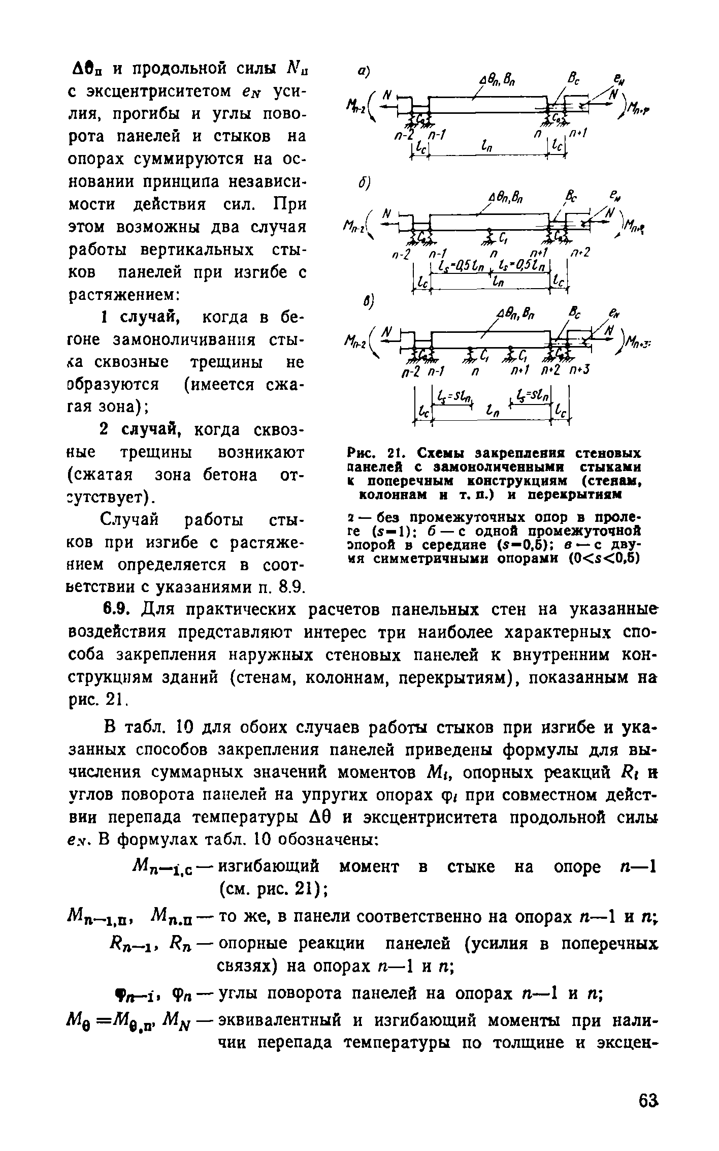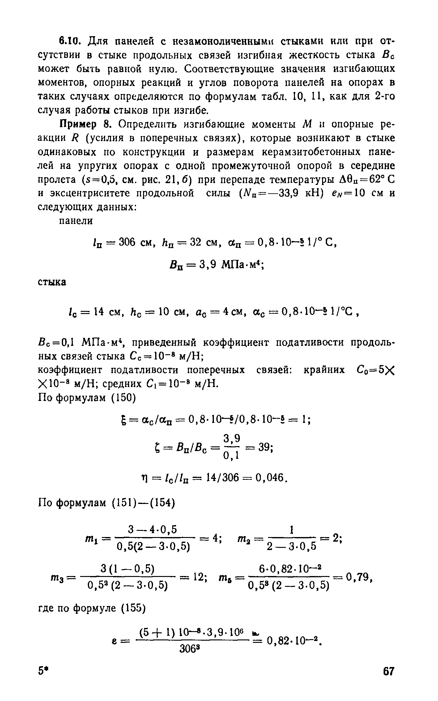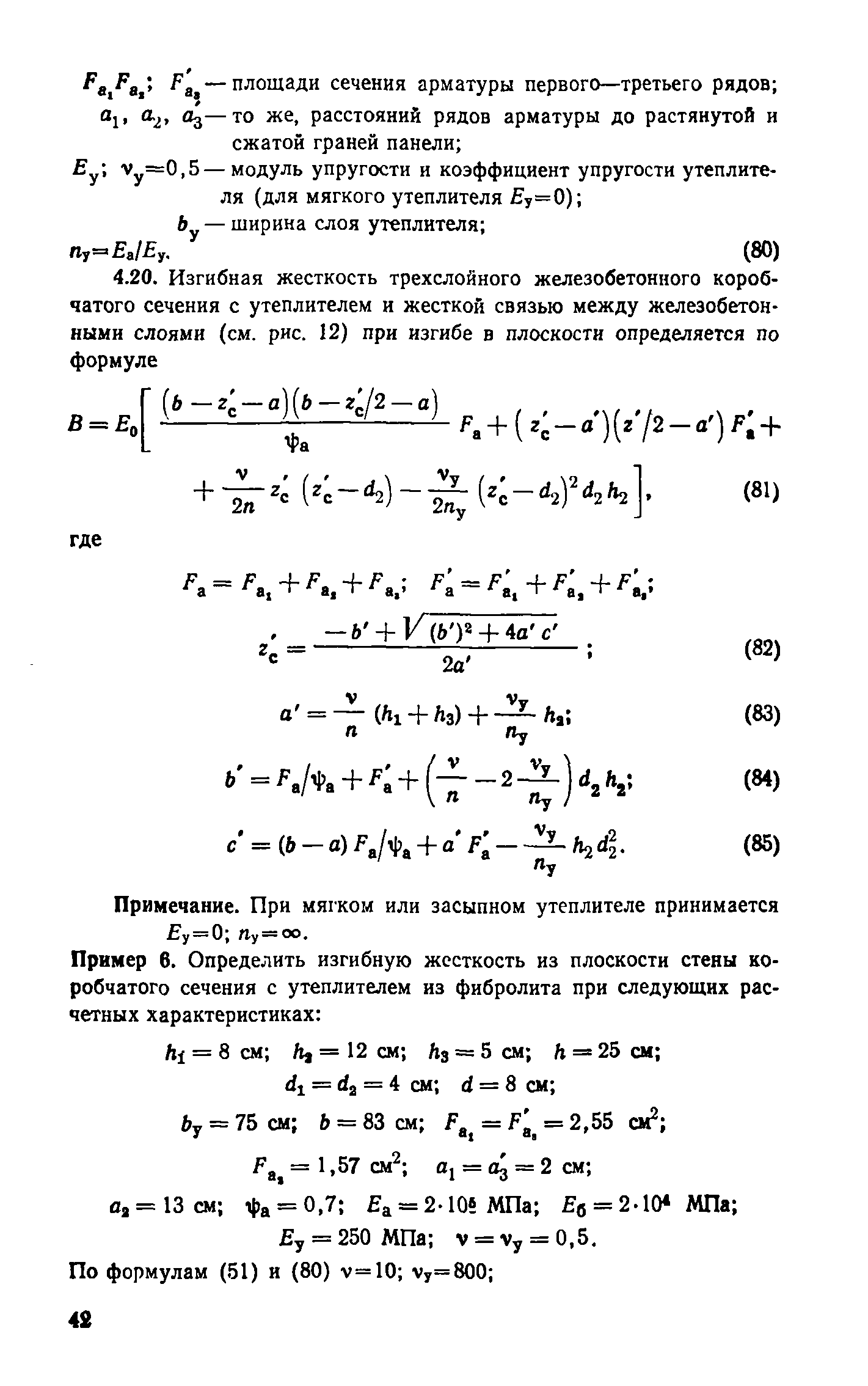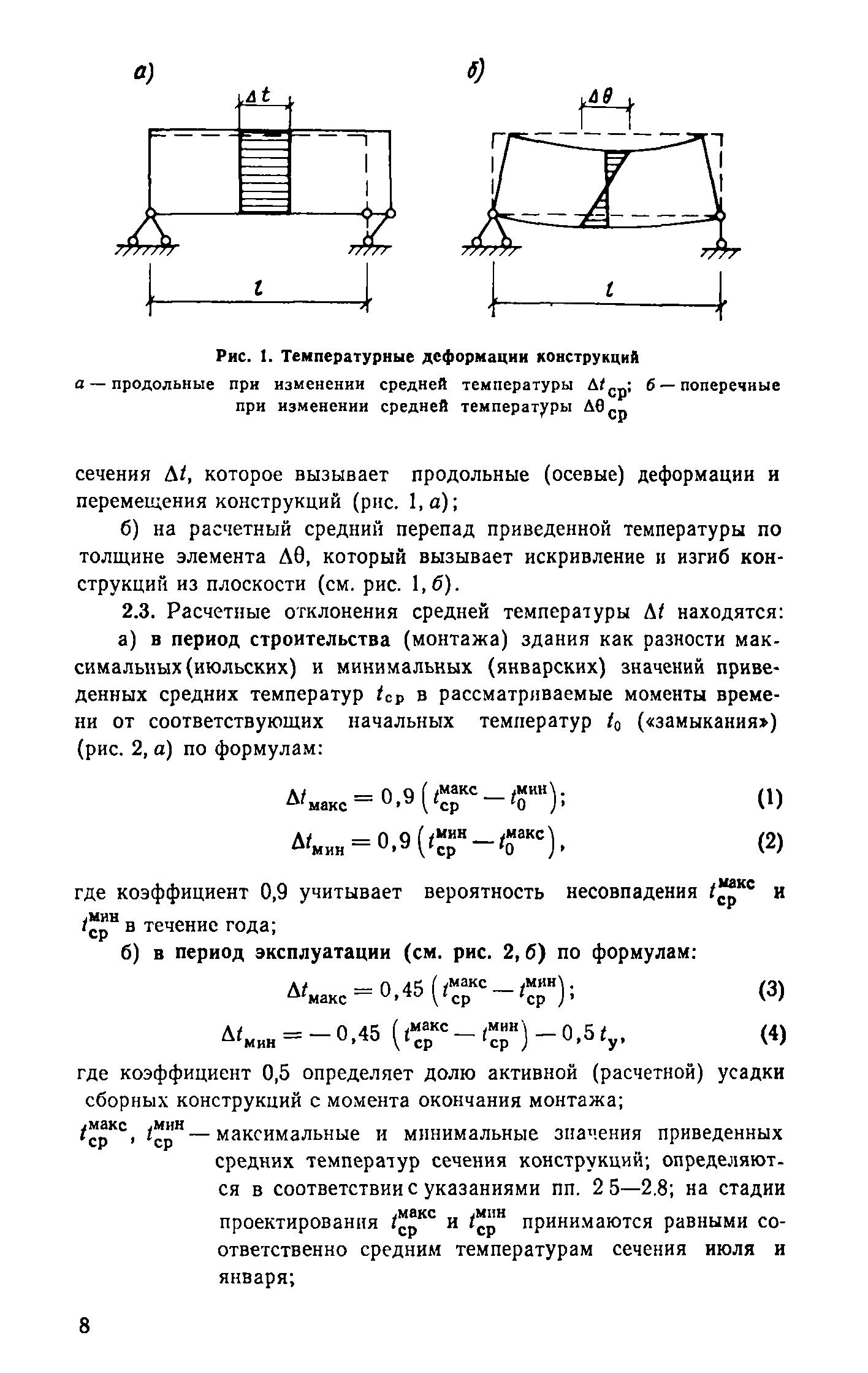 | Оглавление: | Предисловие 1 Основные положения 2 Расчетные температуры однослойных и многослойных стен и перекрытий Приведенные средние температуры однослойных и многослойных конструкций Усадка Начальная температура Приближенные значения средних температур однослойных стен и средних температур бетонных слоев трехслойных панелей с гибкими связями 3 Расчетные схемы и методы расчета крупнопанельных зданий на действие температуры 4 Жесткостные характеристики сборных конструкций Продольная жесткость (податливость) составных стержней Изгибная жесткость Сдвиговая жесткость Приведенная высота этажа и здания 5 Расчет стен и перекрытий крупнопанельных зданий как квазнизотропных пластинок на действие средней температуры Расчетные значения коэффициентов температурных усилий и перемещений Температурные усилия в стенах и перекрытиях Влияние отверстий и проемов Горизонтальные и вертикальные перемещения стен и перекрытий 6 Расчет наружных стен из однослойных и многослойных панелей с жесткой связью между слоями на действие перепада температуры по толщине и эксцентриситета продольной силы Основные положения Усилия, прогибы и углы поворота панелей и стыков 7 Расчет трехслойных панелей с гибкими связями на температурные воздействия с учетом упругой работы герметиков 8 Напряжения в арматуре панелей и связях стыков, раскрытие трещин в панелях и вертикальных стыках при совместном действии продольных сил и изгибающих моментов Напряжения в арматуре панелей и связях стыков Раскрытие трещин в бетоне панелей Раскрытие вертикальных стыков панелей 9 Расчет крупнопанельных зданий как плоских или пространственных составных стержней Выбор расчетной схемы. Обозначения Жесткостные характеристики составных стержней Дифференциальные уравнения для горизонтального составного стержня и их решение Приложение 1 Пример расчета на действие температуры крупнопанельного жилого дома I типа с поперечными несущими стенами Приложение 2 Пример расчета на действие температуры крупнопанельного жилого дома II типа с продольными несущими стенами Приложение 3 Пример расчета на действие температуры крупнопанельного жилого дома с поперечными несущими стенами (здание I типа) методом горизонтальных составных стержней Приложение 4 Устройство температурных швов |