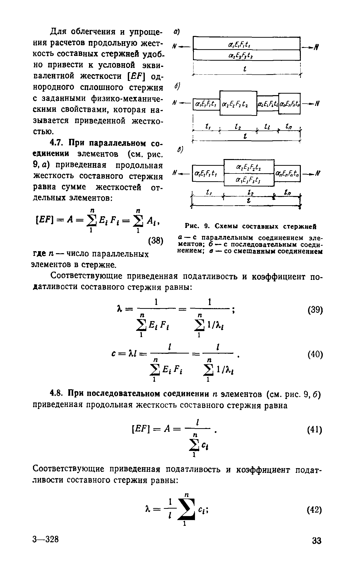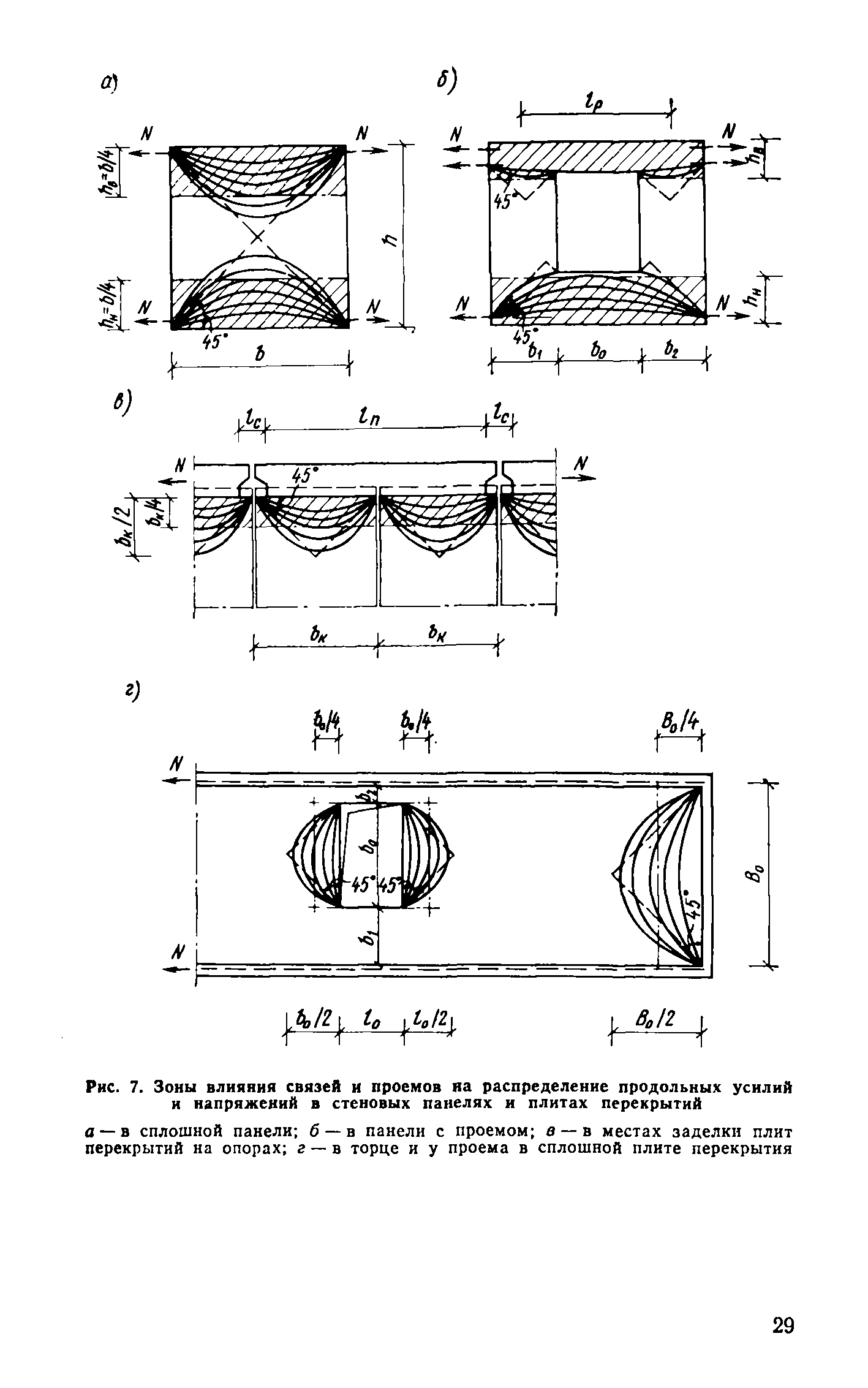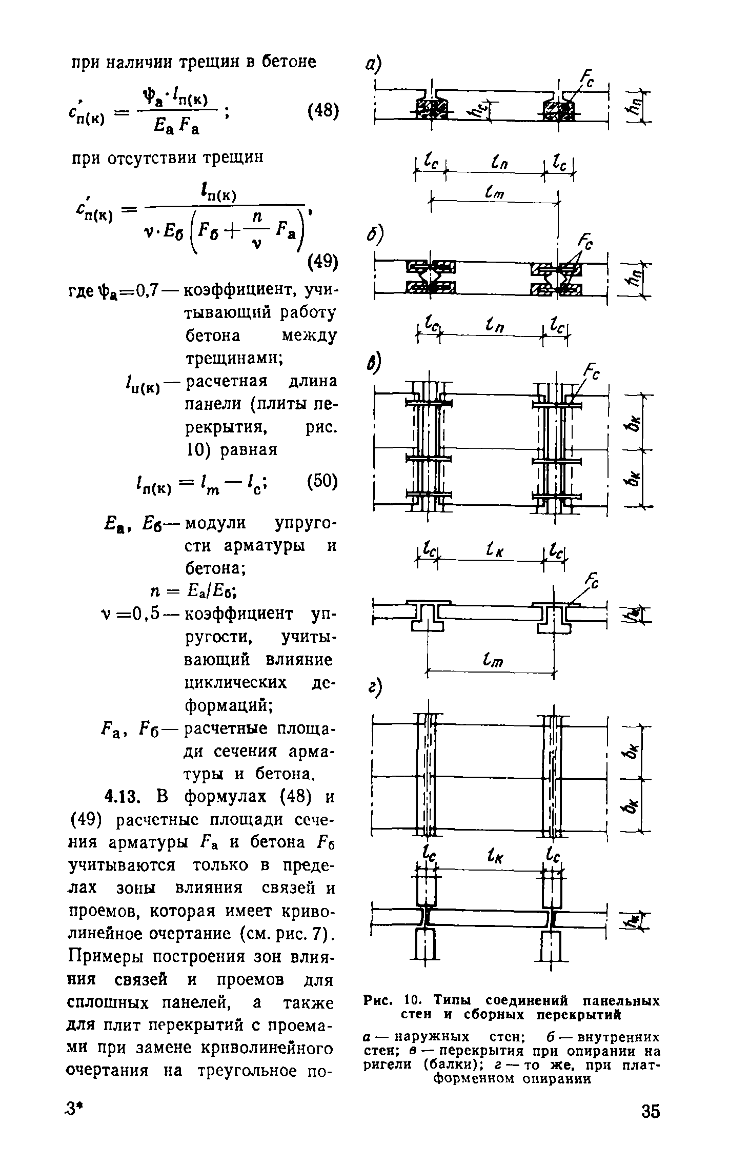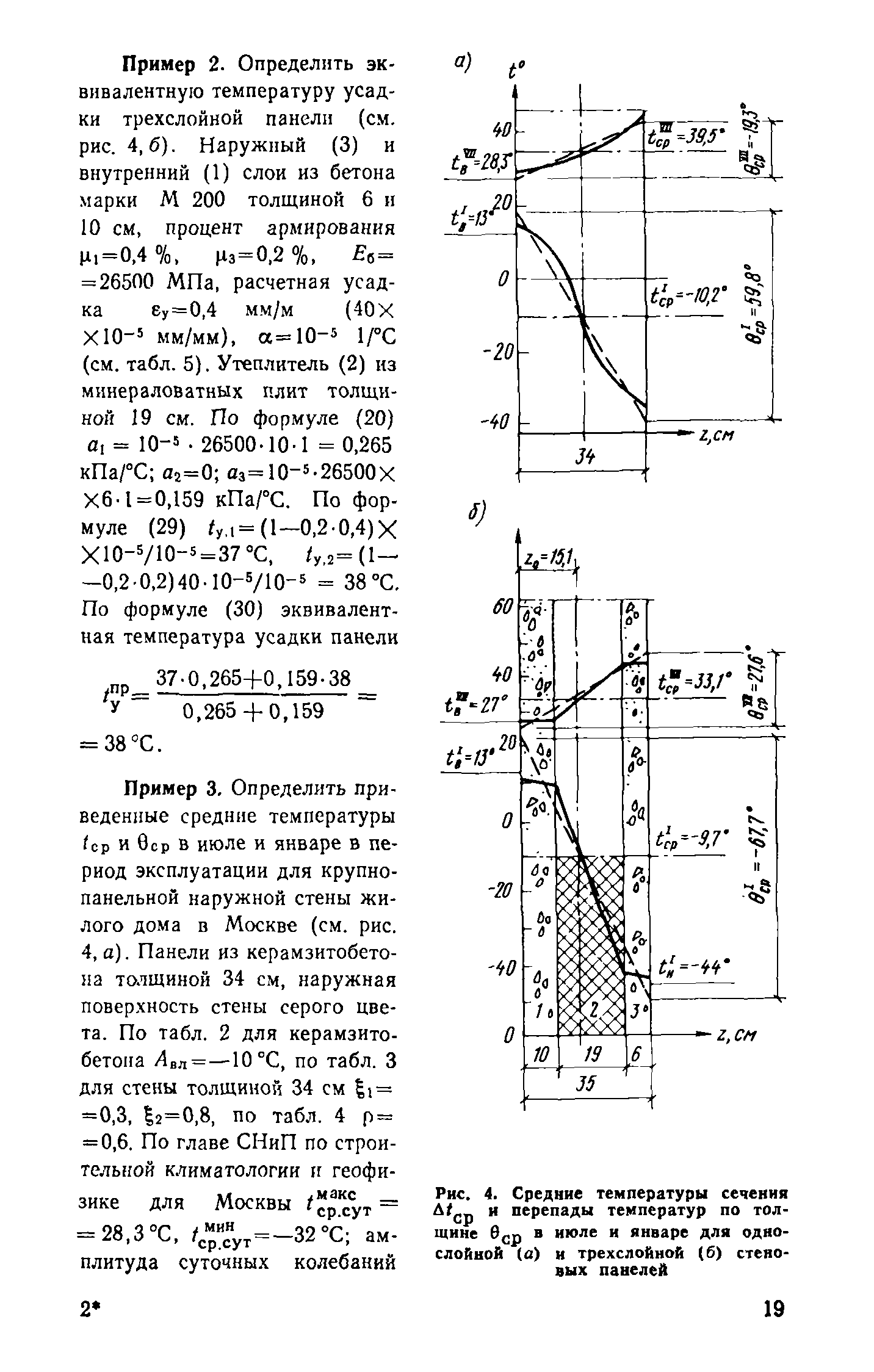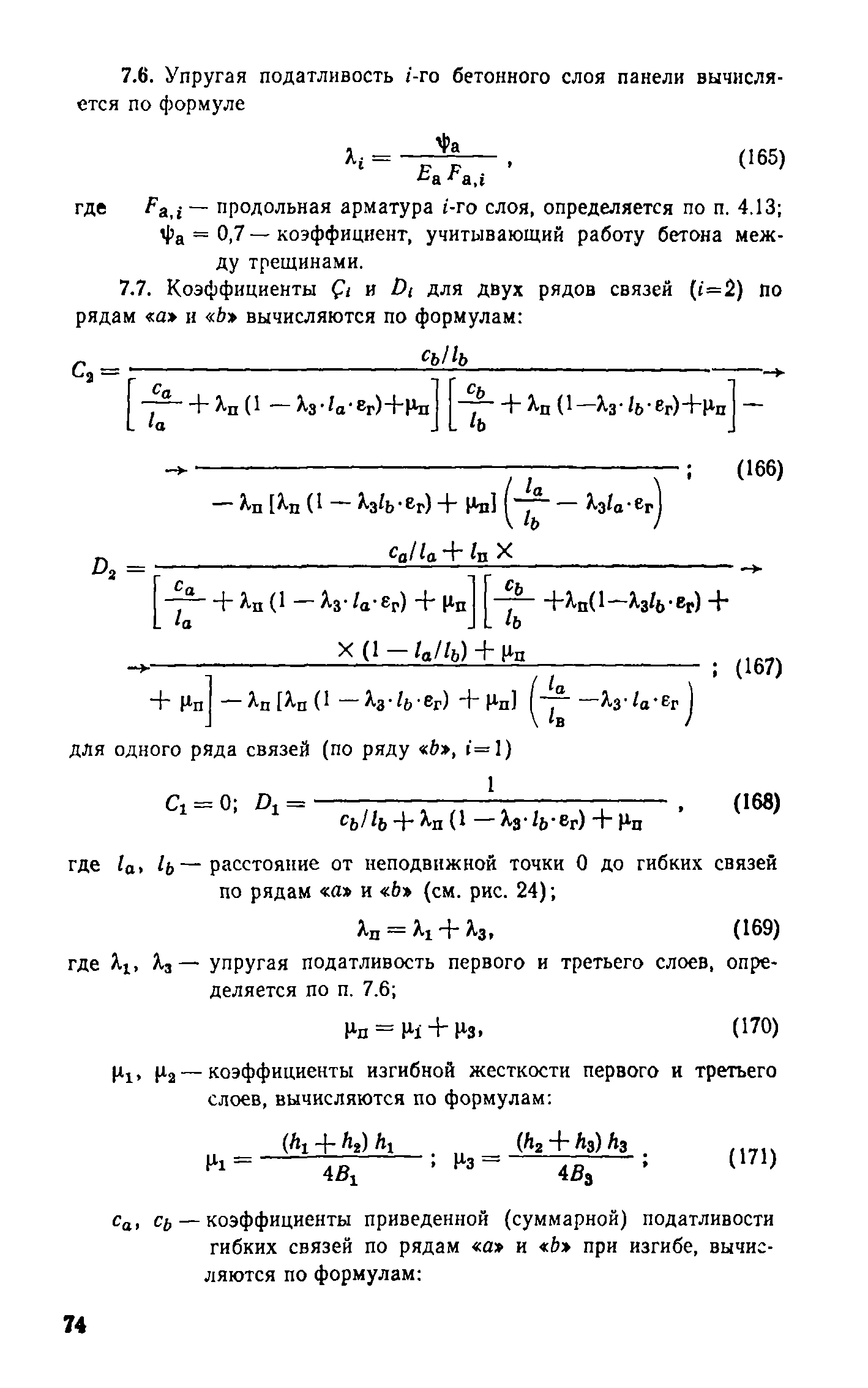 | Оглавление: | Предисловие 1 Основные положения 2 Расчетные температуры однослойных и многослойных стен и перекрытий Приведенные средние температуры однослойных и многослойных конструкций Усадка Начальная температура Приближенные значения средних температур однослойных стен и средних температур бетонных слоев трехслойных панелей с гибкими связями 3 Расчетные схемы и методы расчета крупнопанельных зданий на действие температуры 4 Жесткостные характеристики сборных конструкций Продольная жесткость (податливость) составных стержней Изгибная жесткость Сдвиговая жесткость Приведенная высота этажа и здания 5 Расчет стен и перекрытий крупнопанельных зданий как квазнизотропных пластинок на действие средней температуры Расчетные значения коэффициентов температурных усилий и перемещений Температурные усилия в стенах и перекрытиях Влияние отверстий и проемов Горизонтальные и вертикальные перемещения стен и перекрытий 6 Расчет наружных стен из однослойных и многослойных панелей с жесткой связью между слоями на действие перепада температуры по толщине и эксцентриситета продольной силы Основные положения Усилия, прогибы и углы поворота панелей и стыков 7 Расчет трехслойных панелей с гибкими связями на температурные воздействия с учетом упругой работы герметиков 8 Напряжения в арматуре панелей и связях стыков, раскрытие трещин в панелях и вертикальных стыках при совместном действии продольных сил и изгибающих моментов Напряжения в арматуре панелей и связях стыков Раскрытие трещин в бетоне панелей Раскрытие вертикальных стыков панелей 9 Расчет крупнопанельных зданий как плоских или пространственных составных стержней Выбор расчетной схемы. Обозначения Жесткостные характеристики составных стержней Дифференциальные уравнения для горизонтального составного стержня и их решение Приложение 1 Пример расчета на действие температуры крупнопанельного жилого дома I типа с поперечными несущими стенами Приложение 2 Пример расчета на действие температуры крупнопанельного жилого дома II типа с продольными несущими стенами Приложение 3 Пример расчета на действие температуры крупнопанельного жилого дома с поперечными несущими стенами (здание I типа) методом горизонтальных составных стержней Приложение 4 Устройство температурных швов |