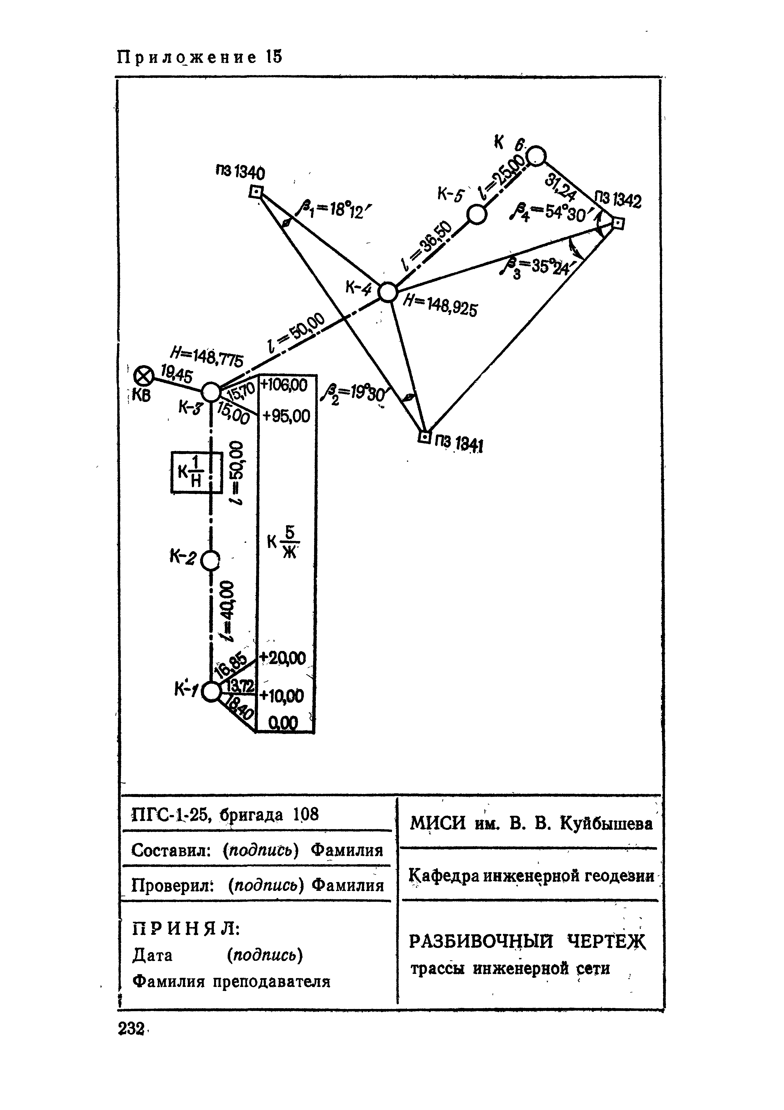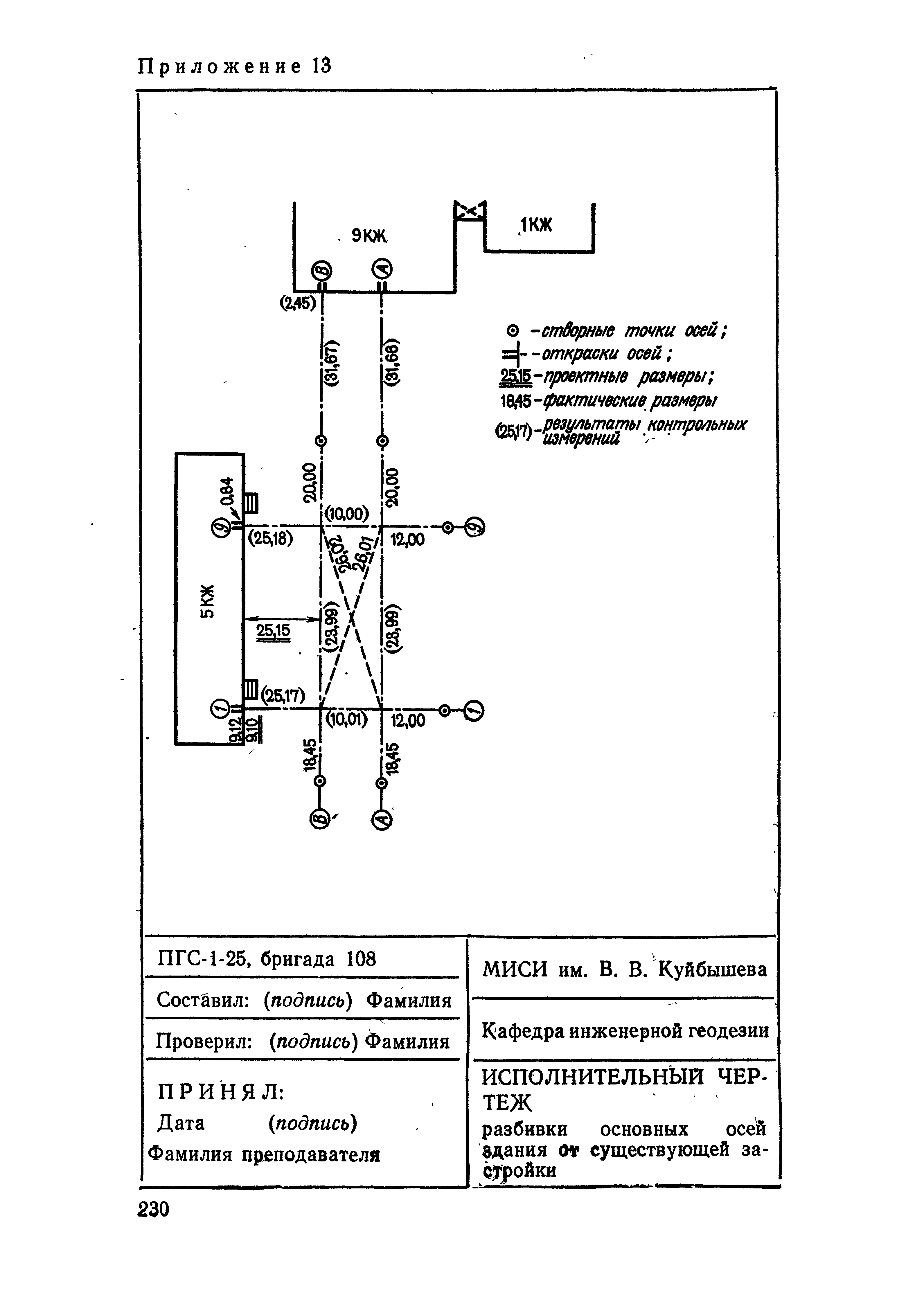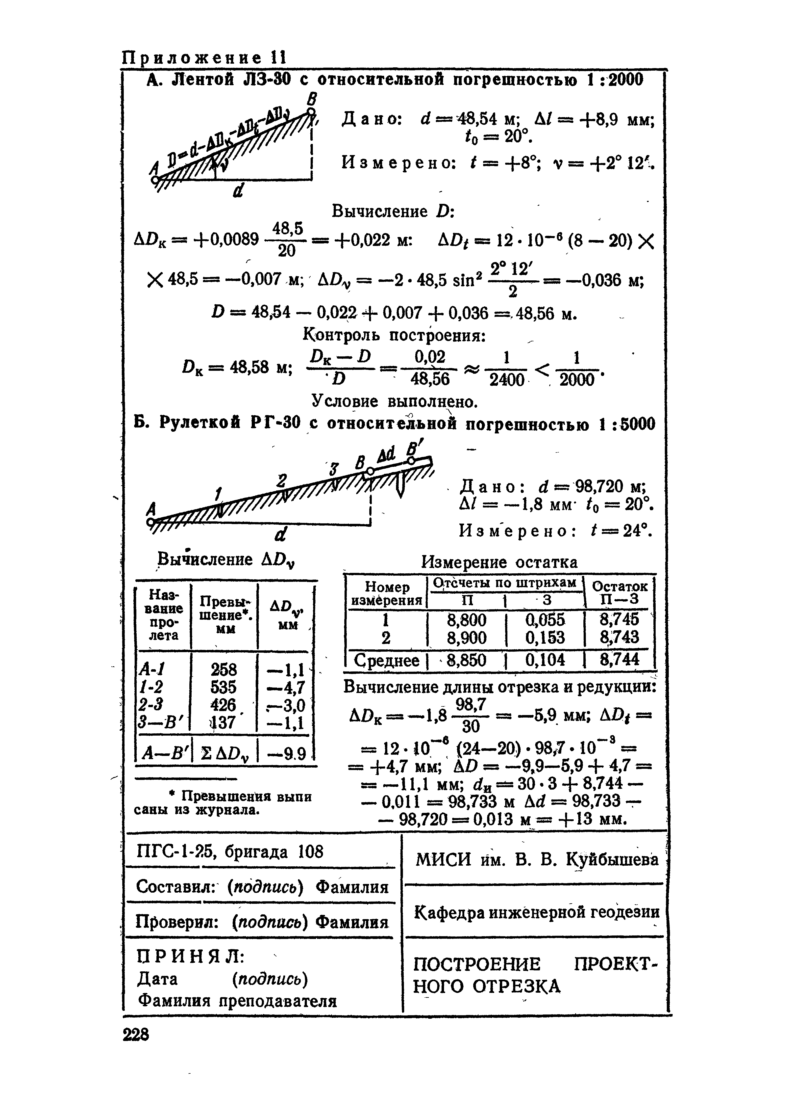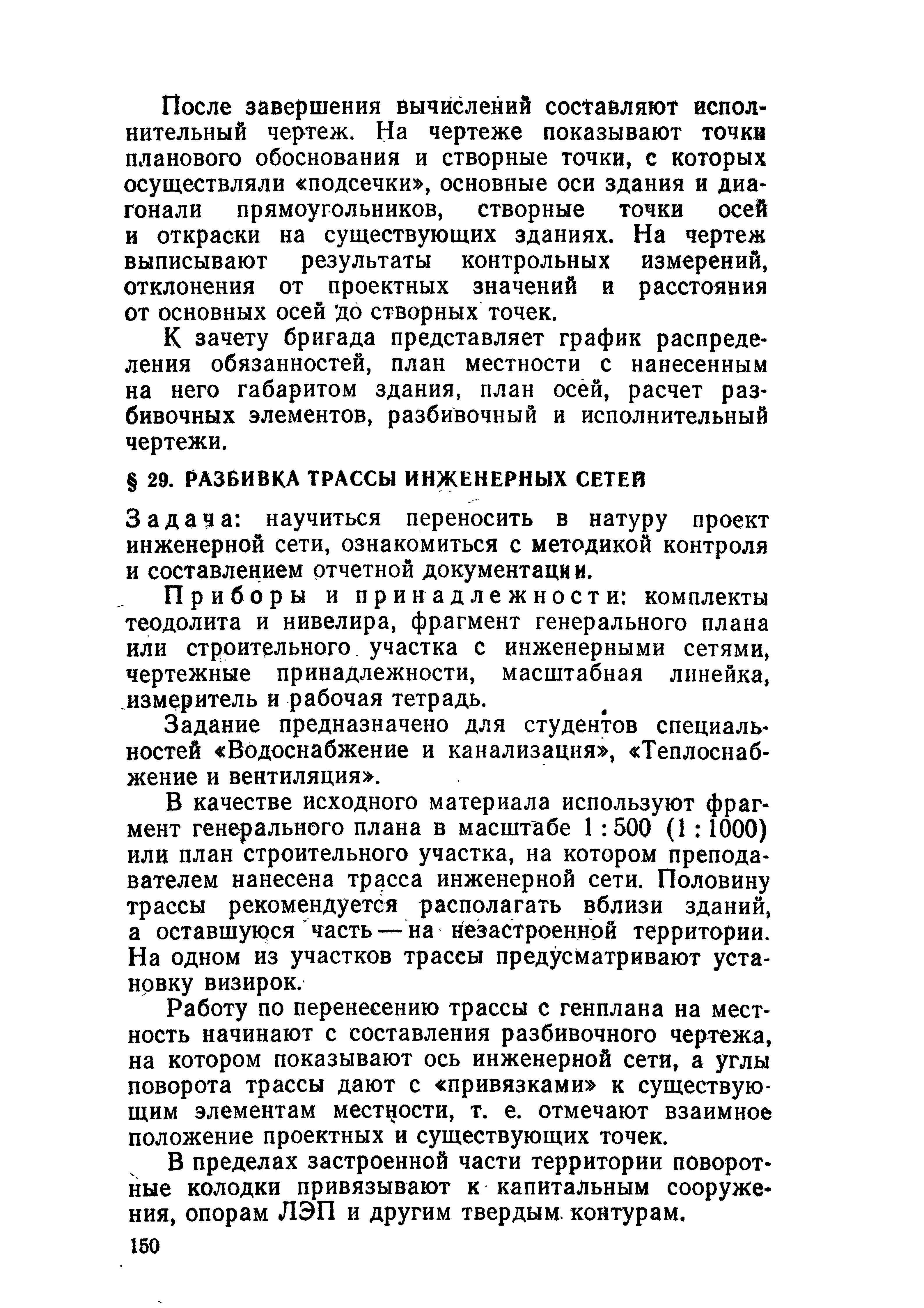 | Оглавление: | Раздел I. Общие виды инженерно-геодезических работ Глава 1. Общие сведения о практике Глава 2. Геодезические приборы, инструменты и вспомогательное оборудование Глава 3. Топографические съемки Раздел II. Cпециальные виды инженерно-геодезических работ Глава 4. Нивелирование поверхности и теодезические расчеты при вертикальной планировке строительных участков Глава 5. Геодезические работы на трассе сооружения линейного типа Глава 6. Построение в натуре элементов разбивочных работ Глава 7. Перенесение на местность проектов застройки Глава 8. Геодезические работы при монтаже конструкций зданий Глава 9. Специальная геодезическая техника в строительном производстве Список литературы Приложение 1 Перечень необходимых приборов, оборудования и учебных пособий для геодезической практики Приложение 2 Московский ордена трудового красного знамени инженерно-строительный институт им. В.В. Куйбышева Приложение 3. Общие правила обращения с геодезическими приборами и вспомогательными приспособлениями Приложение 4 Таблица поправок за наклон линий (мм) ?Dv= -2D $in2(v/) Приложение 5. Условные знаки топографических планов масштаба 1:500) Приложение 6. План строительного участка 108 Приложение 7 Приложение 8 Приложение 9 Приложение 10 Приложение 11 Приложение 12 Приложение 13 Приложение 14 Приложение 15 Приложение 16 Приложение 17 |