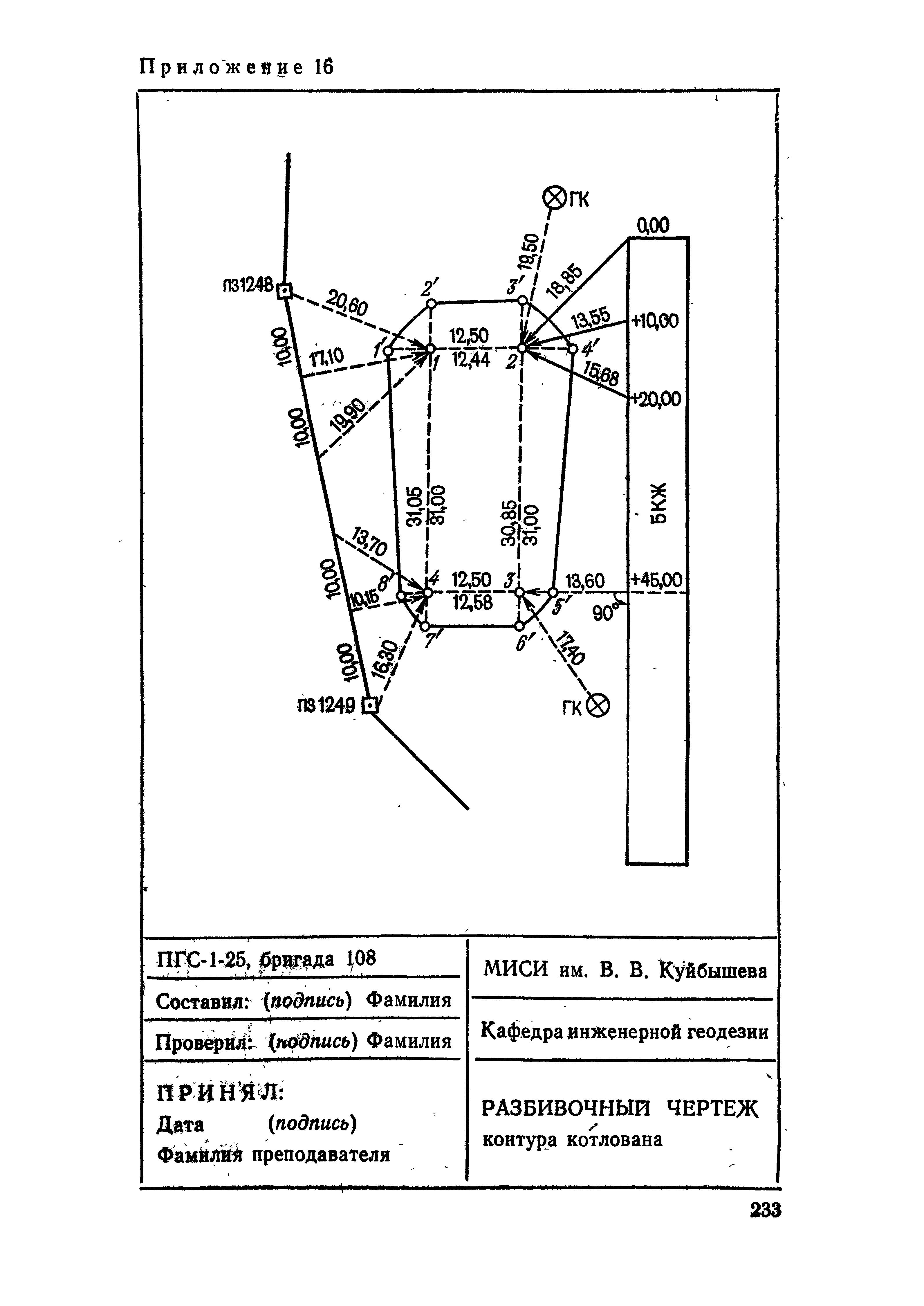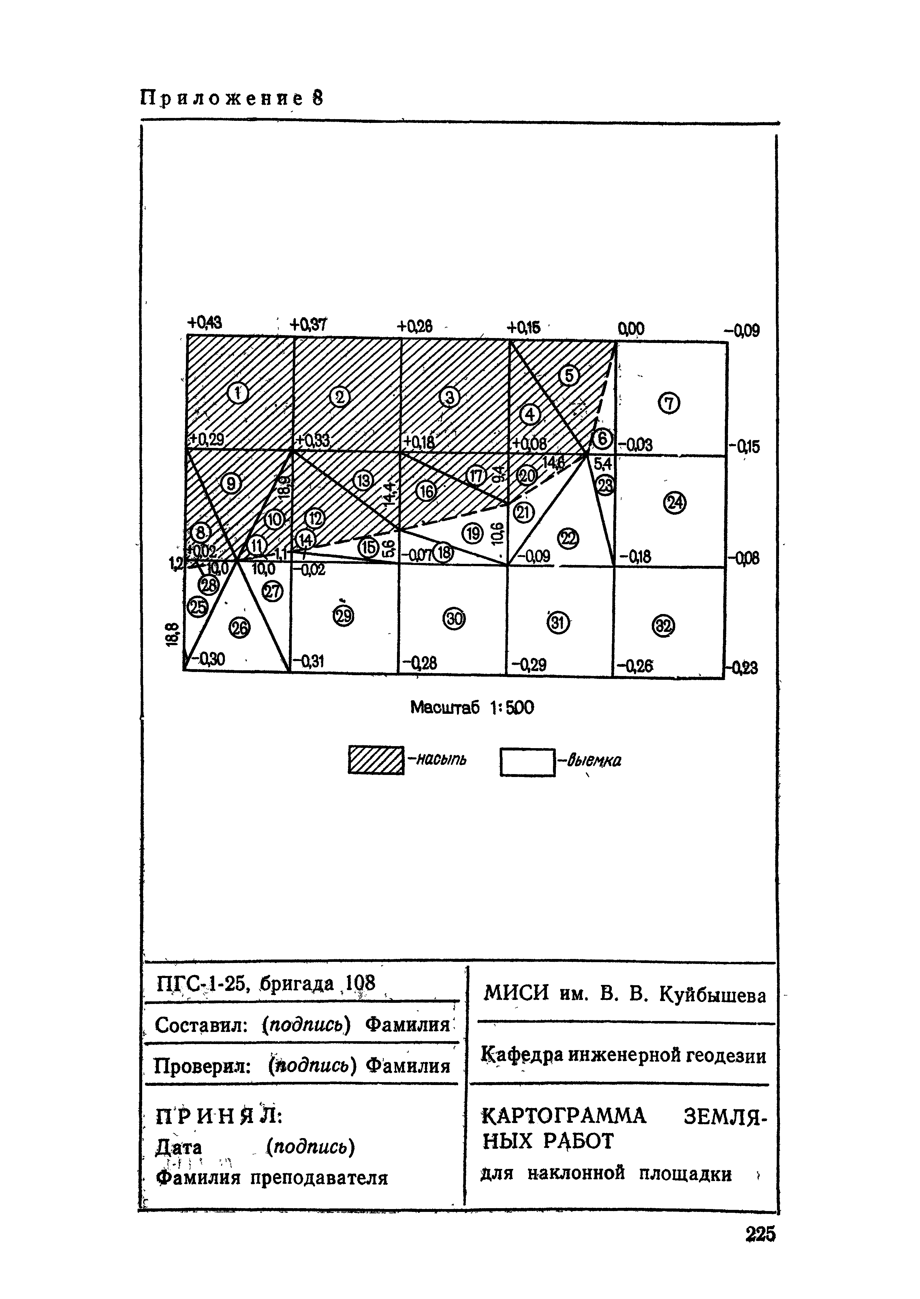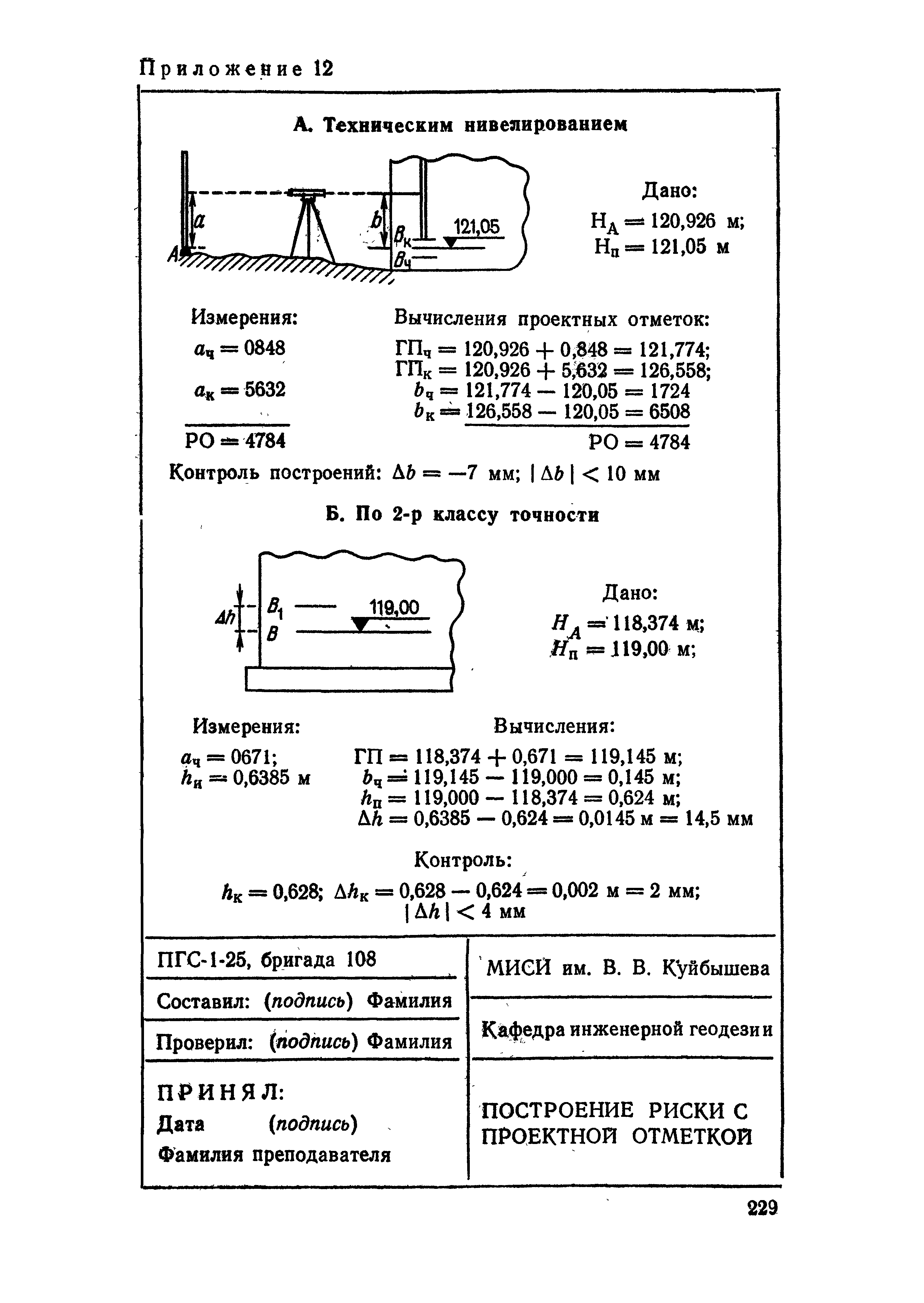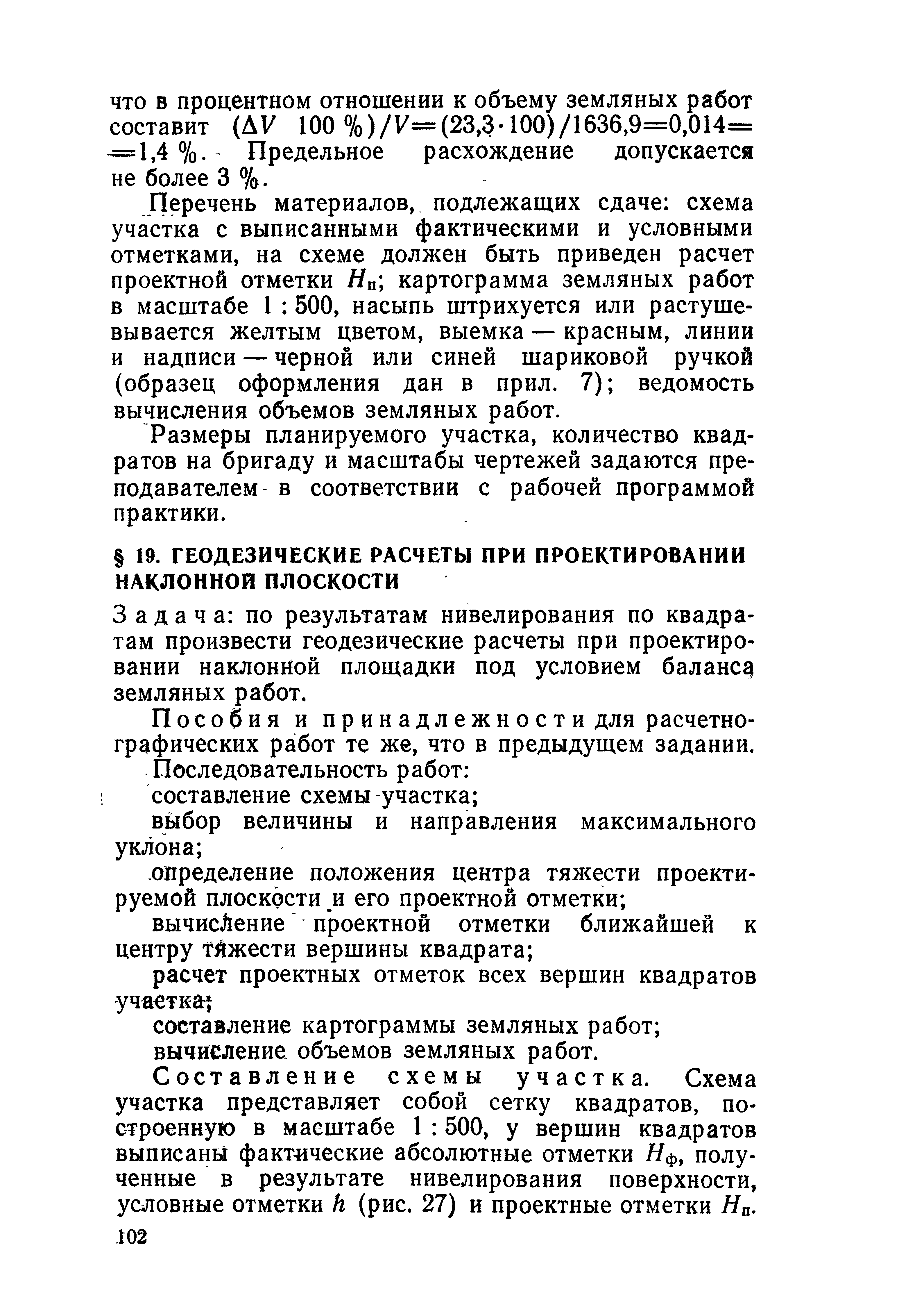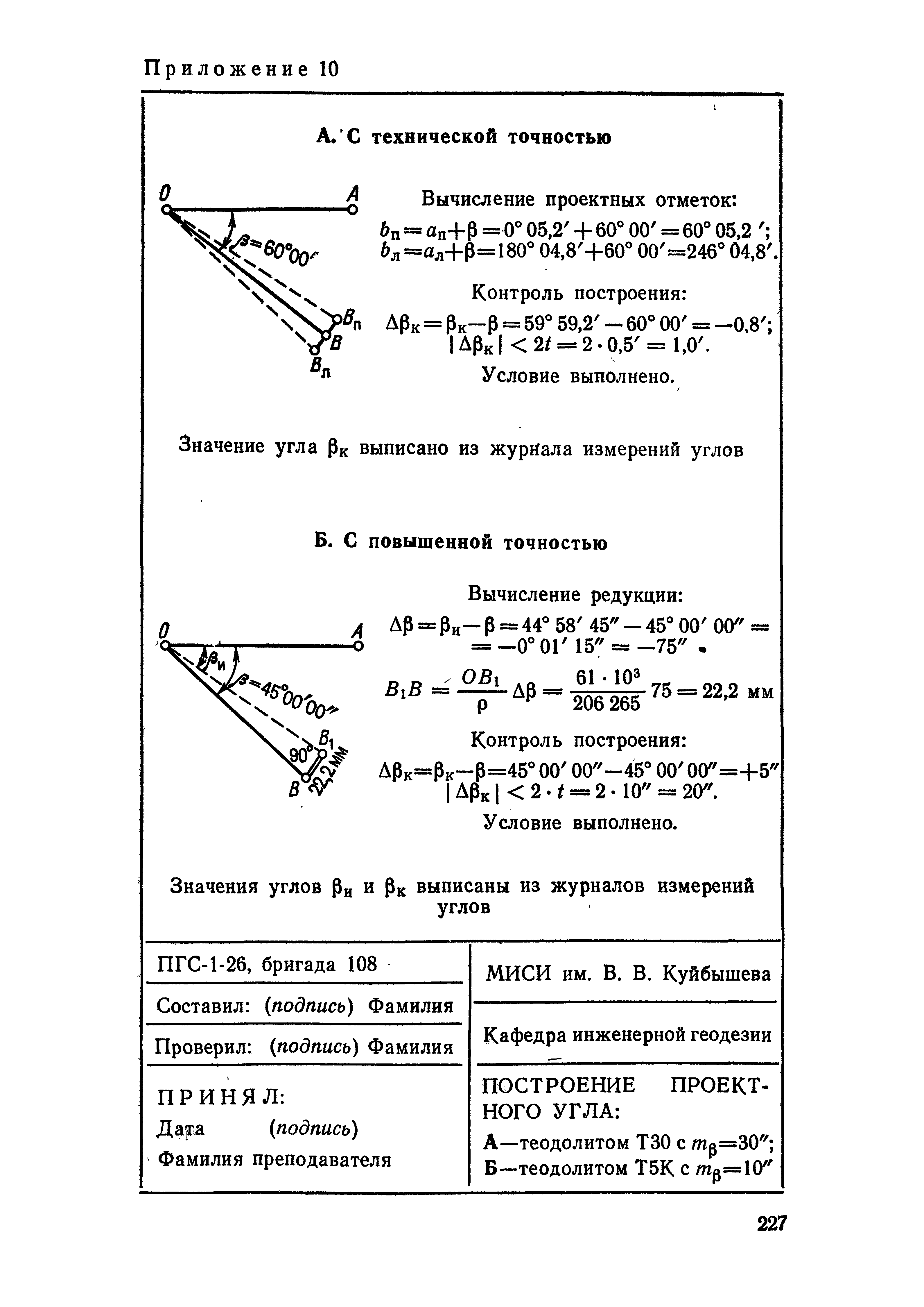 | Оглавление: | Раздел I. Общие виды инженерно-геодезических работ Глава 1. Общие сведения о практике Глава 2. Геодезические приборы, инструменты и вспомогательное оборудование Глава 3. Топографические съемки Раздел II. Cпециальные виды инженерно-геодезических работ Глава 4. Нивелирование поверхности и теодезические расчеты при вертикальной планировке строительных участков Глава 5. Геодезические работы на трассе сооружения линейного типа Глава 6. Построение в натуре элементов разбивочных работ Глава 7. Перенесение на местность проектов застройки Глава 8. Геодезические работы при монтаже конструкций зданий Глава 9. Специальная геодезическая техника в строительном производстве Список литературы Приложение 1 Перечень необходимых приборов, оборудования и учебных пособий для геодезической практики Приложение 2 Московский ордена трудового красного знамени инженерно-строительный институт им. В.В. Куйбышева Приложение 3. Общие правила обращения с геодезическими приборами и вспомогательными приспособлениями Приложение 4 Таблица поправок за наклон линий (мм) ?Dv= -2D $in2(v/) Приложение 5. Условные знаки топографических планов масштаба 1:500) Приложение 6. План строительного участка 108 Приложение 7 Приложение 8 Приложение 9 Приложение 10 Приложение 11 Приложение 12 Приложение 13 Приложение 14 Приложение 15 Приложение 16 Приложение 17 |