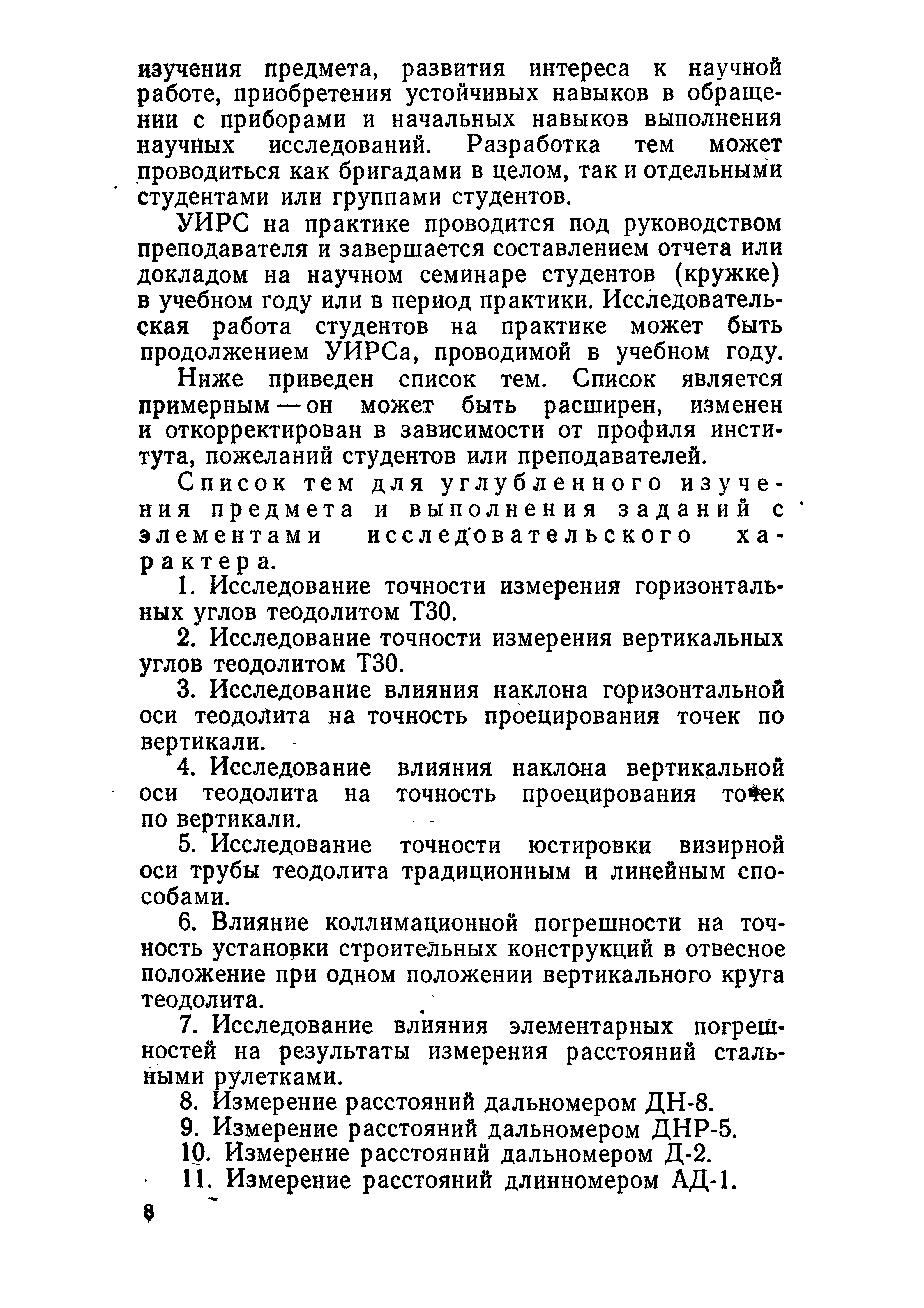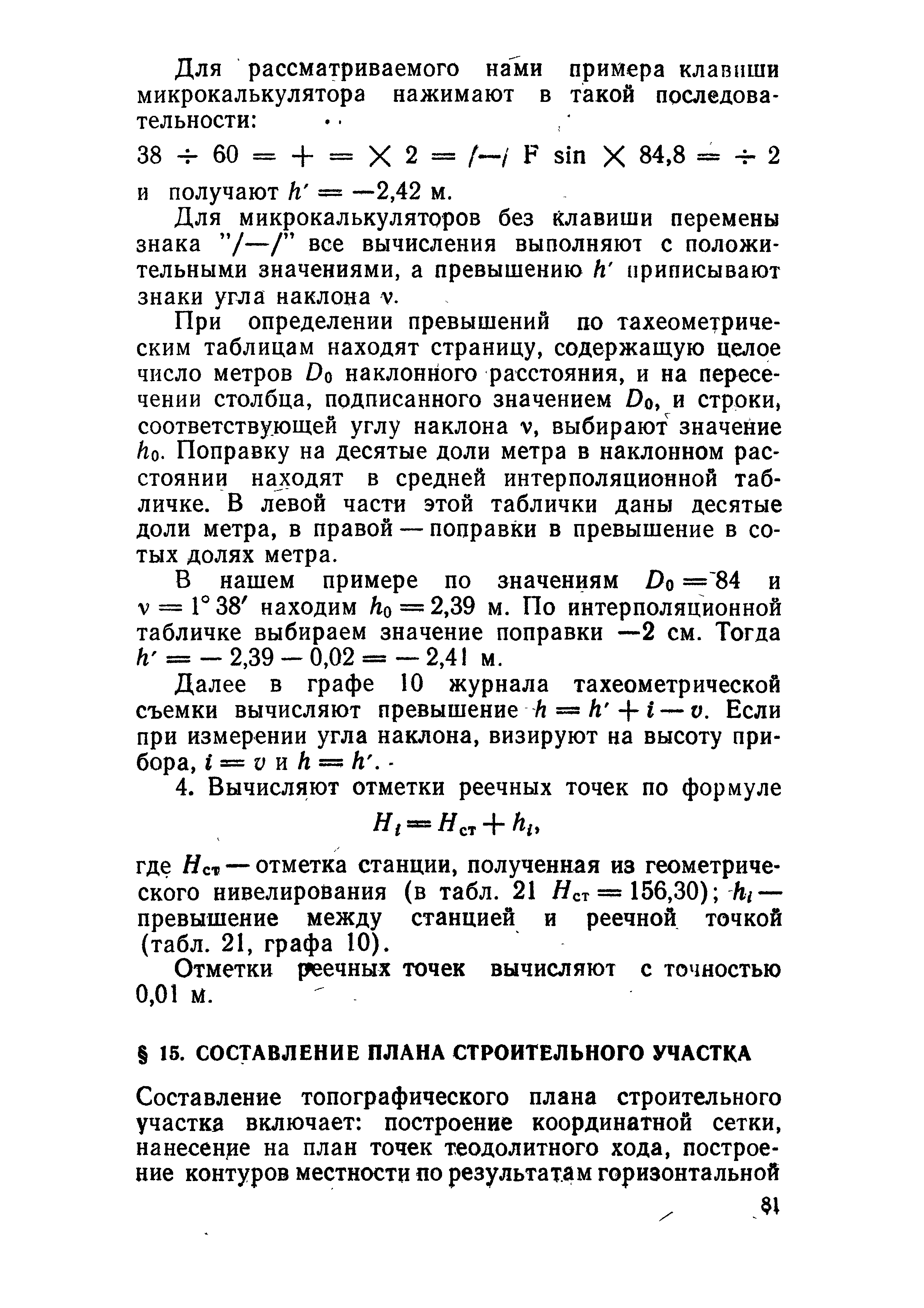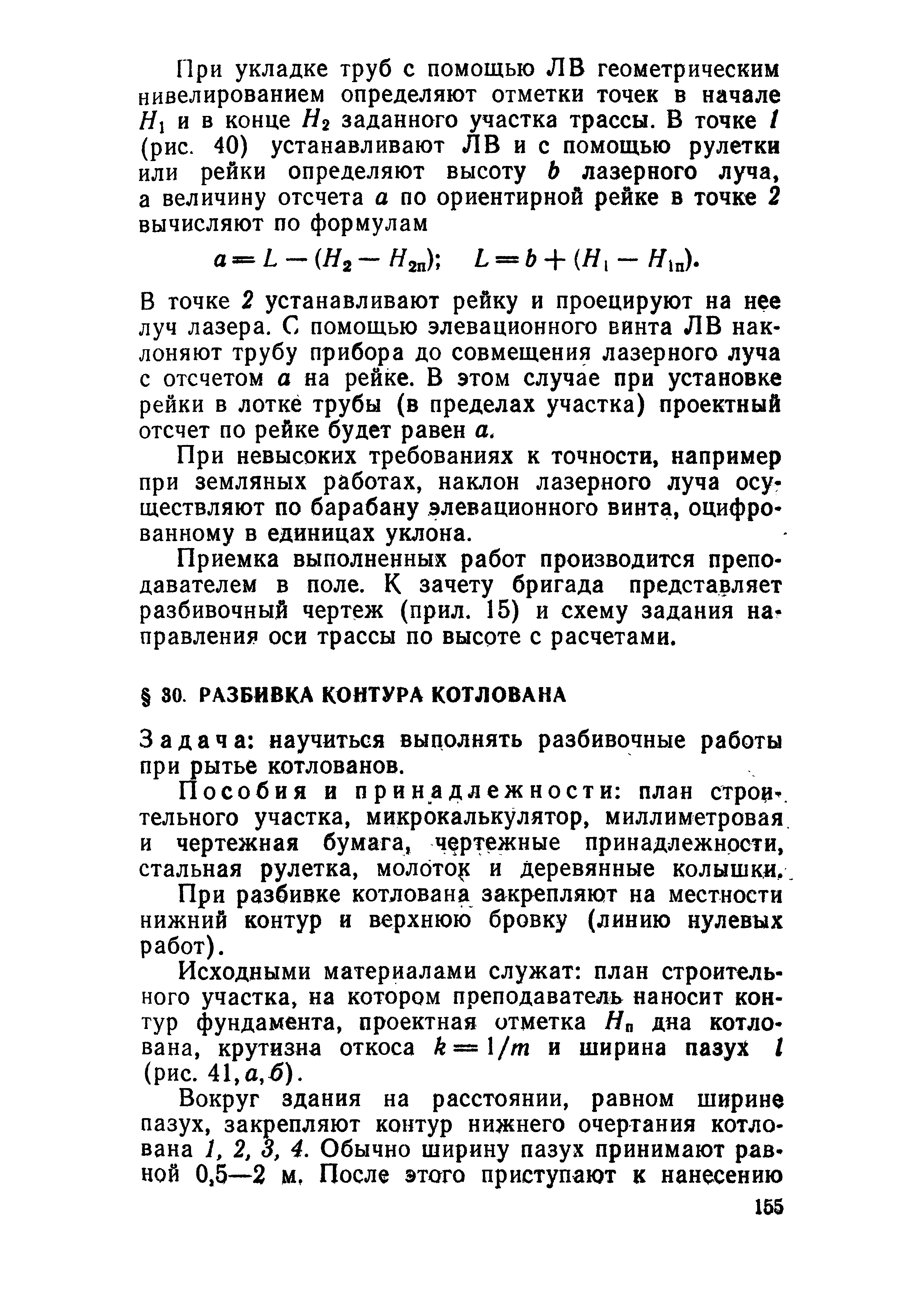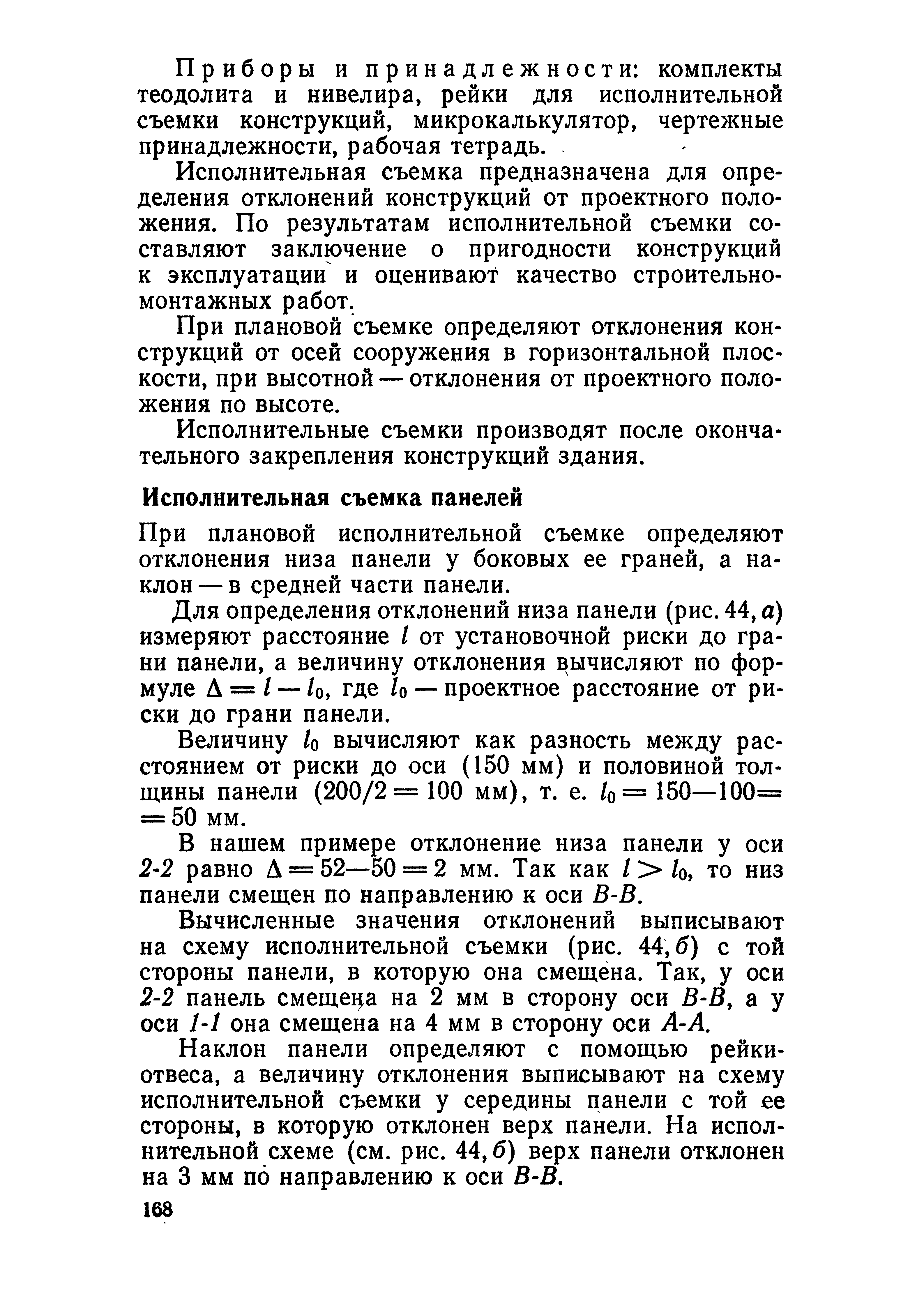 | Оглавление: | Раздел I. Общие виды инженерно-геодезических работ Глава 1. Общие сведения о практике Глава 2. Геодезические приборы, инструменты и вспомогательное оборудование Глава 3. Топографические съемки Раздел II. Cпециальные виды инженерно-геодезических работ Глава 4. Нивелирование поверхности и теодезические расчеты при вертикальной планировке строительных участков Глава 5. Геодезические работы на трассе сооружения линейного типа Глава 6. Построение в натуре элементов разбивочных работ Глава 7. Перенесение на местность проектов застройки Глава 8. Геодезические работы при монтаже конструкций зданий Глава 9. Специальная геодезическая техника в строительном производстве Список литературы Приложение 1 Перечень необходимых приборов, оборудования и учебных пособий для геодезической практики Приложение 2 Московский ордена трудового красного знамени инженерно-строительный институт им. В.В. Куйбышева Приложение 3. Общие правила обращения с геодезическими приборами и вспомогательными приспособлениями Приложение 4 Таблица поправок за наклон линий (мм) ?Dv= -2D $in2(v/) Приложение 5. Условные знаки топографических планов масштаба 1:500) Приложение 6. План строительного участка 108 Приложение 7 Приложение 8 Приложение 9 Приложение 10 Приложение 11 Приложение 12 Приложение 13 Приложение 14 Приложение 15 Приложение 16 Приложение 17 |