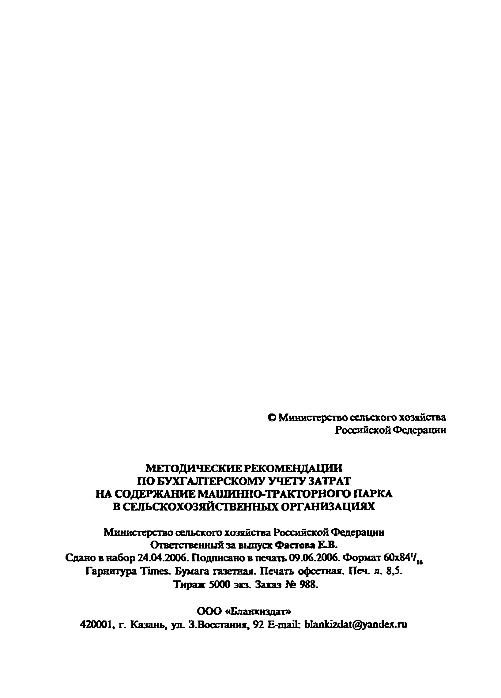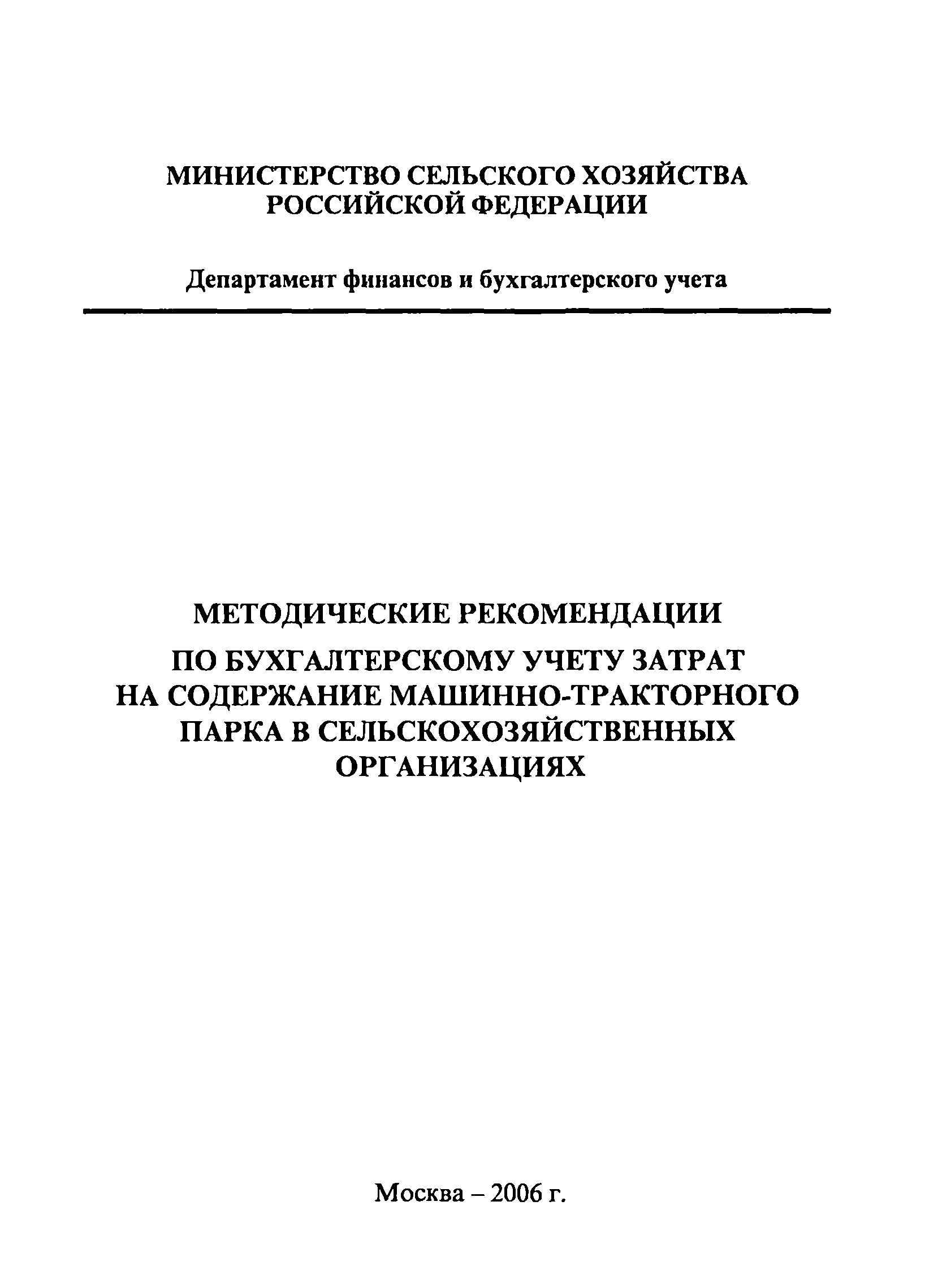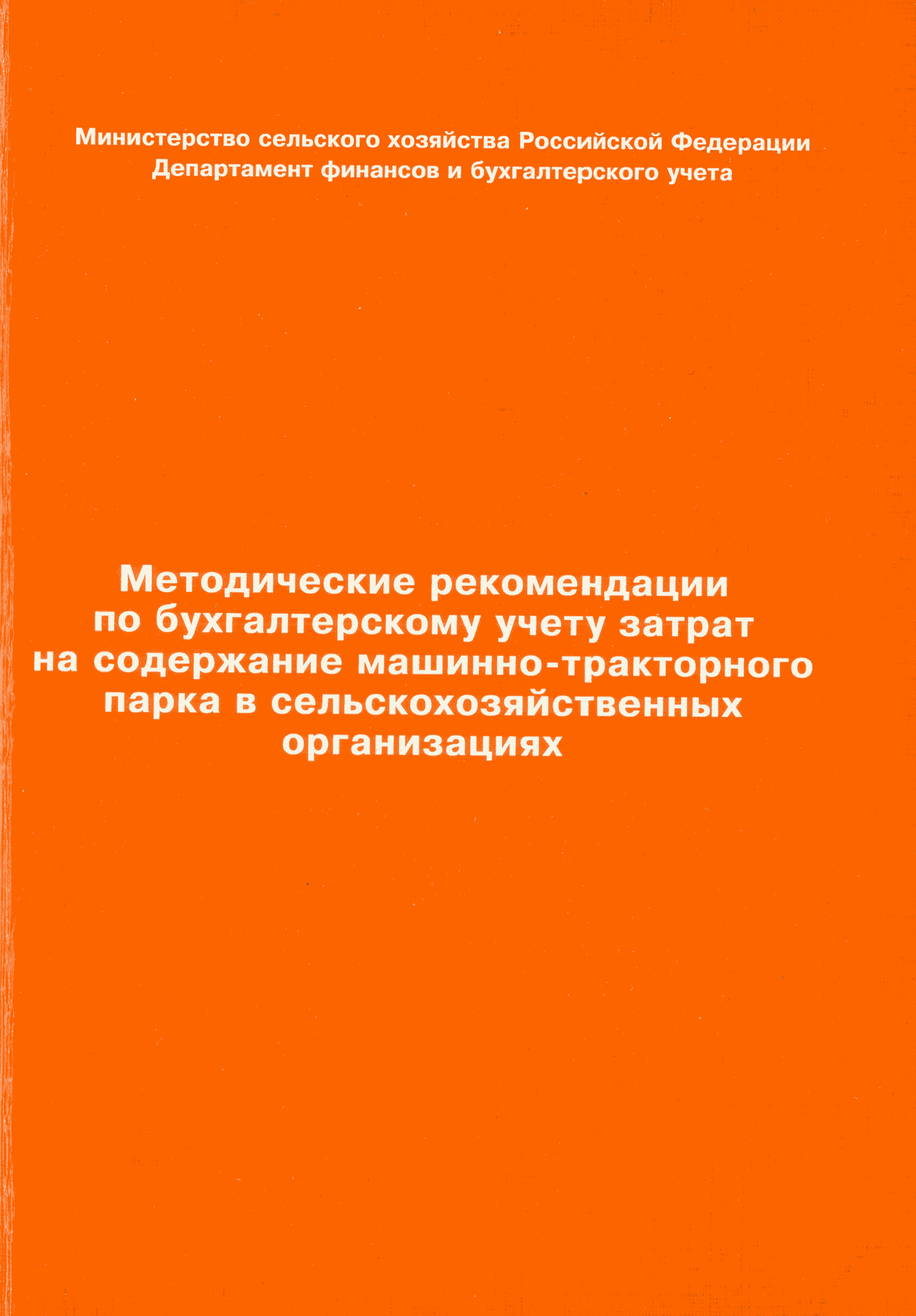 | Название рус.: | Методические рекомендации по бухгалтерскому учету затрат на содержание машинно-тракторного парка в сельскохозяйственных организациях |