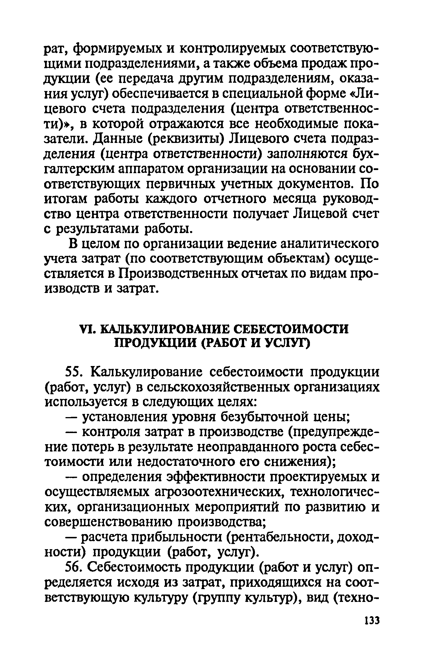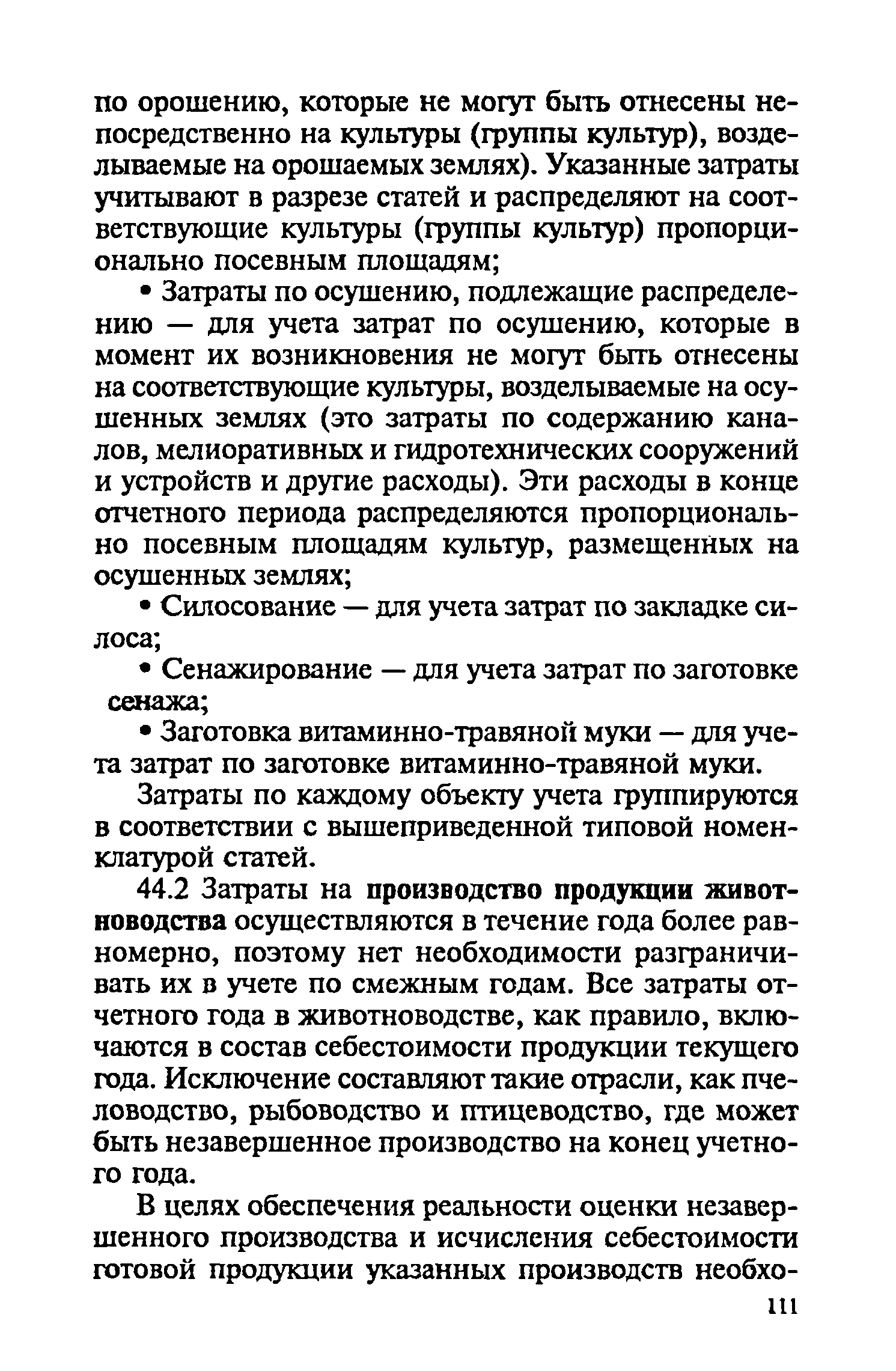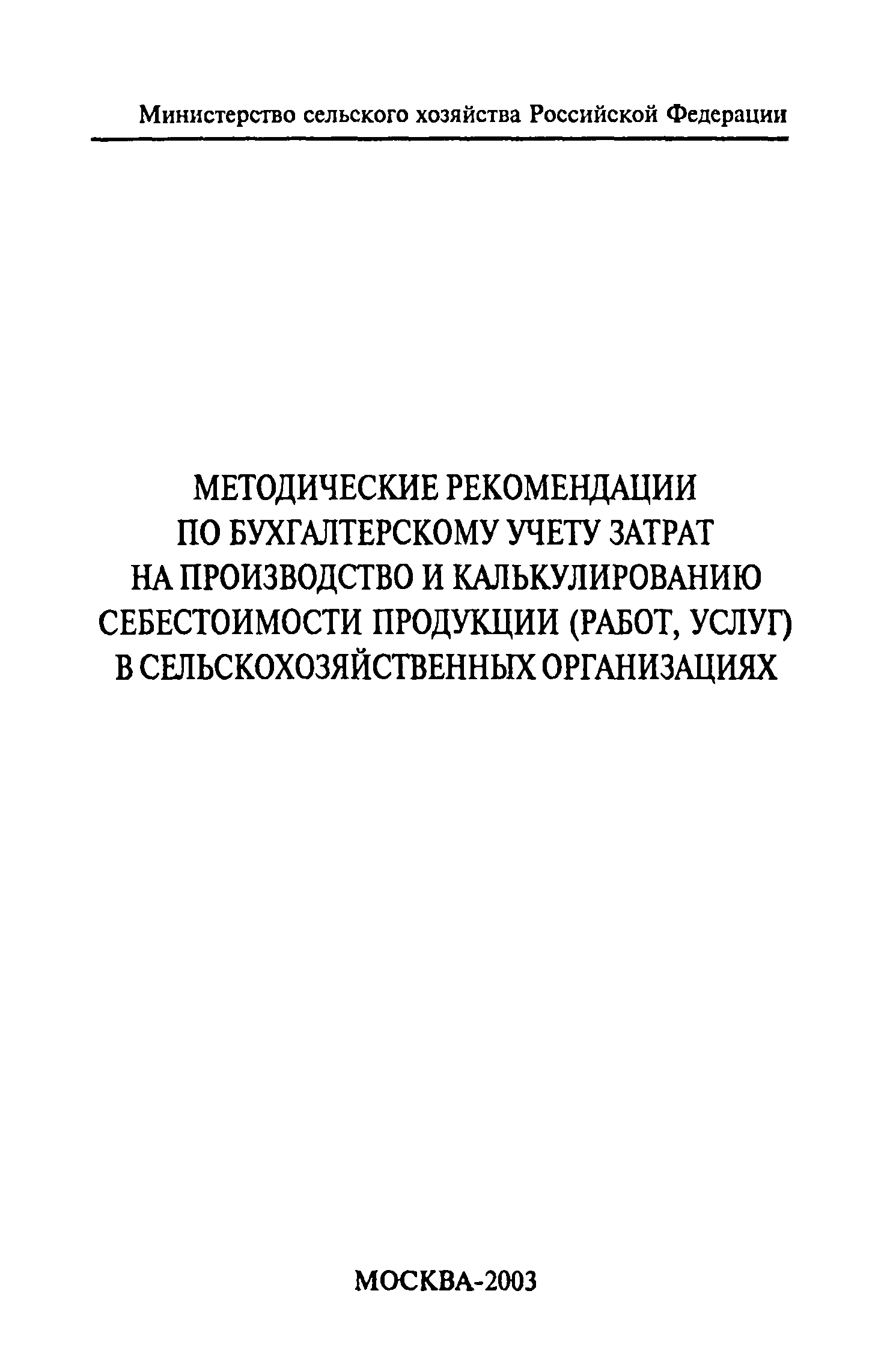Методические рекомендации по бухгалтерскому учету затрат на производство и калькулированию себестоимости продукции (работ, услуг) в сельскохозяйственных организациях| Статус: | действует | | Название рус.: | Методические рекомендации по бухгалтерскому учету затрат на производство и калькулированию себестоимости продукции (работ, услуг) в сельскохозяйственных организациях | | Дата добавления в базу: | 01.09.2013 | | Дата актуализации: | 01.01.2021 | | Область применения: | Рекомендации предназначены для руководителей, бухгалтеров и экономистов сельскохозяйственных организаций, работников бухгалтерских служб сельскохозяйственных органов, научно-исследовательских учреждений, преподавателей и студентов экономических специальностей высших и средних специальных сельскохозяйственных учебных заведений. | | Оглавление: | 1. Общие положения 2. Классификация производственных затрат 3. Состав производственных затрат по экономическим элементам 4. Состав производственных затрат по калькуляционным статьям 5. Учёт затрат на производство продукции (работ, услуг) А. Учёт производственных затрат при традиционной системе бухгалтерского учёта Б. Учёт производственных затрат в системе управленческого учёта 6. Калькулирование себестоимости продукции (работ и услуг) Приложения | | Разработан: | Московская сельскохозяйственная академия им К.А. Тимирязева