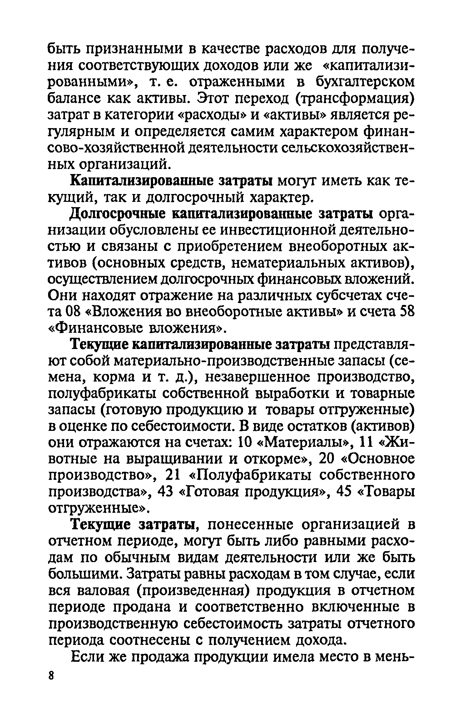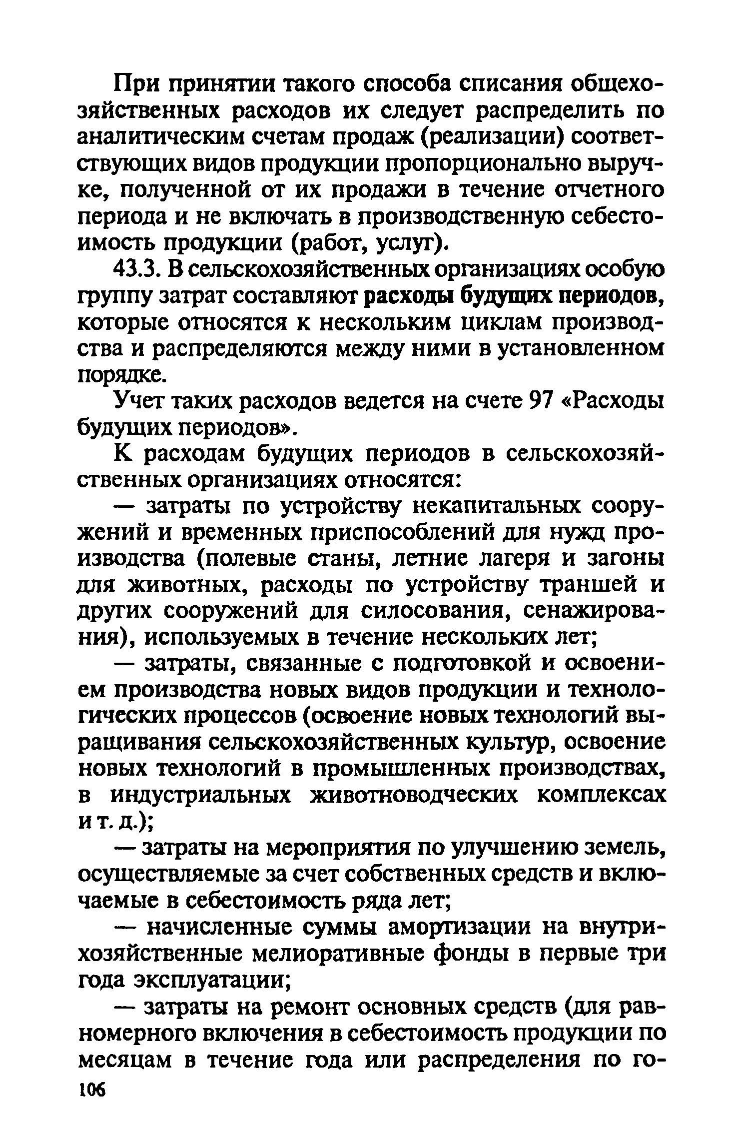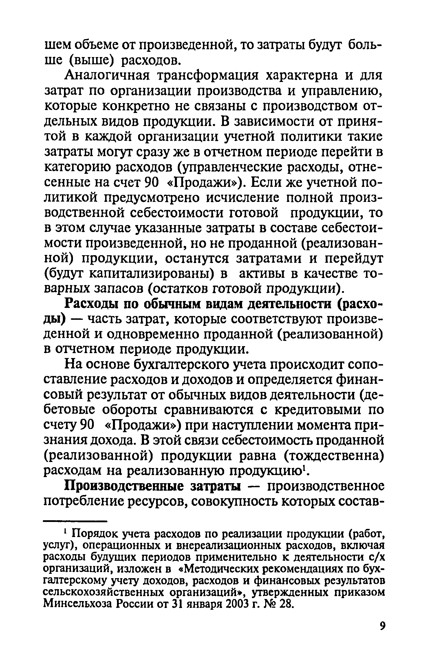 Методические рекомендации по бухгалтерскому учету затрат на производство и калькулированию себестоимости продукции (работ, услуг) в сельскохозяйственных организациях| Статус: | действует | | Название рус.: | Методические рекомендации по бухгалтерскому учету затрат на производство и калькулированию себестоимости продукции (работ, услуг) в сельскохозяйственных организациях | | Дата добавления в базу: | 01.09.2013 | | Дата актуализации: | 01.01.2021 | | Область применения: | Рекомендации предназначены для руководителей, бухгалтеров и экономистов сельскохозяйственных организаций, работников бухгалтерских служб сельскохозяйственных органов, научно-исследовательских учреждений, преподавателей и студентов экономических специальностей высших и средних специальных сельскохозяйственных учебных заведений. | | Оглавление: | 1. Общие положения 2. Классификация производственных затрат 3. Состав производственных затрат по экономическим элементам 4. Состав производственных затрат по калькуляционным статьям 5. Учёт затрат на производство продукции (работ, услуг) А. Учёт производственных затрат при традиционной системе бухгалтерского учёта Б. Учёт производственных затрат в системе управленческого учёта 6. Калькулирование себестоимости продукции (работ и услуг) Приложения | | Разработан: | Московская сельскохозяйственная академия им К.А. Тимирязева