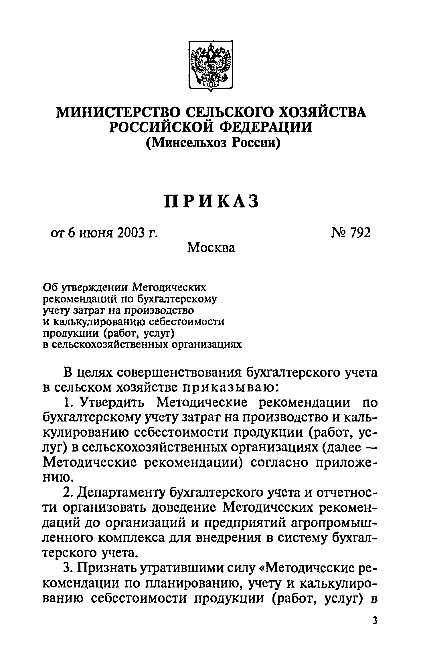 | | Утверждён: | 06.06.2003 Министерство сельского хозяйства Российской Федерации (792)