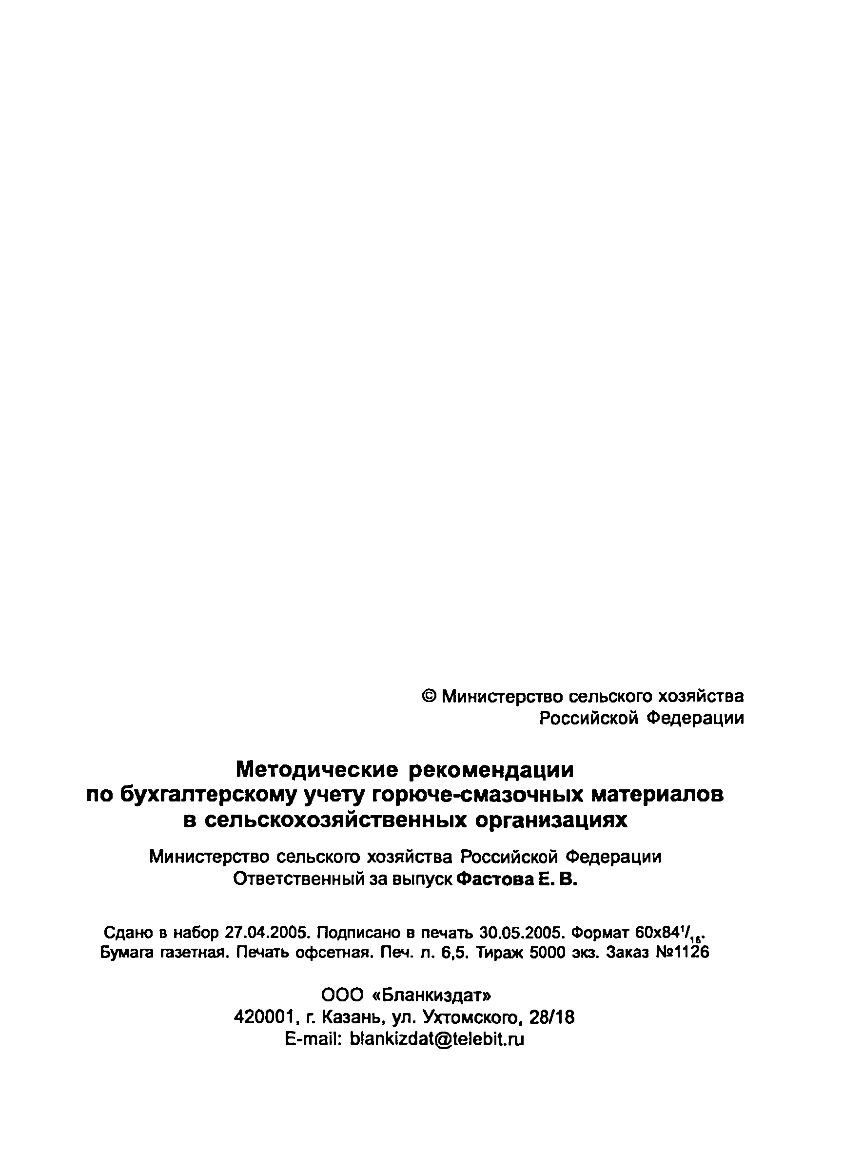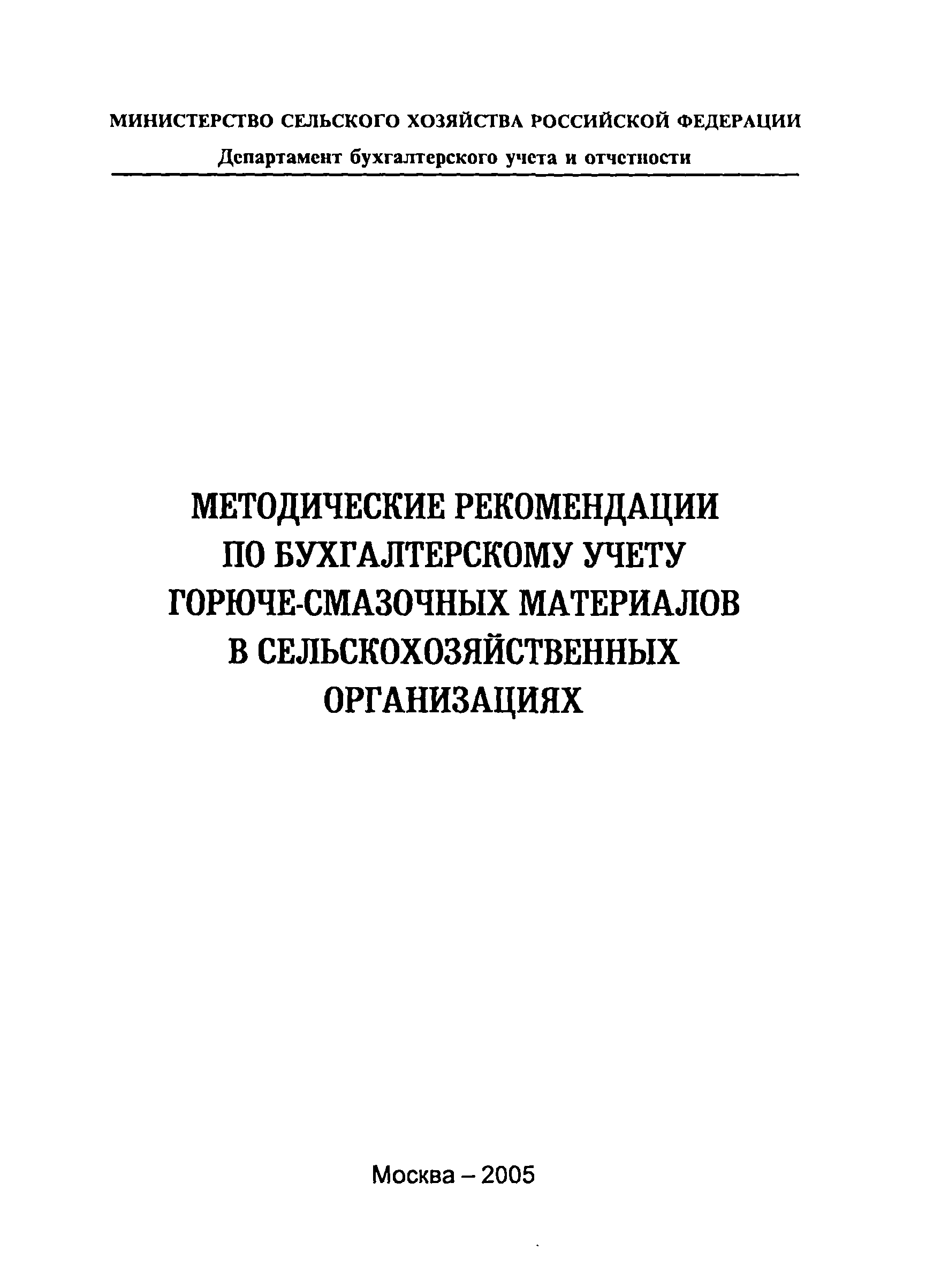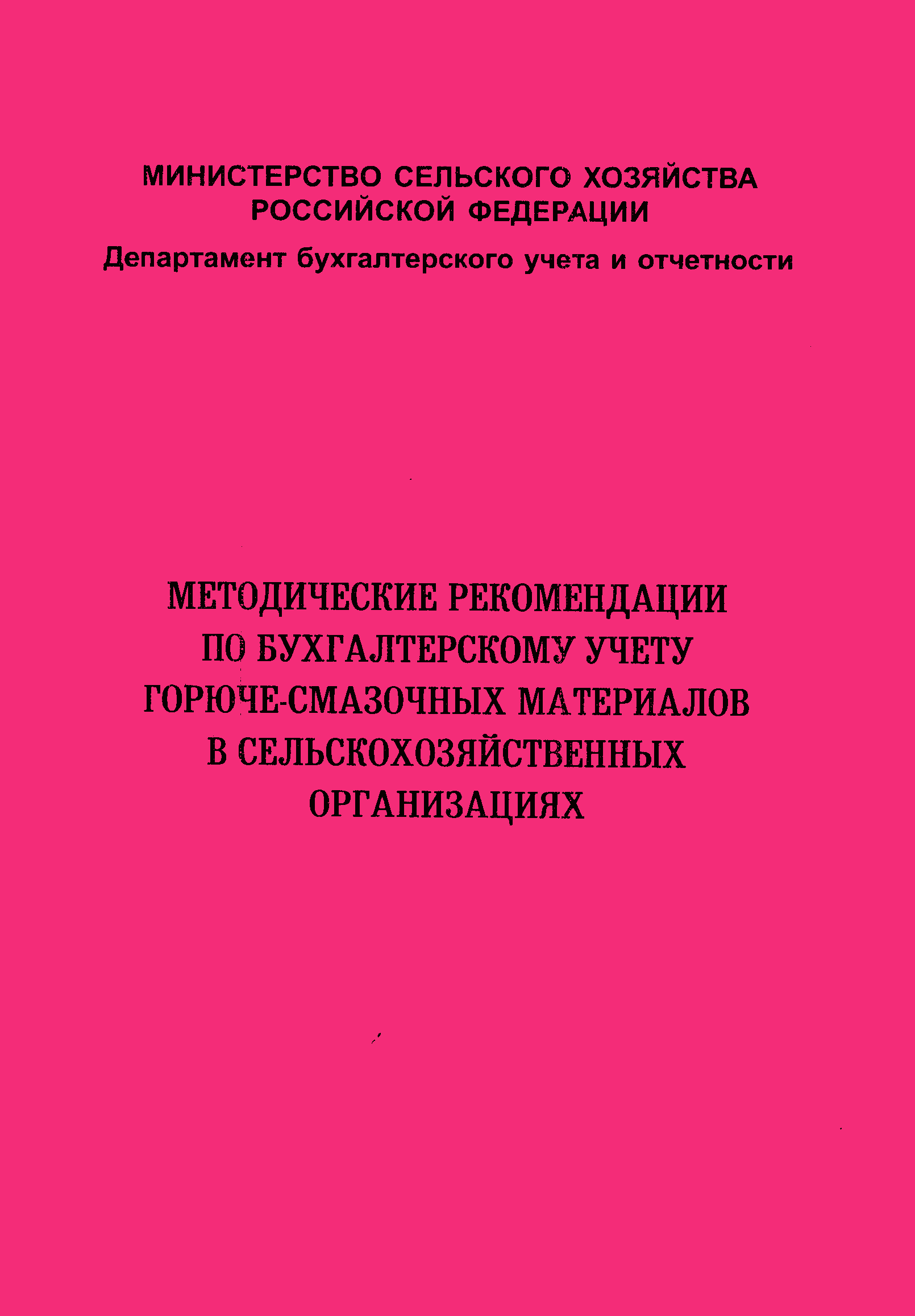 | Название рус.: | Методические рекомендации по бухгалтерскому учету горюче-смазочных материалов в сельскохозяйственных организациях |