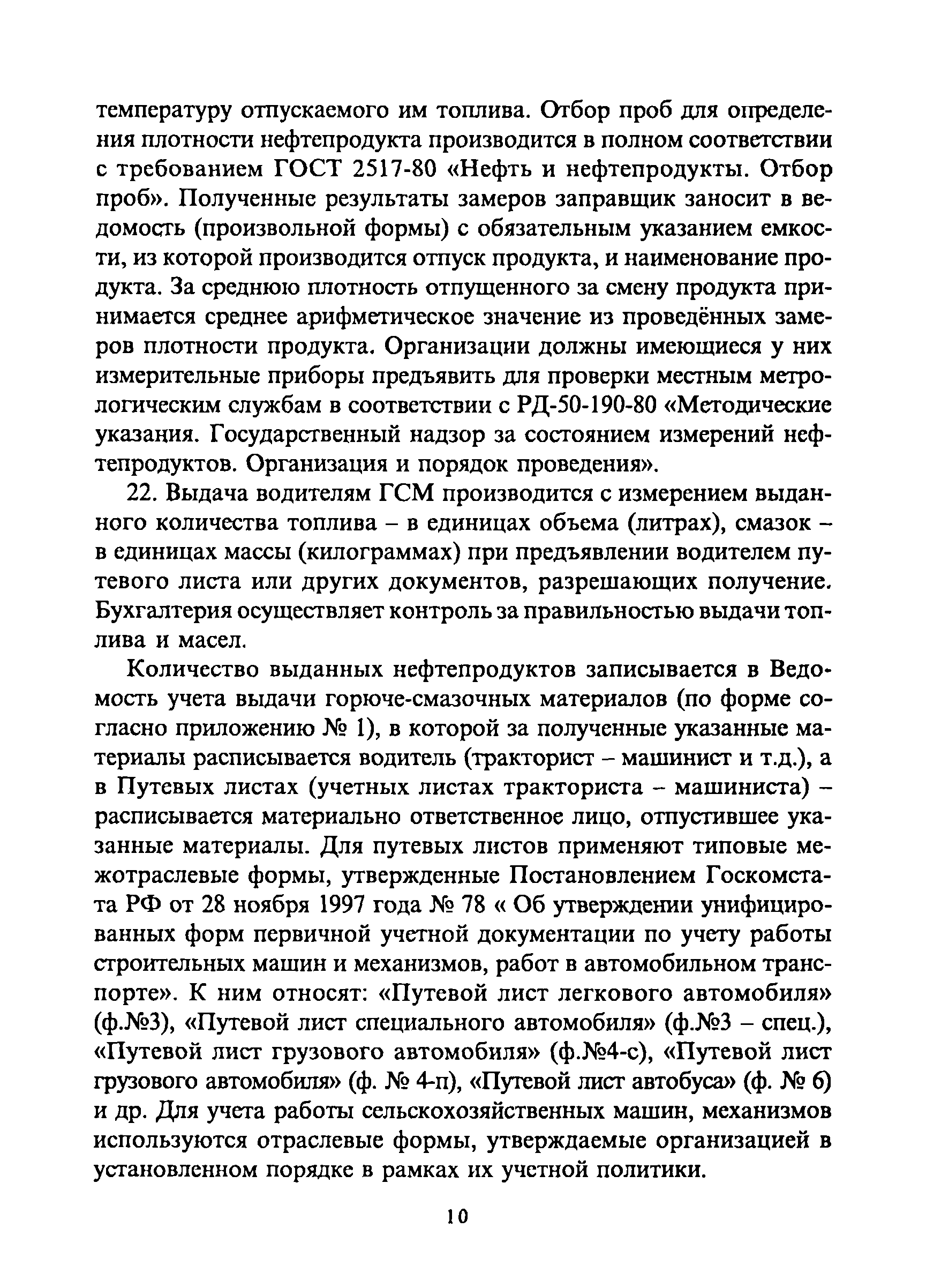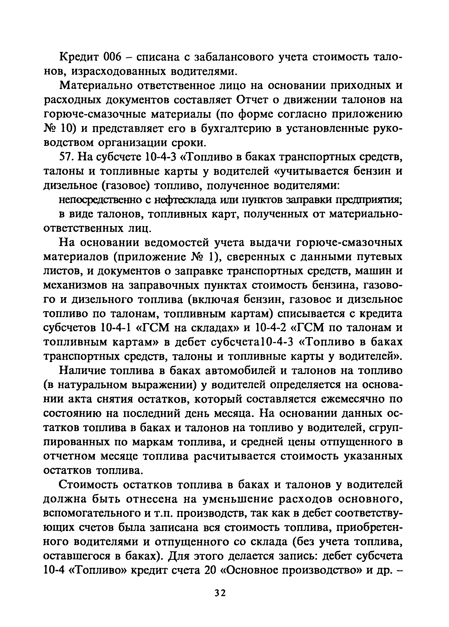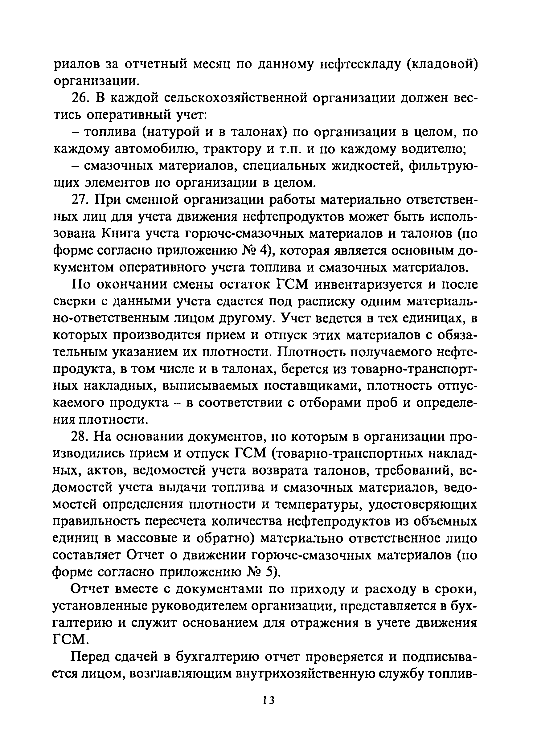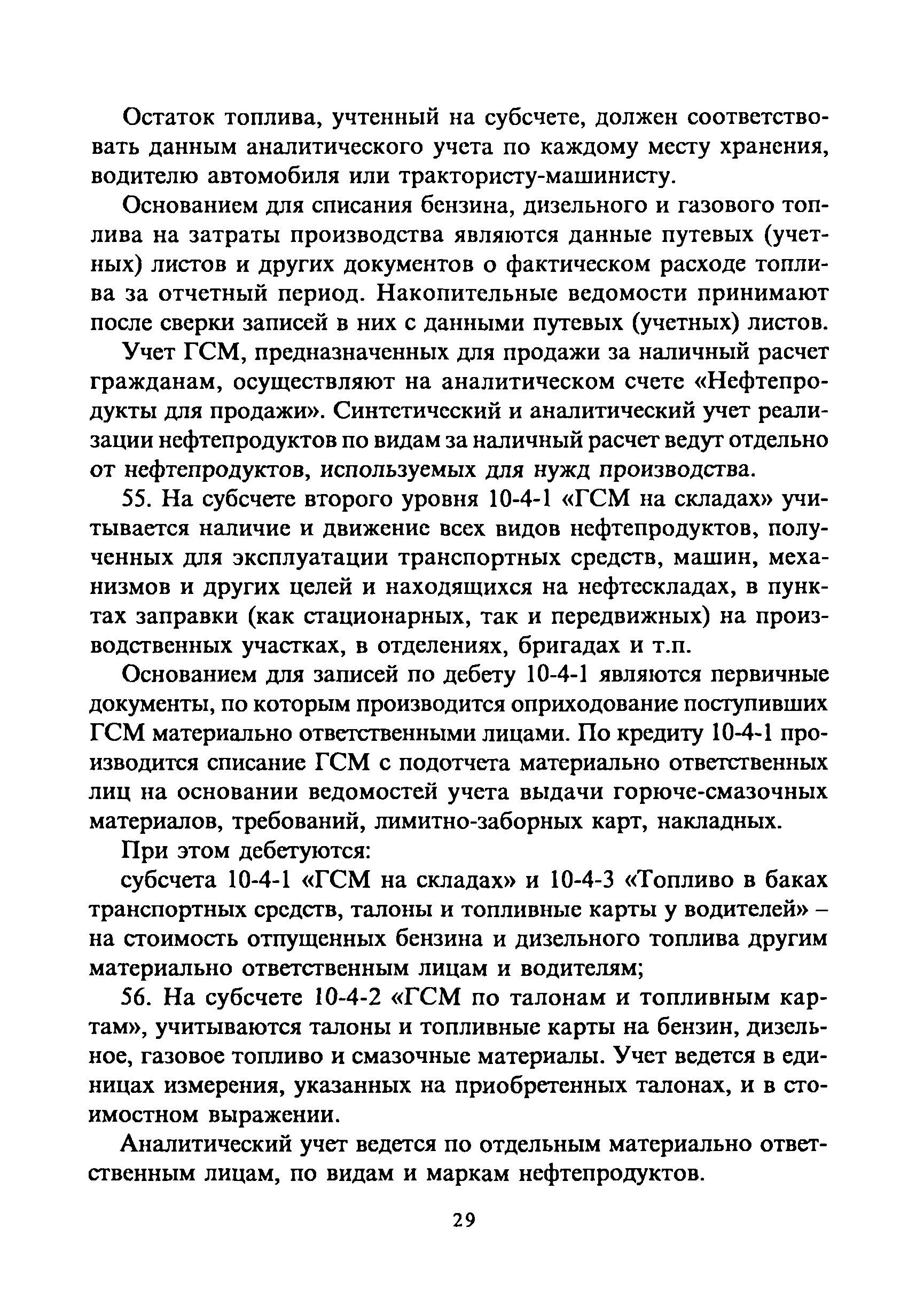 | Оглавление: | 1. Общие требования 2. Транспортировка, приёмка, хранение горюче-смазочных материалов 3. Отпуск горюче-смазочных материалов со складов организации и заправка автотранспортных средств, сельскохозяйственных машин и механизмов 4. Учёт горюче-смазочных материалов в местах хранения и оперативный контроль за их движением 5. Особенности учёта горюче-смазочных материалов, приобретенных на автозаправочных станциях за наличный расчёт, по талонам, топливным картам 5.1 Приобретение и учёт горюче-смазочных материалов за наличный расчёт 5.2 Выдача и оперативный учёт горюче-смазочных материалов по талонам 6. Бухгалтерский учёт горюче-смазочных материалов Приложения |