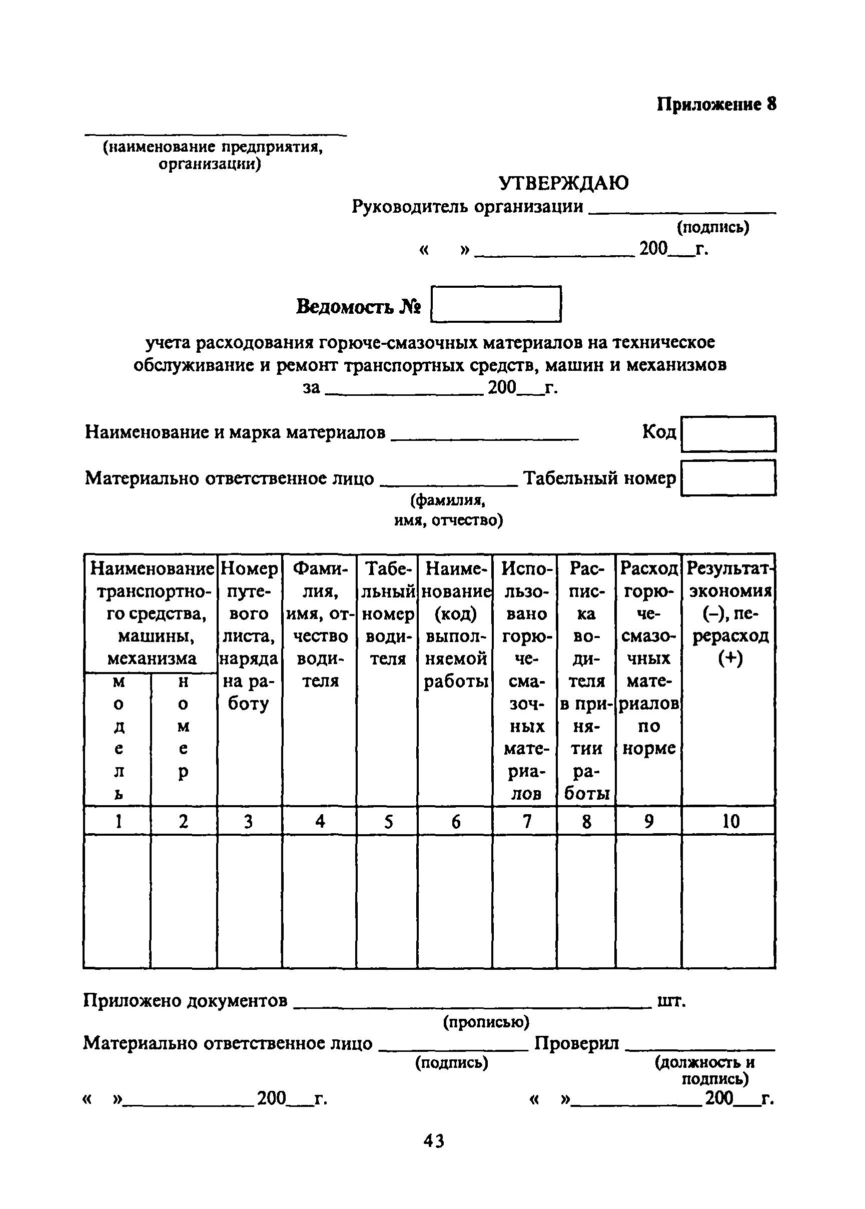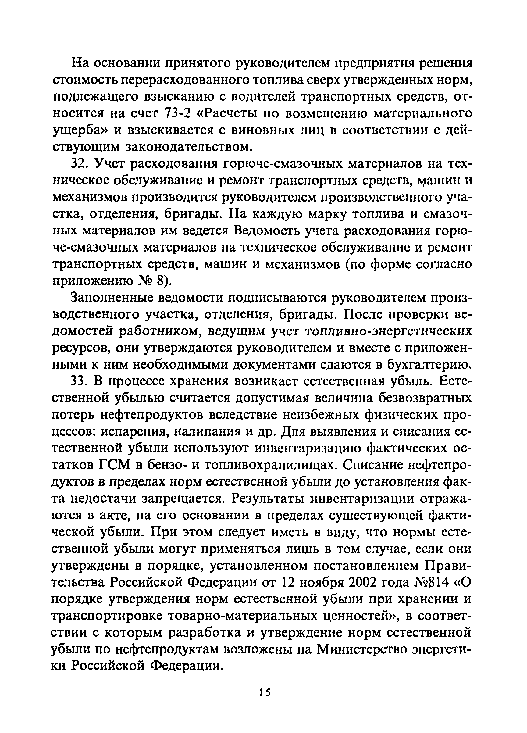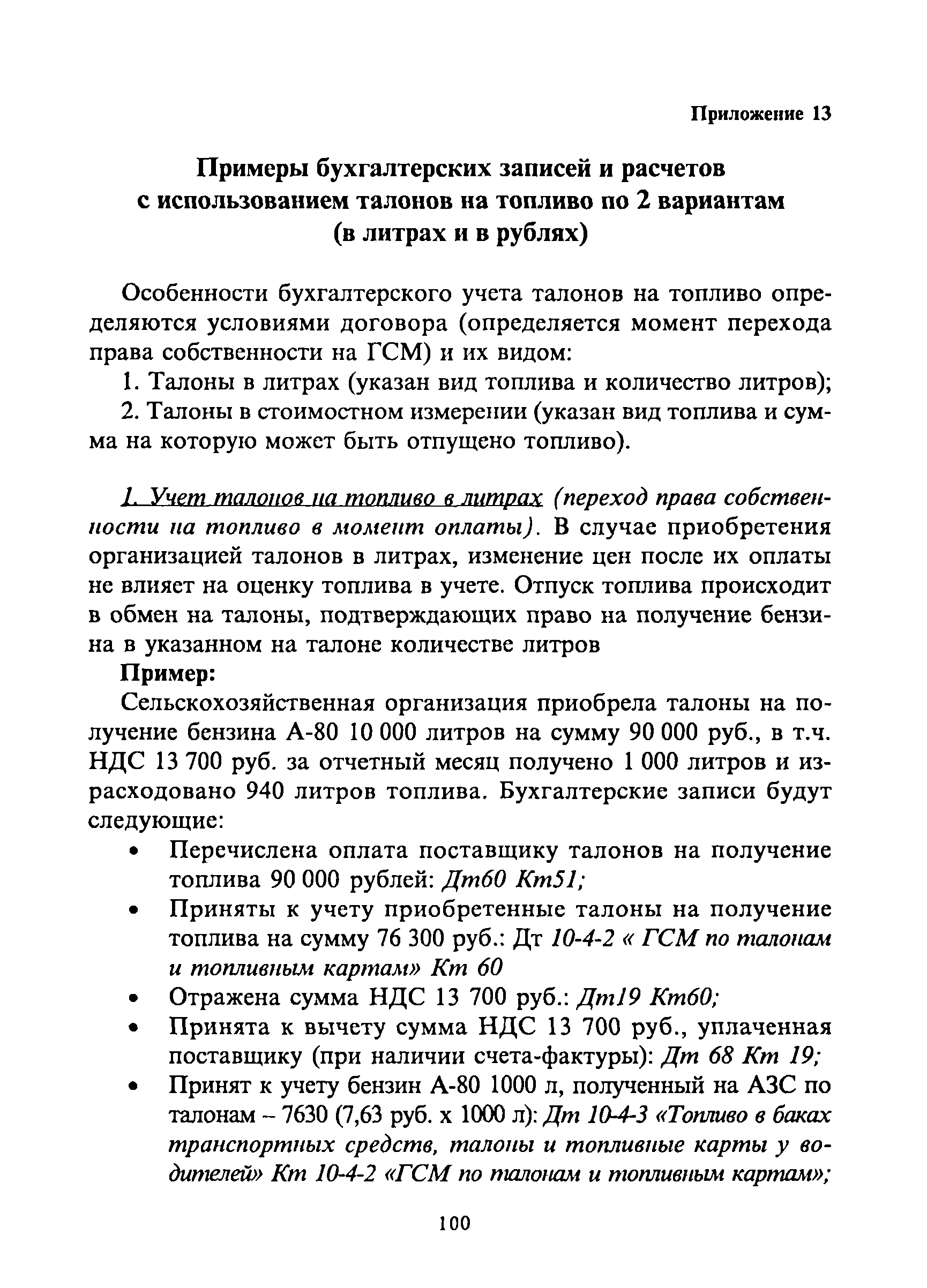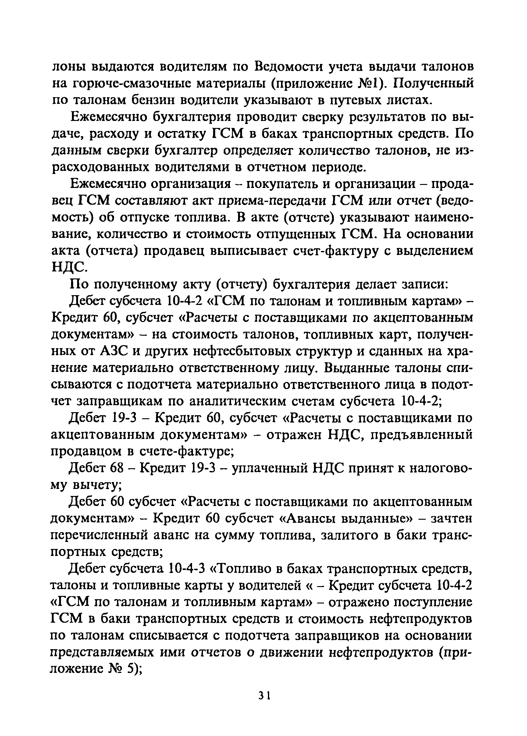 | Оглавление: | 1. Общие требования 2. Транспортировка, приёмка, хранение горюче-смазочных материалов 3. Отпуск горюче-смазочных материалов со складов организации и заправка автотранспортных средств, сельскохозяйственных машин и механизмов 4. Учёт горюче-смазочных материалов в местах хранения и оперативный контроль за их движением 5. Особенности учёта горюче-смазочных материалов, приобретенных на автозаправочных станциях за наличный расчёт, по талонам, топливным картам 5.1 Приобретение и учёт горюче-смазочных материалов за наличный расчёт 5.2 Выдача и оперативный учёт горюче-смазочных материалов по талонам 6. Бухгалтерский учёт горюче-смазочных материалов Приложения |