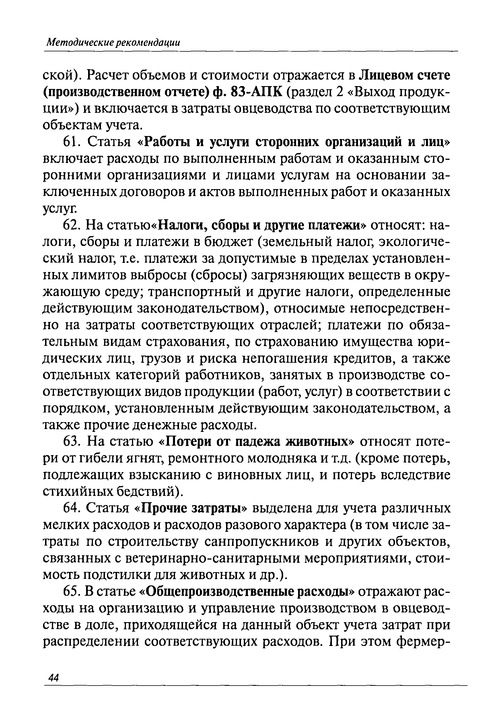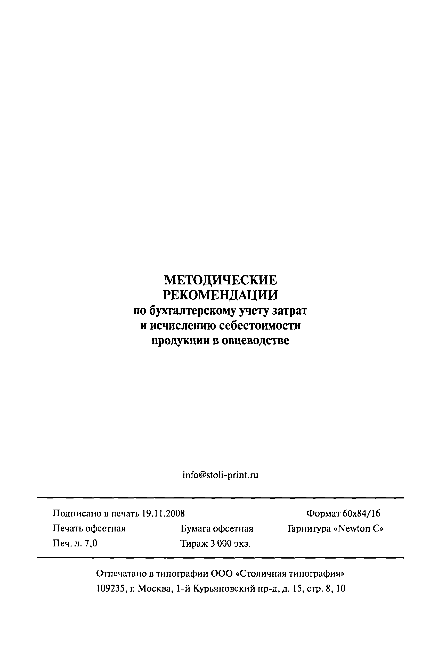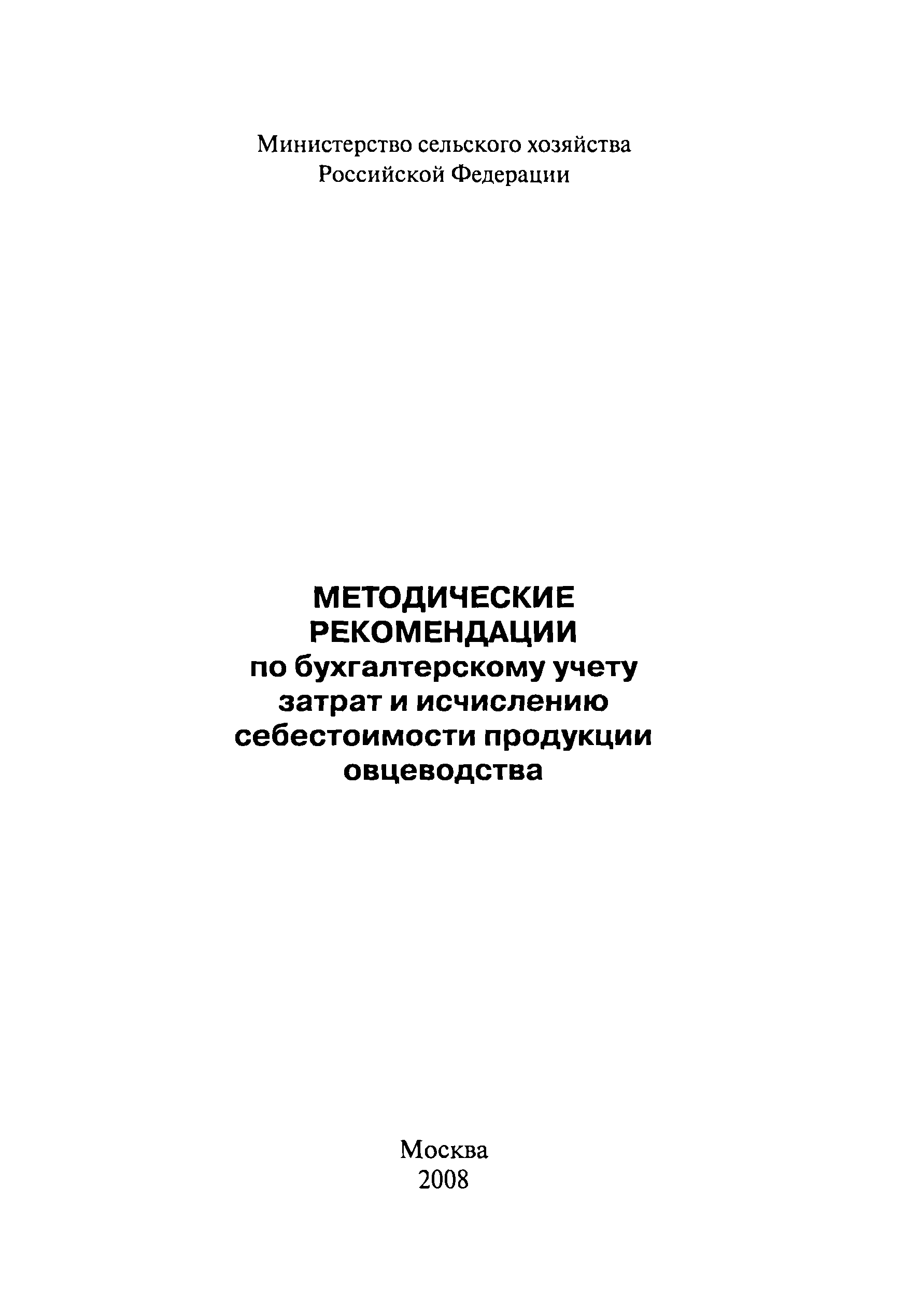 | Название рус.: | Методические рекомендации по бухгалтерскому учету затрат и исчислению себестоимости продукции овцеводства |