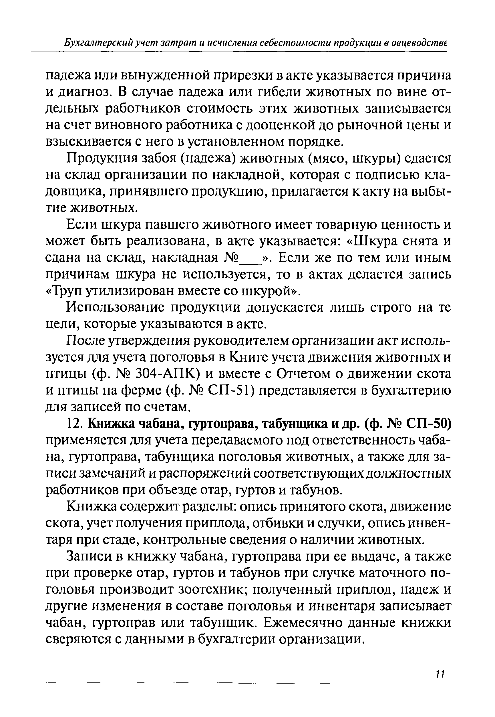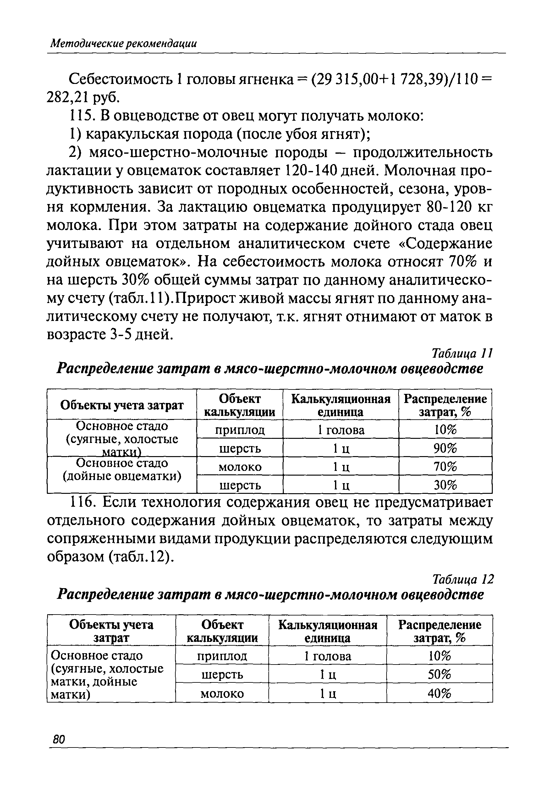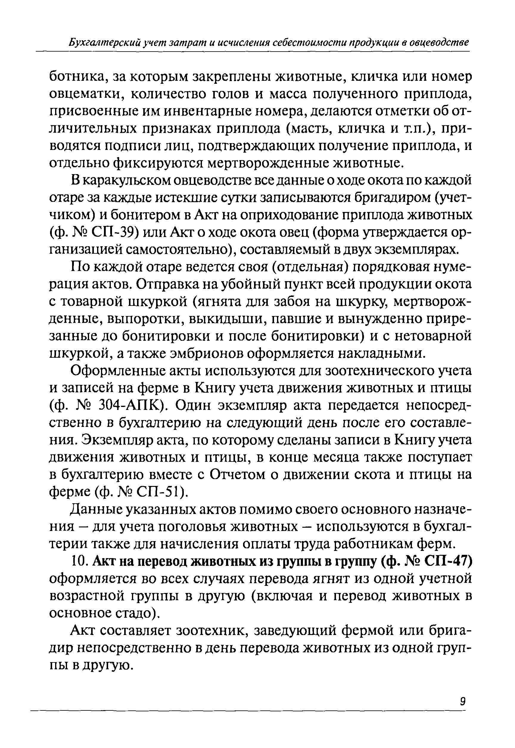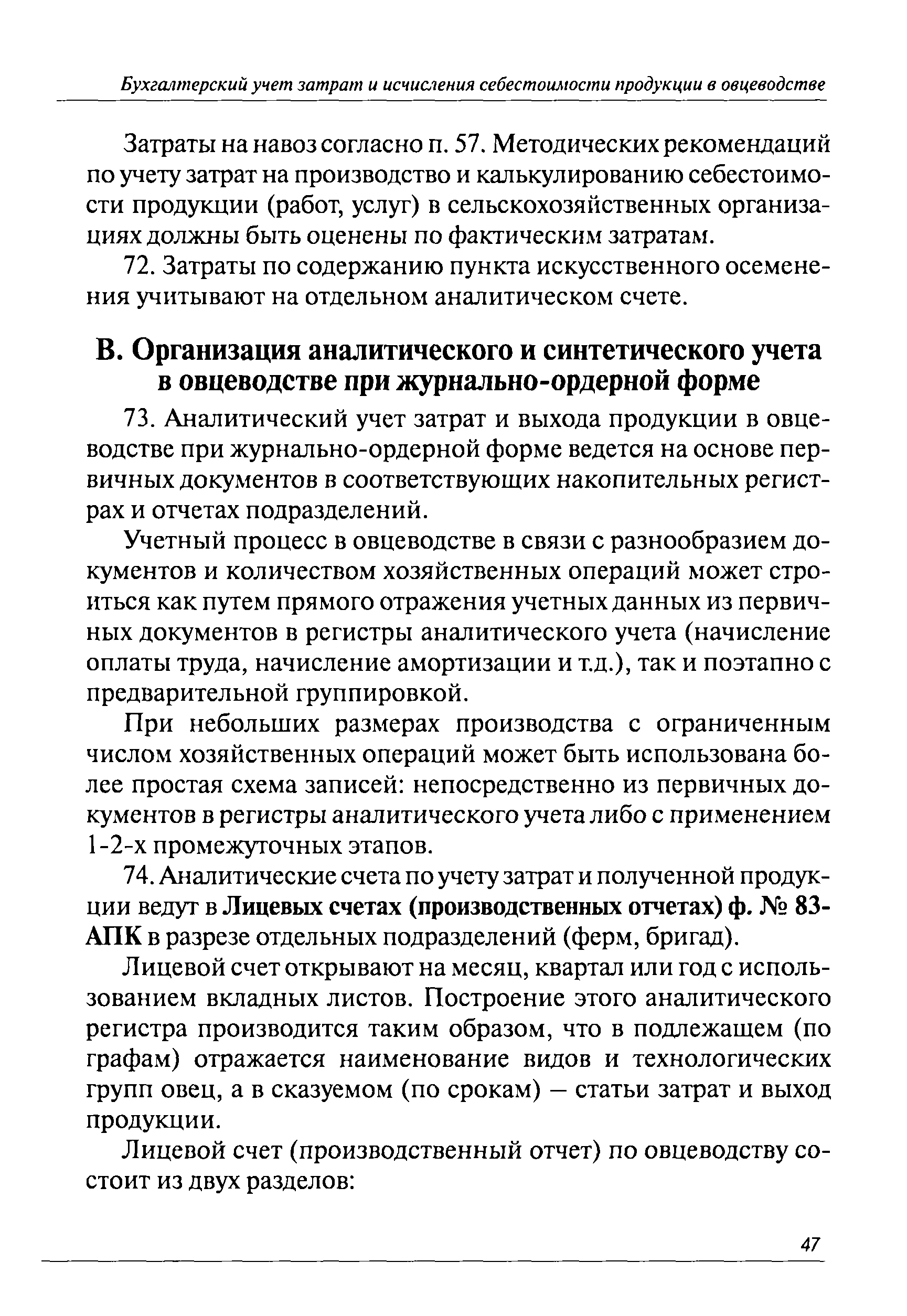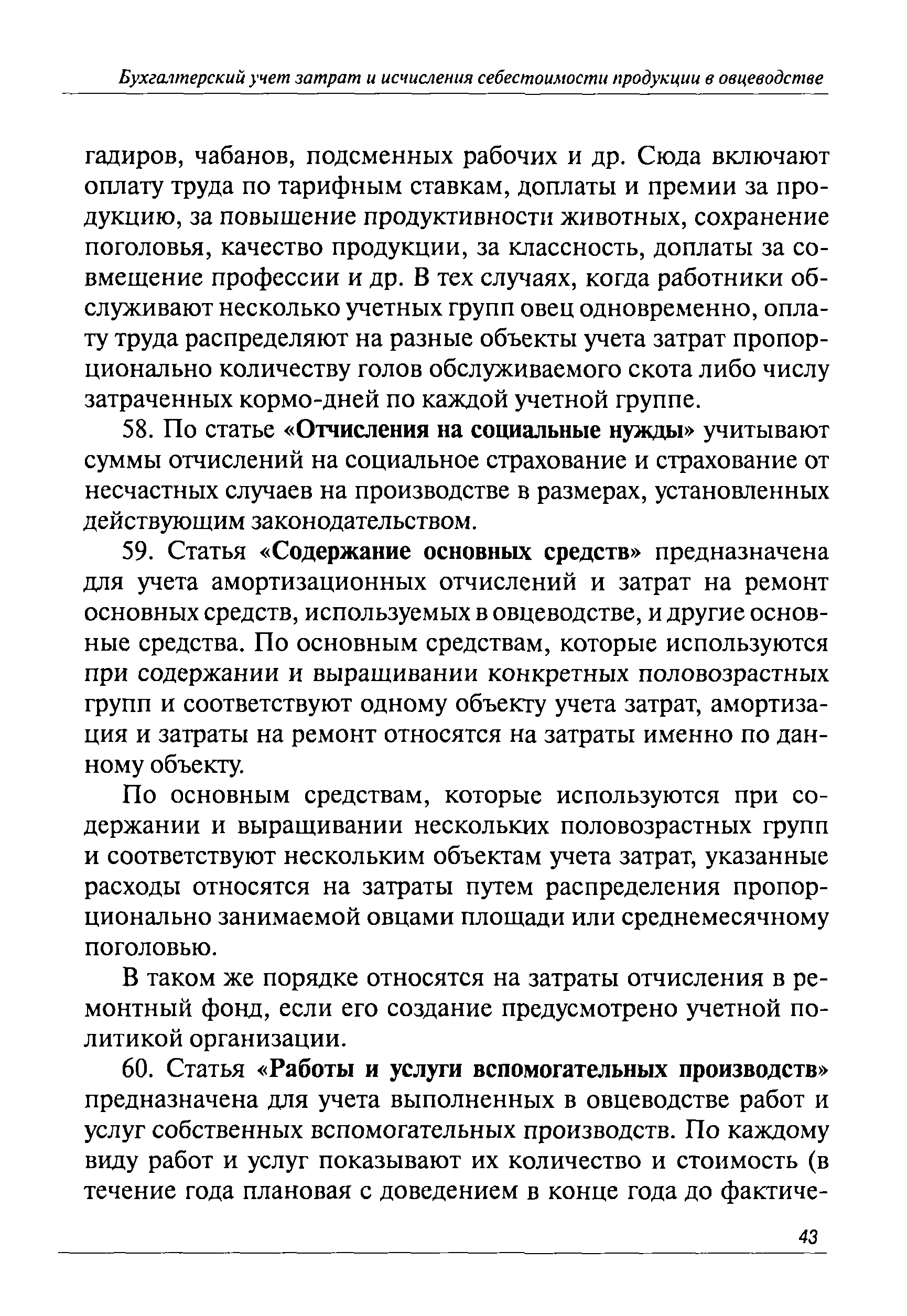 | Оглавление: | 1. Общие положения 2. Организация первичного учёта в овцеводстве А. Общий порядок ведения первичного учёта в овцеводстве Б. Первичная документация по учёту поголовья овец В. Первичная документация по учёту затрат в овцеводстве Г. Первичная документация по учёту выхода продукции овцеводства 3. Организация аналитического и синтетического учёта в овцеводстве А. Общий порядок ведения производственного учёта в овцеводстве Б. Учёт затрат и выхода продукции в овцеводстве В. Организация аналитического и синтетического учёта в овцеводстве при журнально-ордерной форме Г. Организация аналитического и синтетического учёта в овцеводстве при автоматизированной форме Д. Корреспонденция счетов бухгалтерского учета затрат на производство и выхода продукции овцеводства 4. Калькулирование себестоимости продукции овцеводства 5. Управленческие аспекты учёта затрат на производство в овцеводстве Приложения |