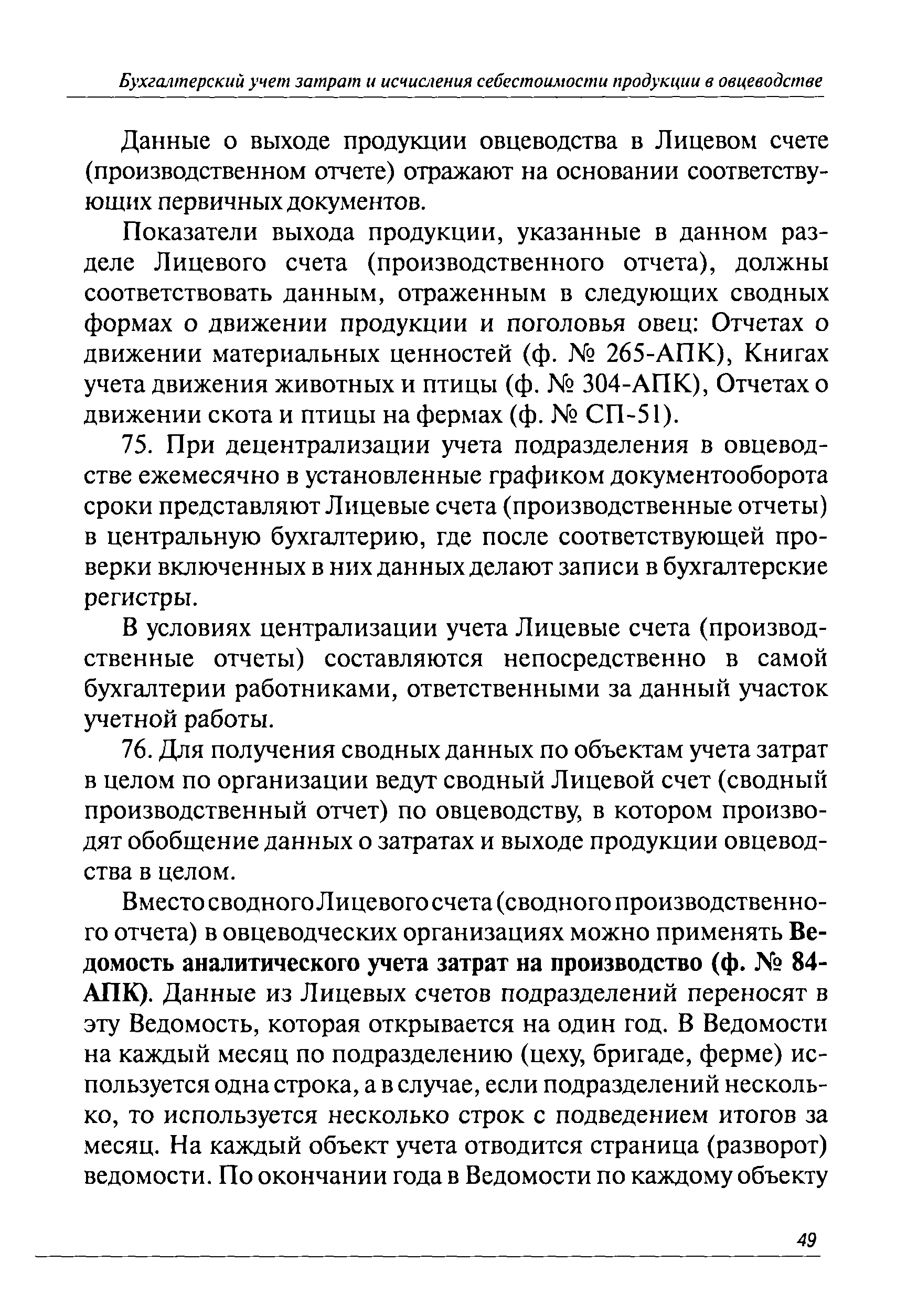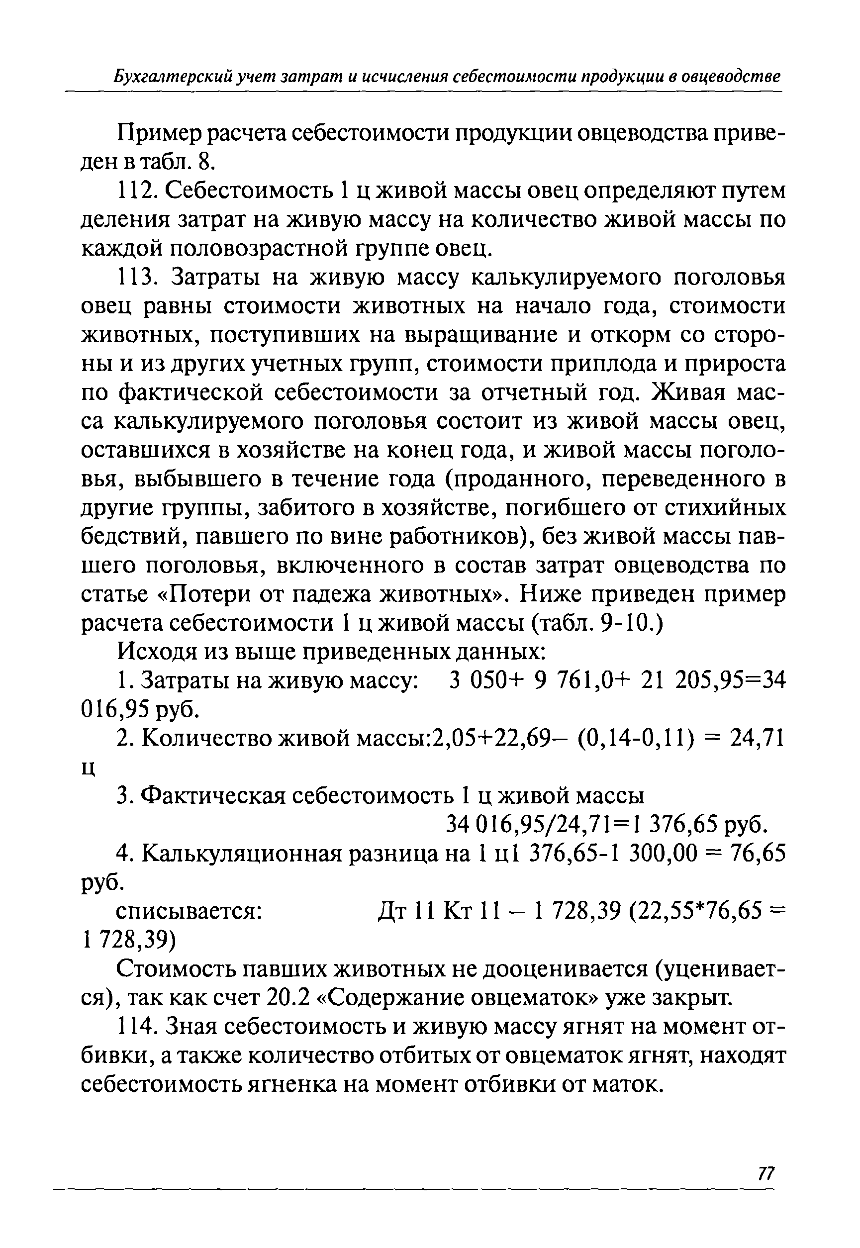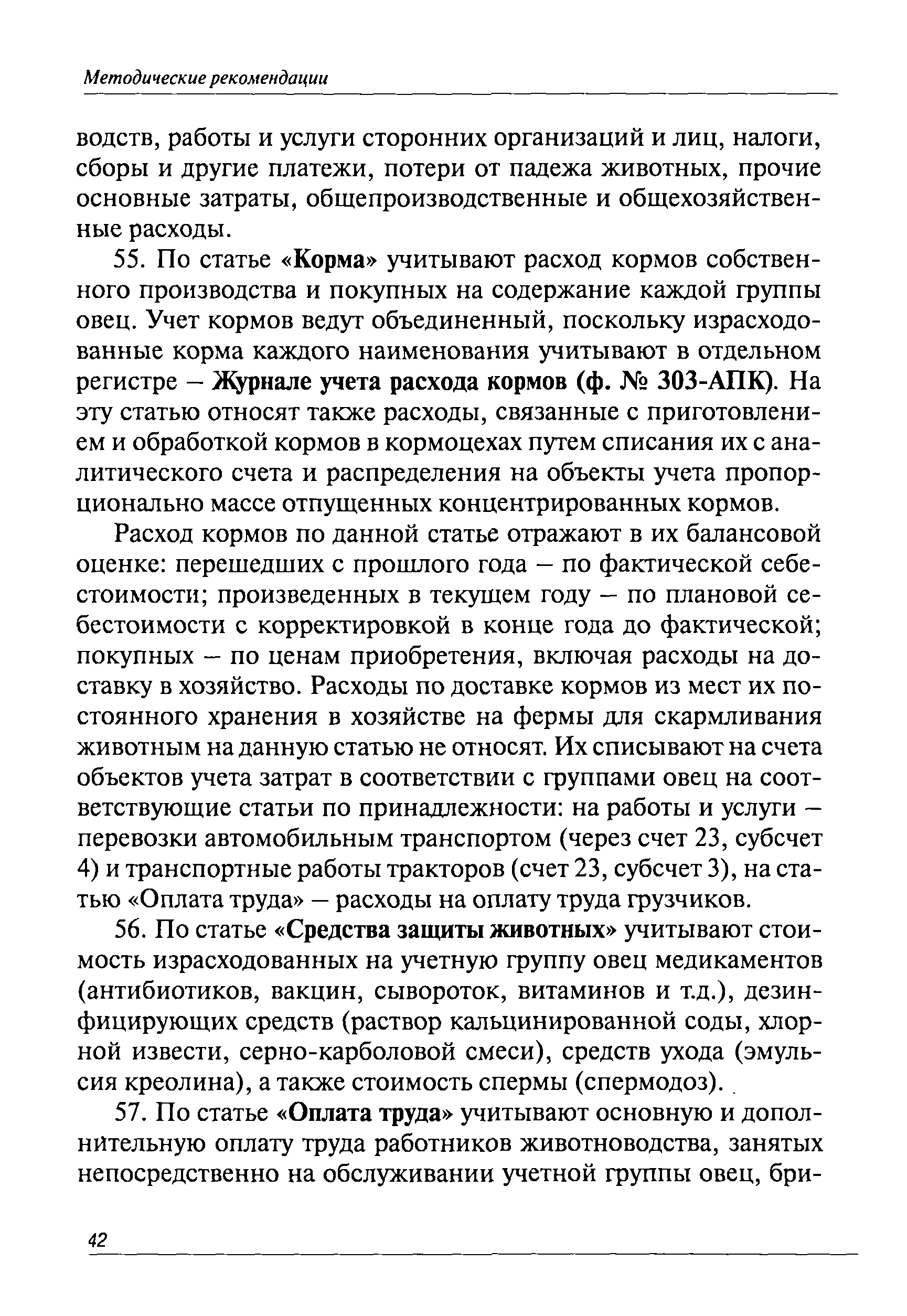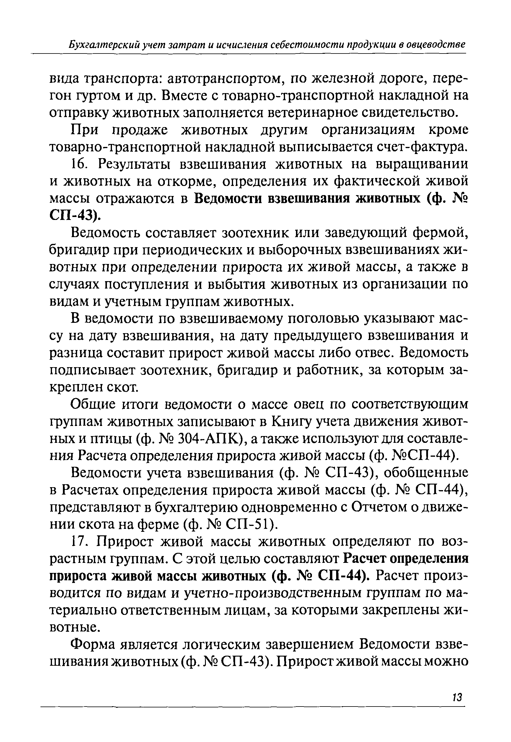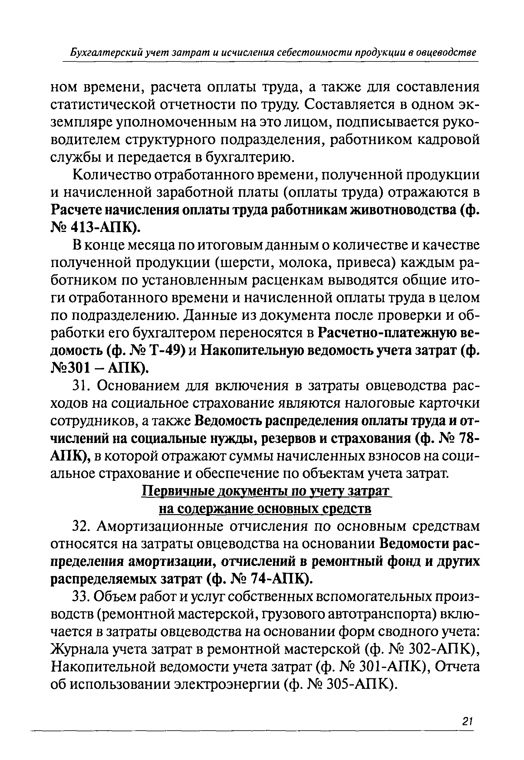 | Оглавление: | 1. Общие положения 2. Организация первичного учёта в овцеводстве А. Общий порядок ведения первичного учёта в овцеводстве Б. Первичная документация по учёту поголовья овец В. Первичная документация по учёту затрат в овцеводстве Г. Первичная документация по учёту выхода продукции овцеводства 3. Организация аналитического и синтетического учёта в овцеводстве А. Общий порядок ведения производственного учёта в овцеводстве Б. Учёт затрат и выхода продукции в овцеводстве В. Организация аналитического и синтетического учёта в овцеводстве при журнально-ордерной форме Г. Организация аналитического и синтетического учёта в овцеводстве при автоматизированной форме Д. Корреспонденция счетов бухгалтерского учета затрат на производство и выхода продукции овцеводства 4. Калькулирование себестоимости продукции овцеводства 5. Управленческие аспекты учёта затрат на производство в овцеводстве Приложения |