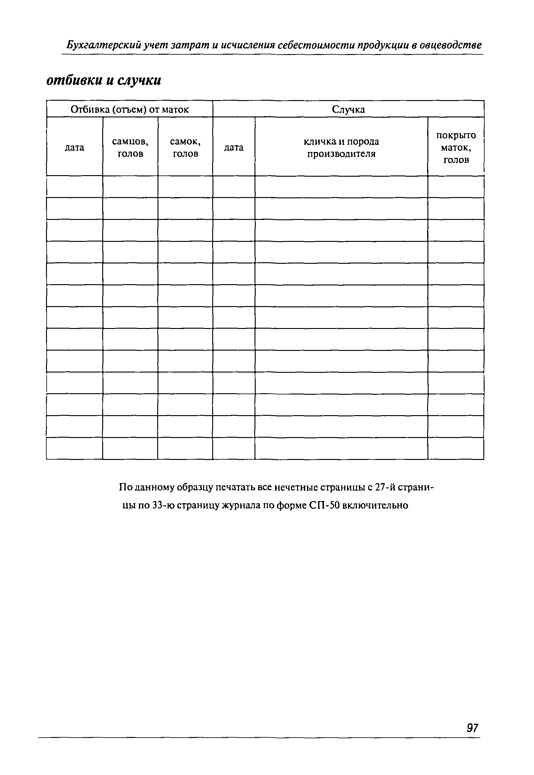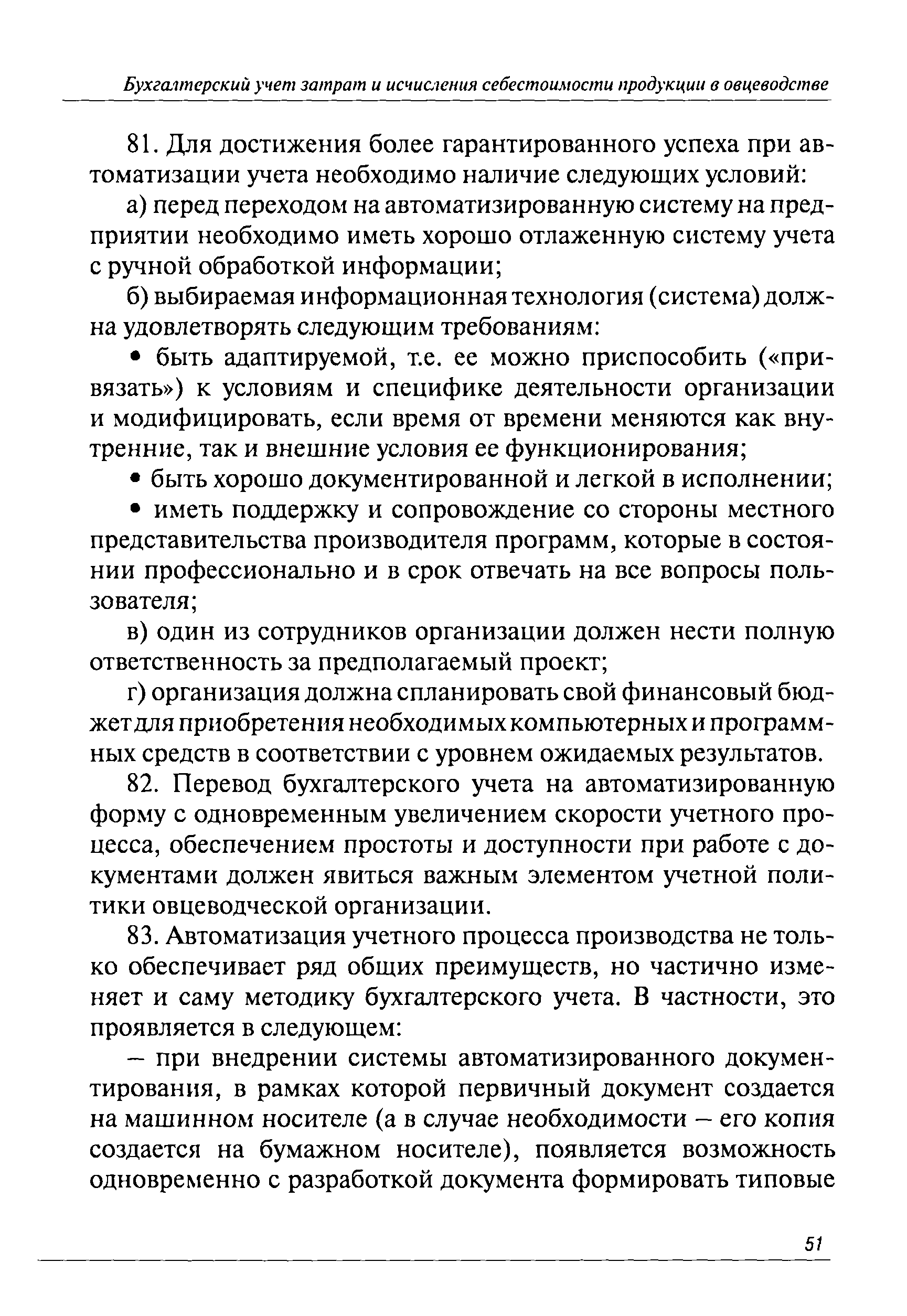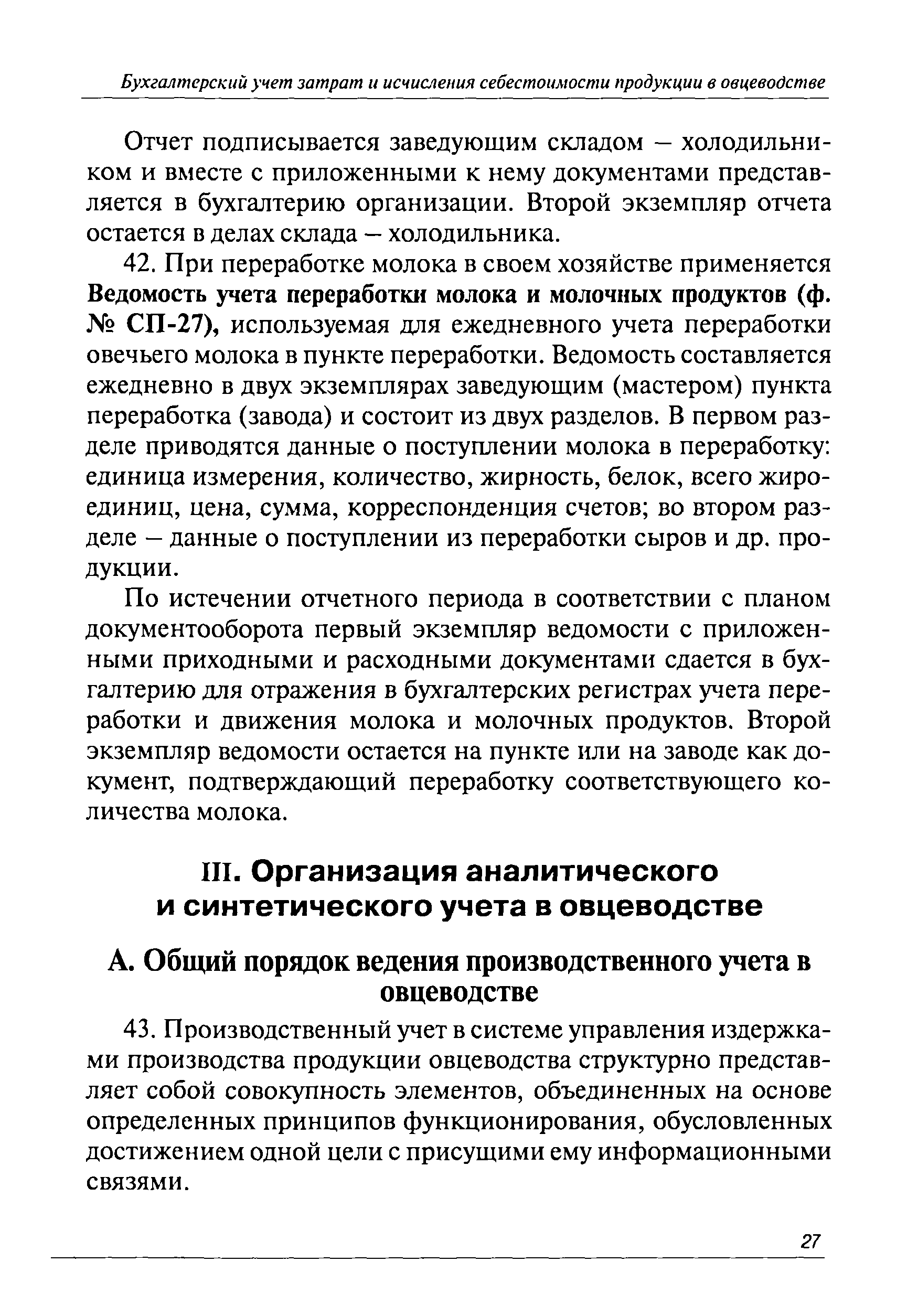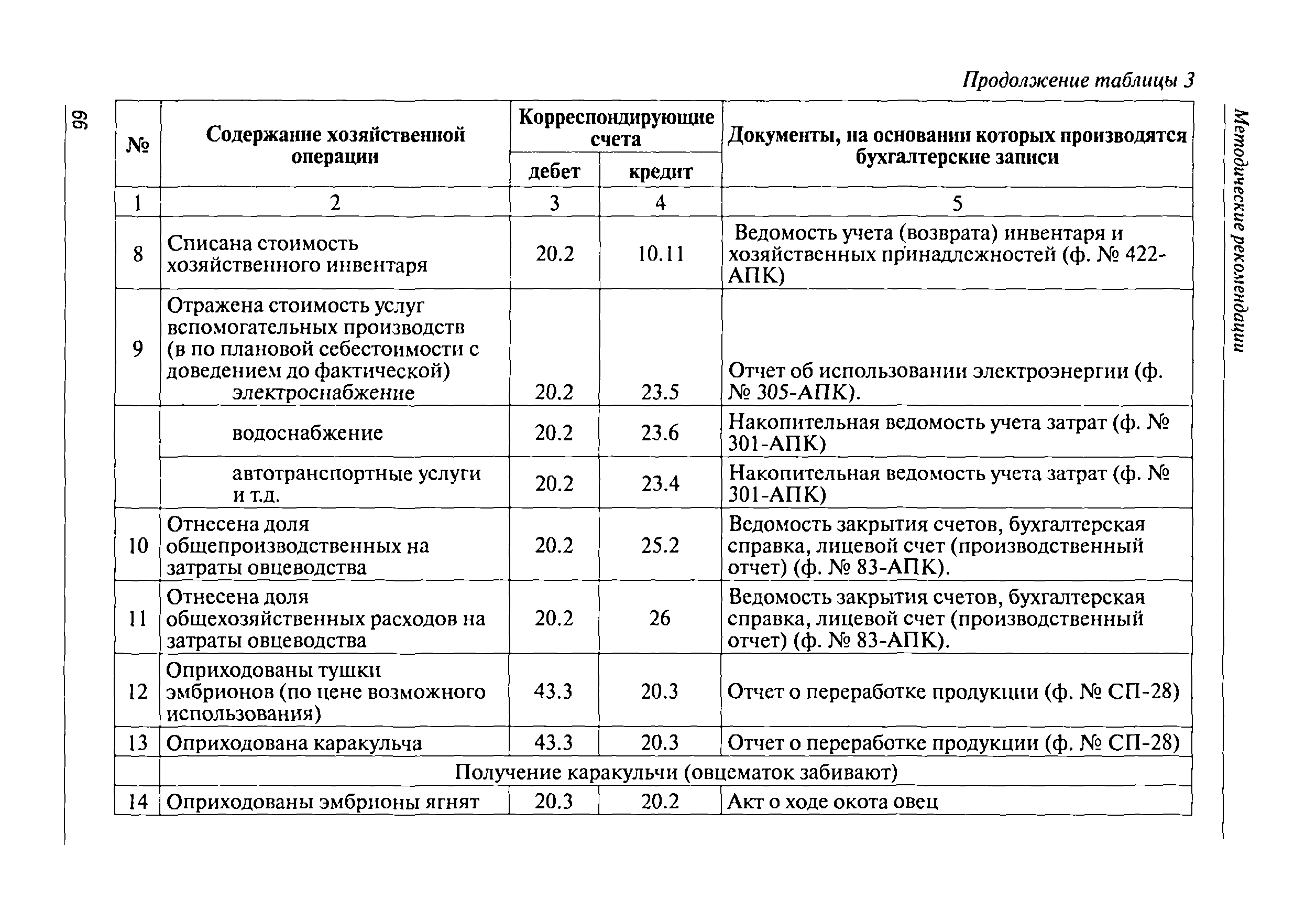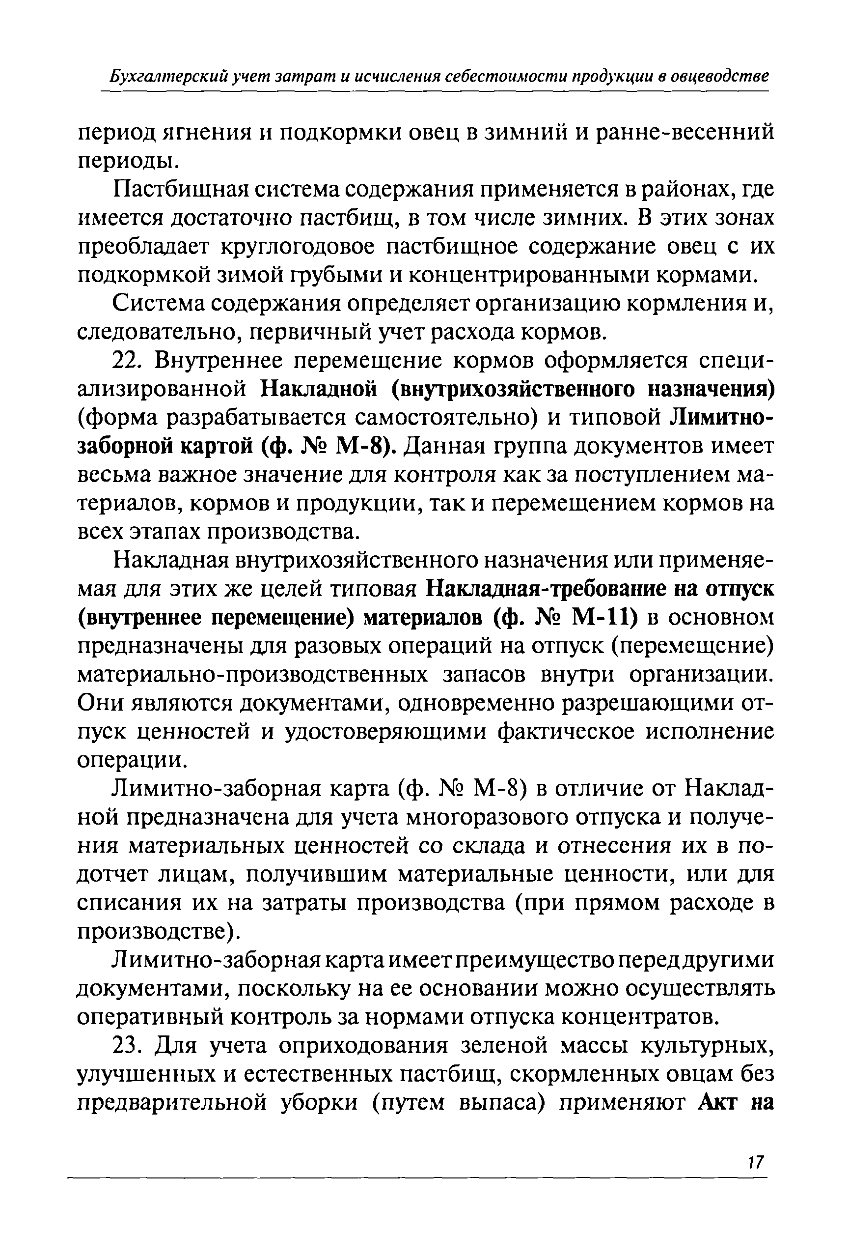 | Оглавление: | 1. Общие положения 2. Организация первичного учёта в овцеводстве А. Общий порядок ведения первичного учёта в овцеводстве Б. Первичная документация по учёту поголовья овец В. Первичная документация по учёту затрат в овцеводстве Г. Первичная документация по учёту выхода продукции овцеводства 3. Организация аналитического и синтетического учёта в овцеводстве А. Общий порядок ведения производственного учёта в овцеводстве Б. Учёт затрат и выхода продукции в овцеводстве В. Организация аналитического и синтетического учёта в овцеводстве при журнально-ордерной форме Г. Организация аналитического и синтетического учёта в овцеводстве при автоматизированной форме Д. Корреспонденция счетов бухгалтерского учета затрат на производство и выхода продукции овцеводства 4. Калькулирование себестоимости продукции овцеводства 5. Управленческие аспекты учёта затрат на производство в овцеводстве Приложения |