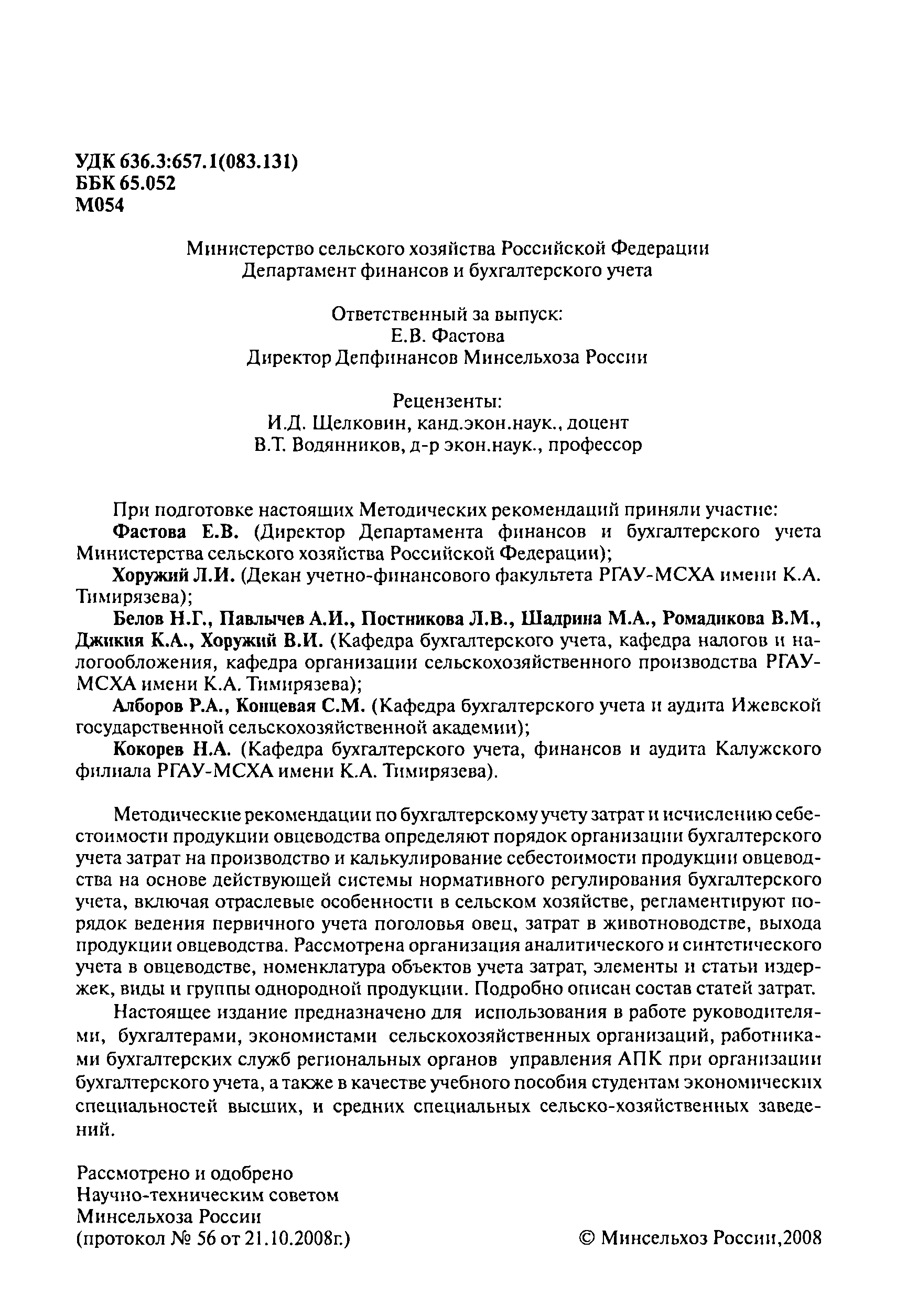 | Область применения: | Рекомендации предназначены для руководителей, бухгалтеров и экономистов сельскохозяйственных организаций, работников бухгалтерских служб сельскохозяйственных органов, научно-исследовательских учреждений, преподавателей и студентов экономических специальностей высших и средних специальных сельскохозяйственных учебных заведений. |